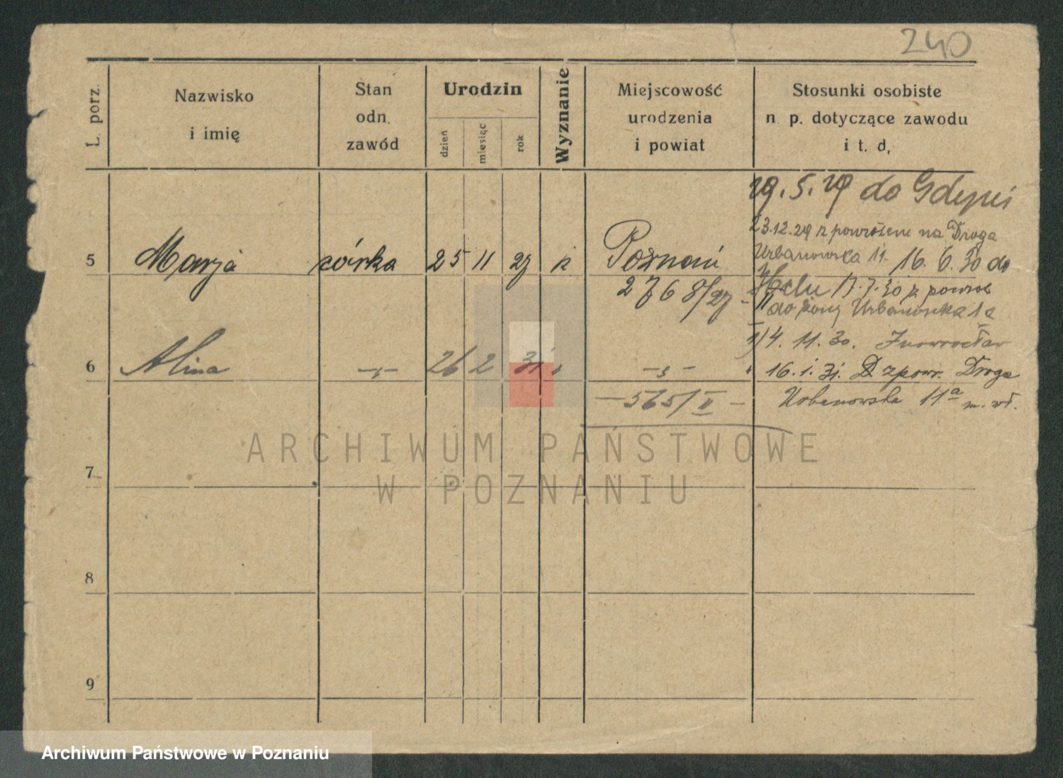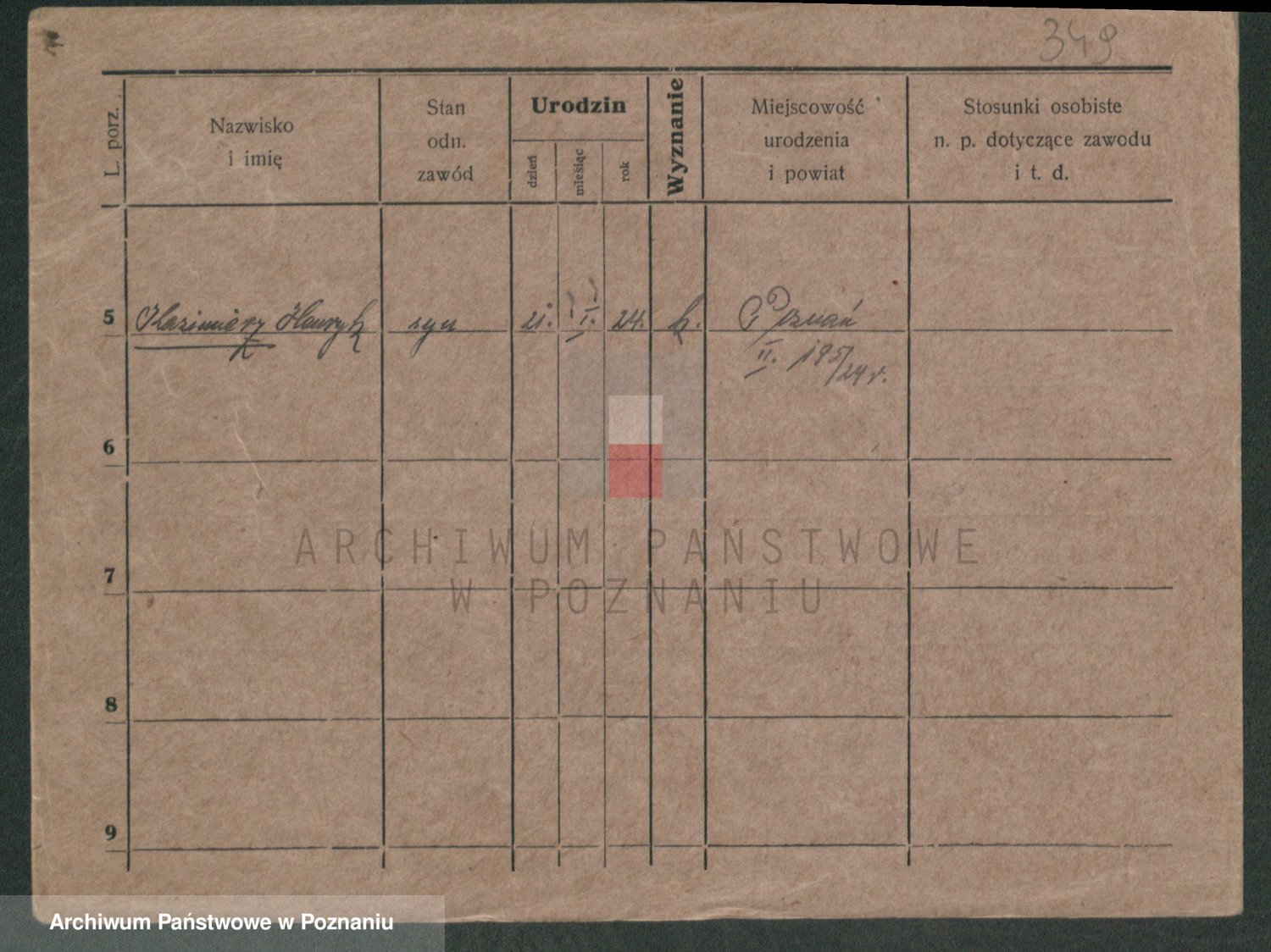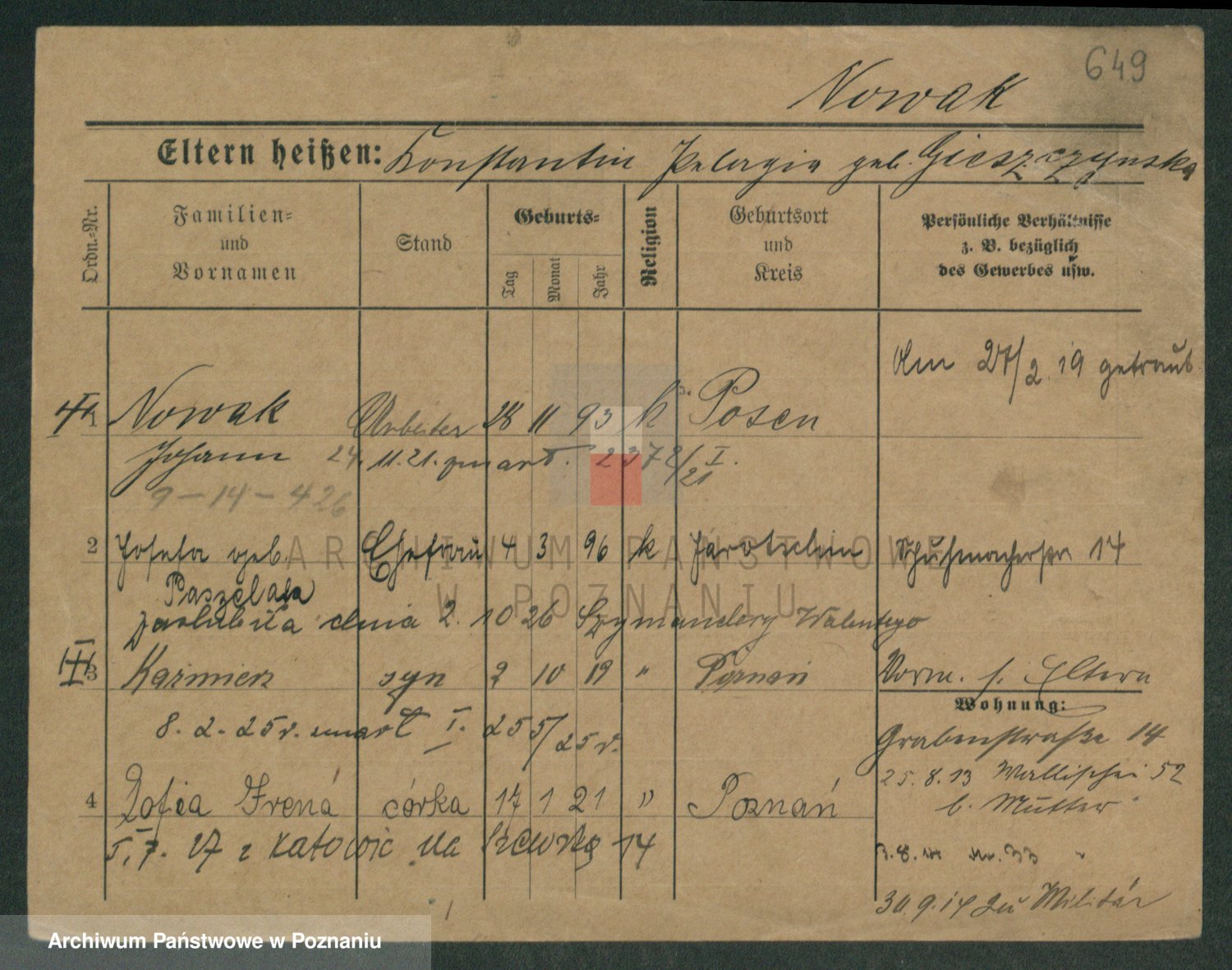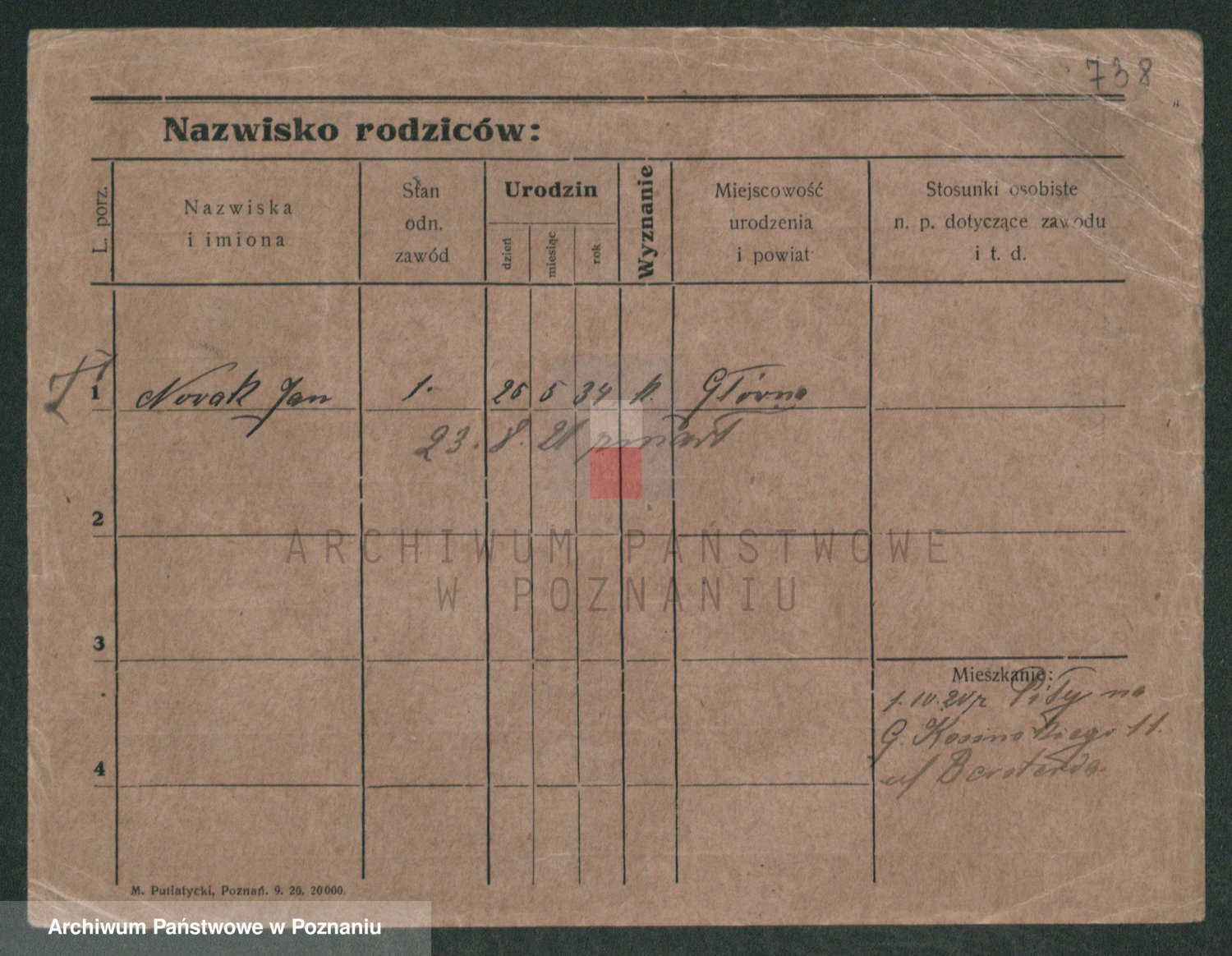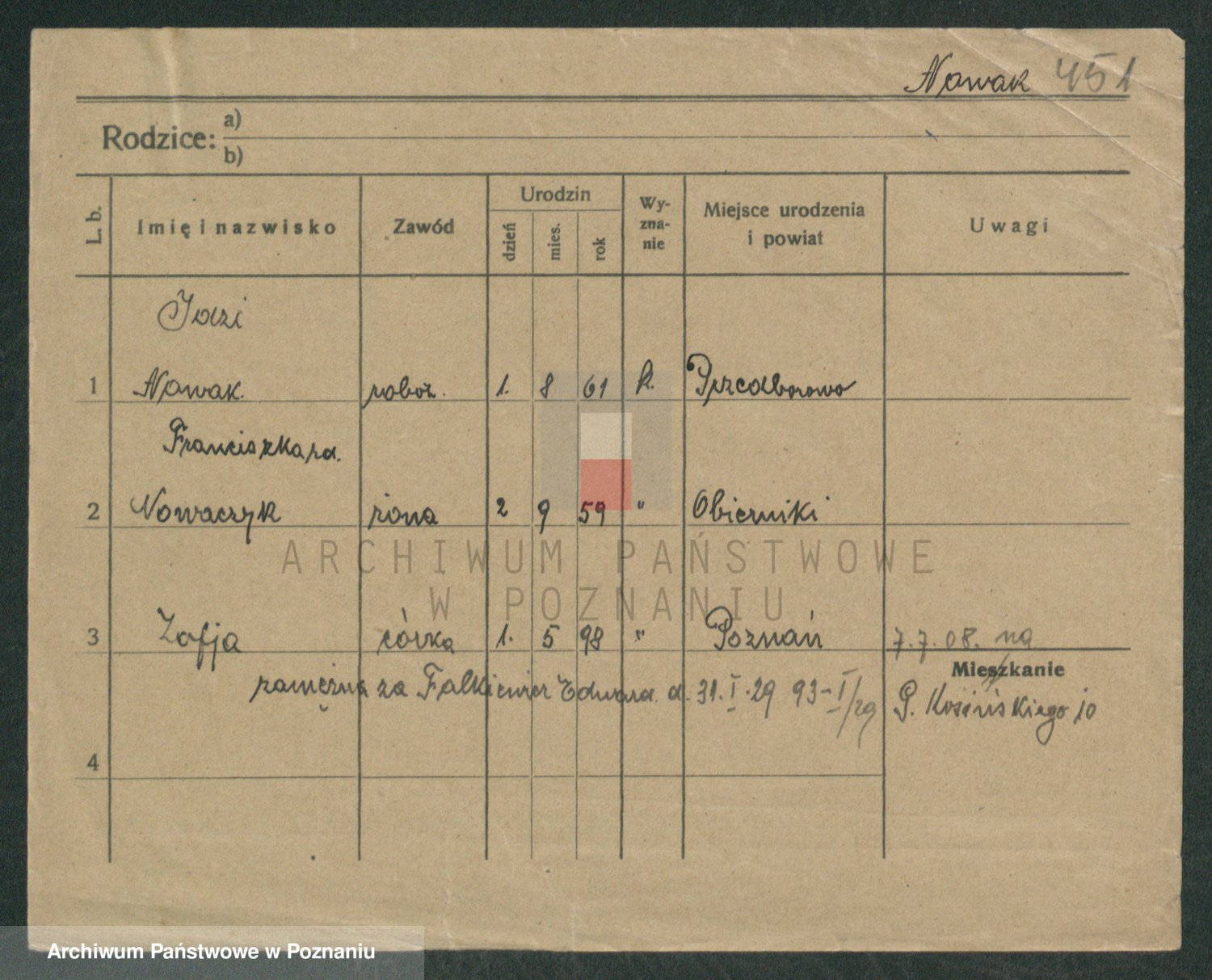 Podgląd karty osobowej dostępny jest po kliknięciu na nazwisko lub ikonkę karty. Można dokonywać powiększenia (ikony na górze) lub przechodzić między kolejnymi skanami (strzałki po bokach).