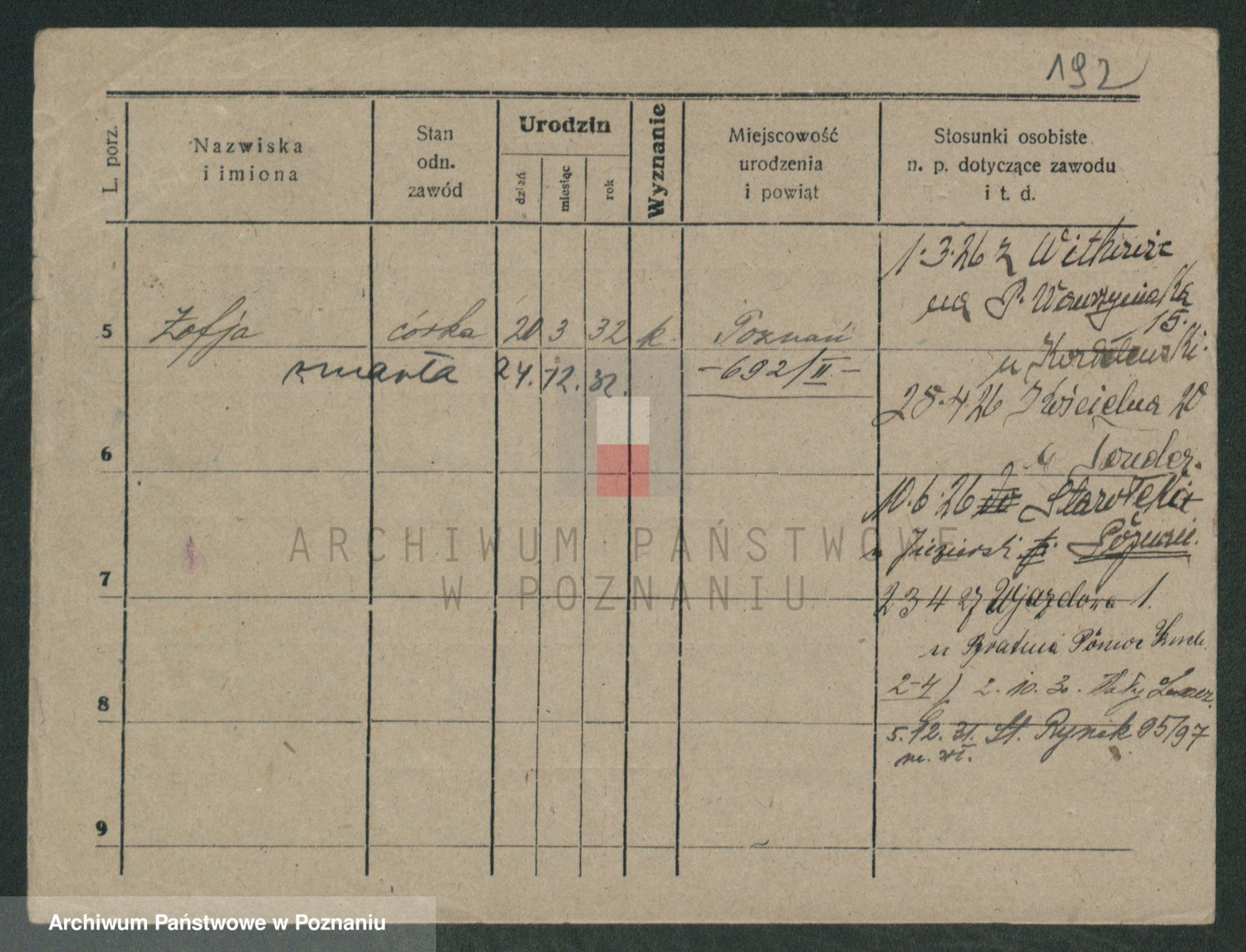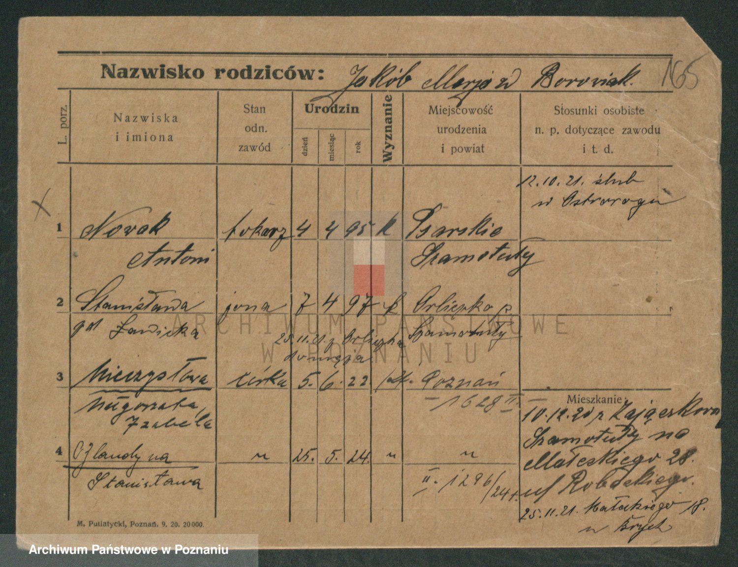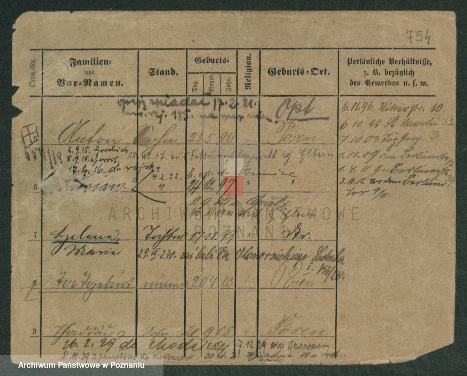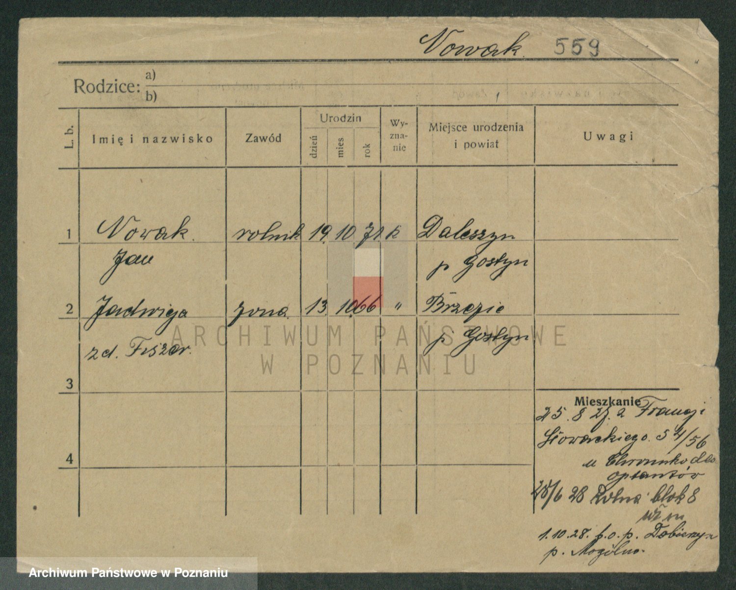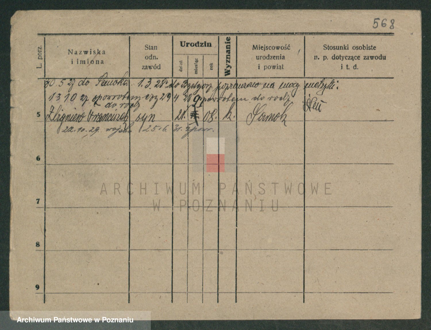 Podgląd karty osobowej dostępny jest po kliknięciu na nazwisko lub ikonkę karty. Można dokonywać powiększenia (ikony na górze) lub przechodzić między kolejnymi skanami (strzałki po bokach).