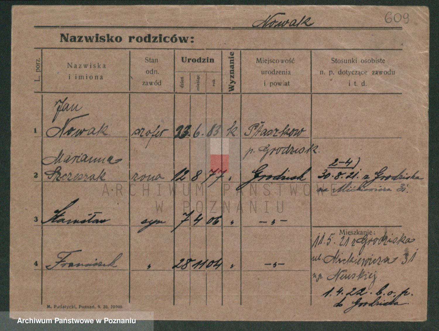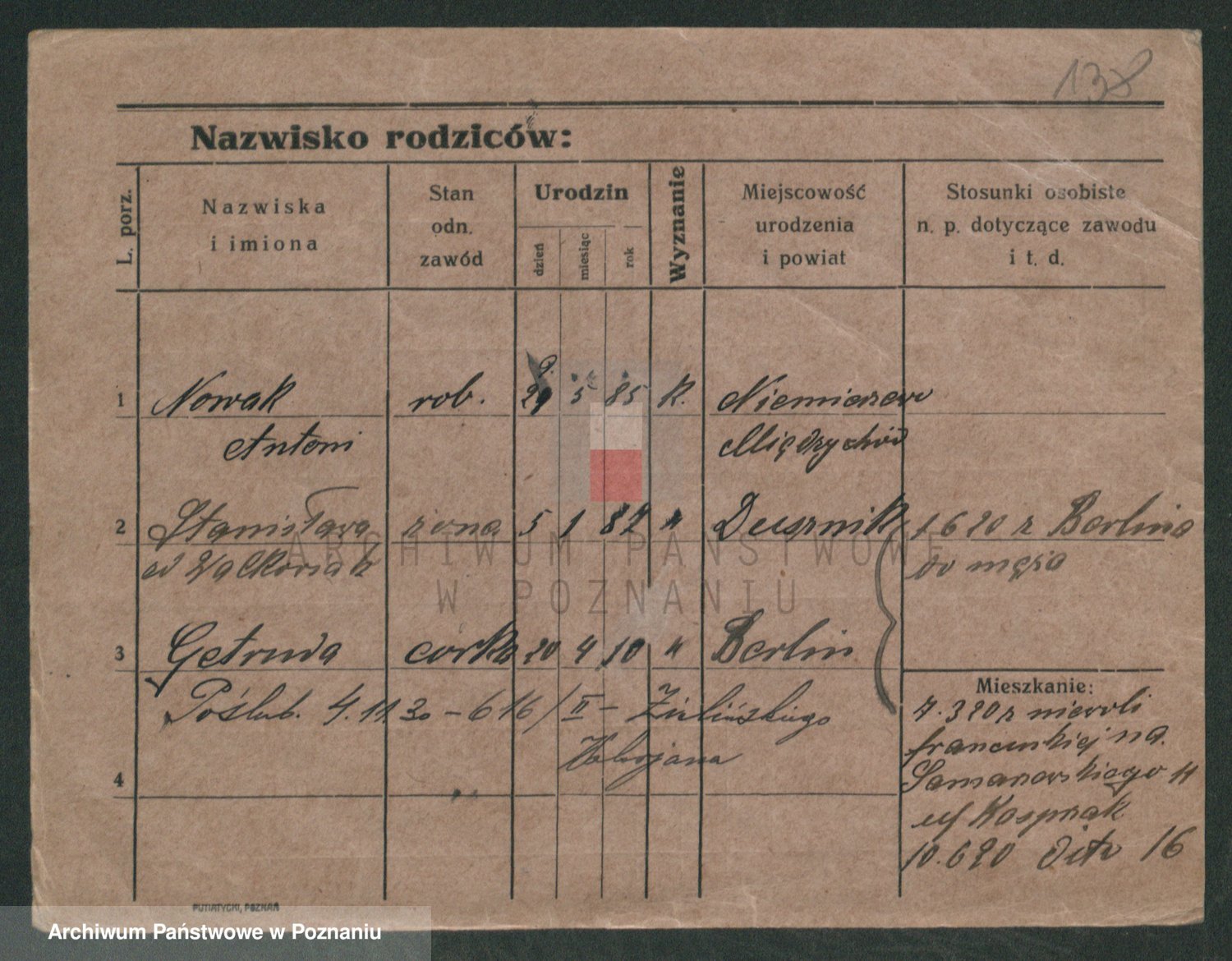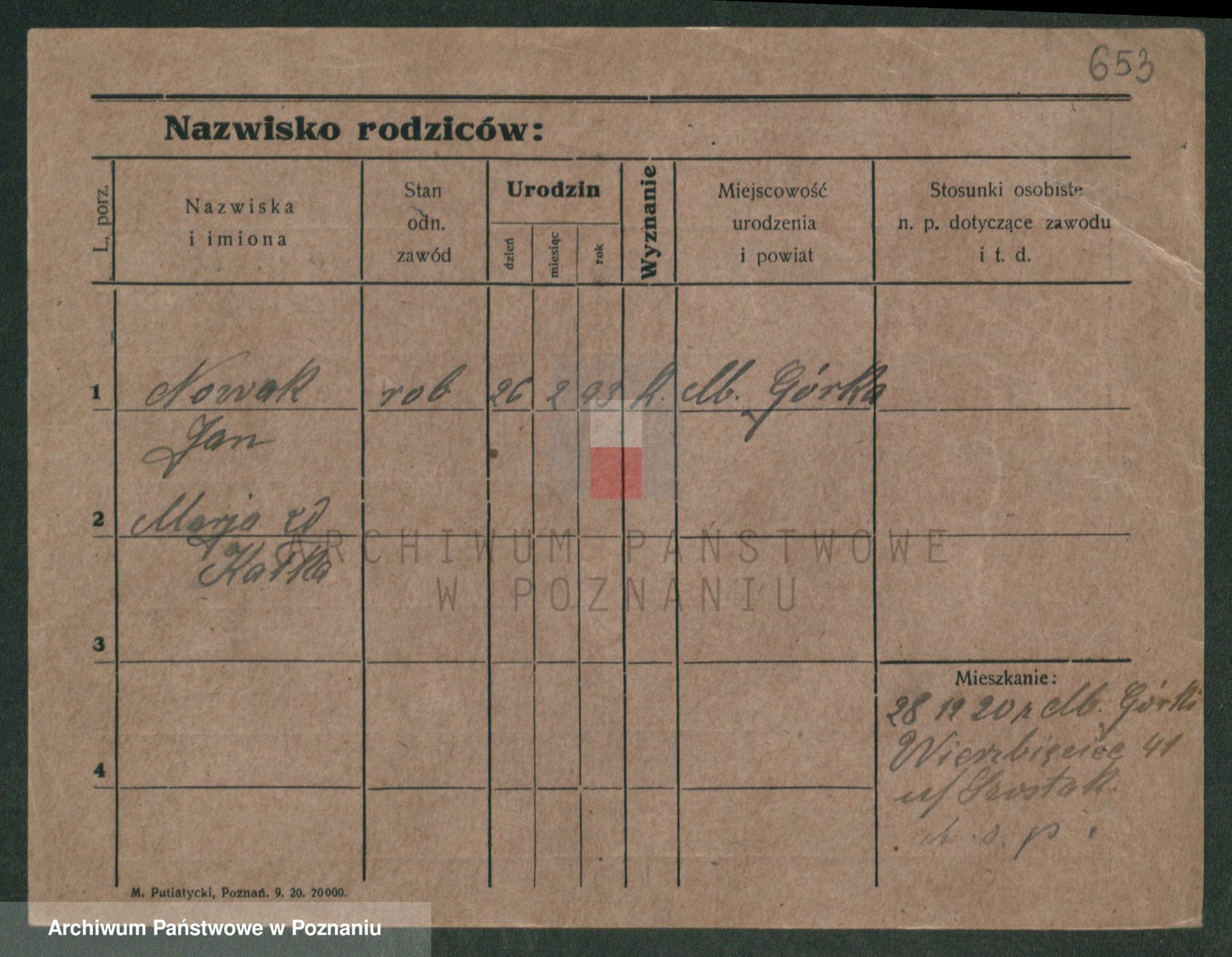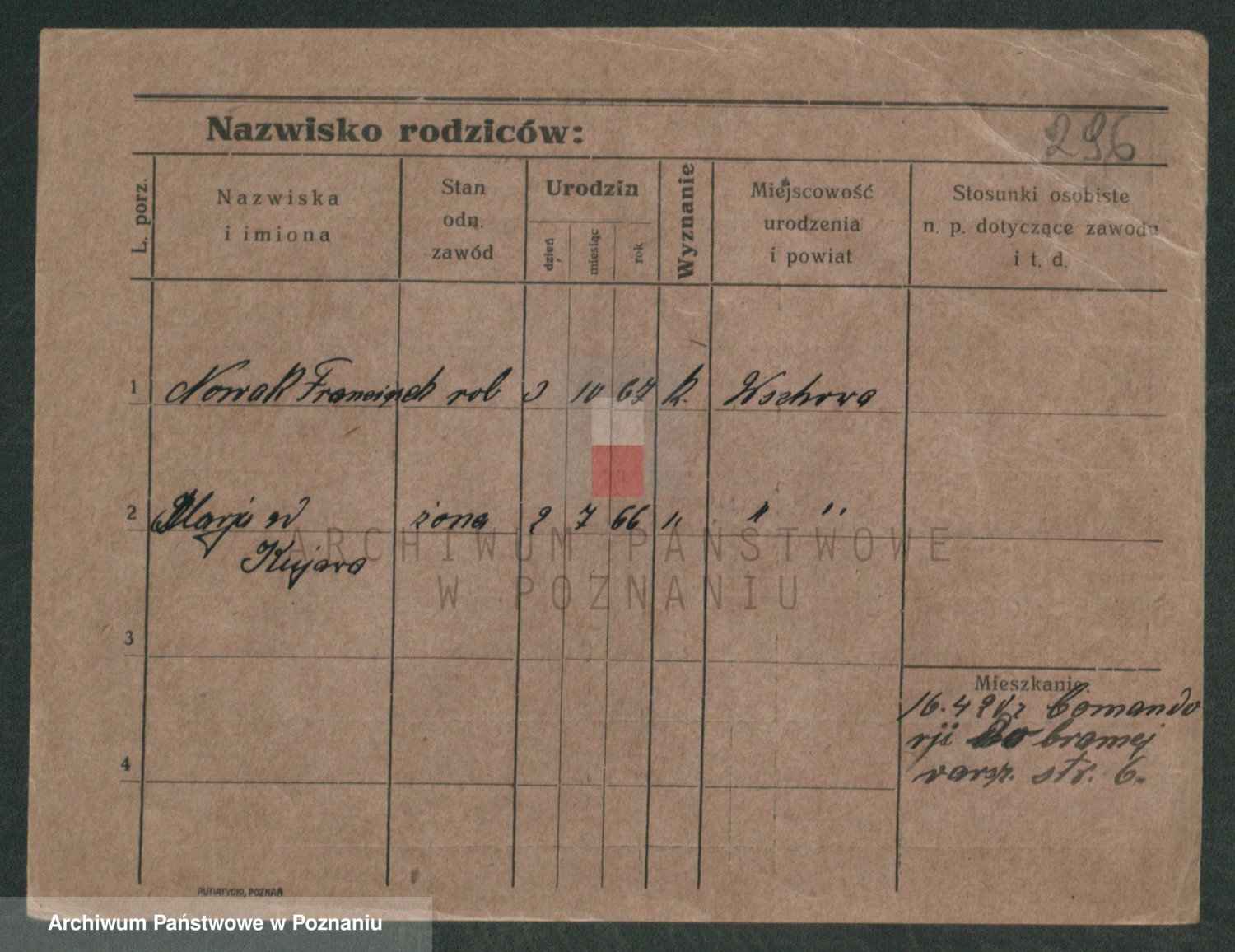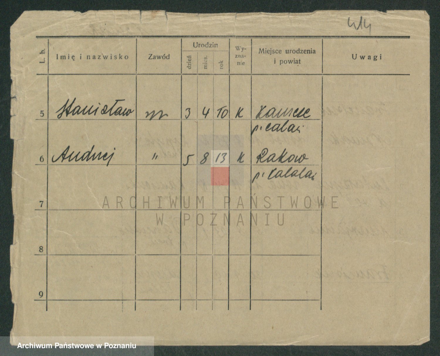 Podgląd karty osobowej dostępny jest po kliknięciu na nazwisko lub ikonkę karty. Można dokonywać powiększenia (ikony na górze) lub przechodzić między kolejnymi skanami (strzałki po bokach).