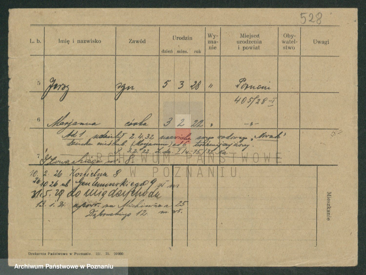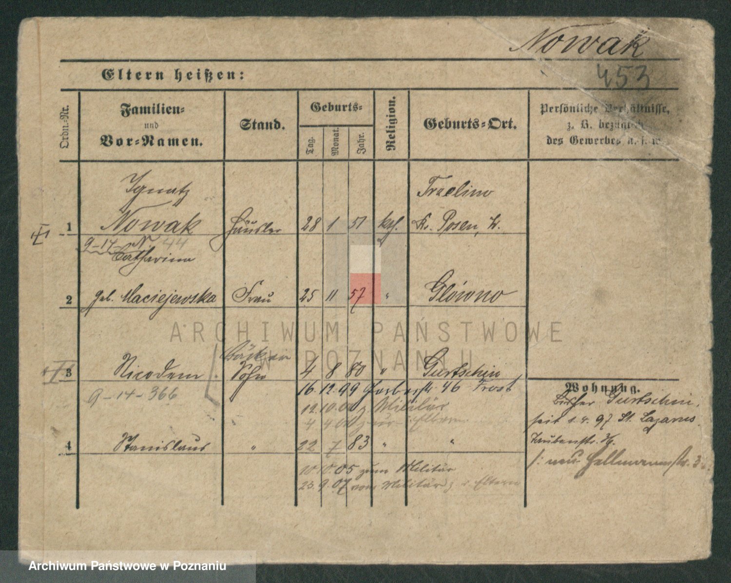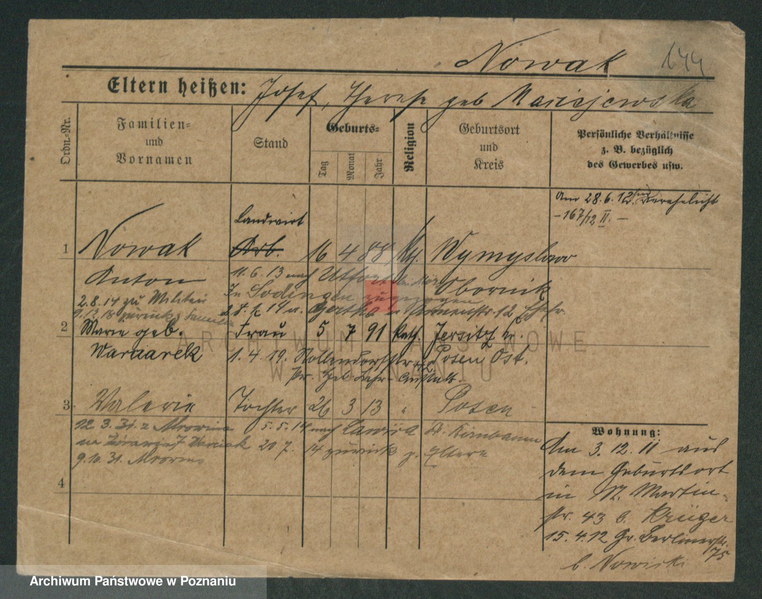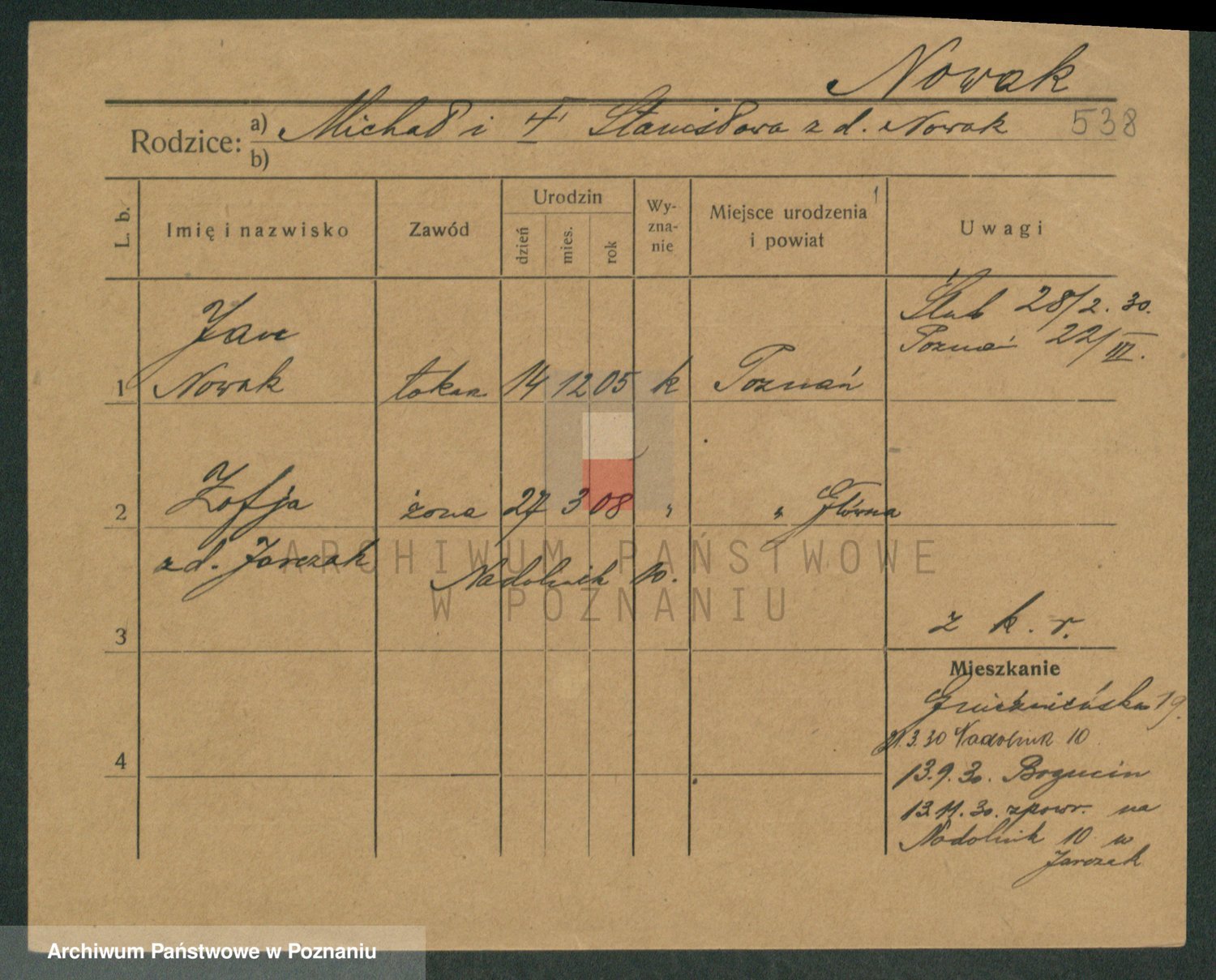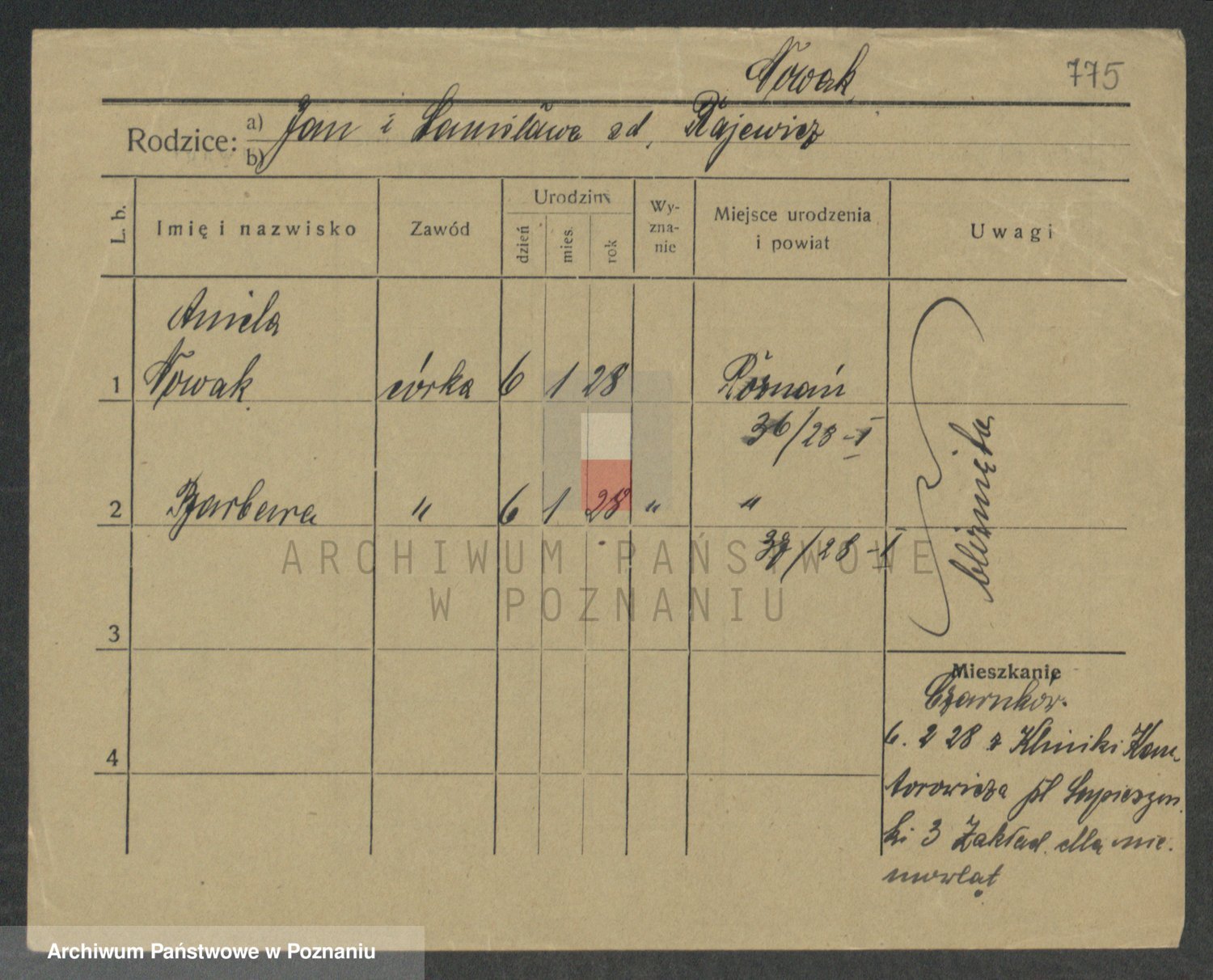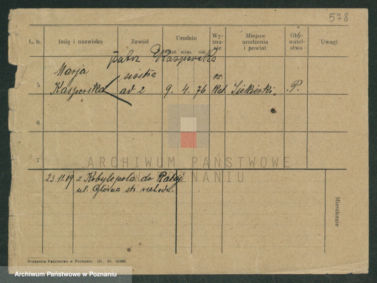 Podgląd karty osobowej dostępny jest po kliknięciu na nazwisko lub ikonkę karty. Można dokonywać powiększenia (ikony na górze) lub przechodzić między kolejnymi skanami (strzałki po bokach).