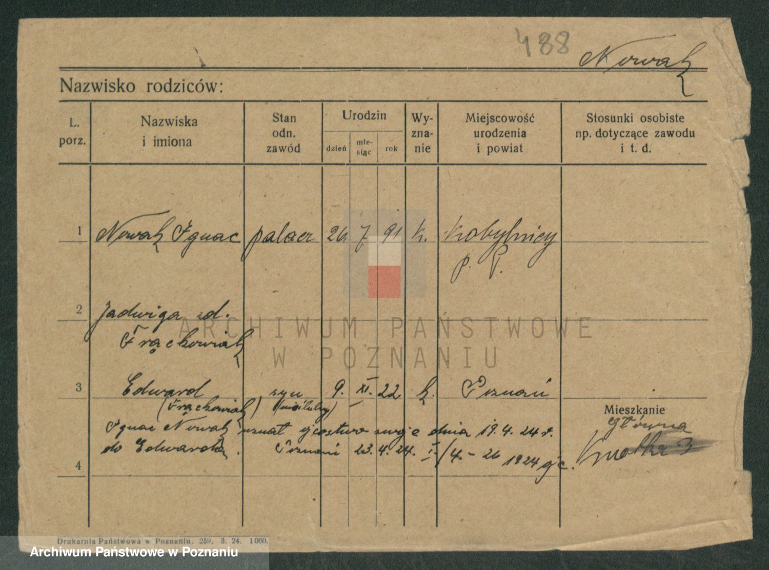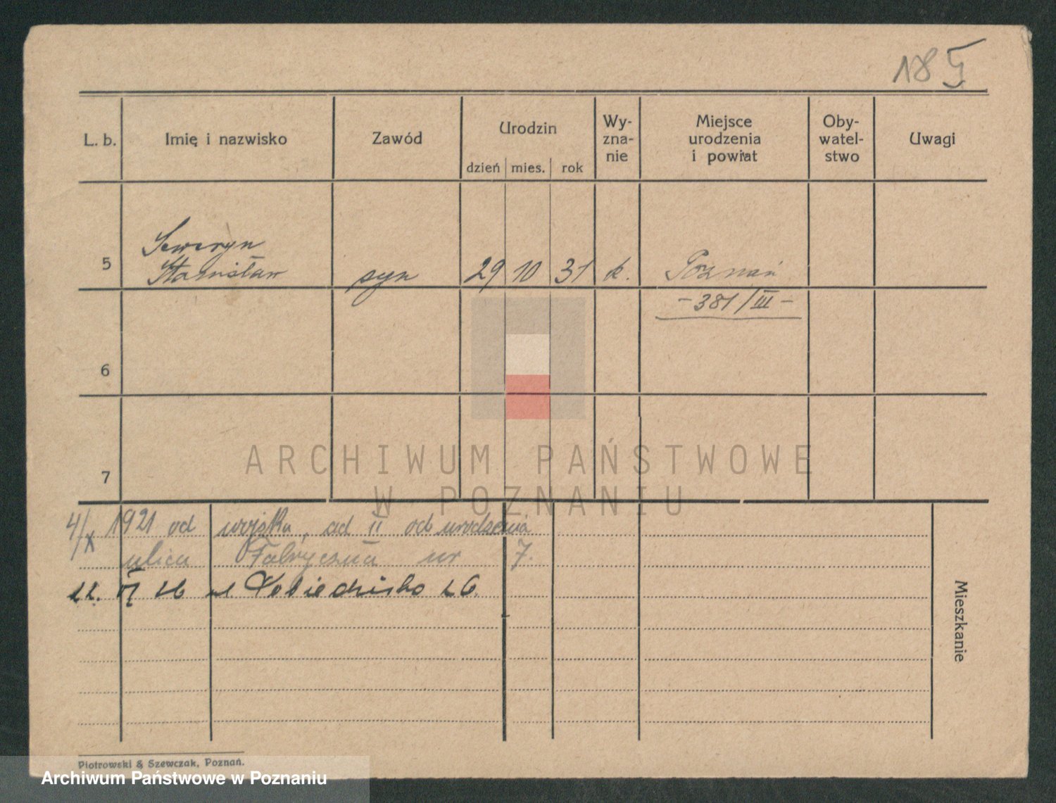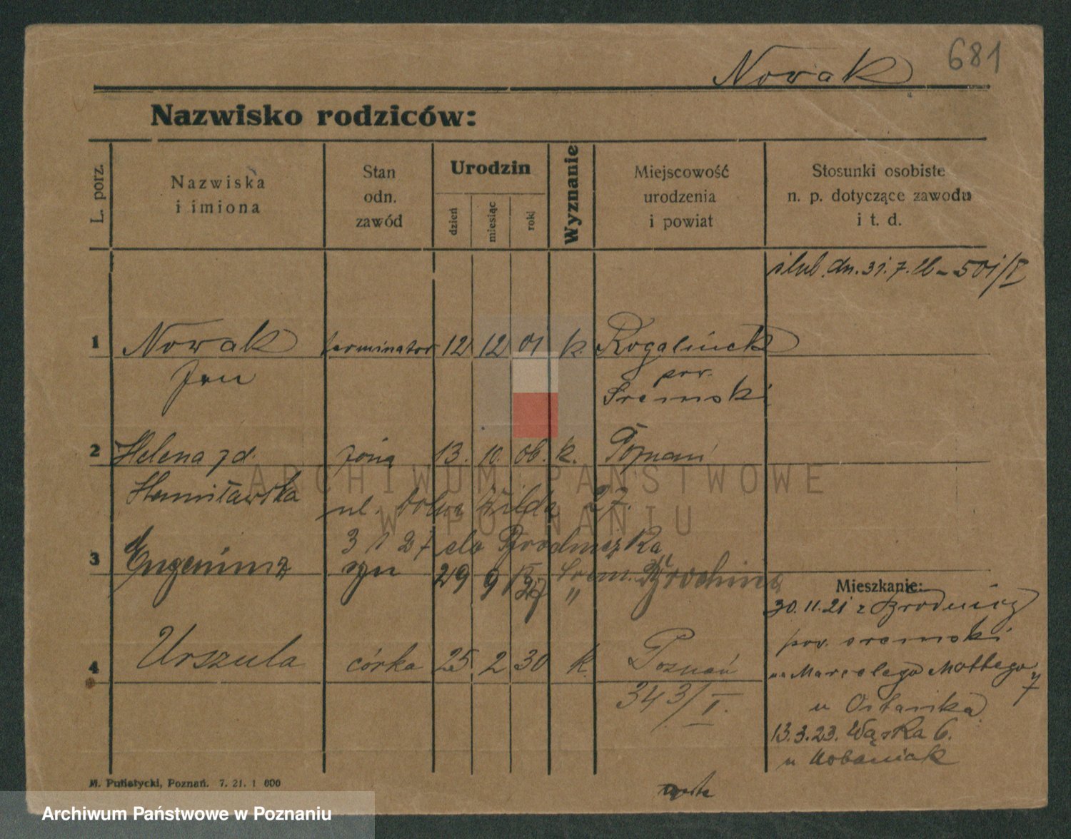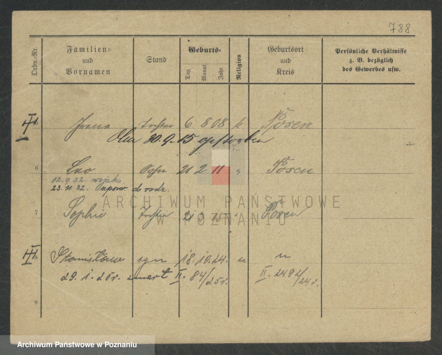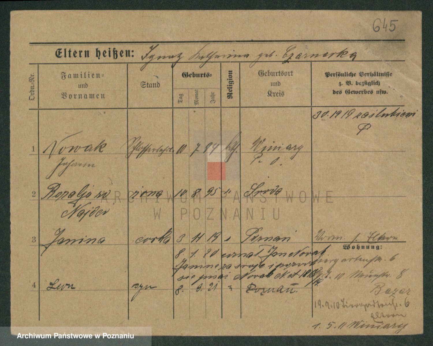 Podgląd karty osobowej dostępny jest po kliknięciu na nazwisko lub ikonkę karty. Można dokonywać powiększenia (ikony na górze) lub przechodzić między kolejnymi skanami (strzałki po bokach).