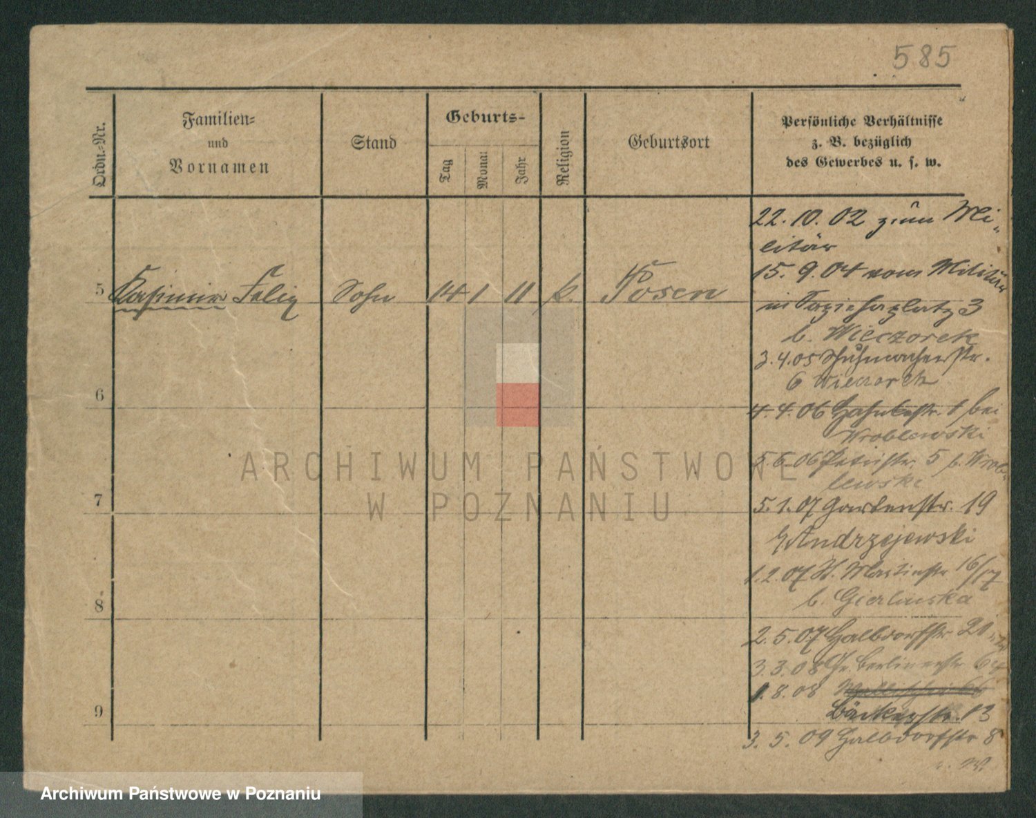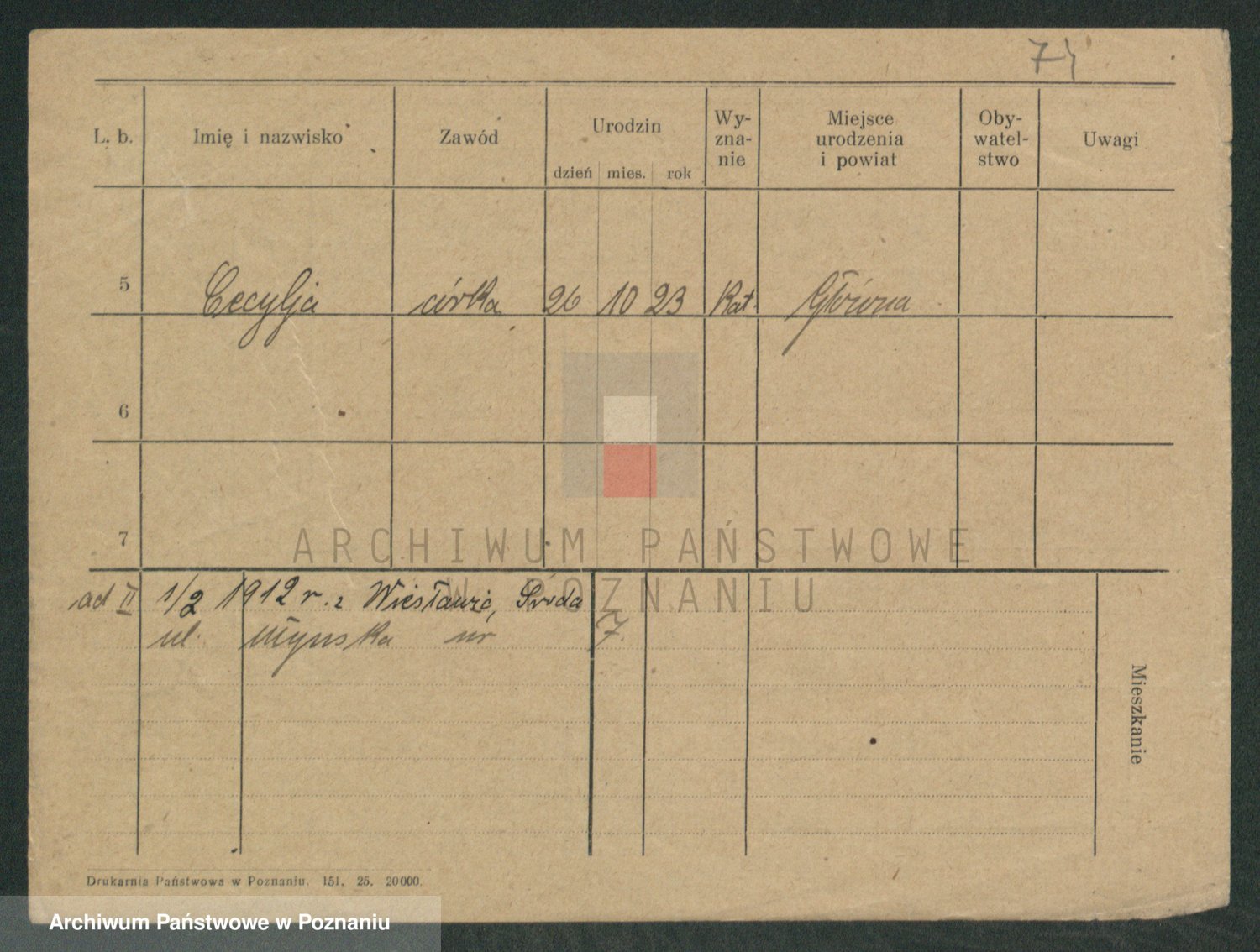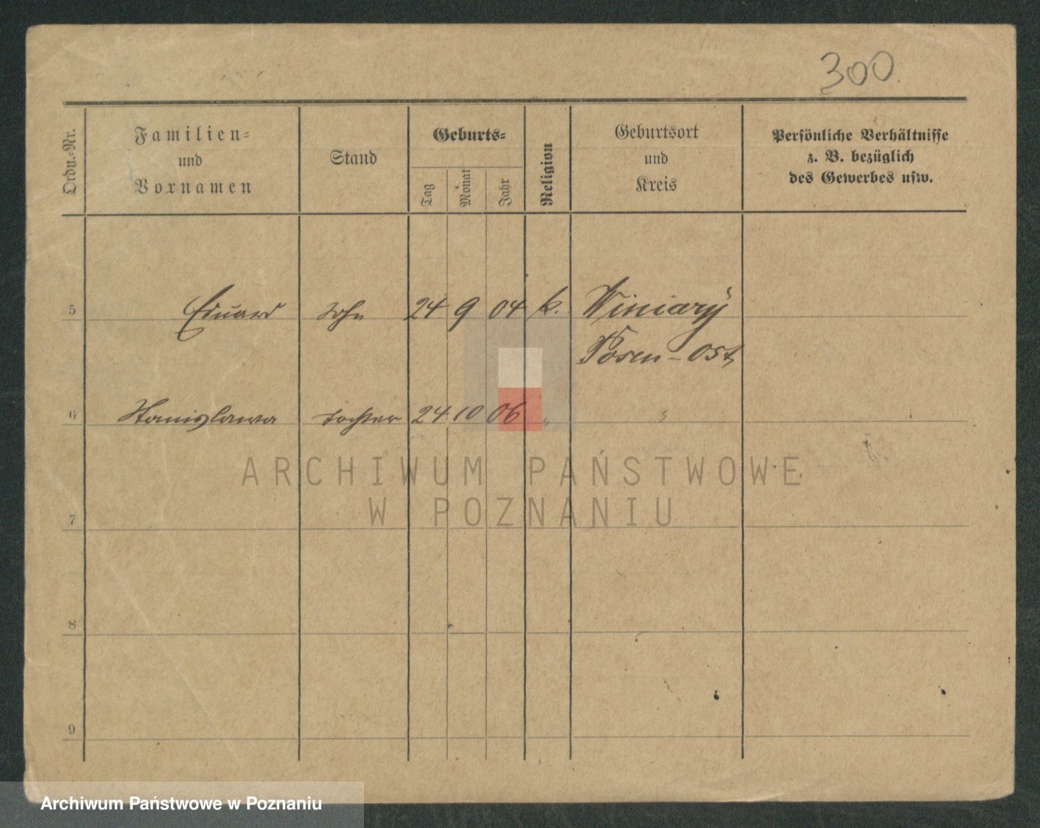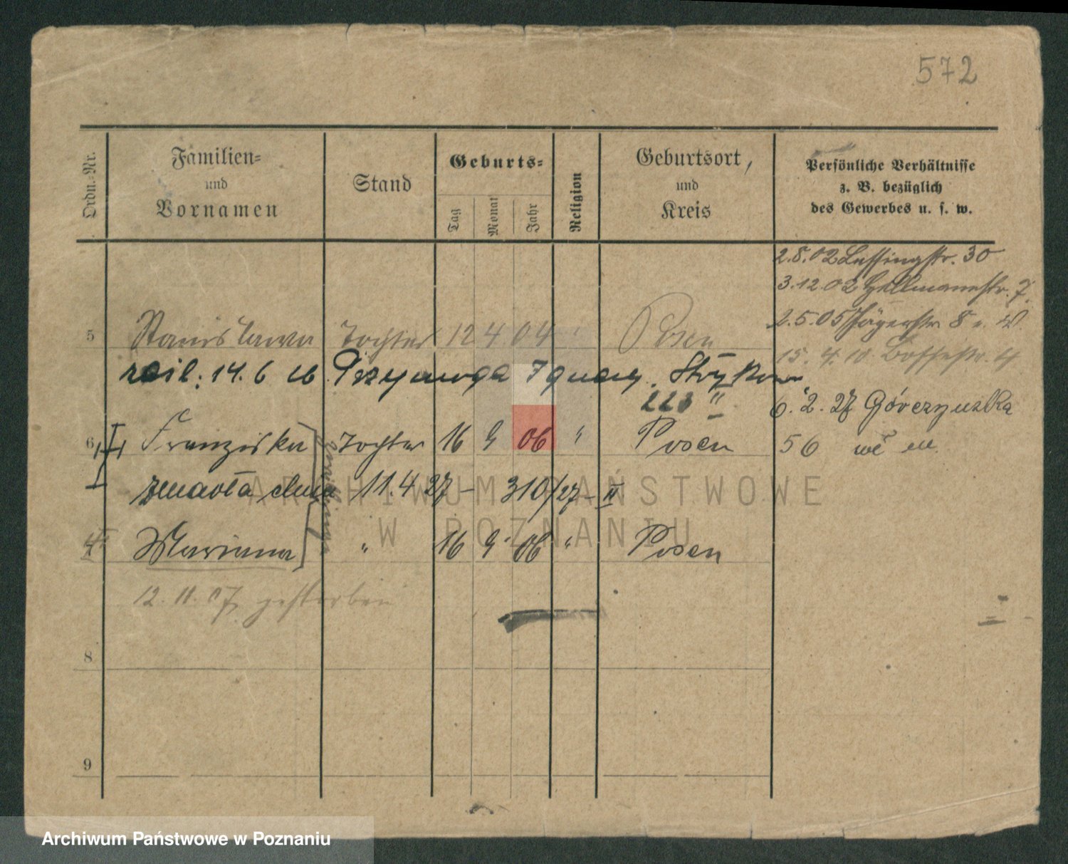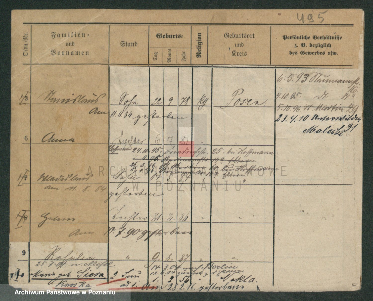 Podgląd karty osobowej dostępny jest po kliknięciu na nazwisko lub ikonkę karty. Można dokonywać powiększenia (ikony na górze) lub przechodzić między kolejnymi skanami (strzałki po bokach).