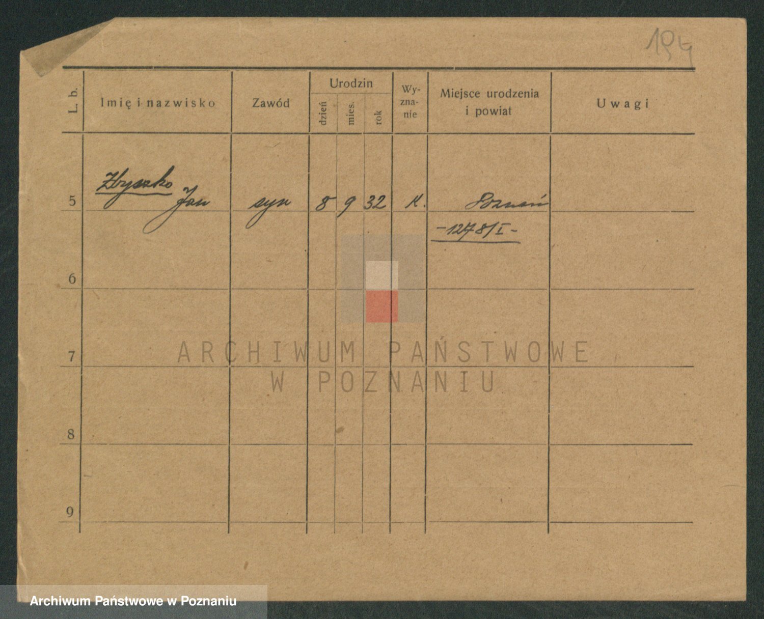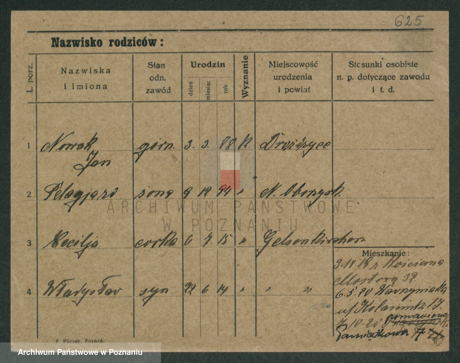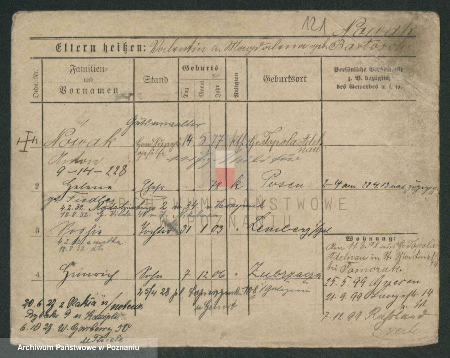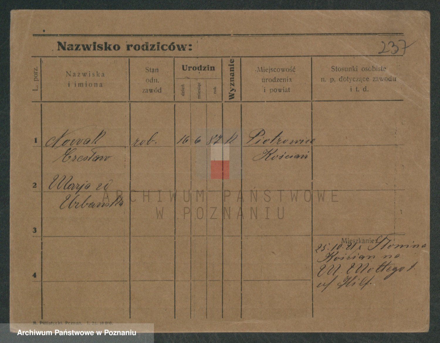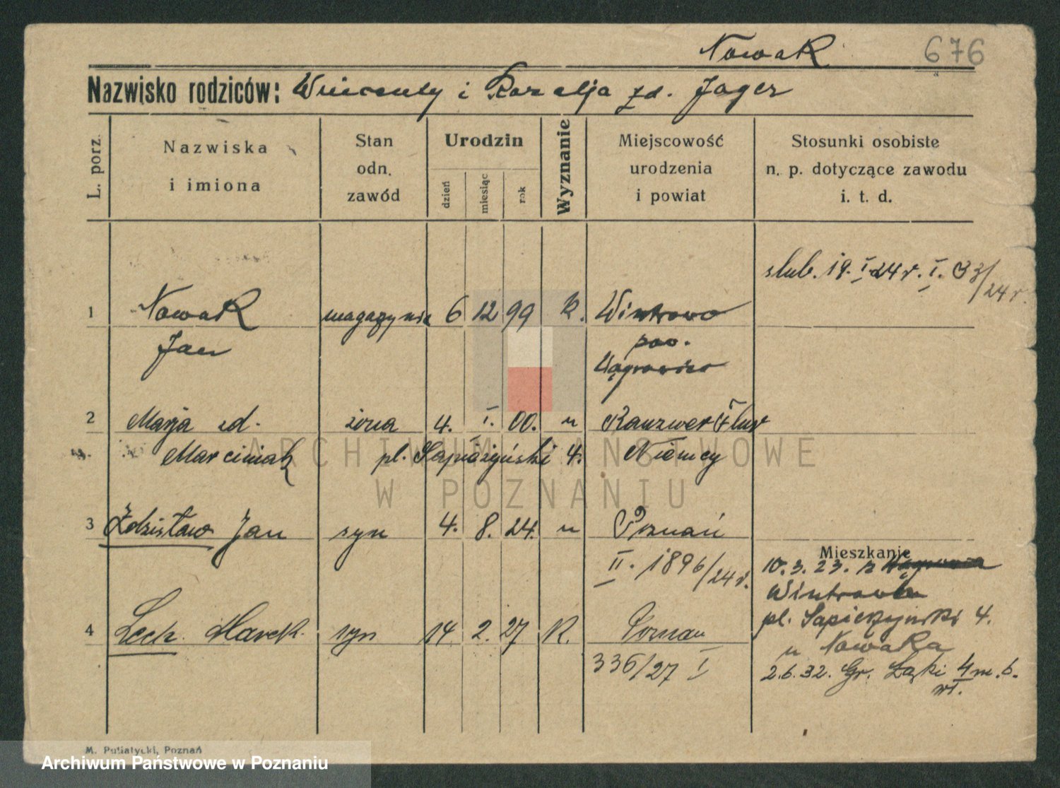 Podgląd karty osobowej dostępny jest po kliknięciu na nazwisko lub ikonkę karty. Można dokonywać powiększenia (ikony na górze) lub przechodzić między kolejnymi skanami (strzałki po bokach).