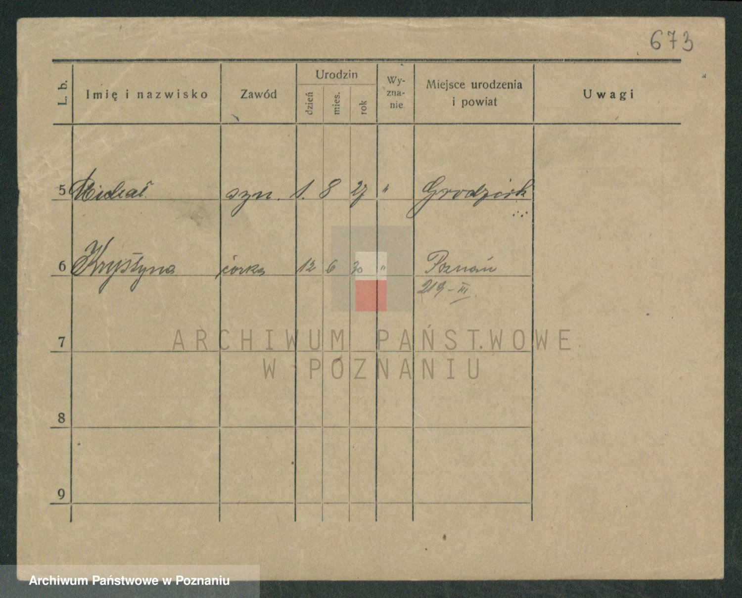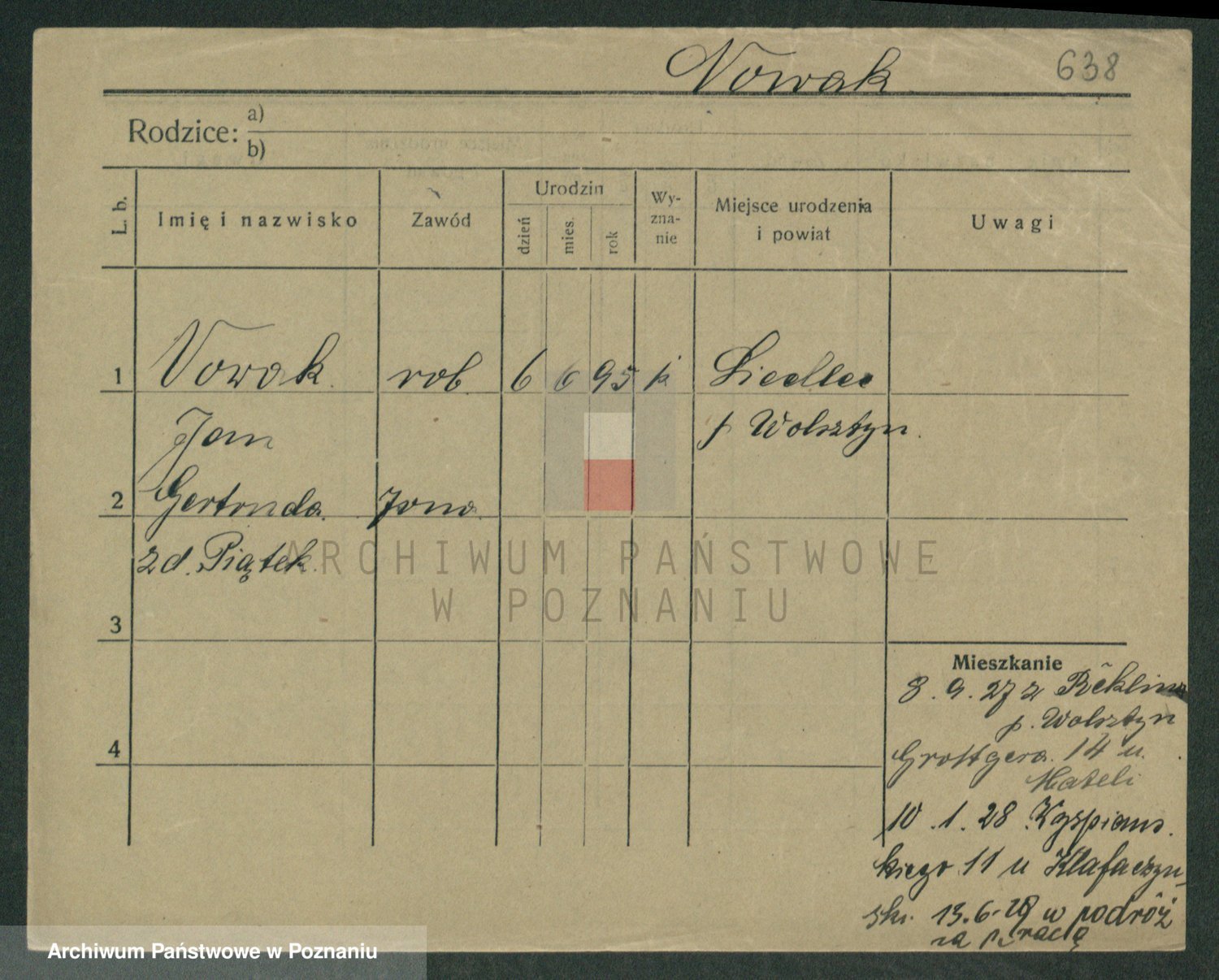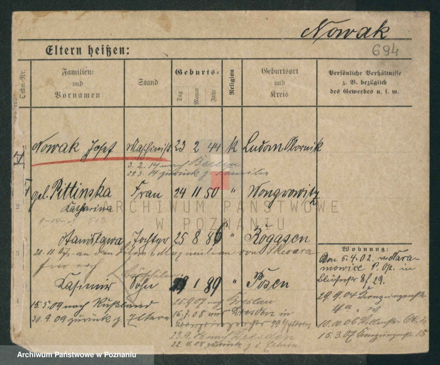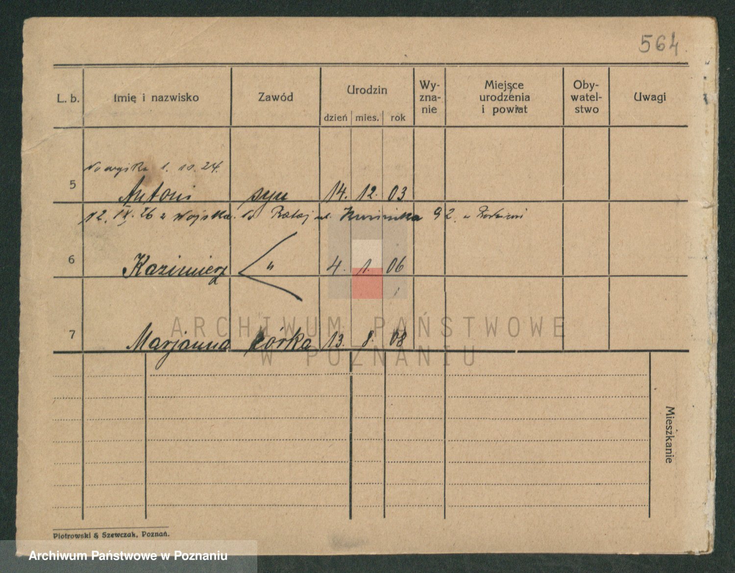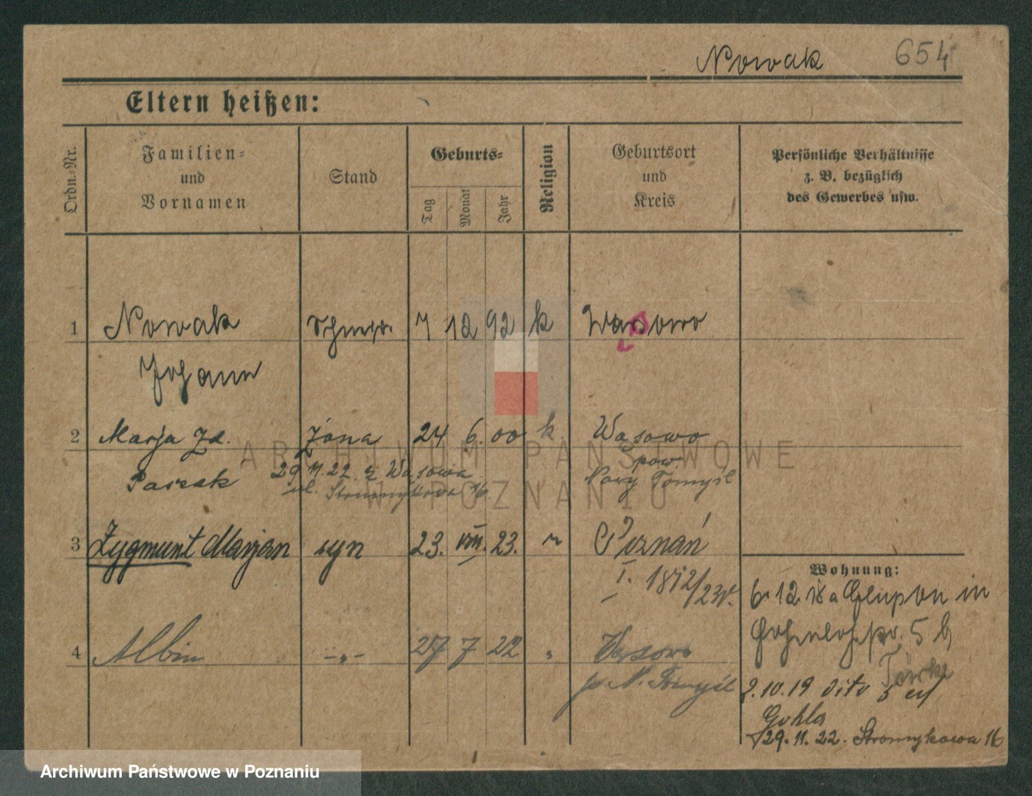 Podgląd karty osobowej dostępny jest po kliknięciu na nazwisko lub ikonkę karty. Można dokonywać powiększenia (ikony na górze) lub przechodzić między kolejnymi skanami (strzałki po bokach).