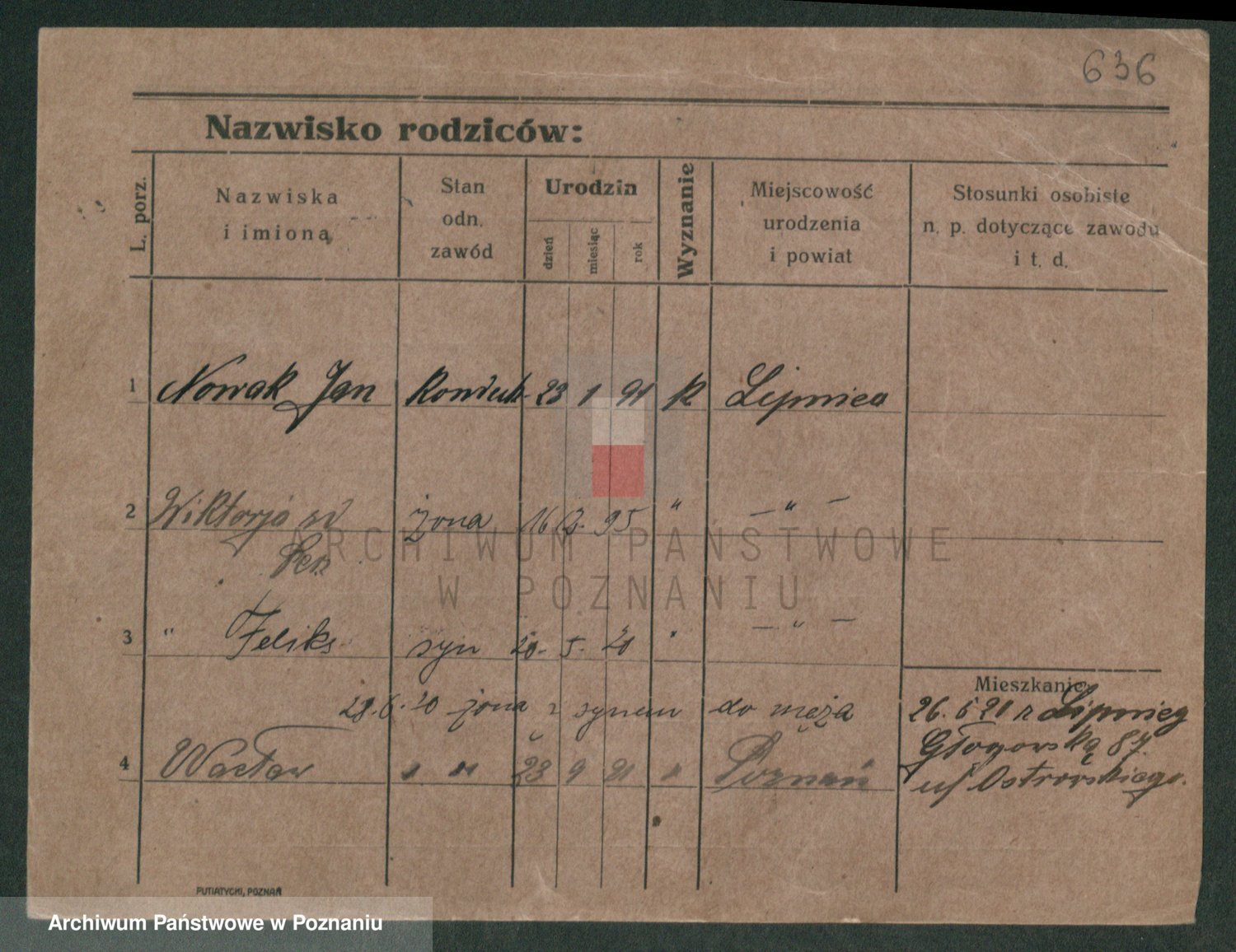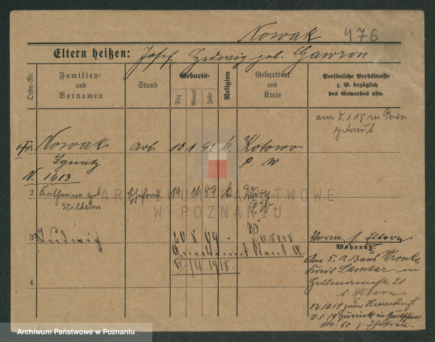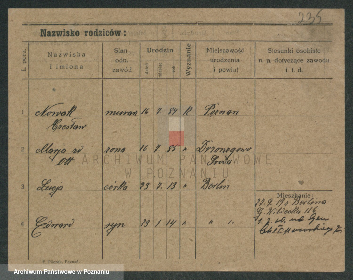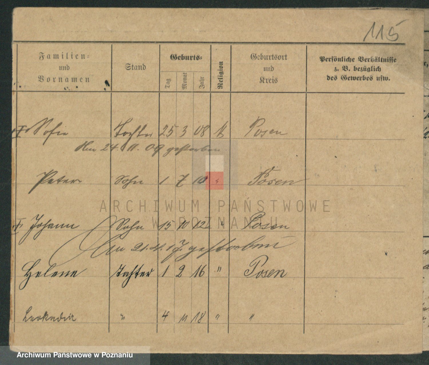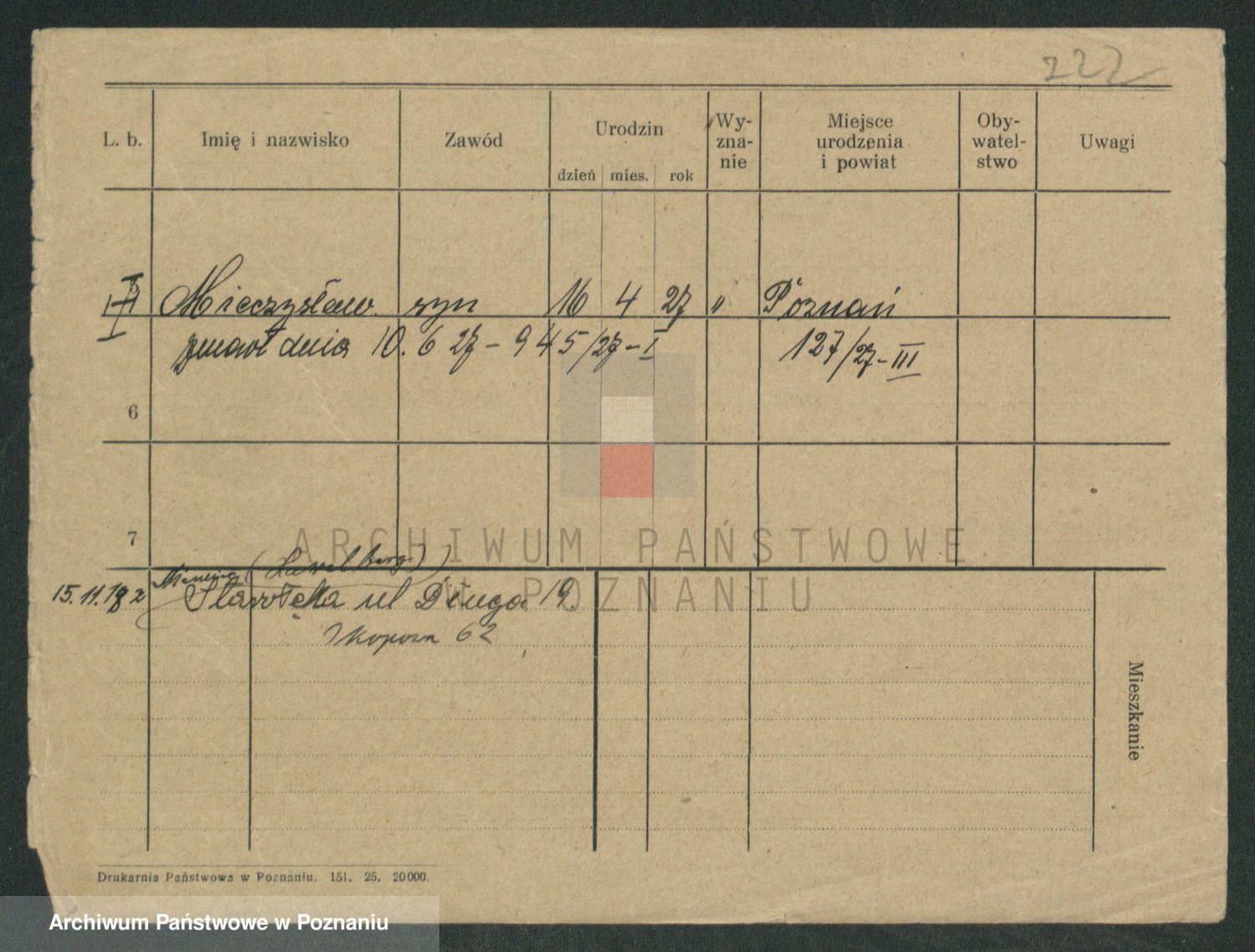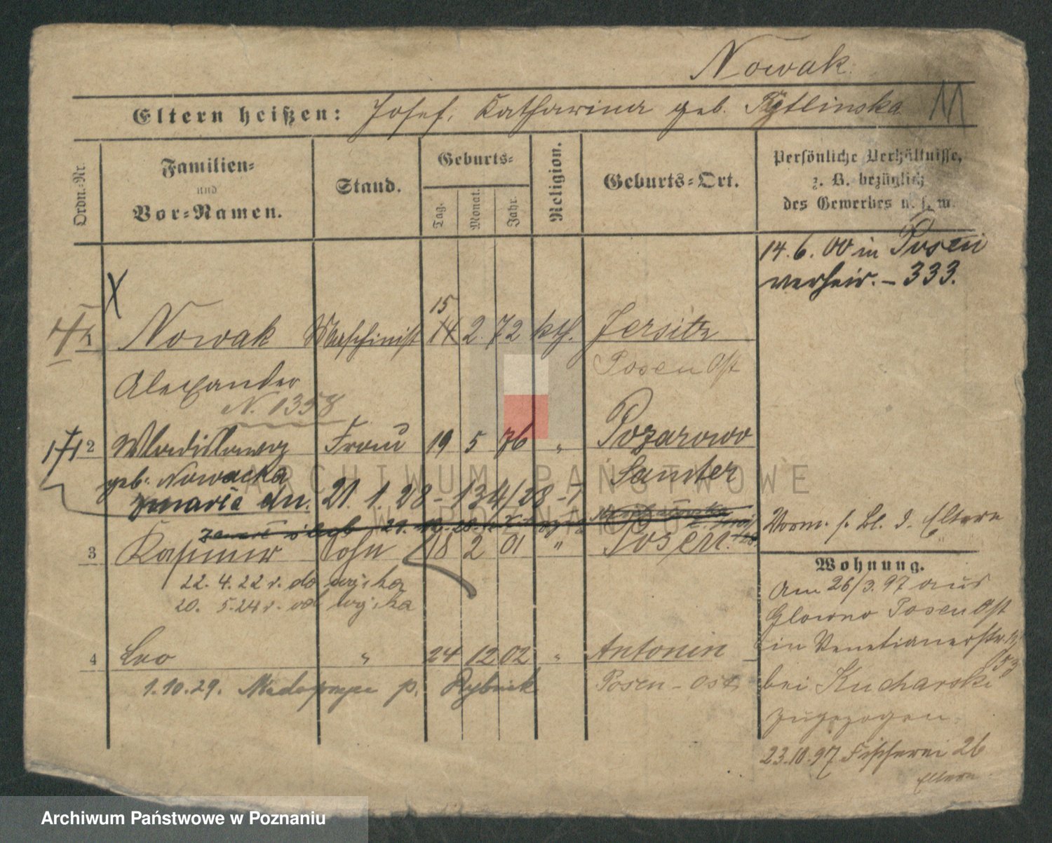 Podgląd karty osobowej dostępny jest po kliknięciu na nazwisko lub ikonkę karty. Można dokonywać powiększenia (ikony na górze) lub przechodzić między kolejnymi skanami (strzałki po bokach).