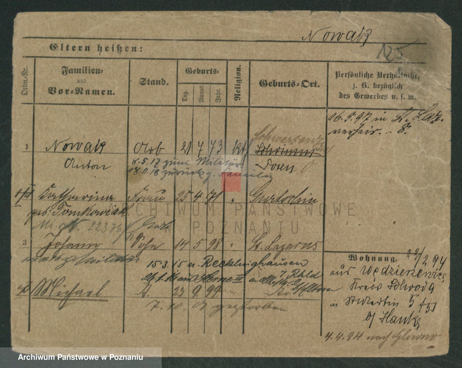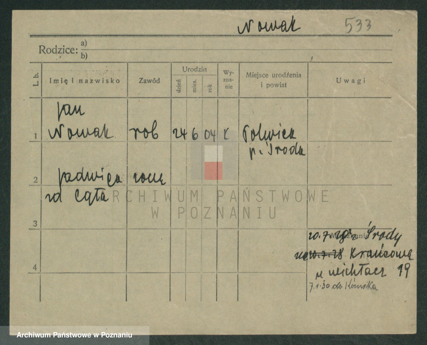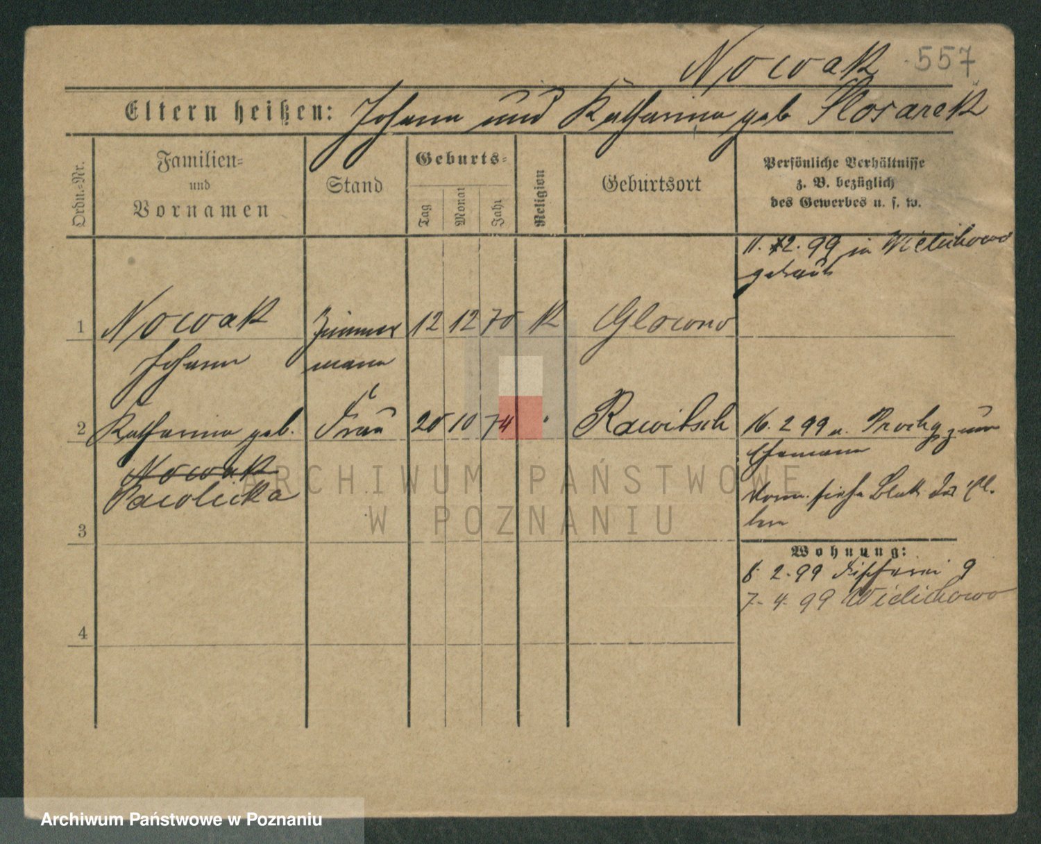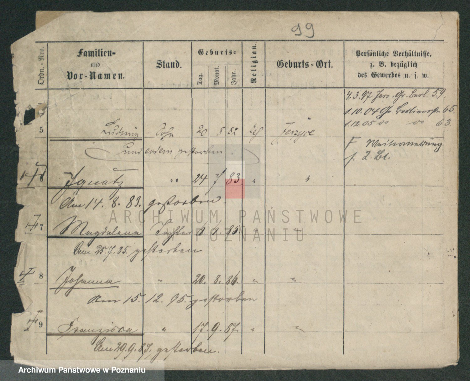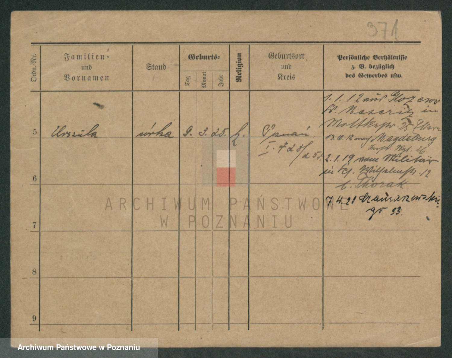 Podgląd karty osobowej dostępny jest po kliknięciu na nazwisko lub ikonkę karty. Można dokonywać powiększenia (ikony na górze) lub przechodzić między kolejnymi skanami (strzałki po bokach).