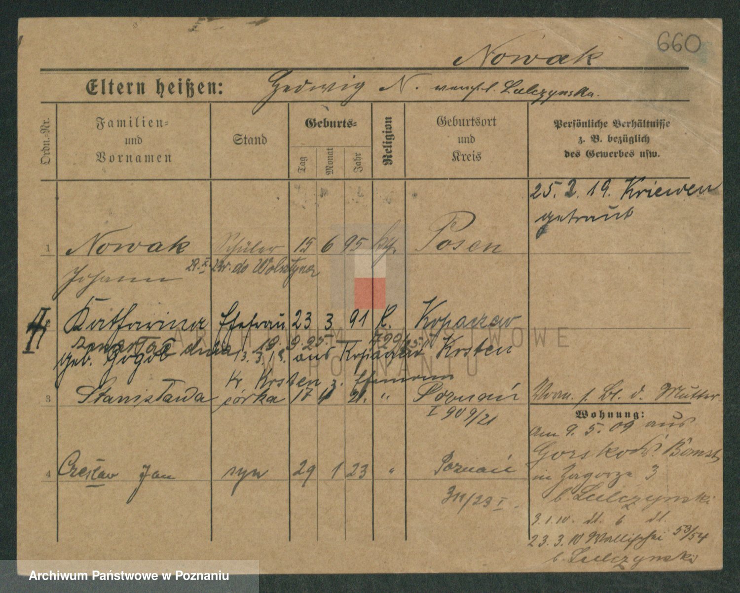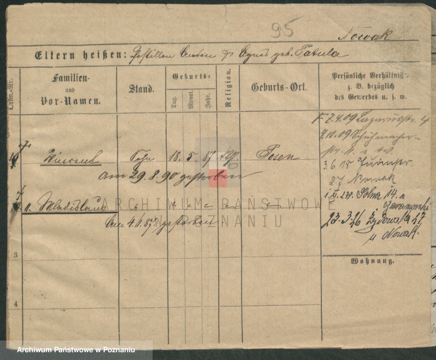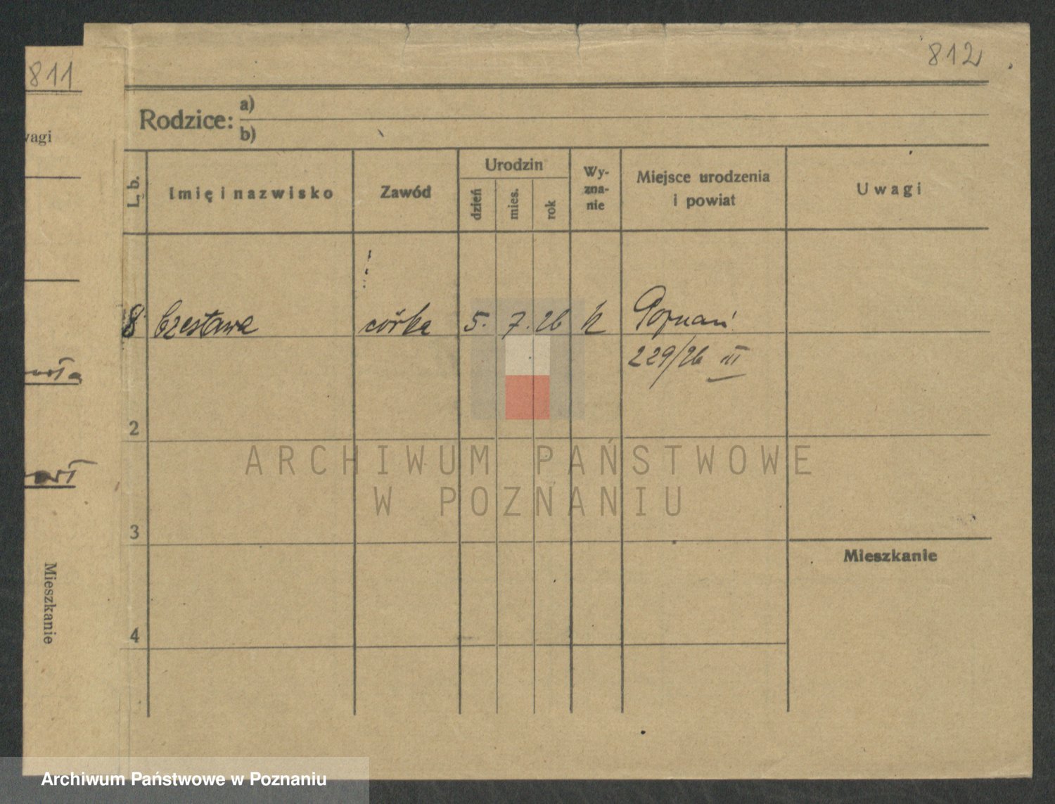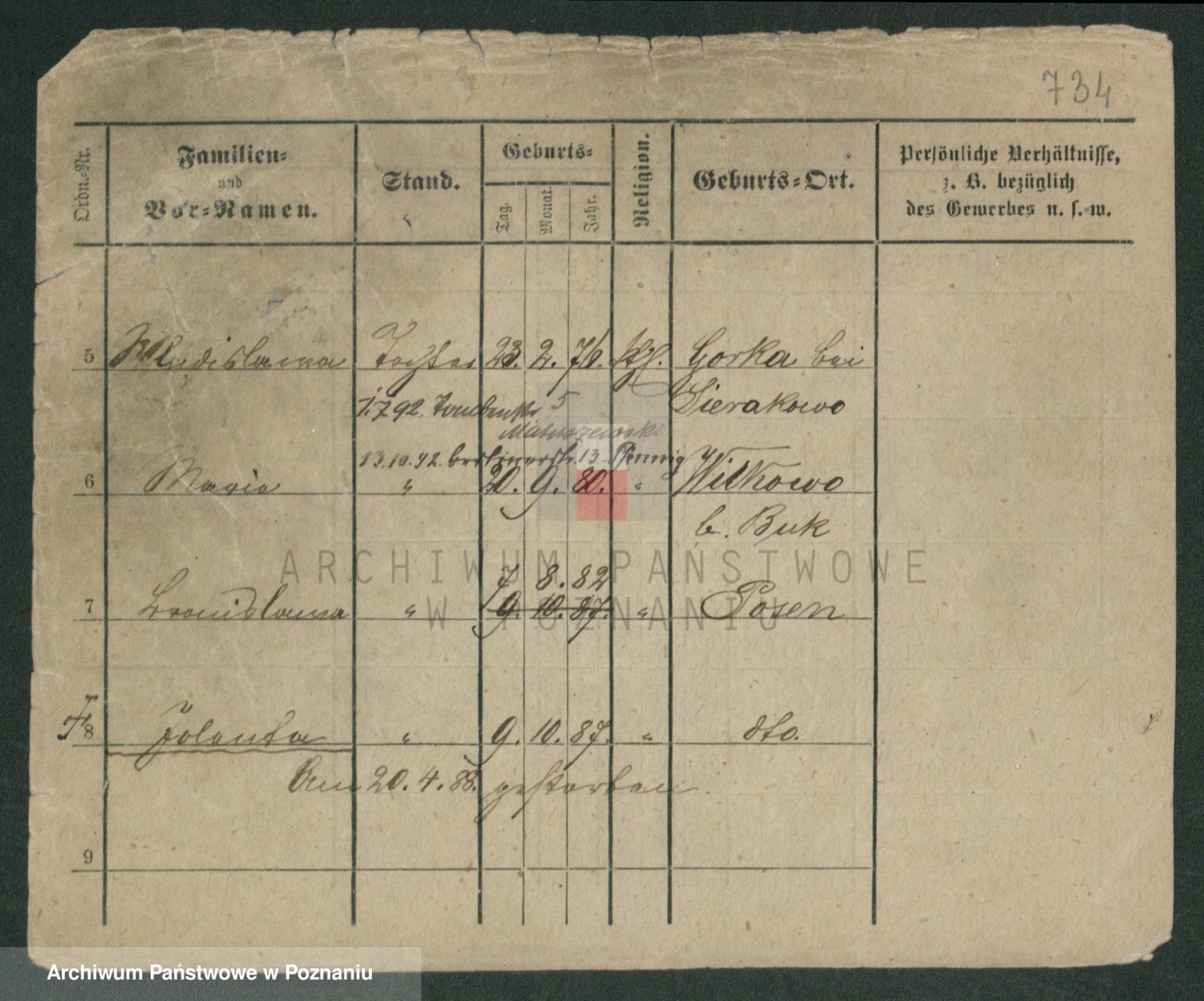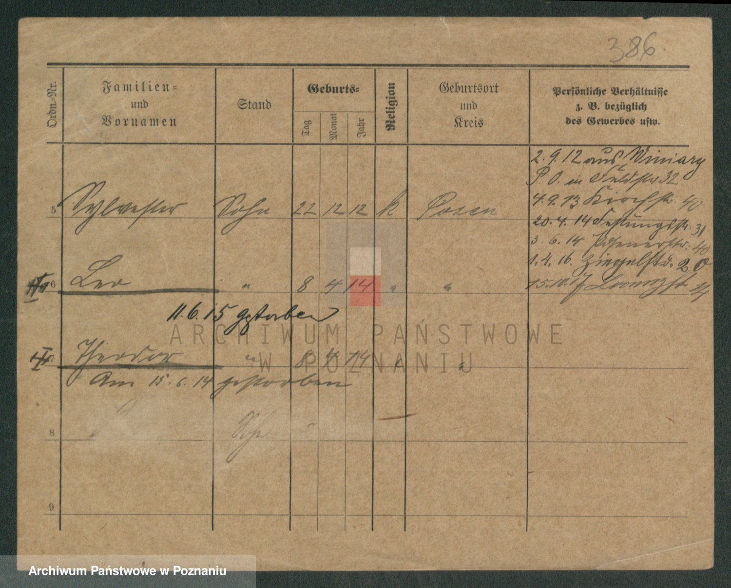 Podgląd karty osobowej dostępny jest po kliknięciu na nazwisko lub ikonkę karty. Można dokonywać powiększenia (ikony na górze) lub przechodzić między kolejnymi skanami (strzałki po bokach).