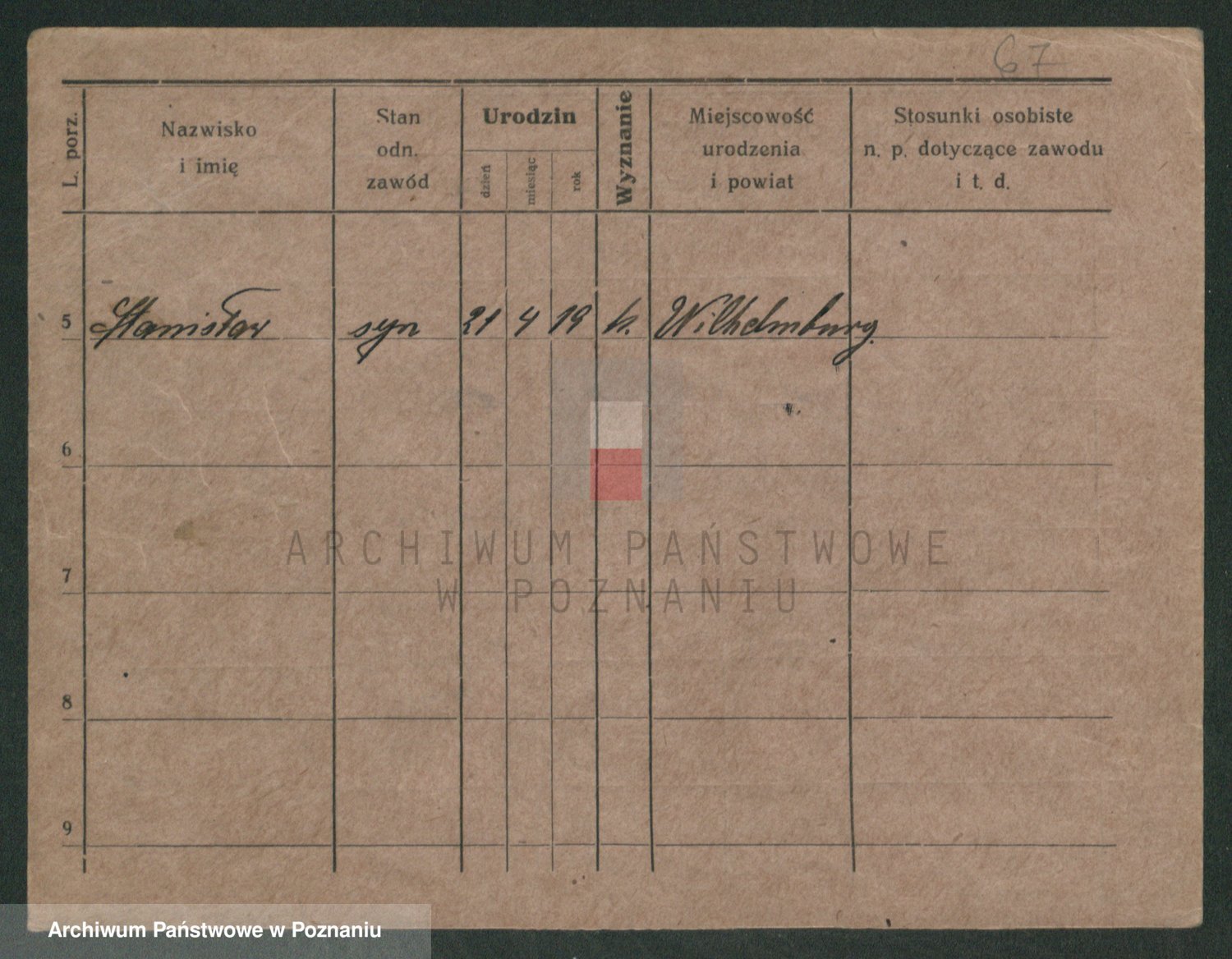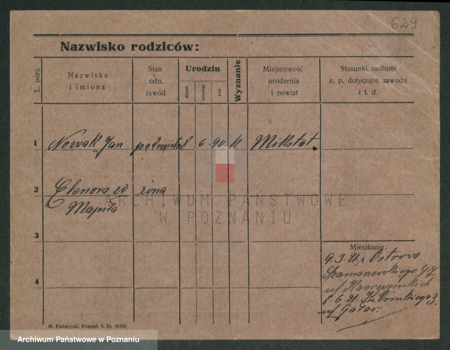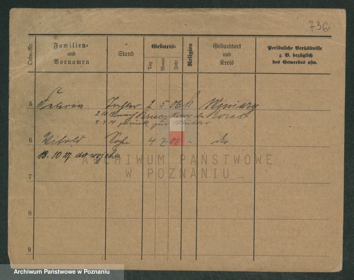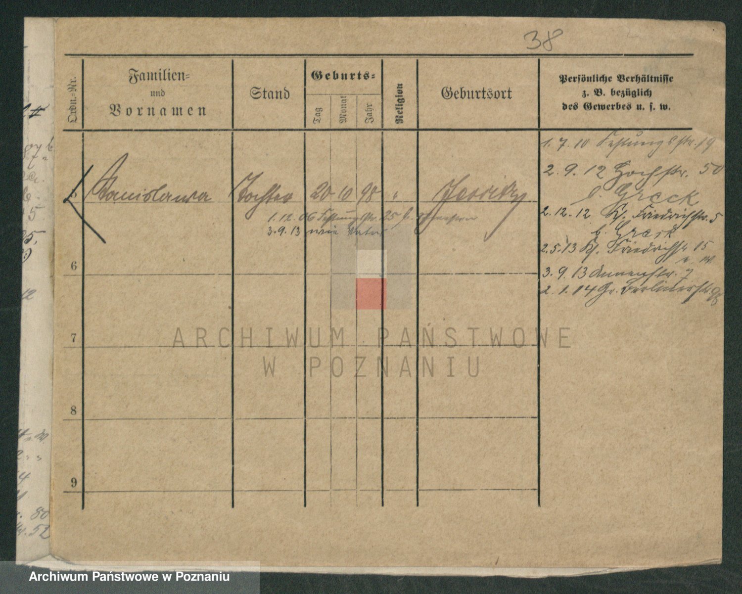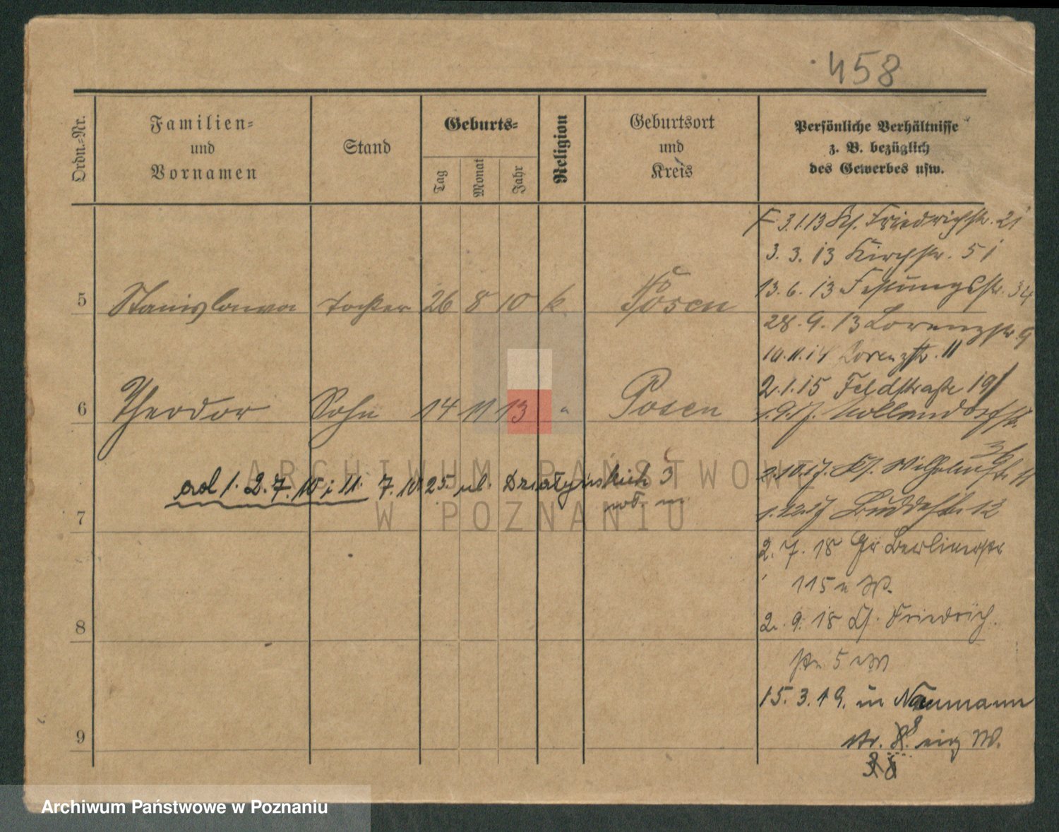 Podgląd karty osobowej dostępny jest po kliknięciu na nazwisko lub ikonkę karty. Można dokonywać powiększenia (ikony na górze) lub przechodzić między kolejnymi skanami (strzałki po bokach).