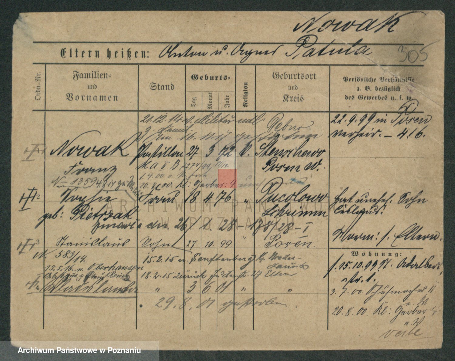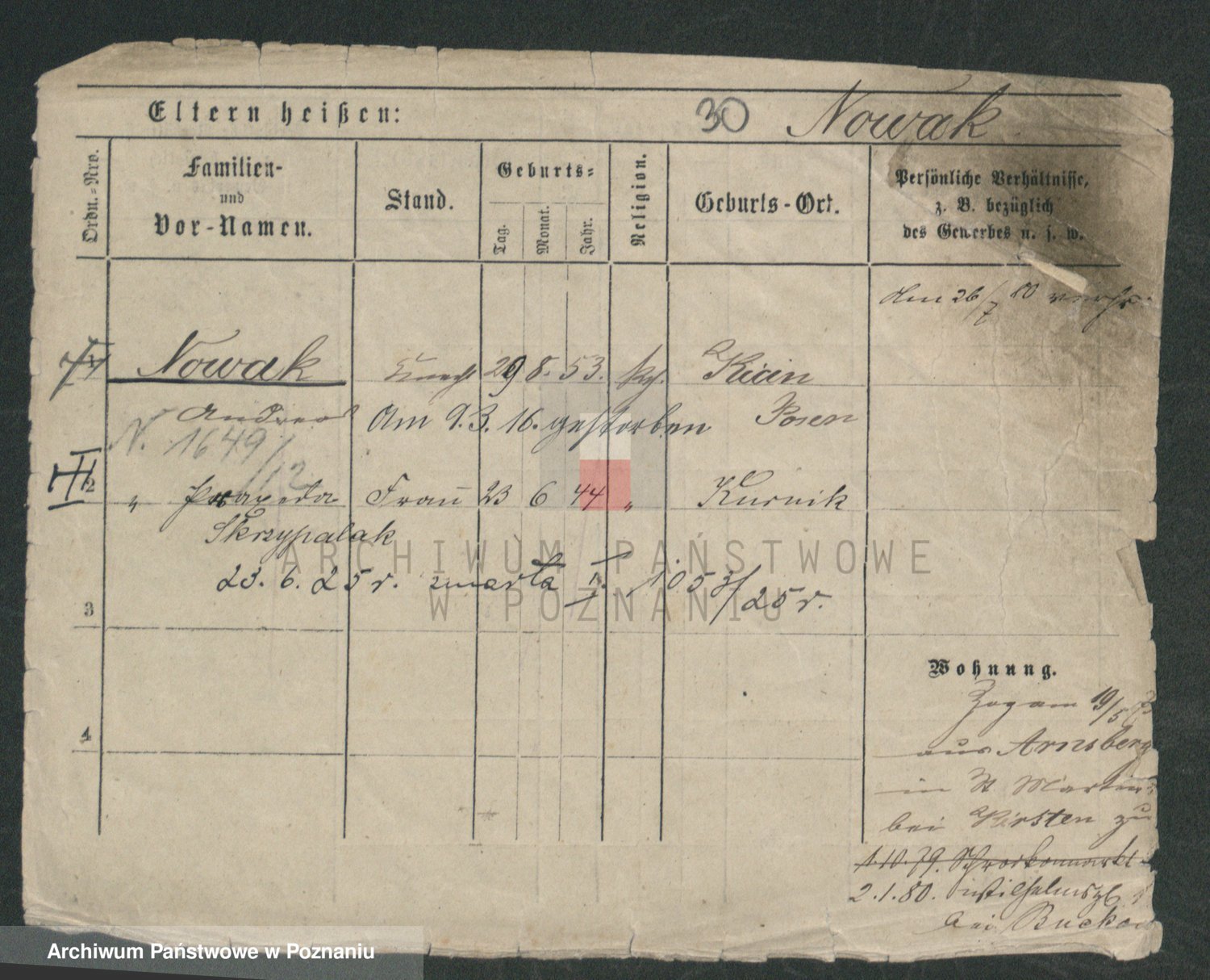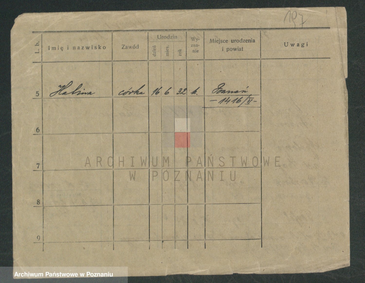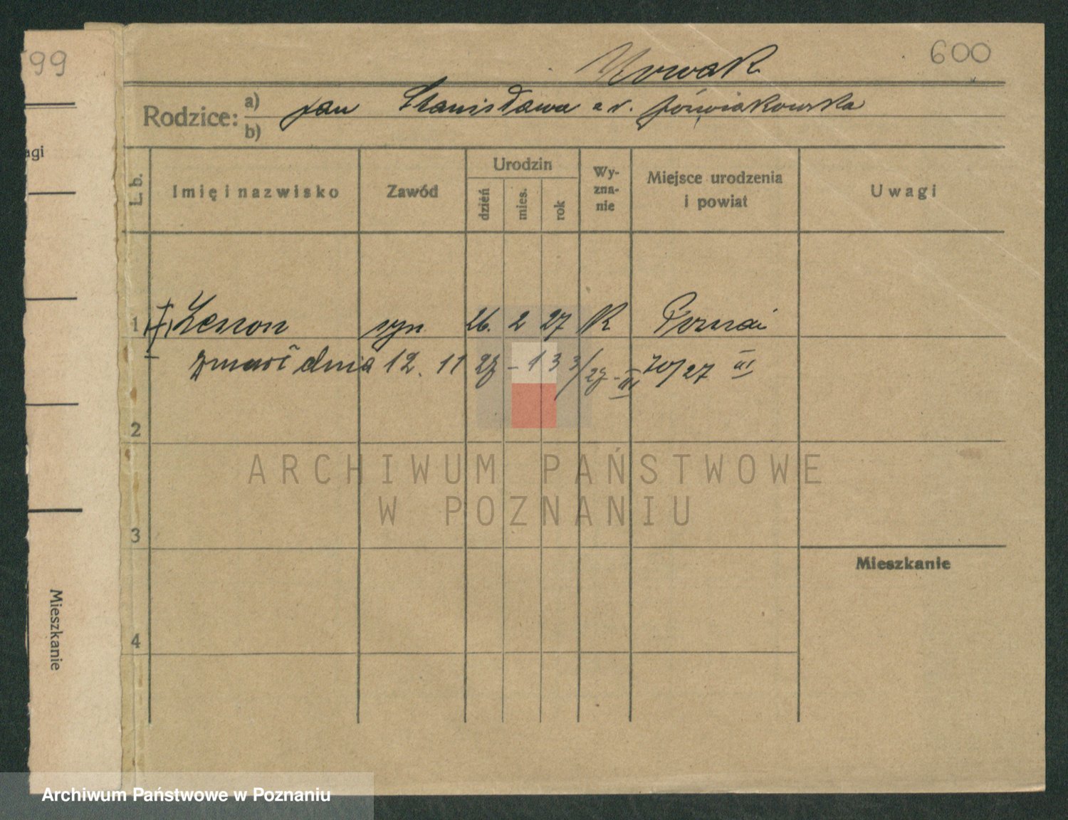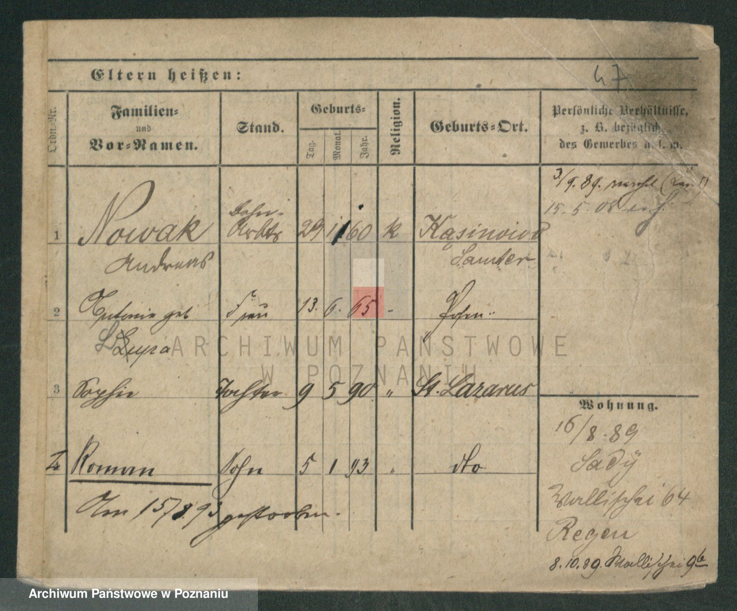 Podgląd karty osobowej dostępny jest po kliknięciu na nazwisko lub ikonkę karty. Można dokonywać powiększenia (ikony na górze) lub przechodzić między kolejnymi skanami (strzałki po bokach).