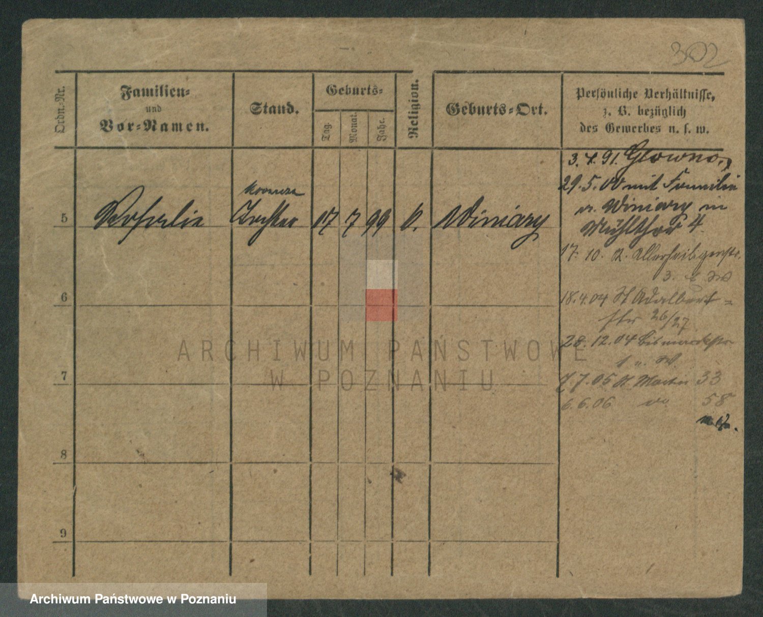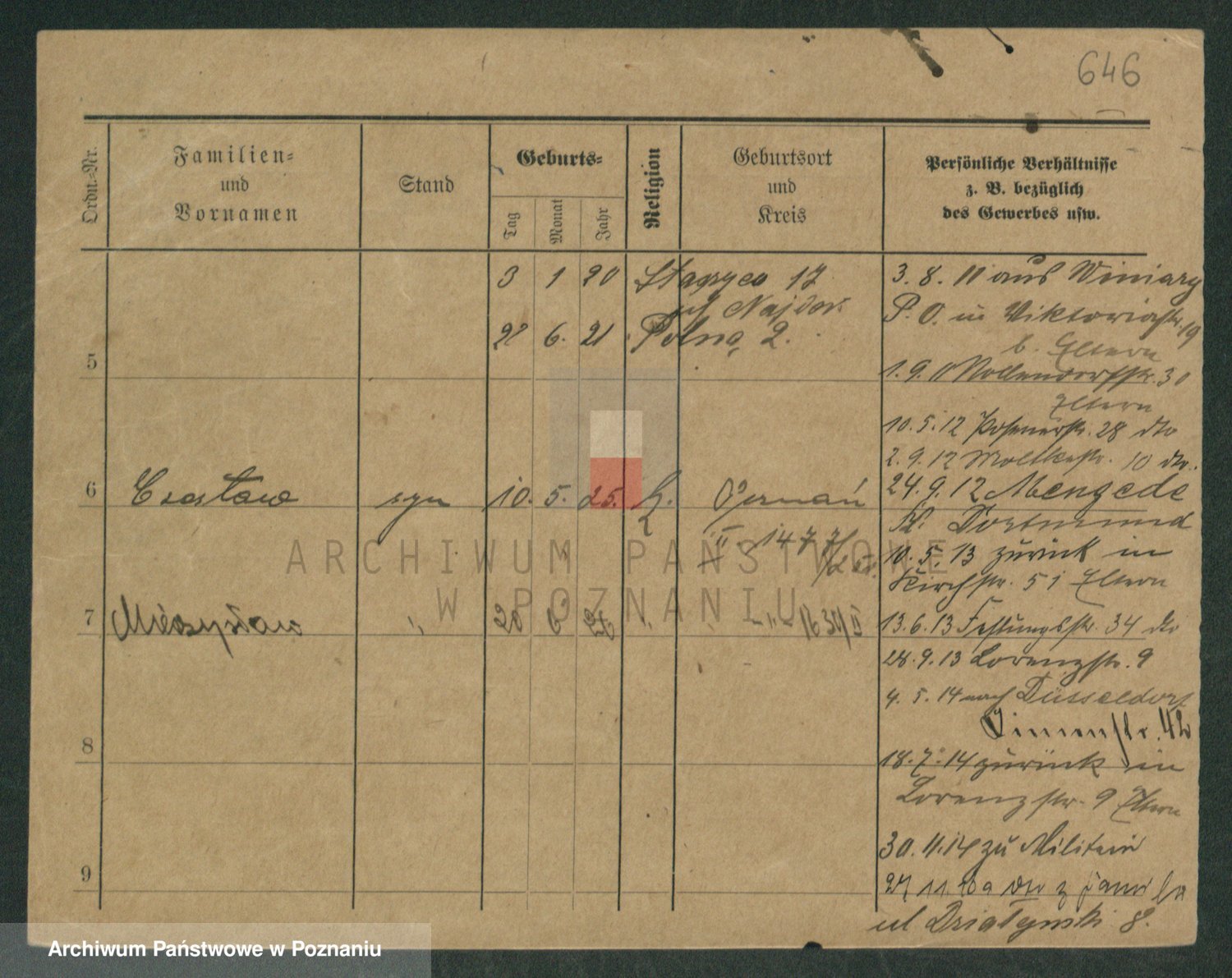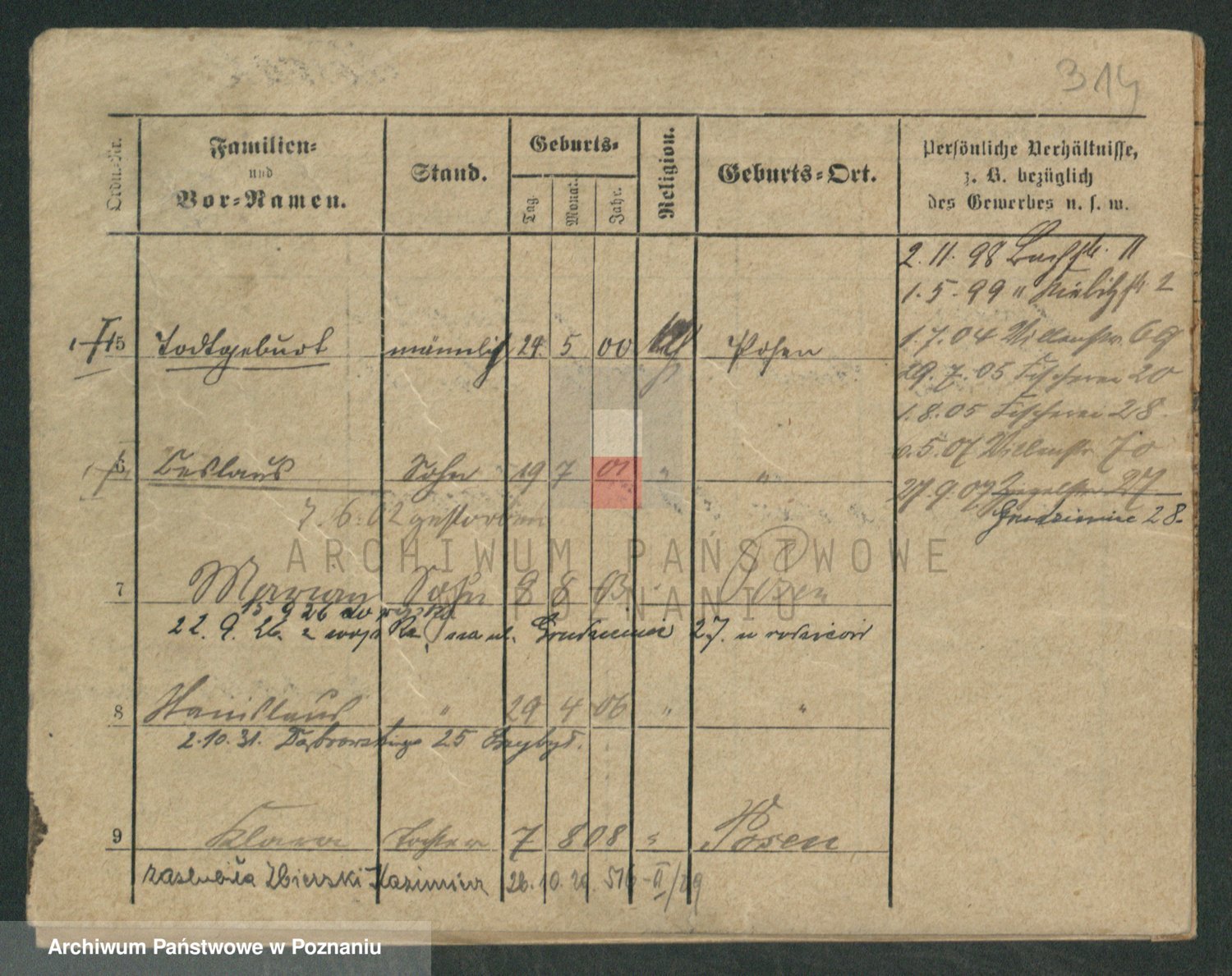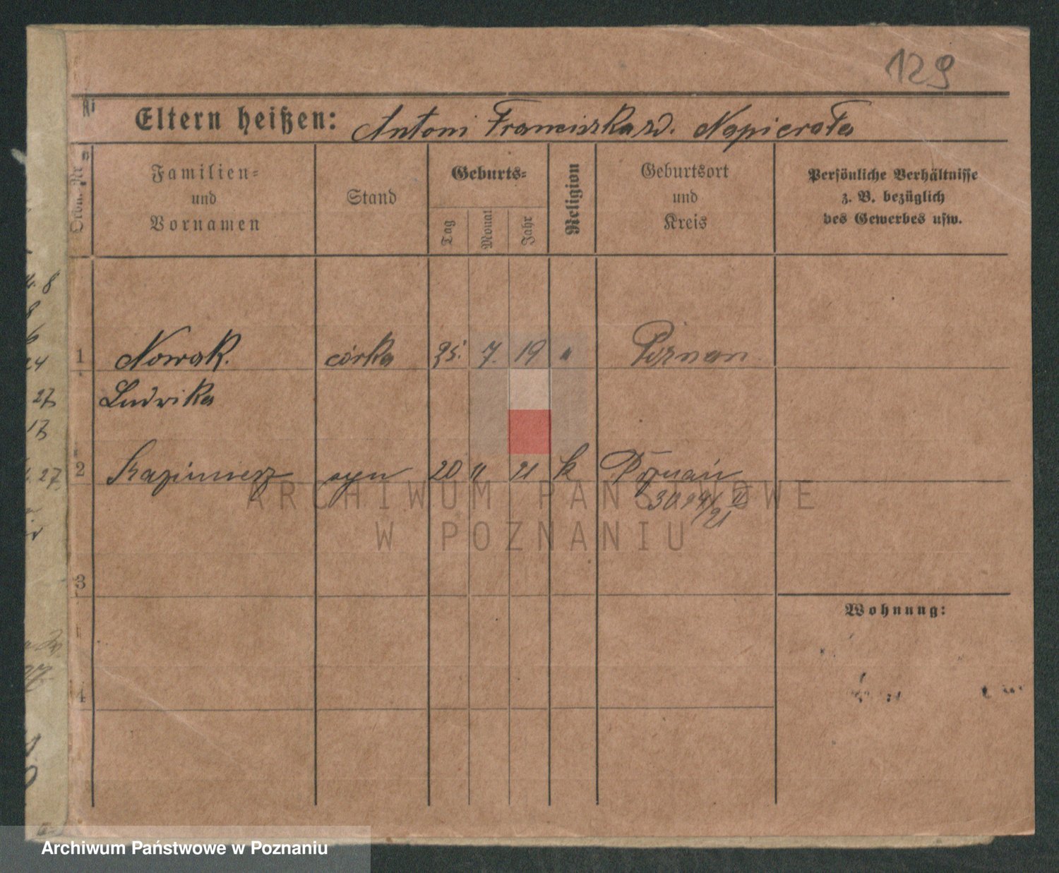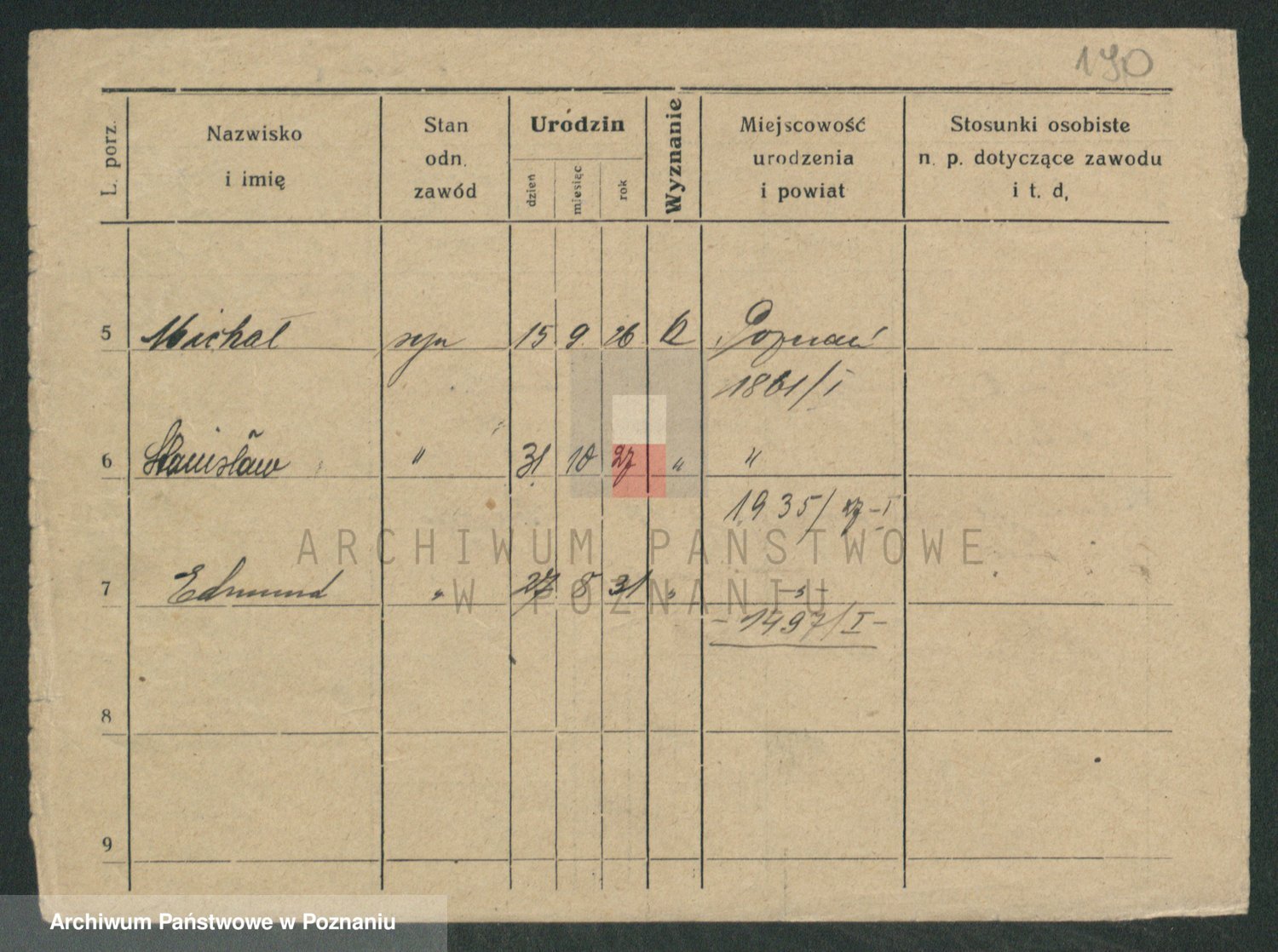 Podgląd karty osobowej dostępny jest po kliknięciu na nazwisko lub ikonkę karty. Można dokonywać powiększenia (ikony na górze) lub przechodzić między kolejnymi skanami (strzałki po bokach).