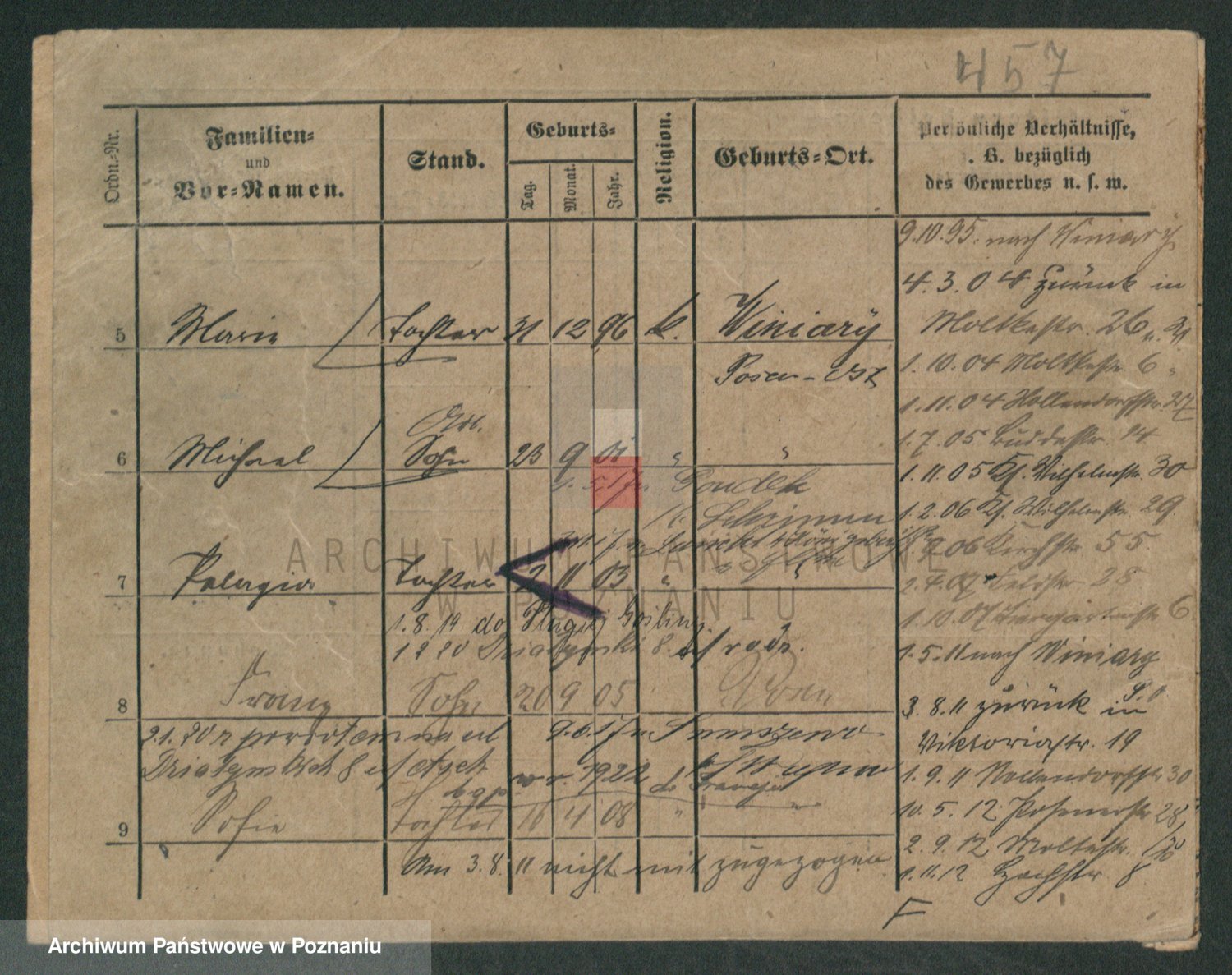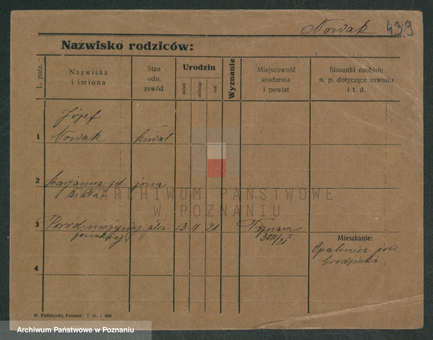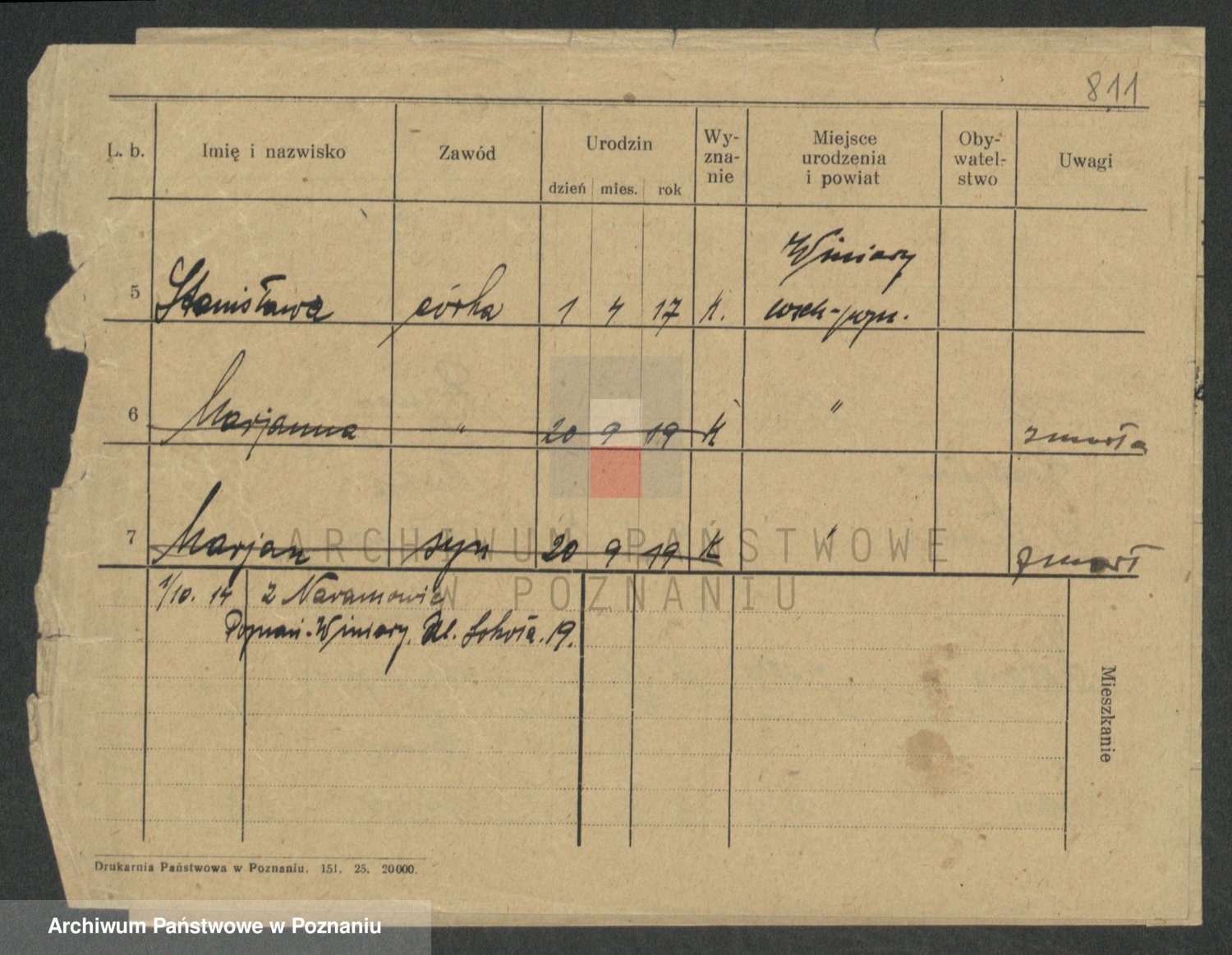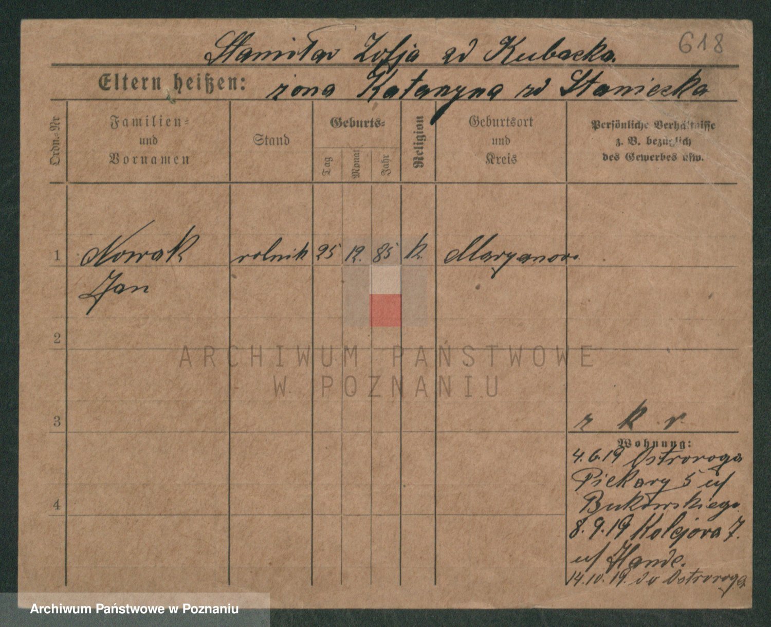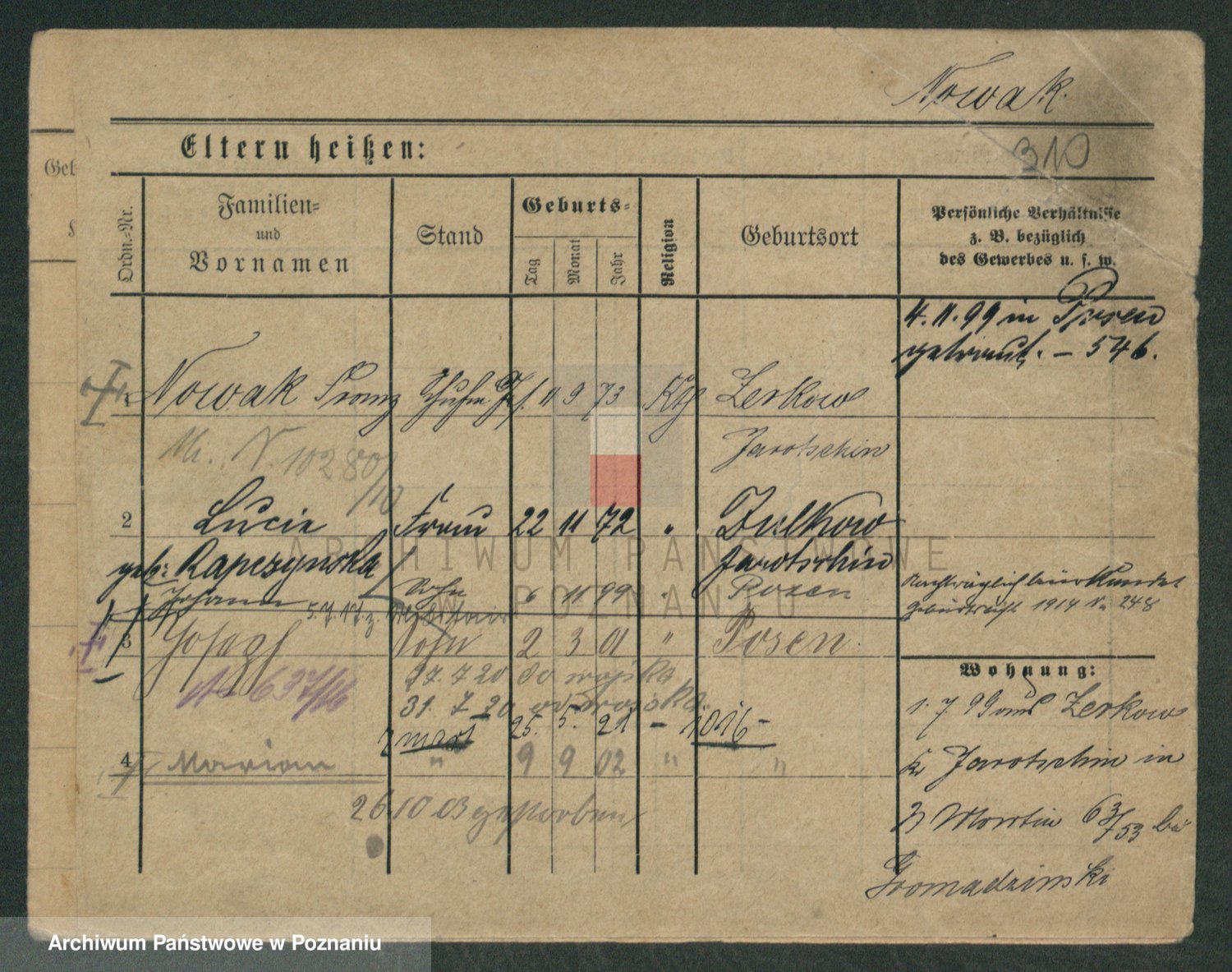Podgląd karty osobowej dostępny jest po kliknięciu na nazwisko lub ikonkę karty. Można dokonywać powiększenia (ikony na górze) lub przechodzić między kolejnymi skanami (strzałki po bokach).