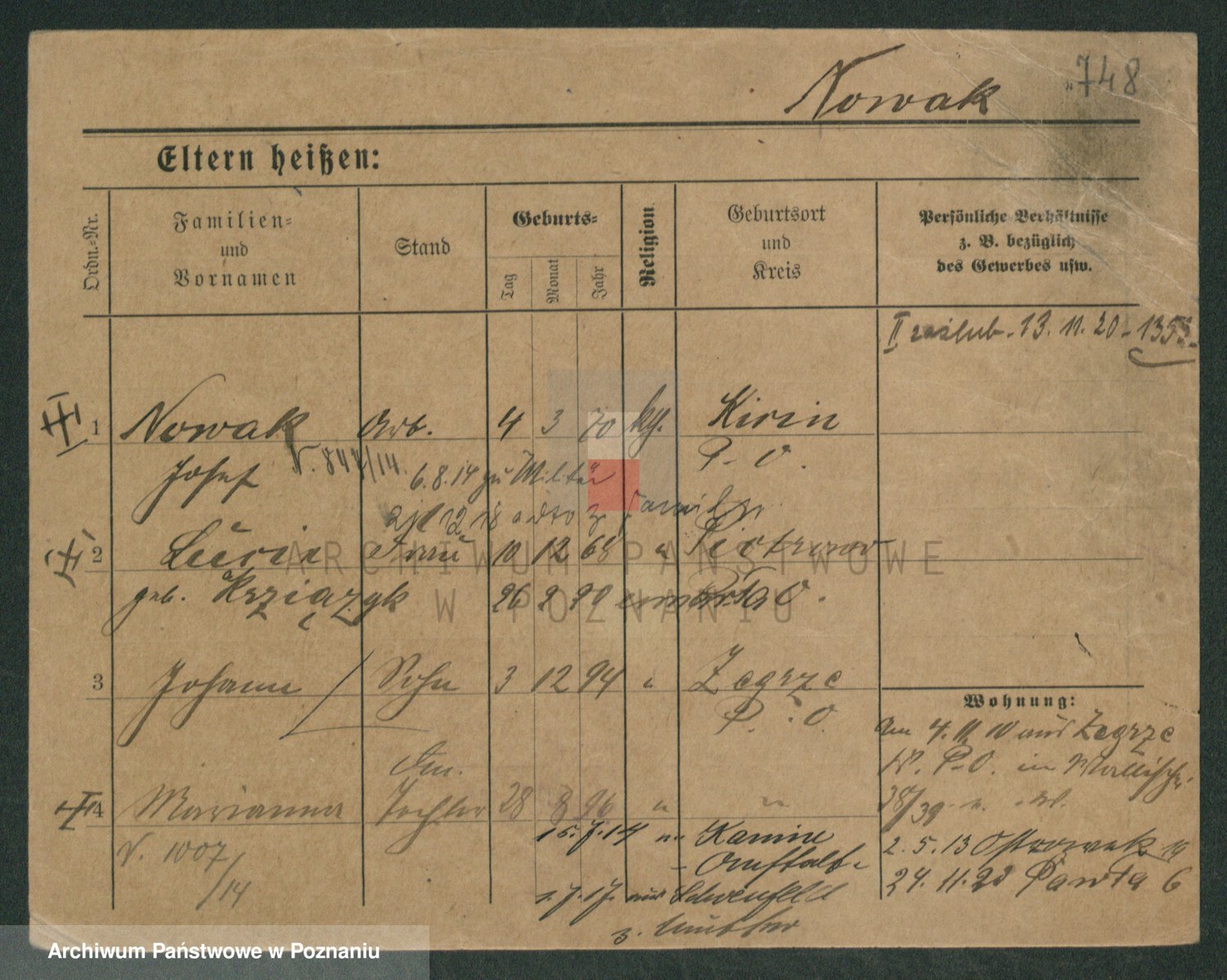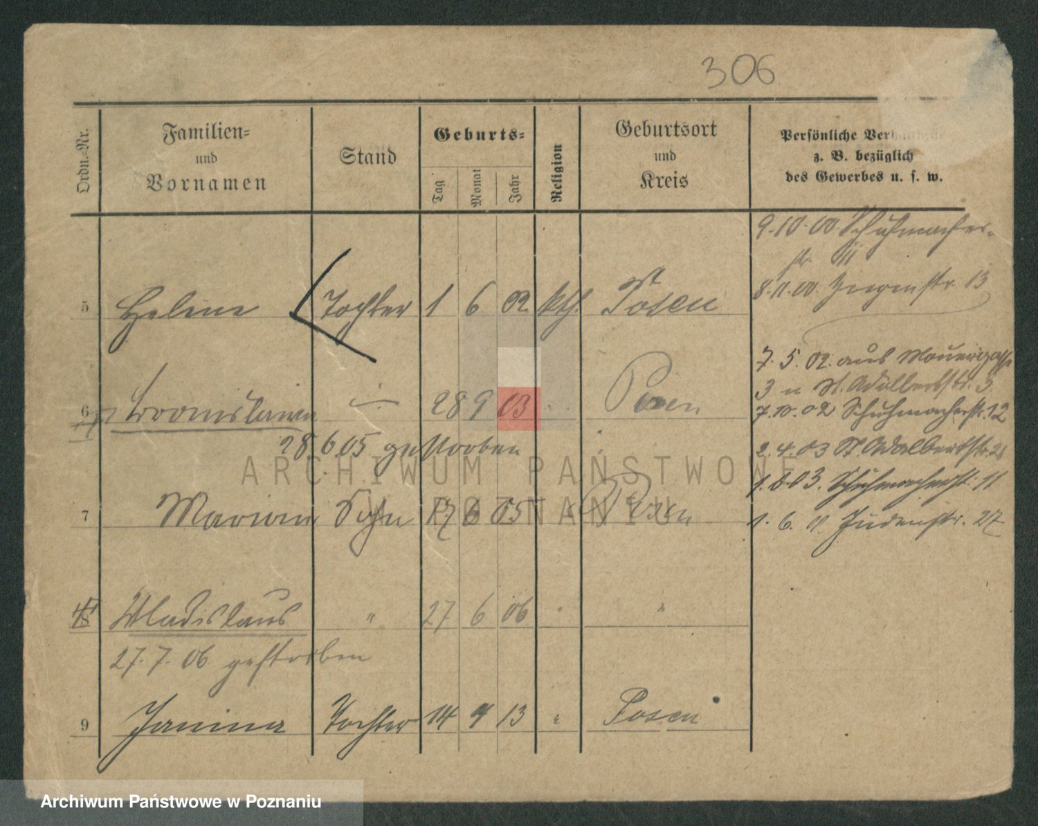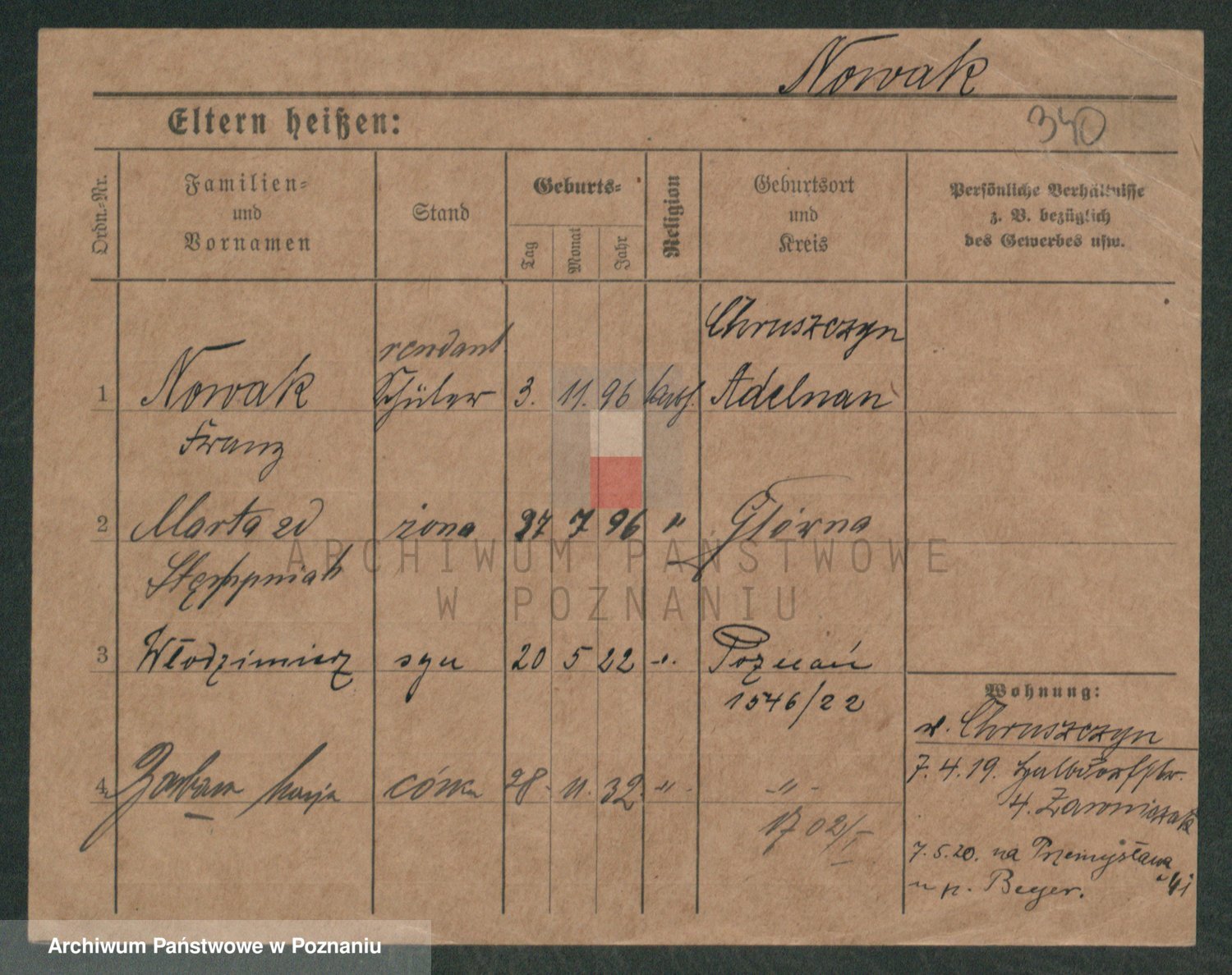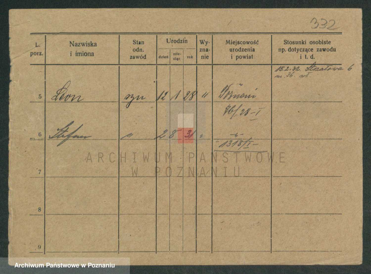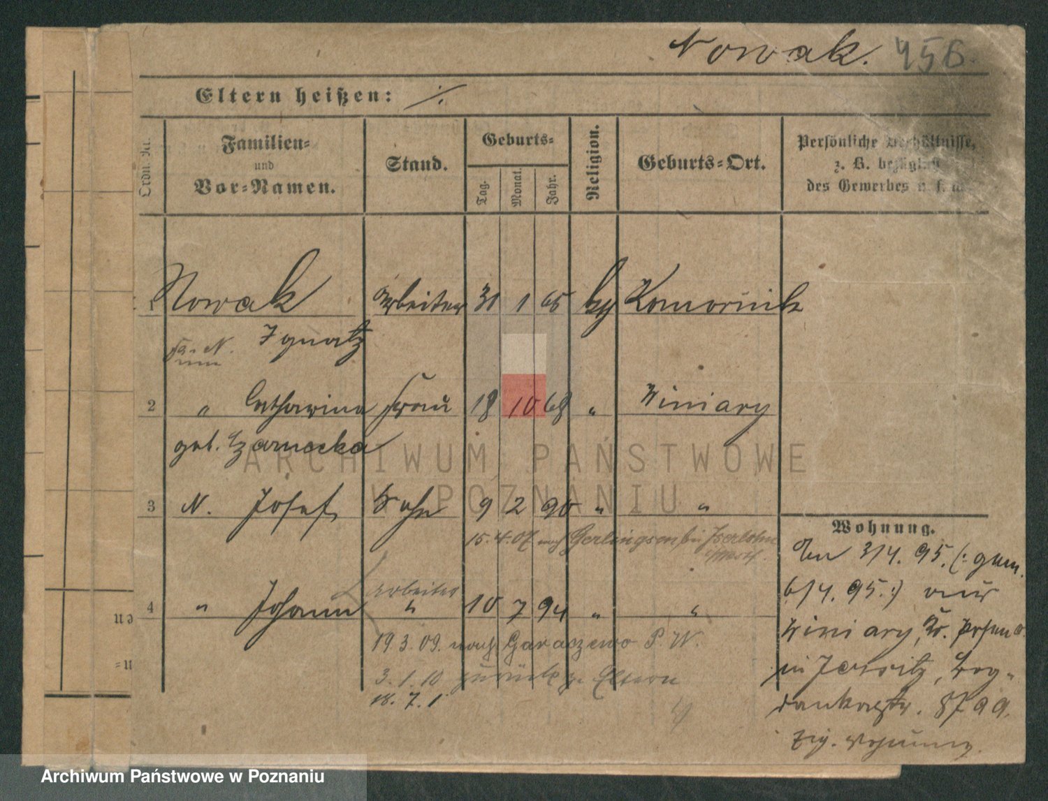 Podgląd karty osobowej dostępny jest po kliknięciu na nazwisko lub ikonkę karty. Można dokonywać powiększenia (ikony na górze) lub przechodzić między kolejnymi skanami (strzałki po bokach).