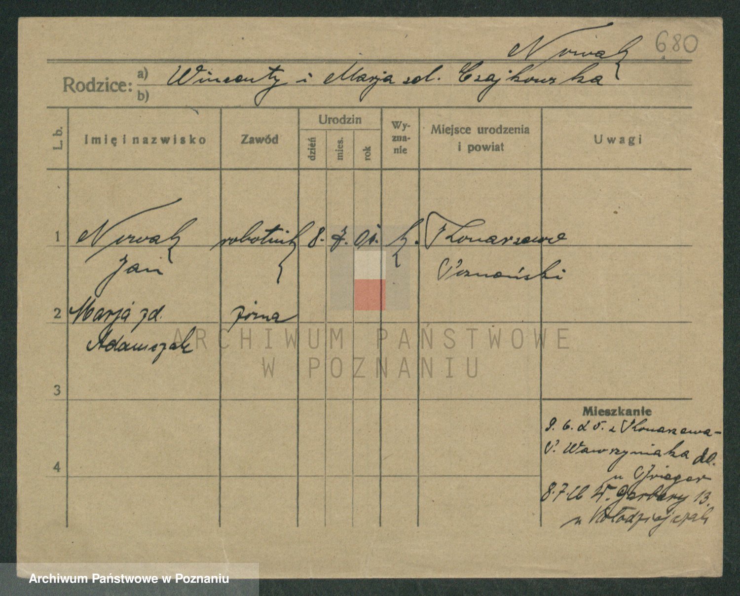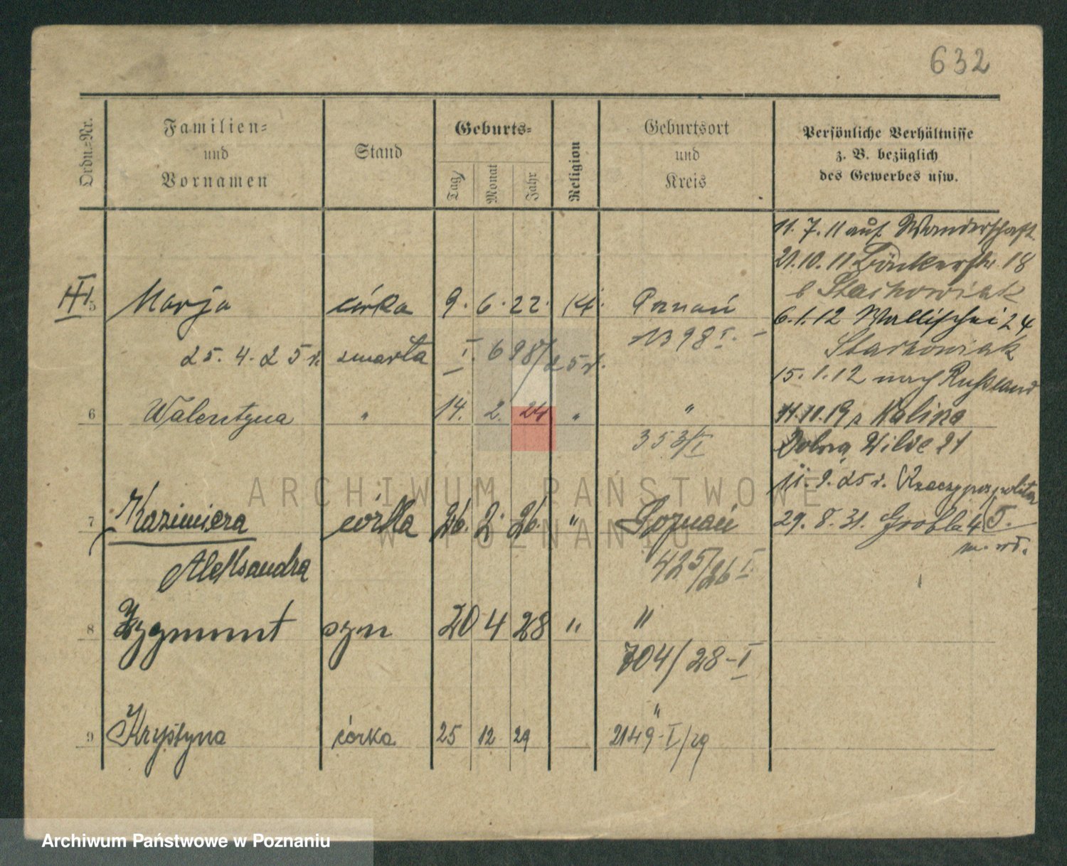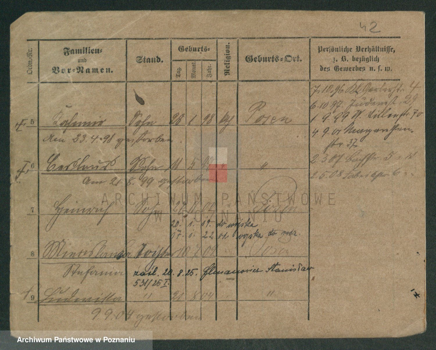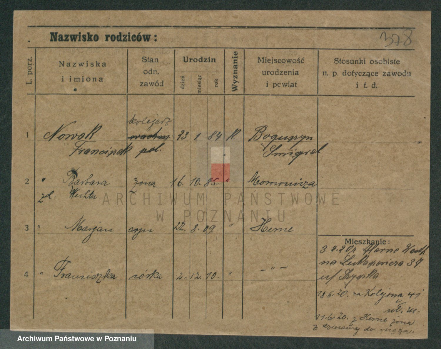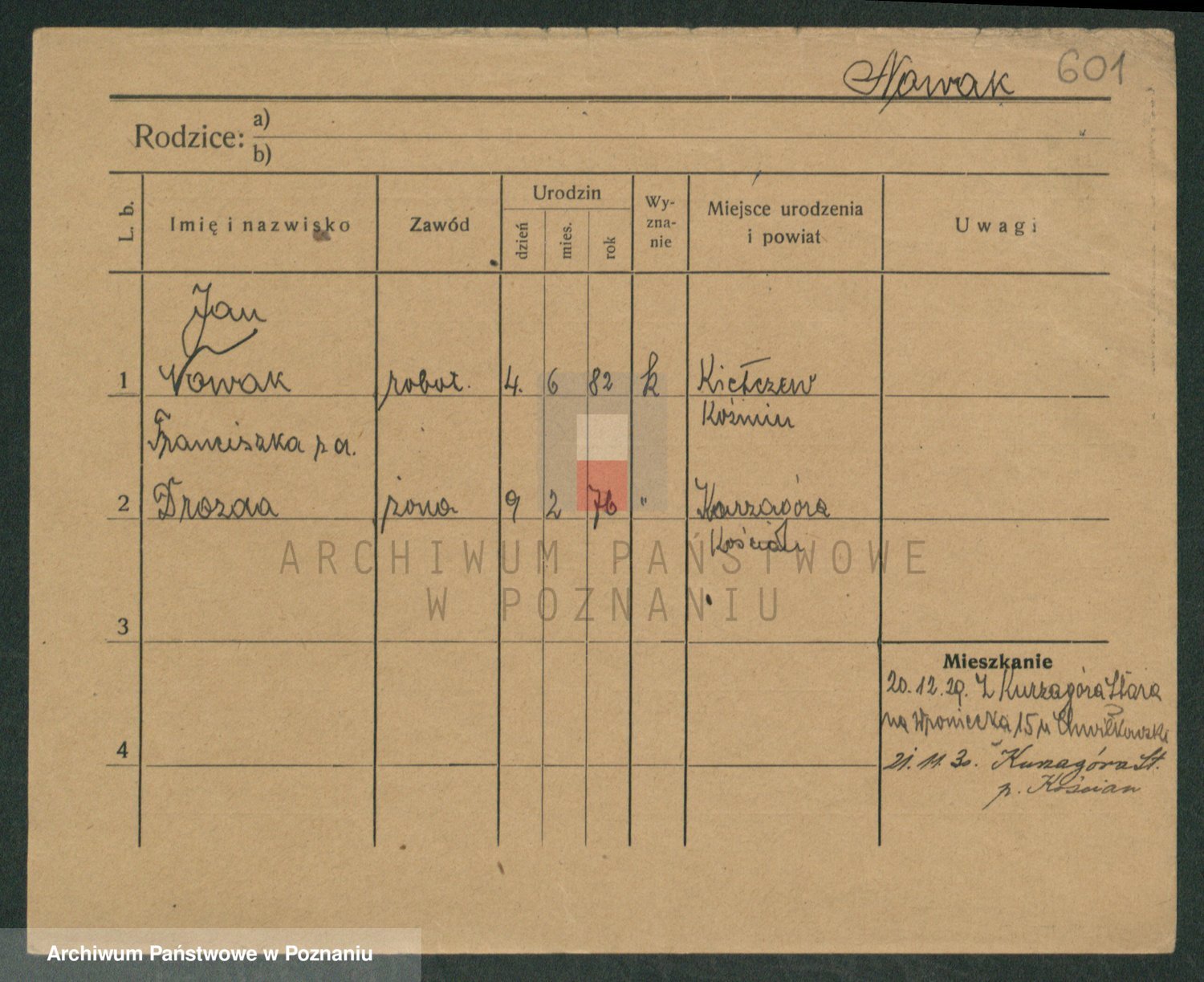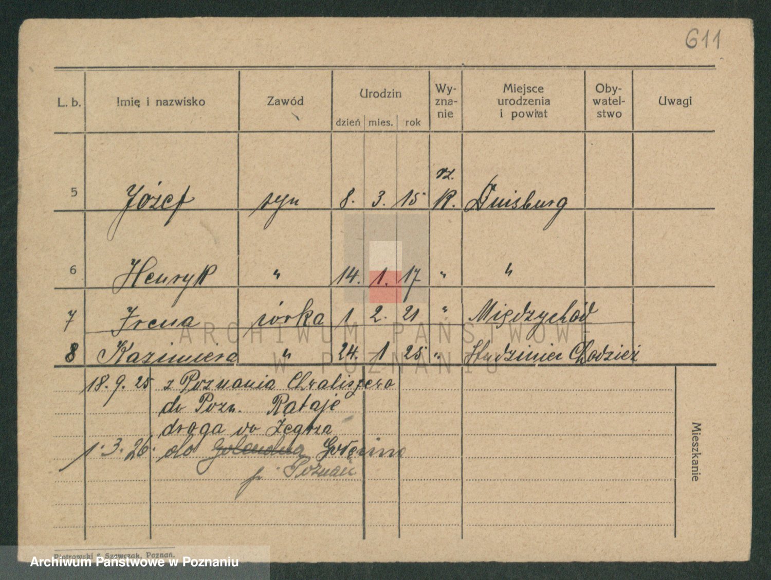 Podgląd karty osobowej dostępny jest po kliknięciu na nazwisko lub ikonkę karty. Można dokonywać powiększenia (ikony na górze) lub przechodzić między kolejnymi skanami (strzałki po bokach).