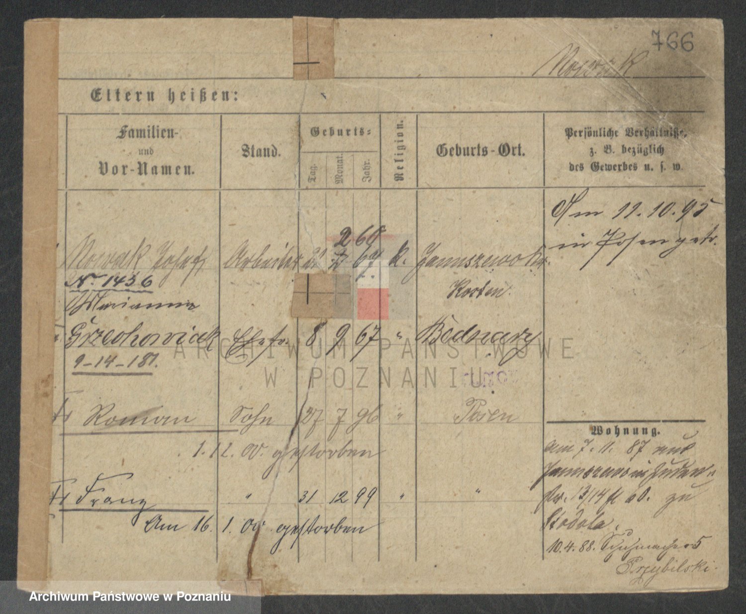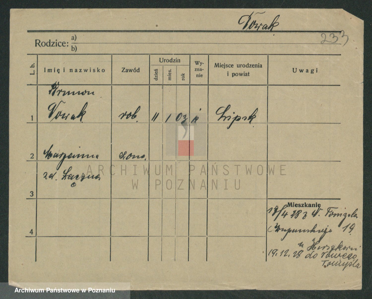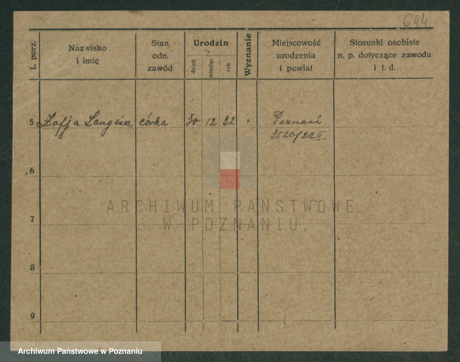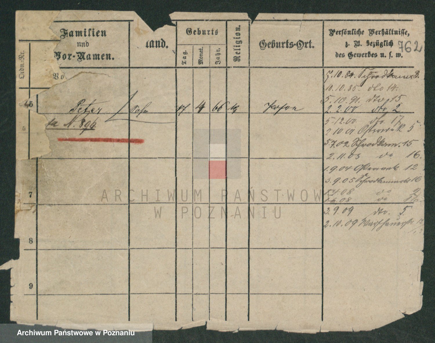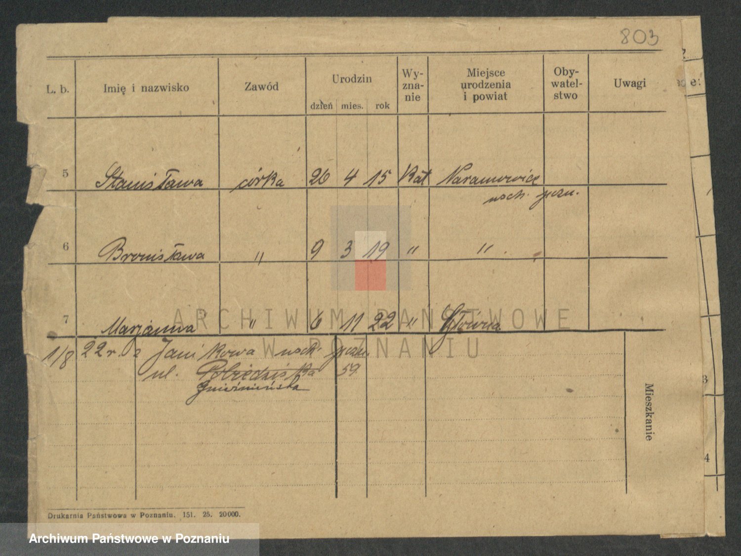Podgląd karty osobowej dostępny jest po kliknięciu na nazwisko lub ikonkę karty. Można dokonywać powiększenia (ikony na górze) lub przechodzić między kolejnymi skanami (strzałki po bokach).