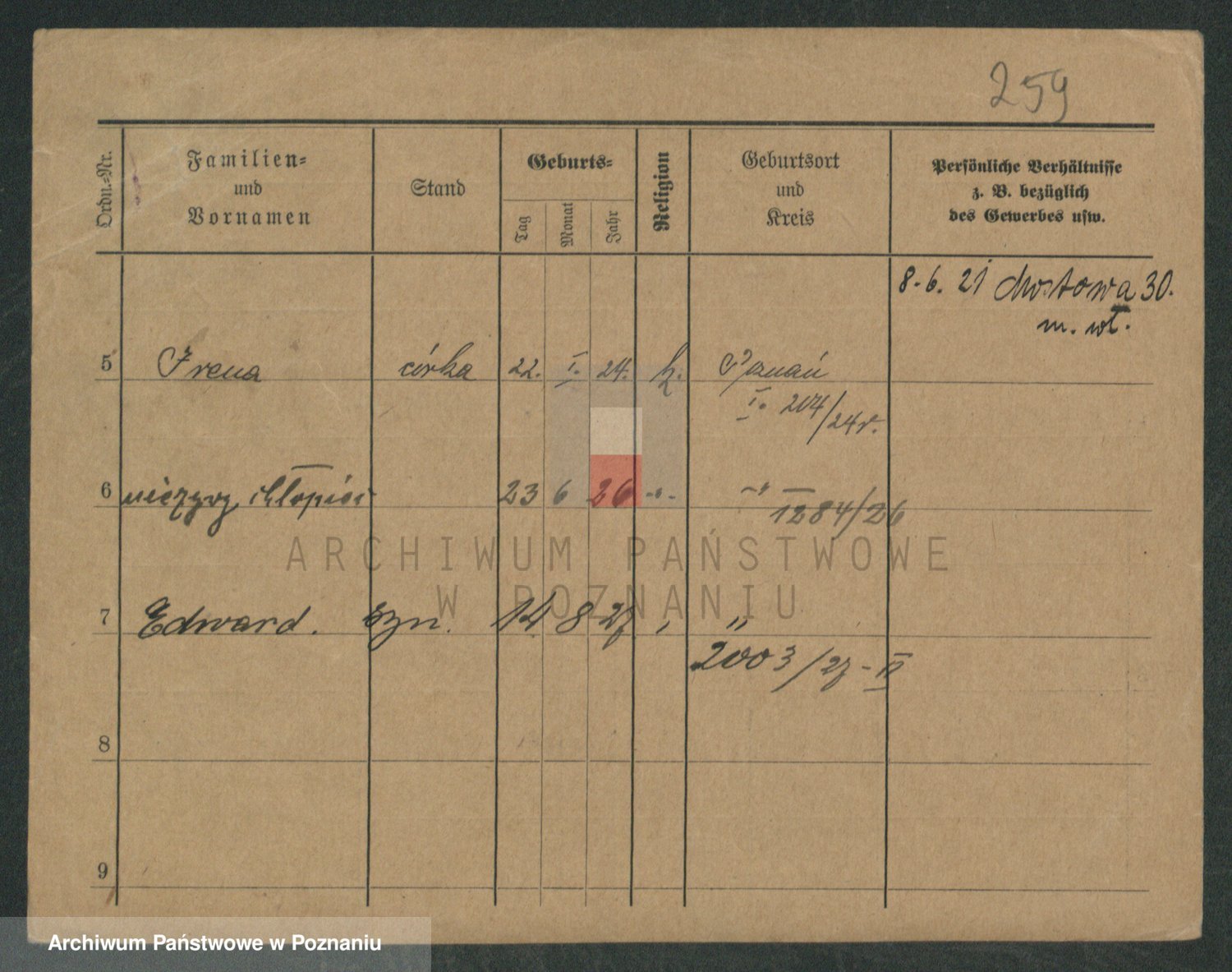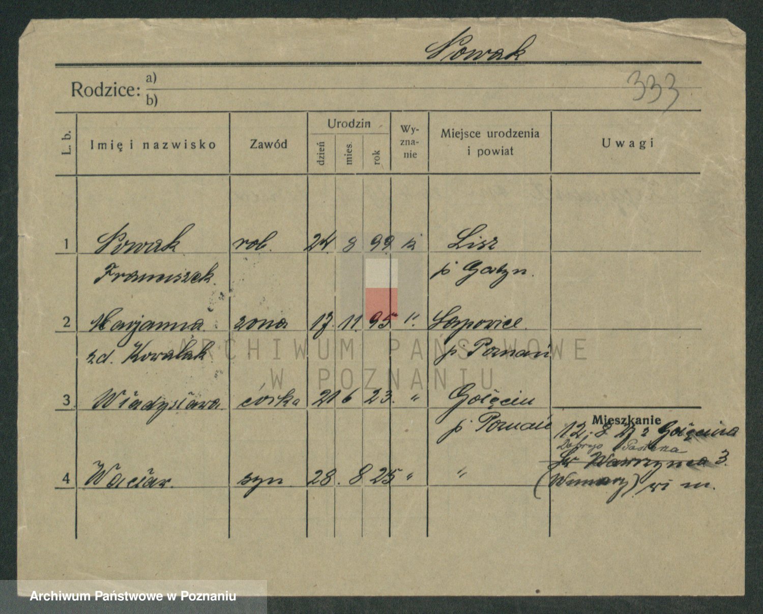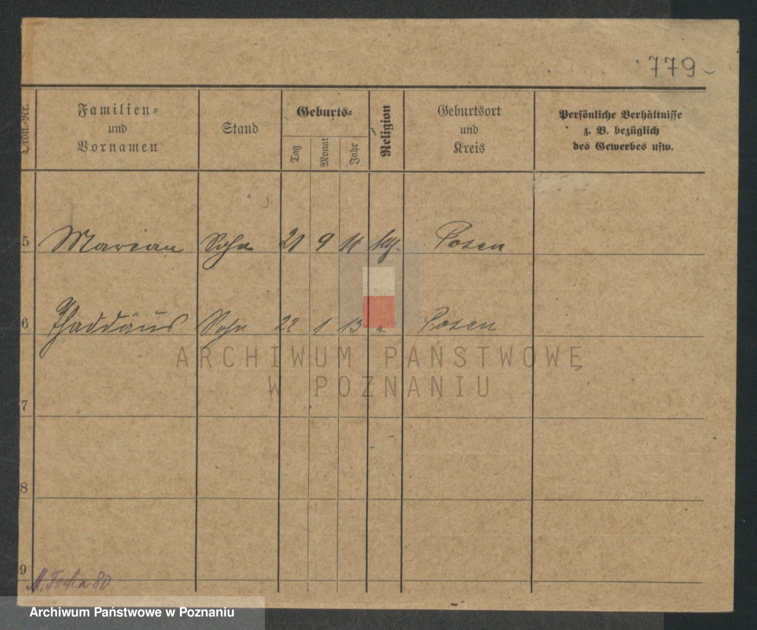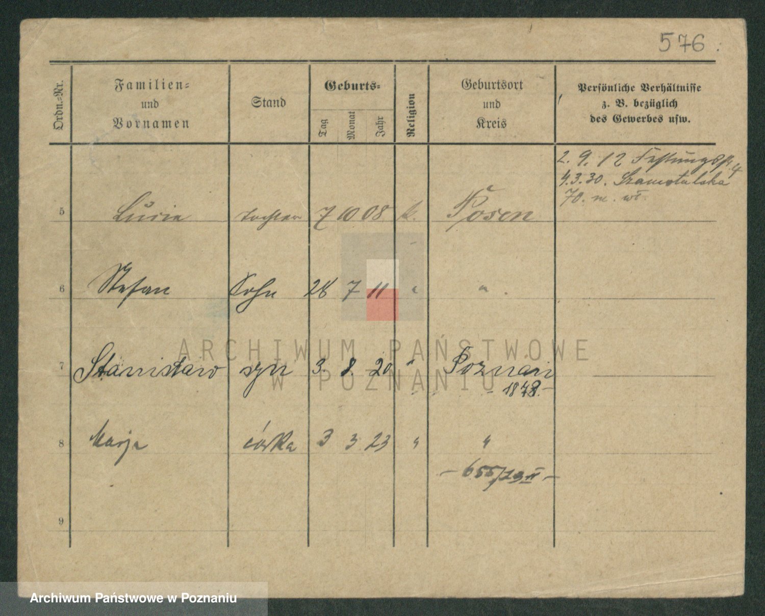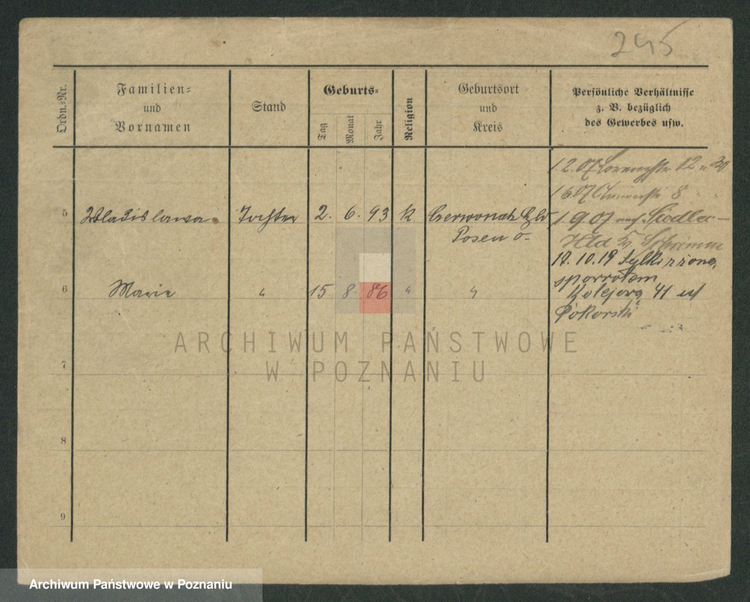Podgląd karty osobowej dostępny jest po kliknięciu na nazwisko lub ikonkę karty. Można dokonywać powiększenia (ikony na górze) lub przechodzić między kolejnymi skanami (strzałki po bokach).