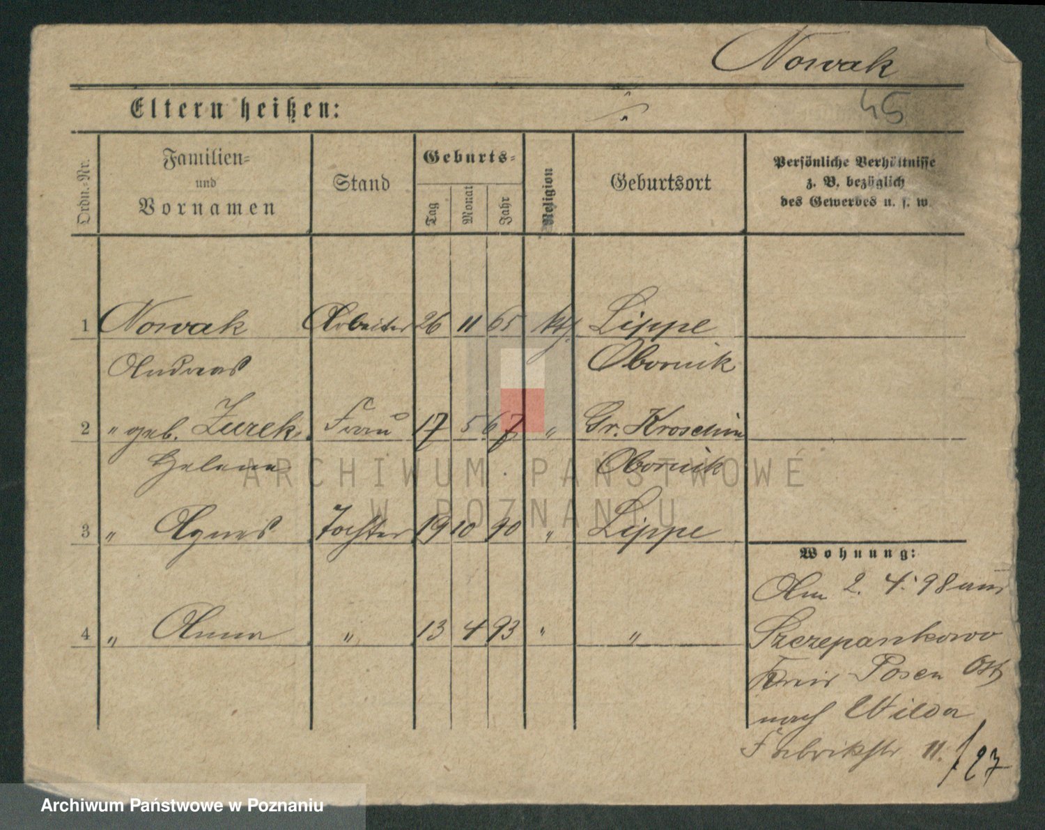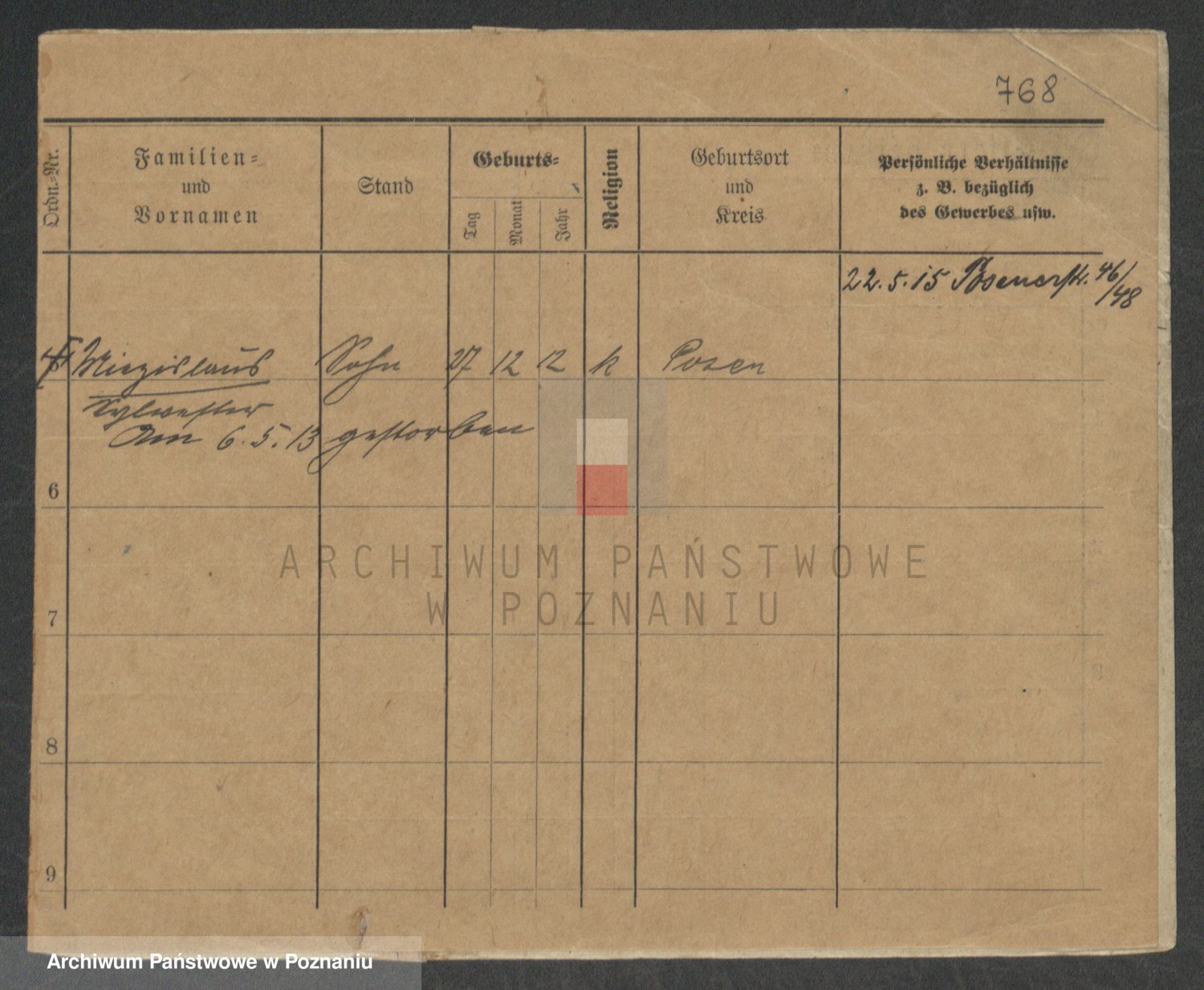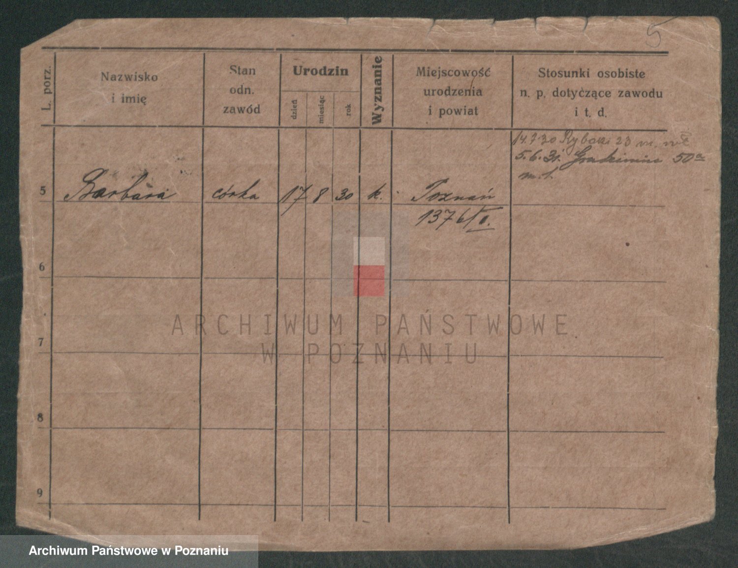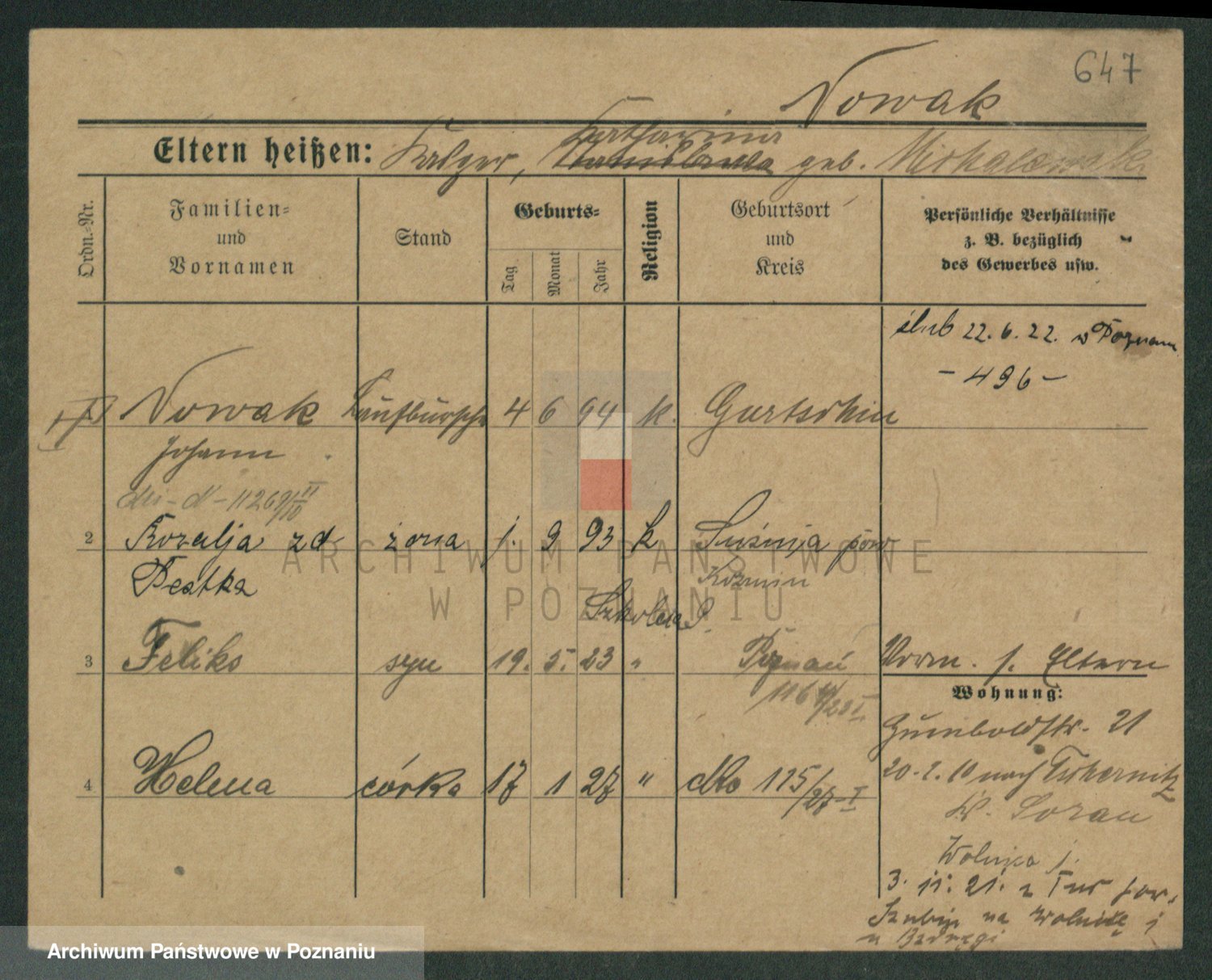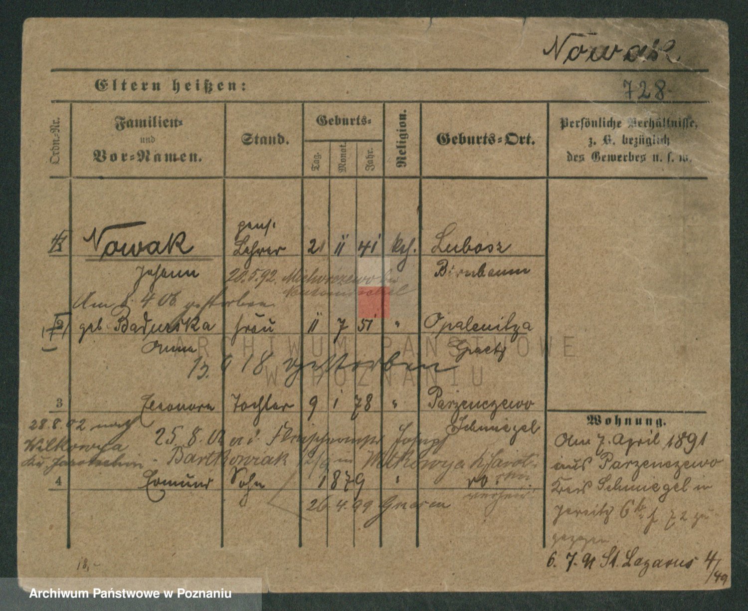 Podgląd karty osobowej dostępny jest po kliknięciu na nazwisko lub ikonkę karty. Można dokonywać powiększenia (ikony na górze) lub przechodzić między kolejnymi skanami (strzałki po bokach).