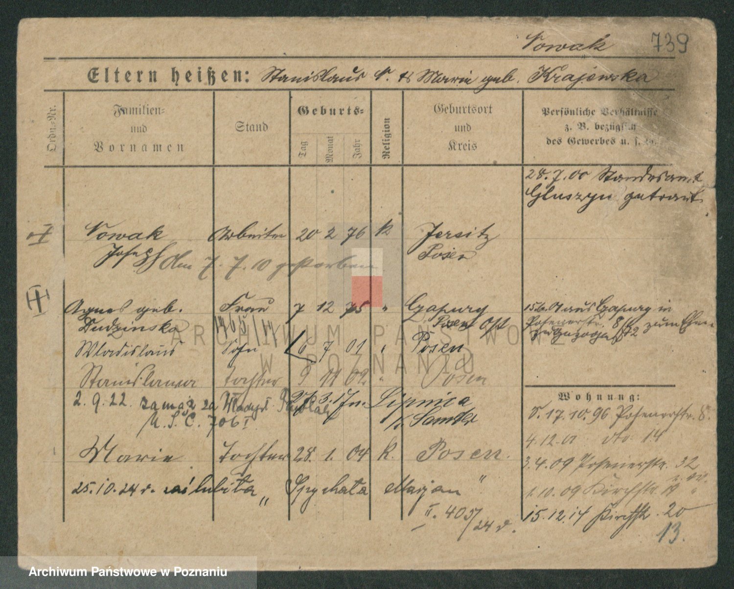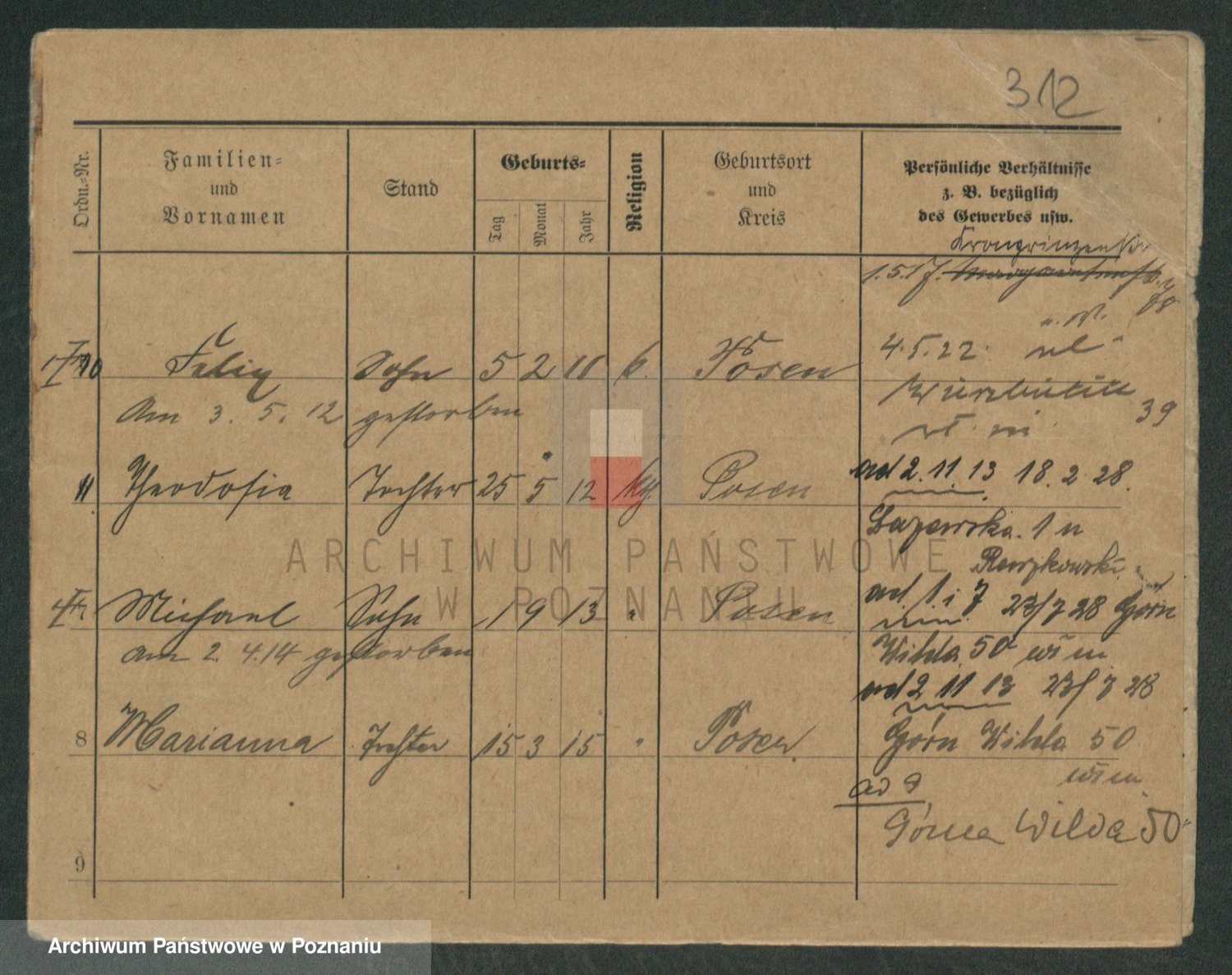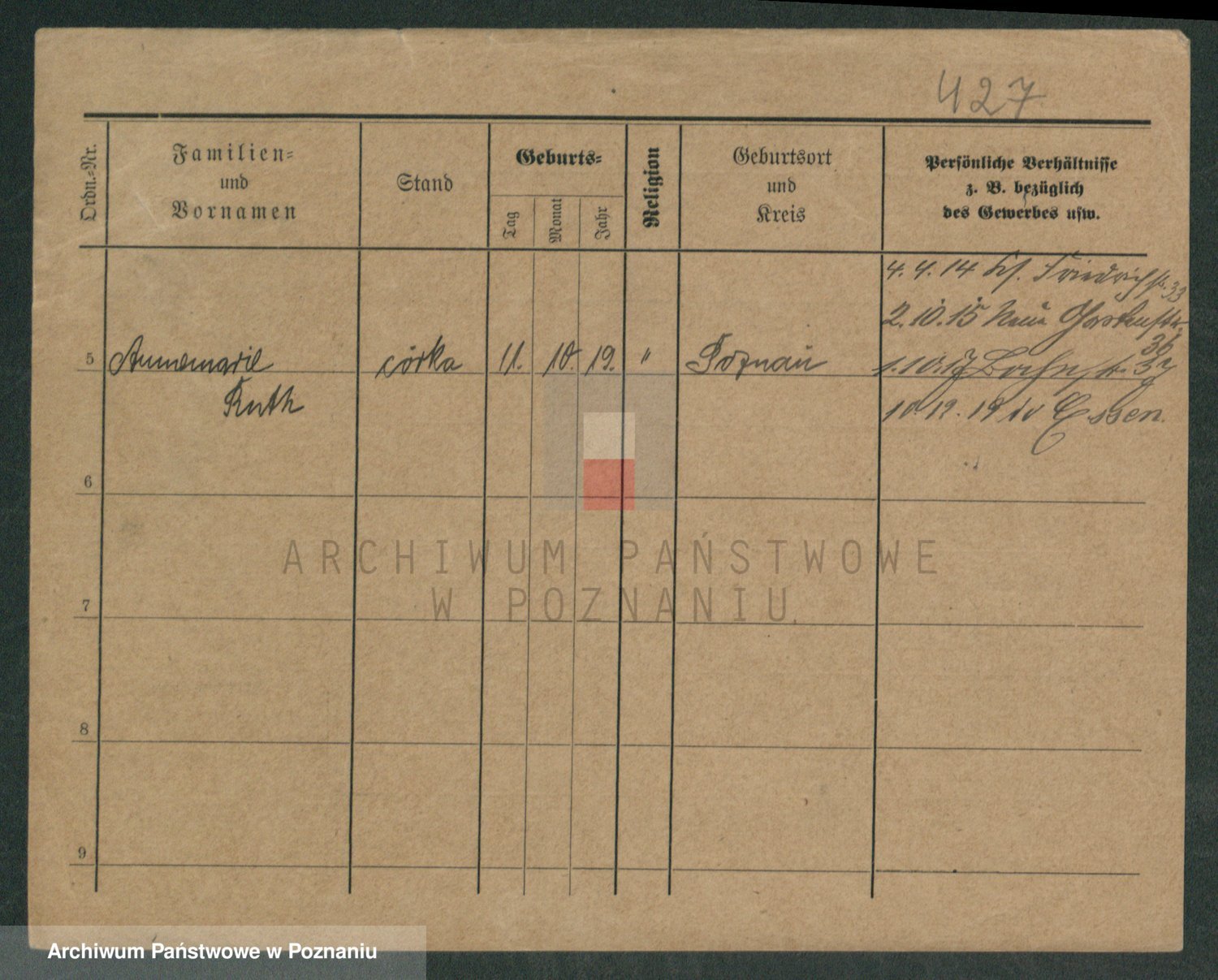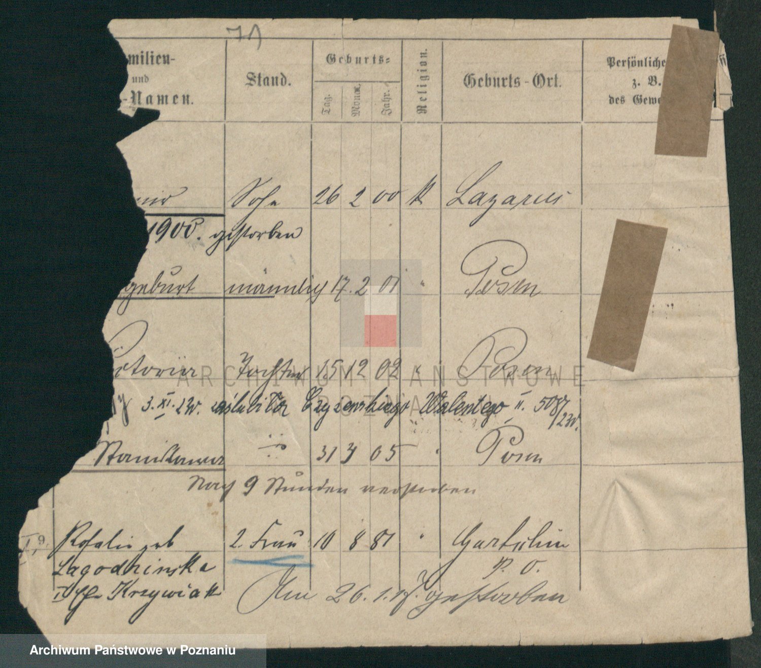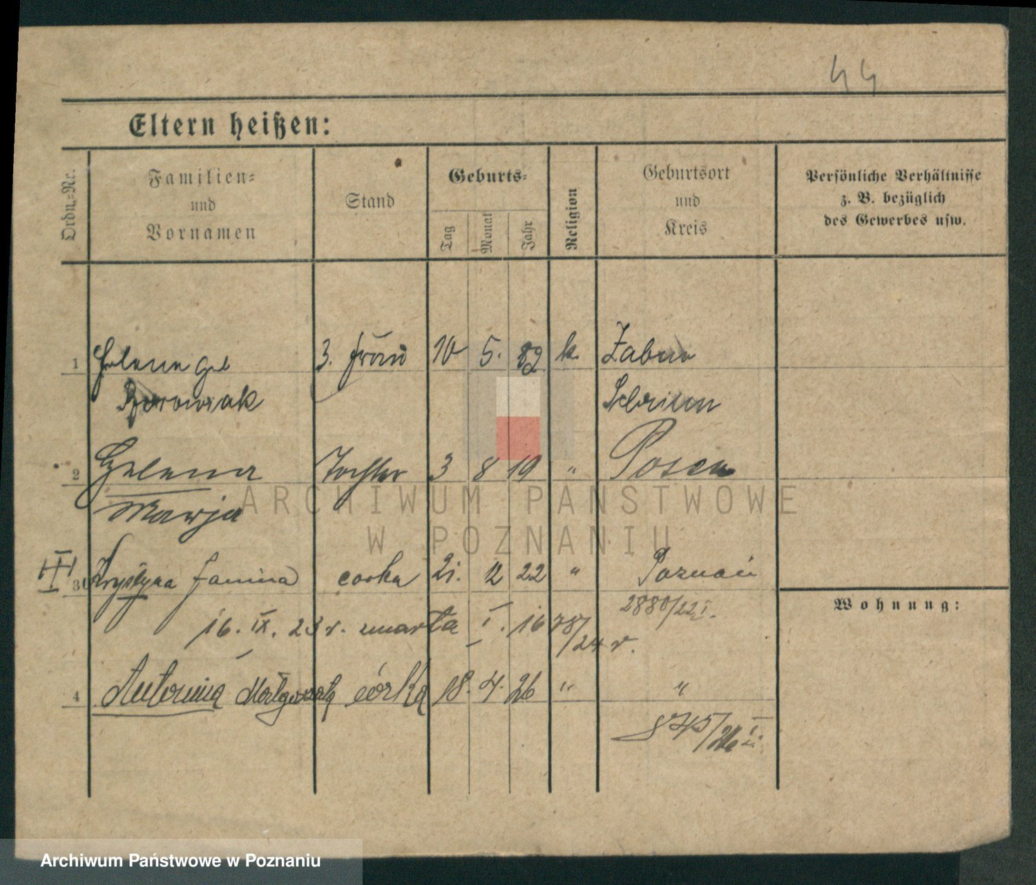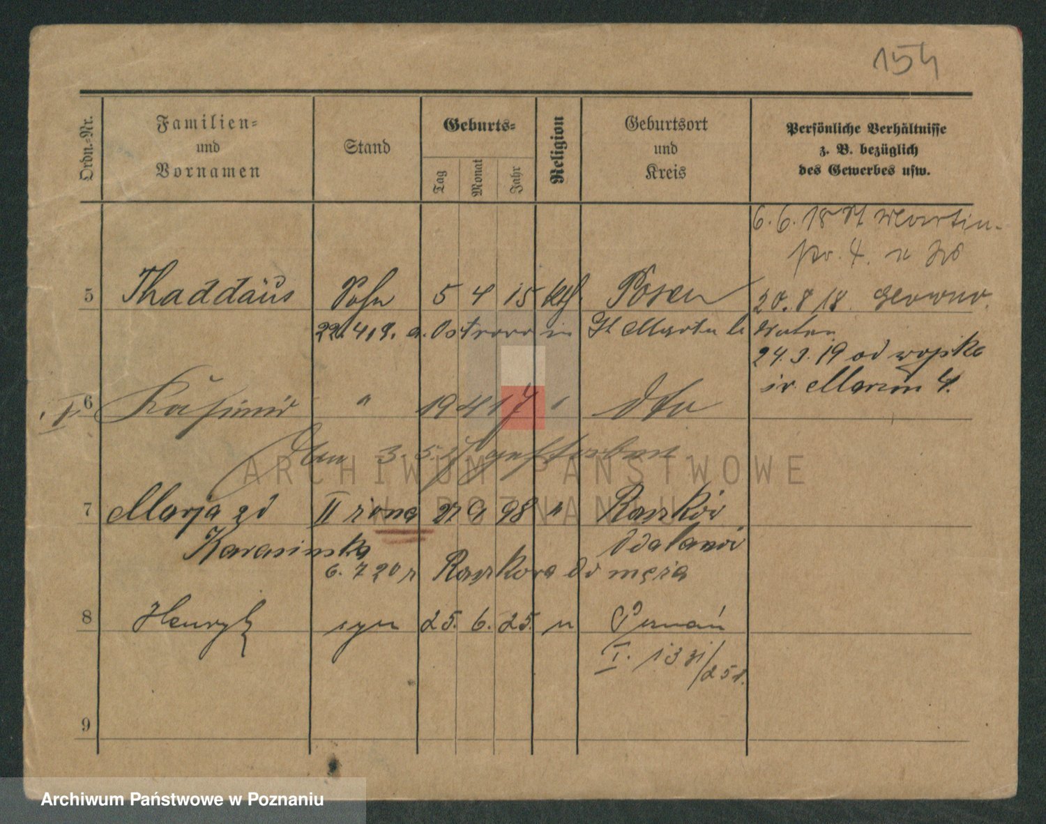 Podgląd karty osobowej dostępny jest po kliknięciu na nazwisko lub ikonkę karty. Można dokonywać powiększenia (ikony na górze) lub przechodzić między kolejnymi skanami (strzałki po bokach).