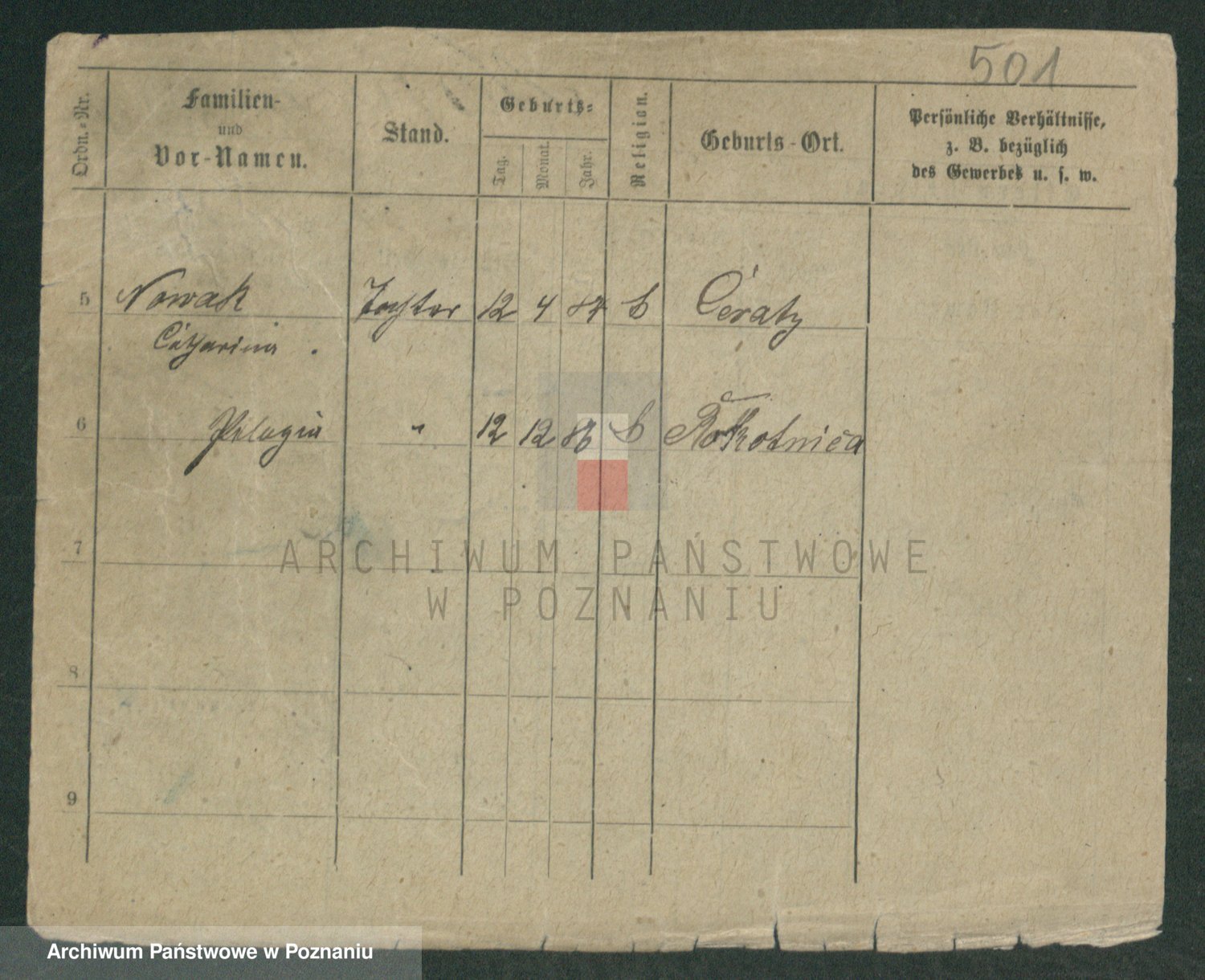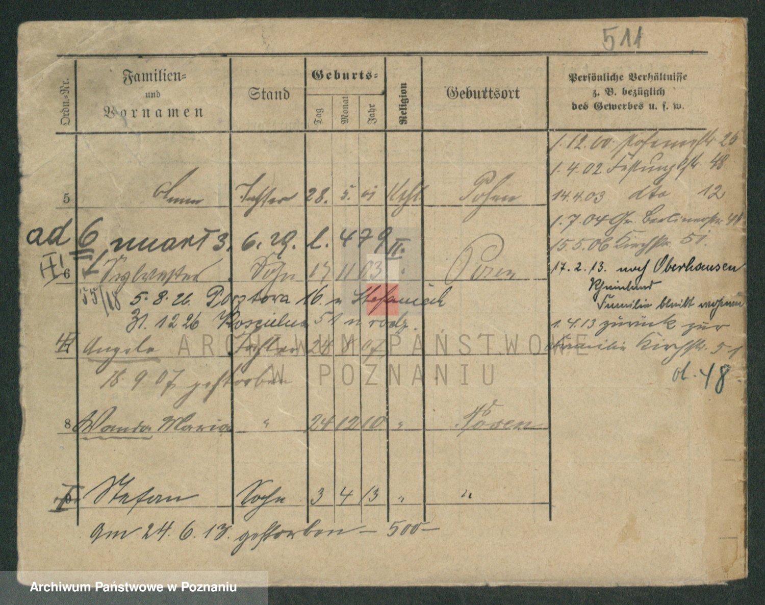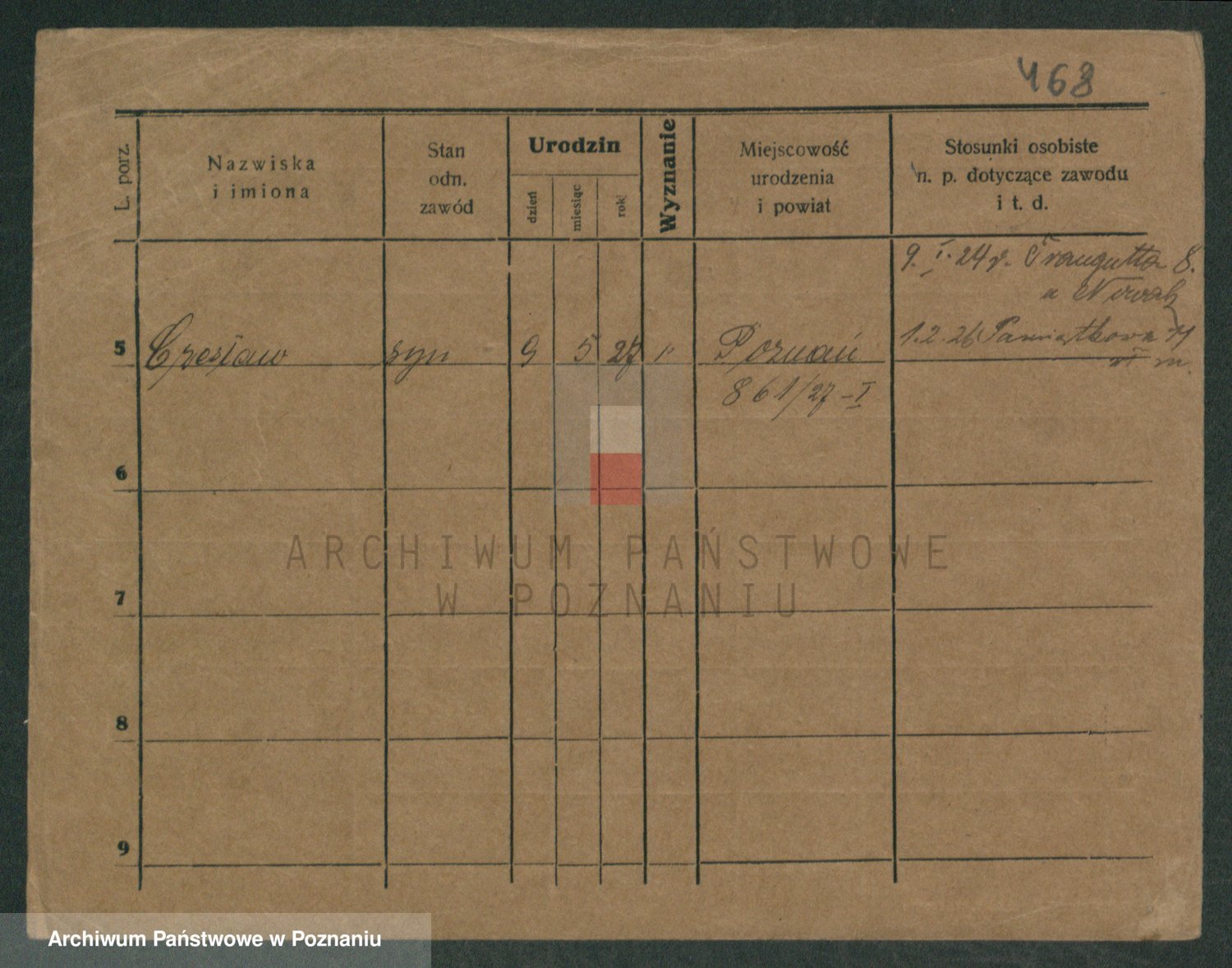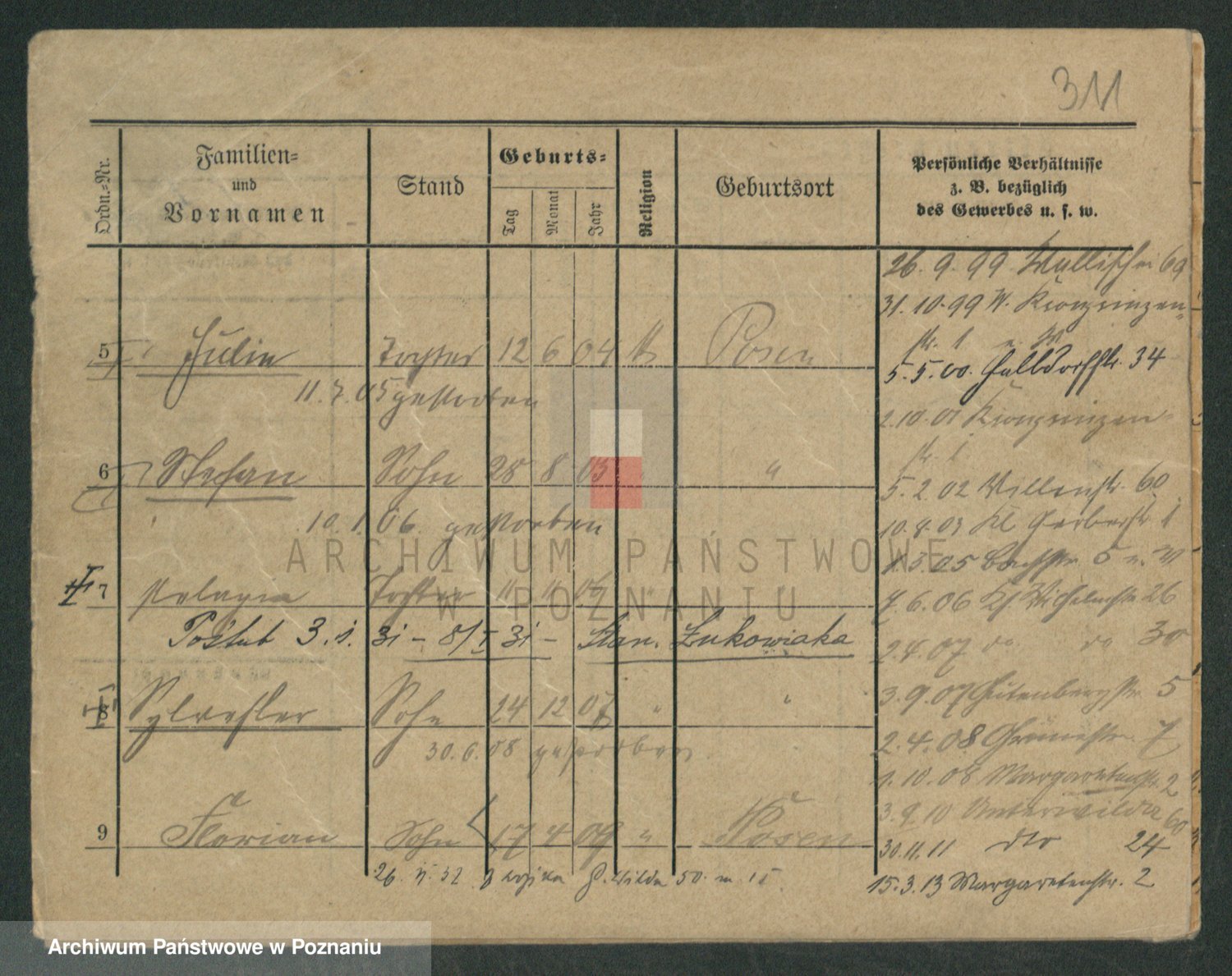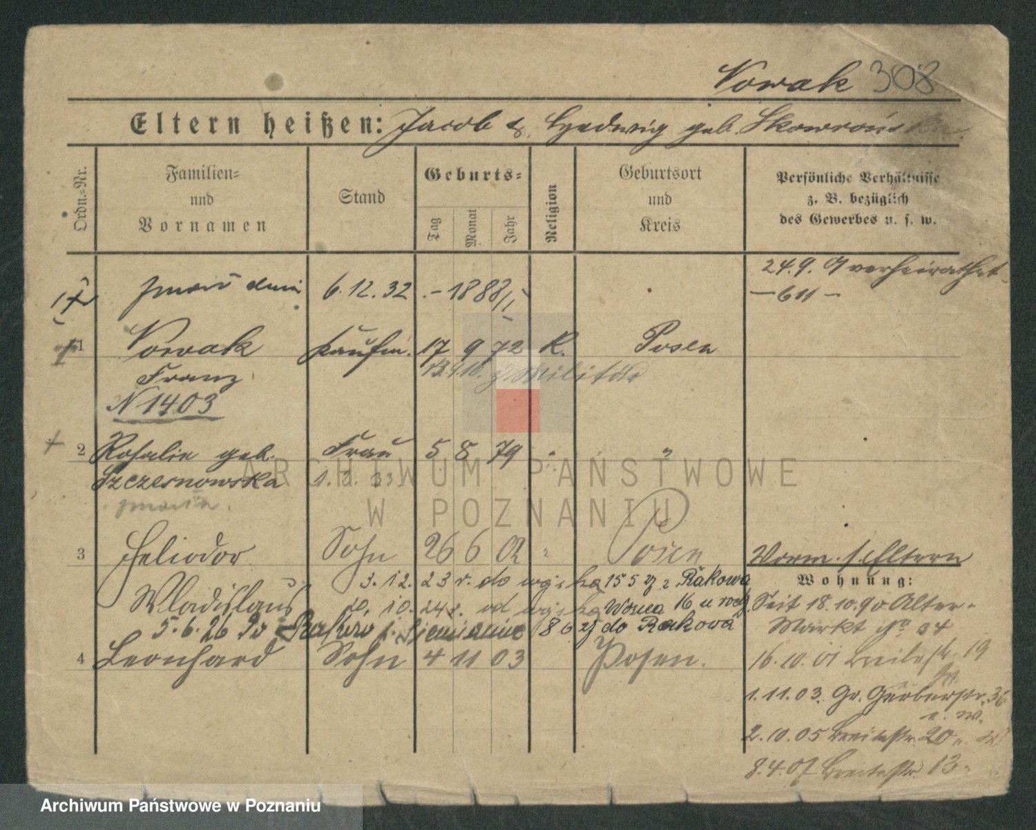 Podgląd karty osobowej dostępny jest po kliknięciu na nazwisko lub ikonkę karty. Można dokonywać powiększenia (ikony na górze) lub przechodzić między kolejnymi skanami (strzałki po bokach).