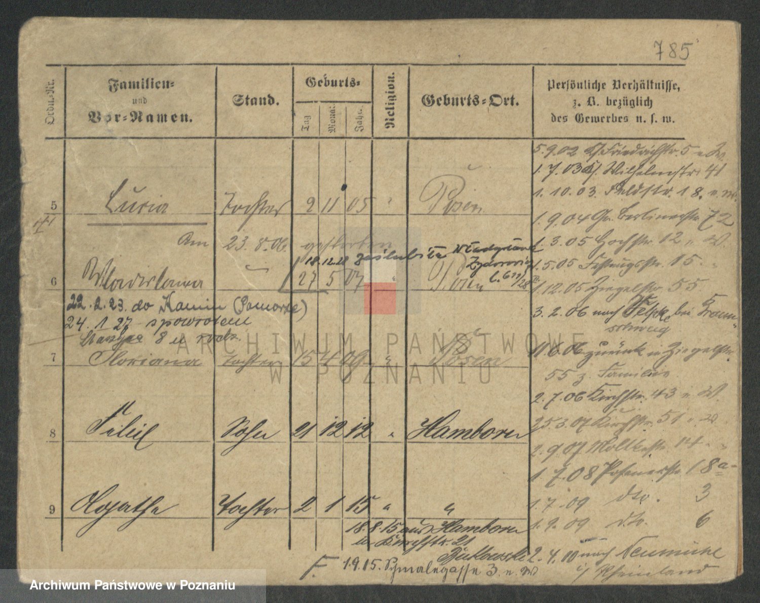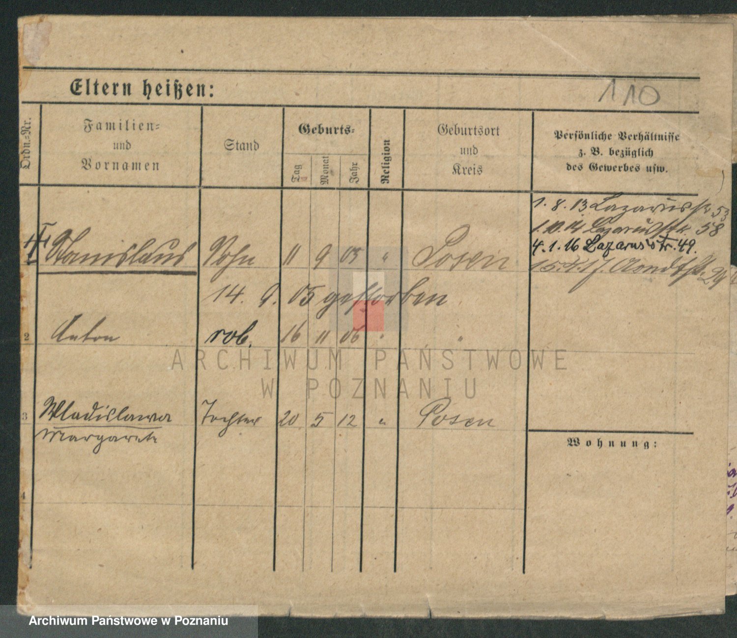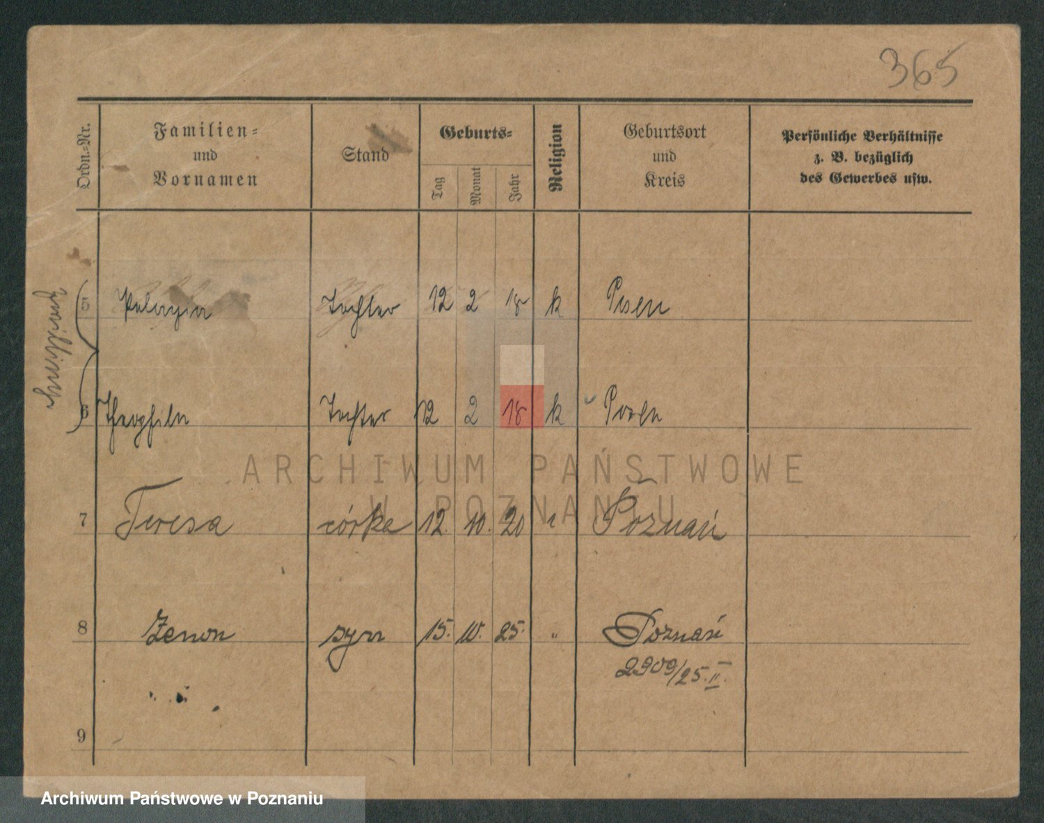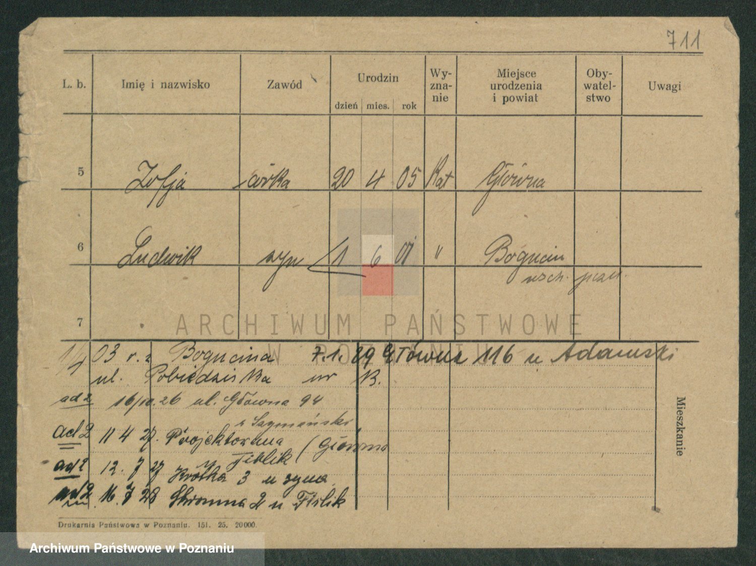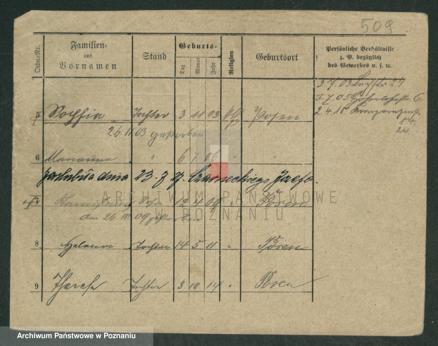 Podgląd karty osobowej dostępny jest po kliknięciu na nazwisko lub ikonkę karty. Można dokonywać powiększenia (ikony na górze) lub przechodzić między kolejnymi skanami (strzałki po bokach).