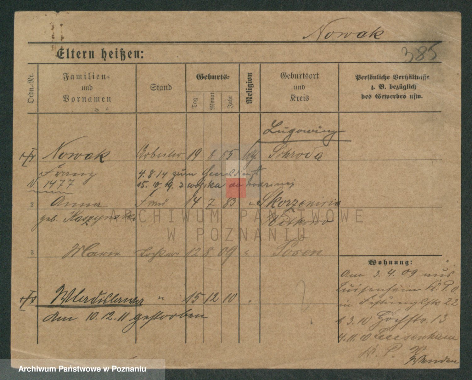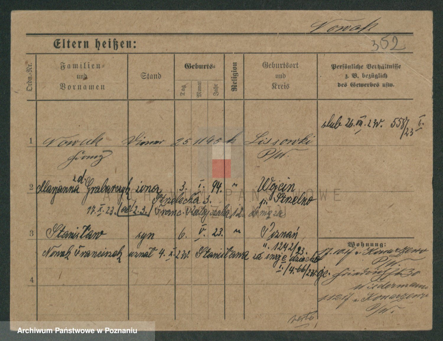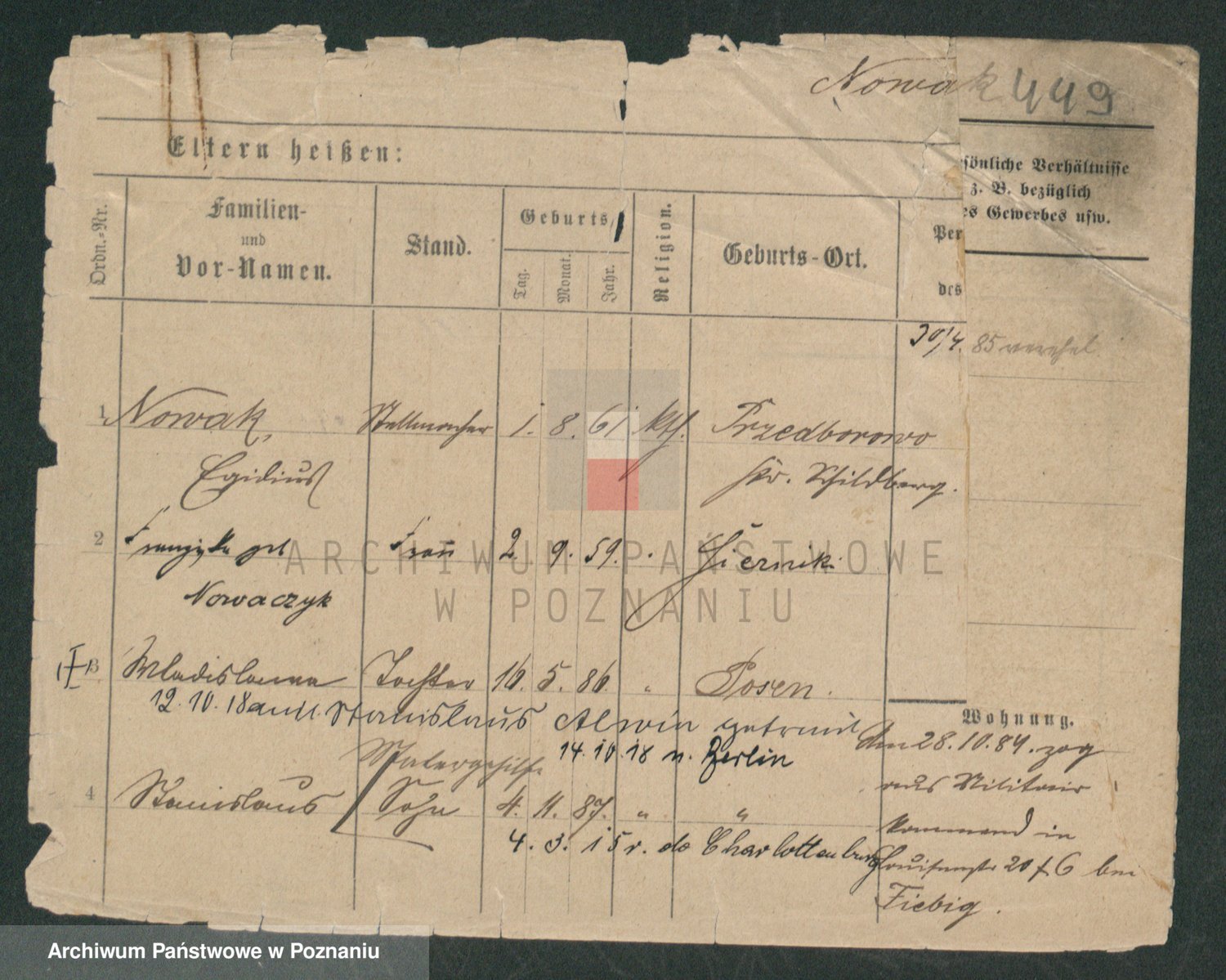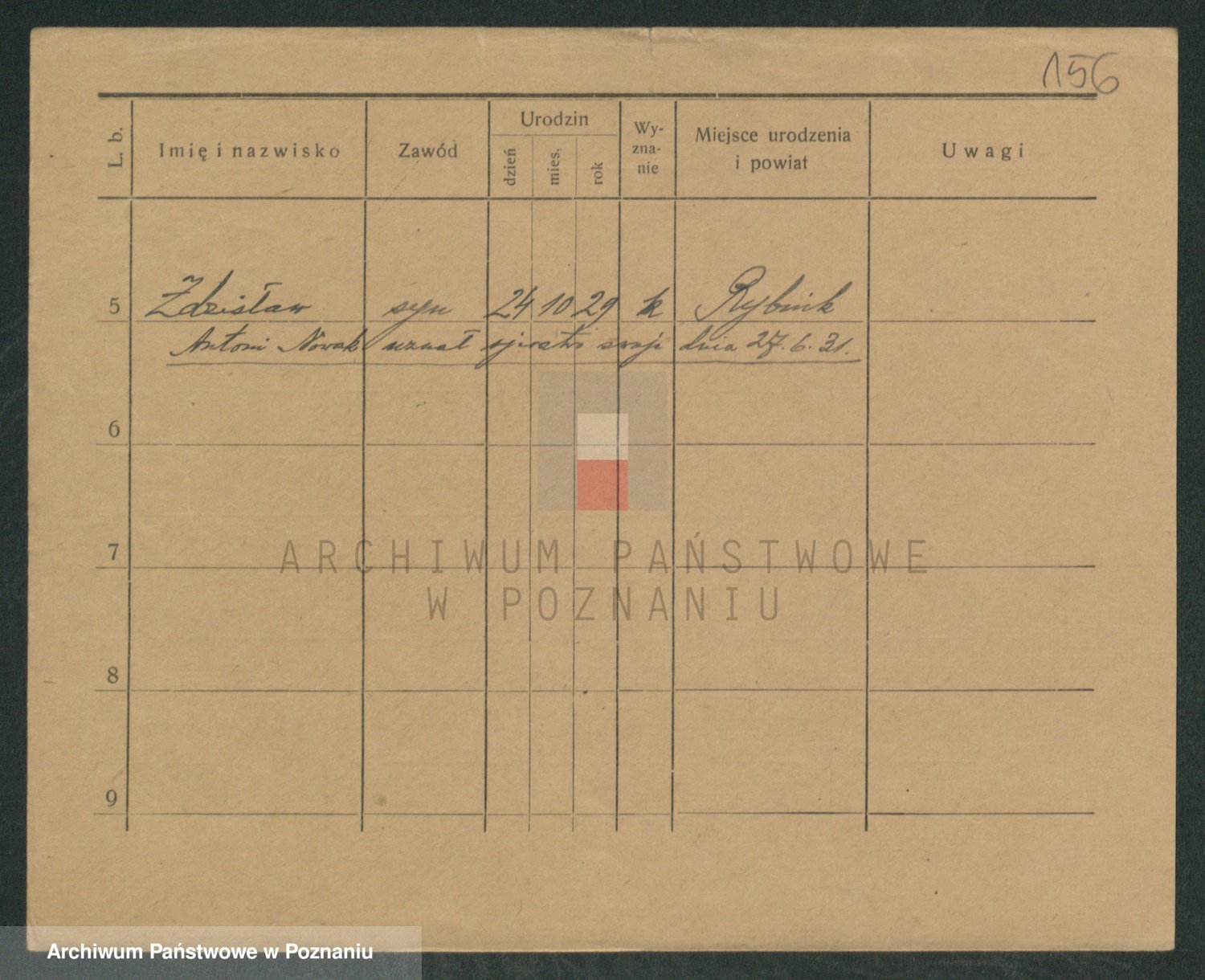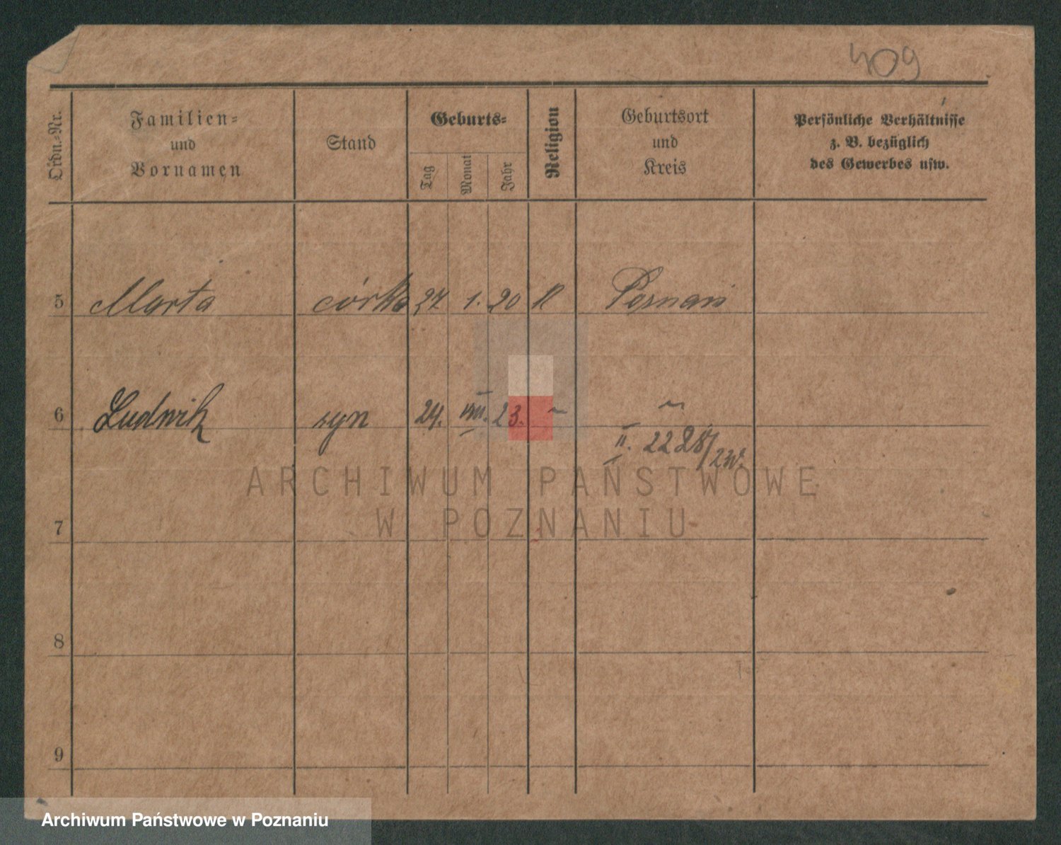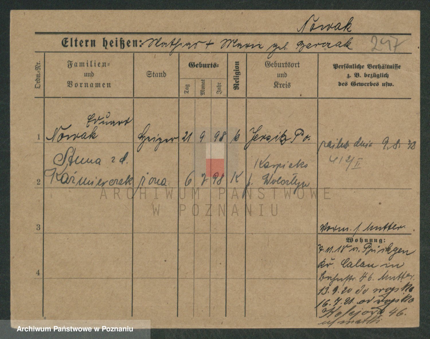 Podgląd karty osobowej dostępny jest po kliknięciu na nazwisko lub ikonkę karty. Można dokonywać powiększenia (ikony na górze) lub przechodzić między kolejnymi skanami (strzałki po bokach).