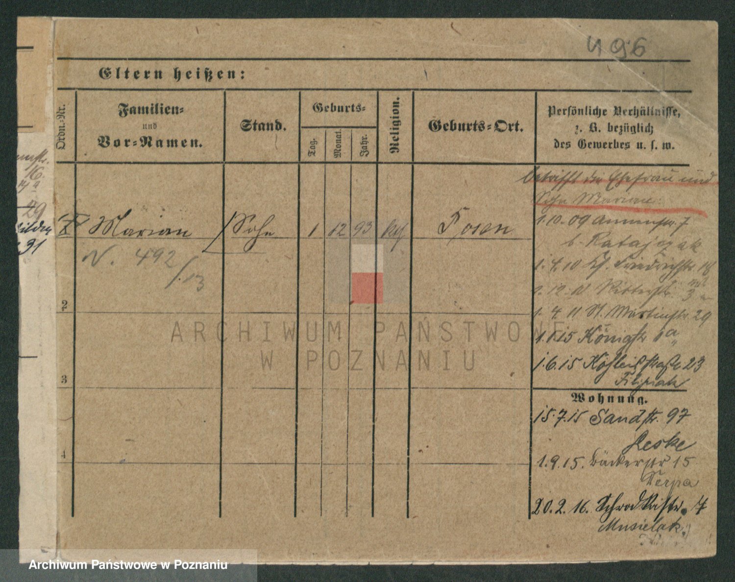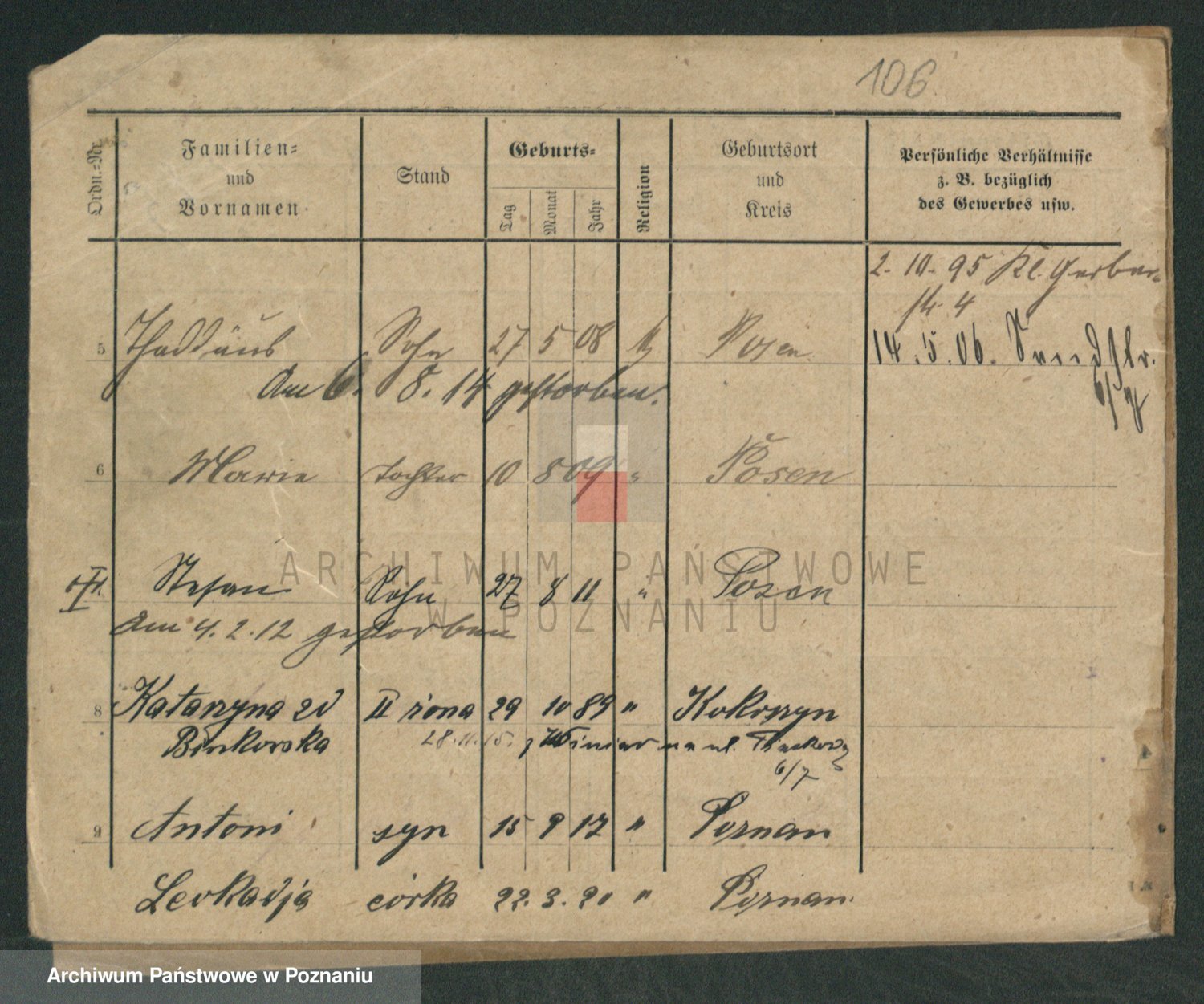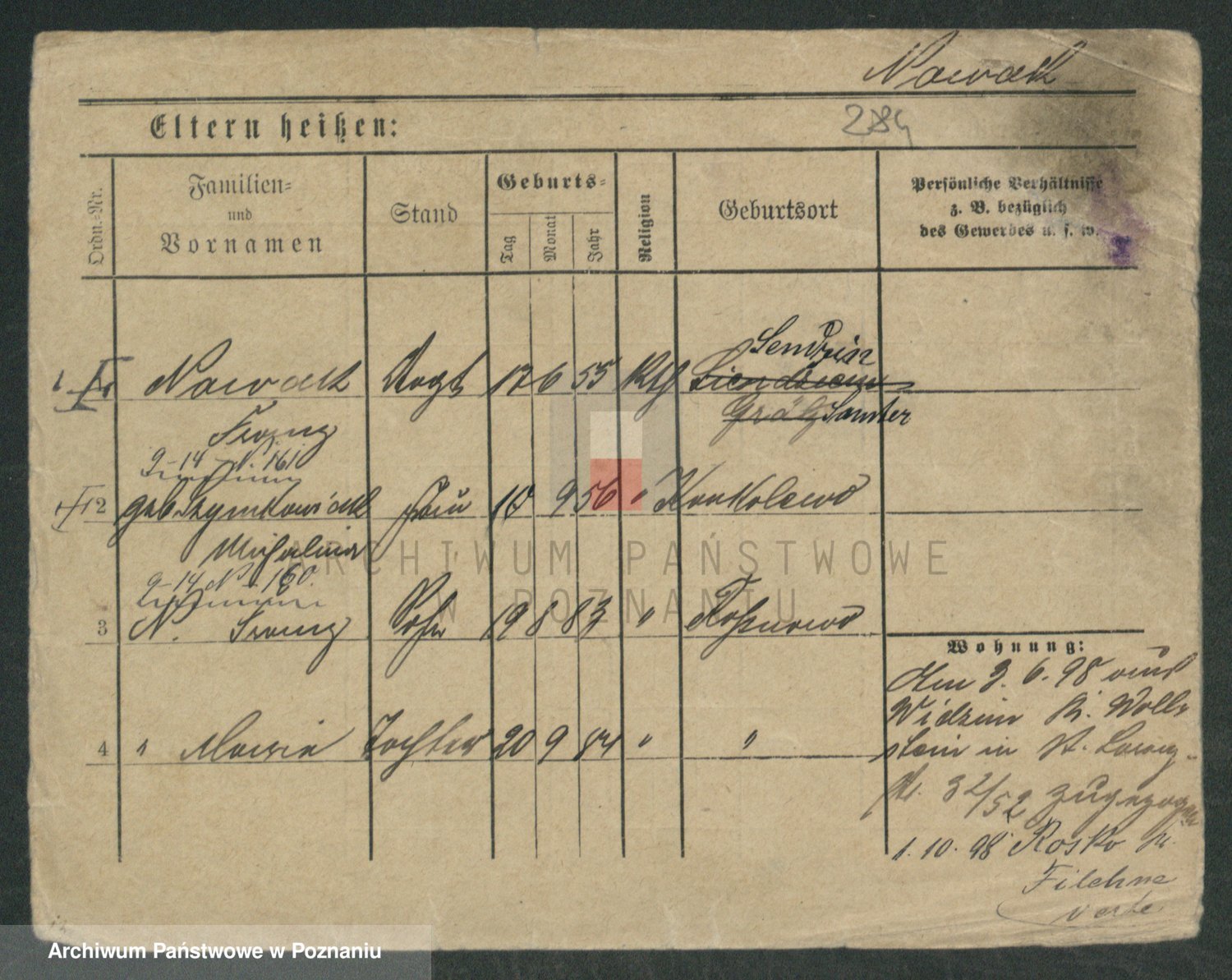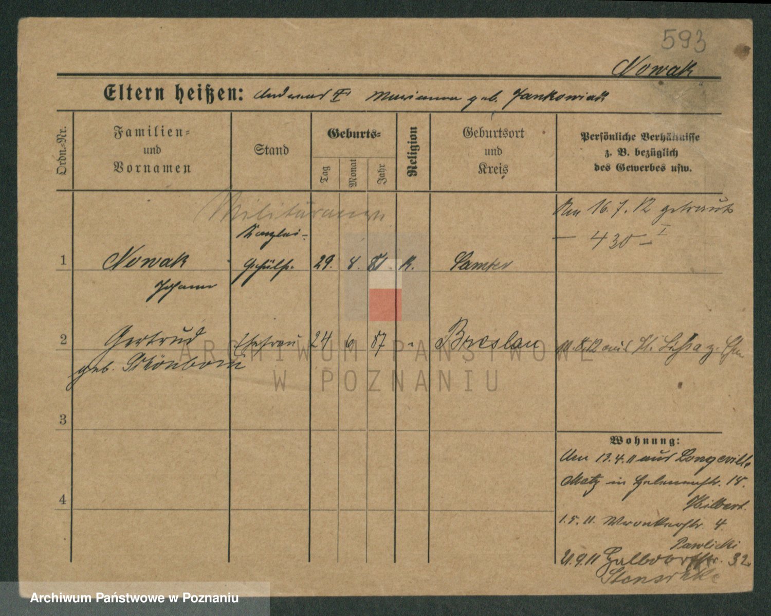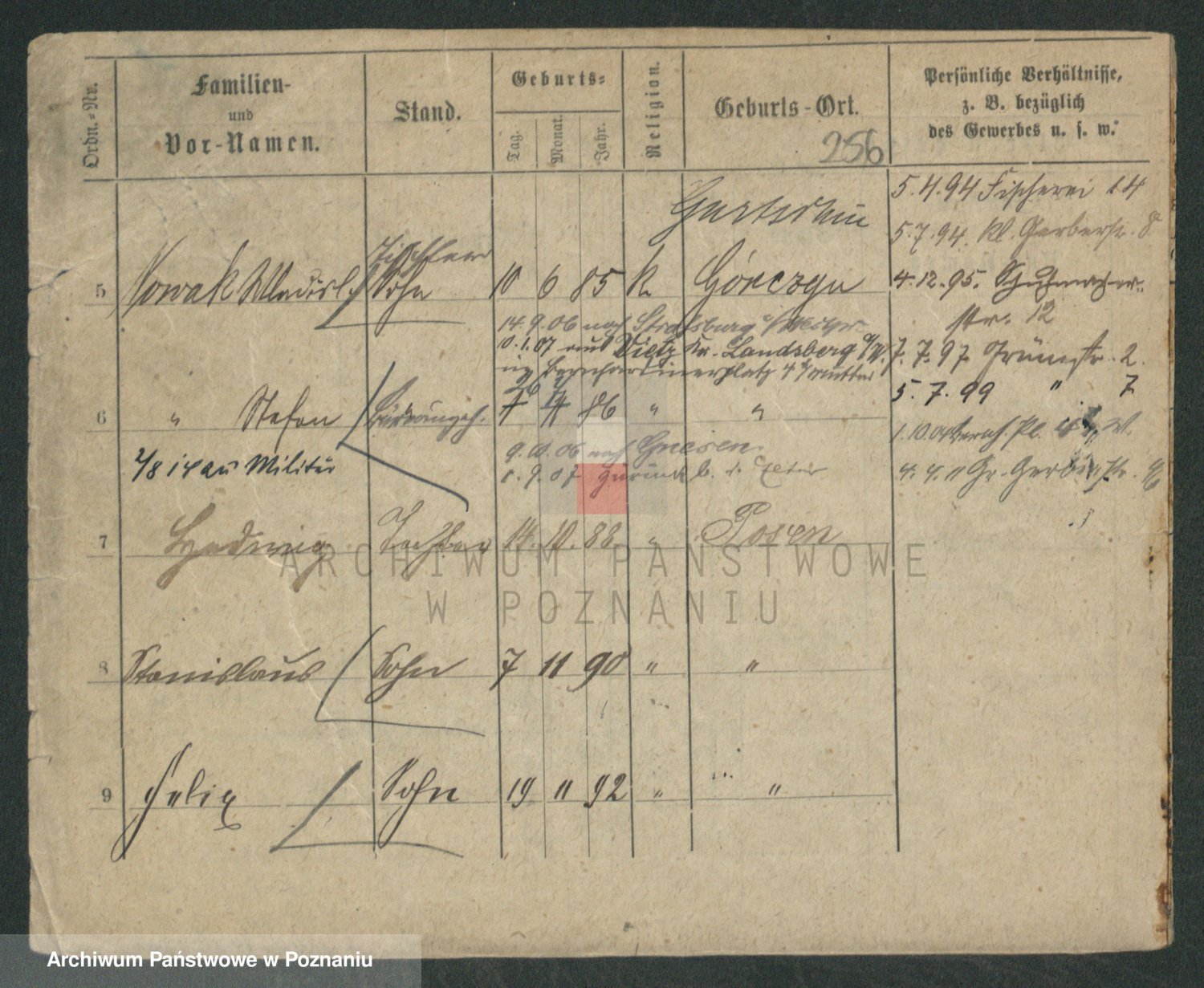 Podgląd karty osobowej dostępny jest po kliknięciu na nazwisko lub ikonkę karty. Można dokonywać powiększenia (ikony na górze) lub przechodzić między kolejnymi skanami (strzałki po bokach).