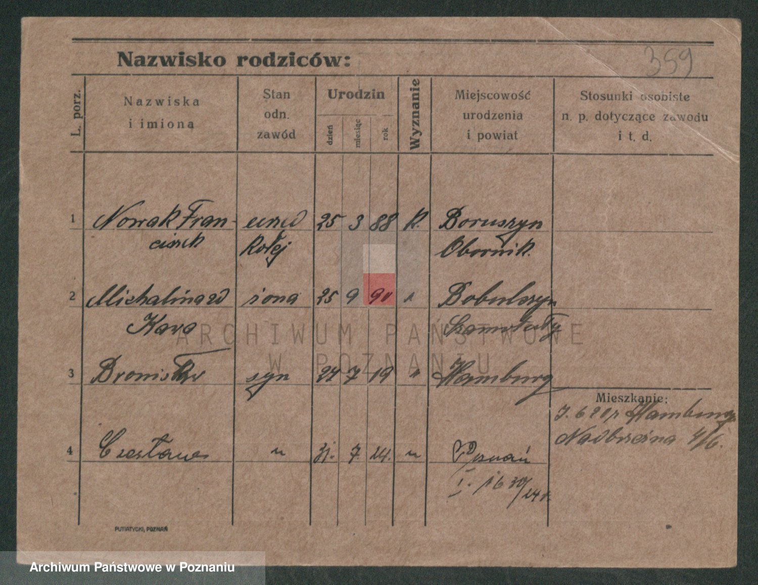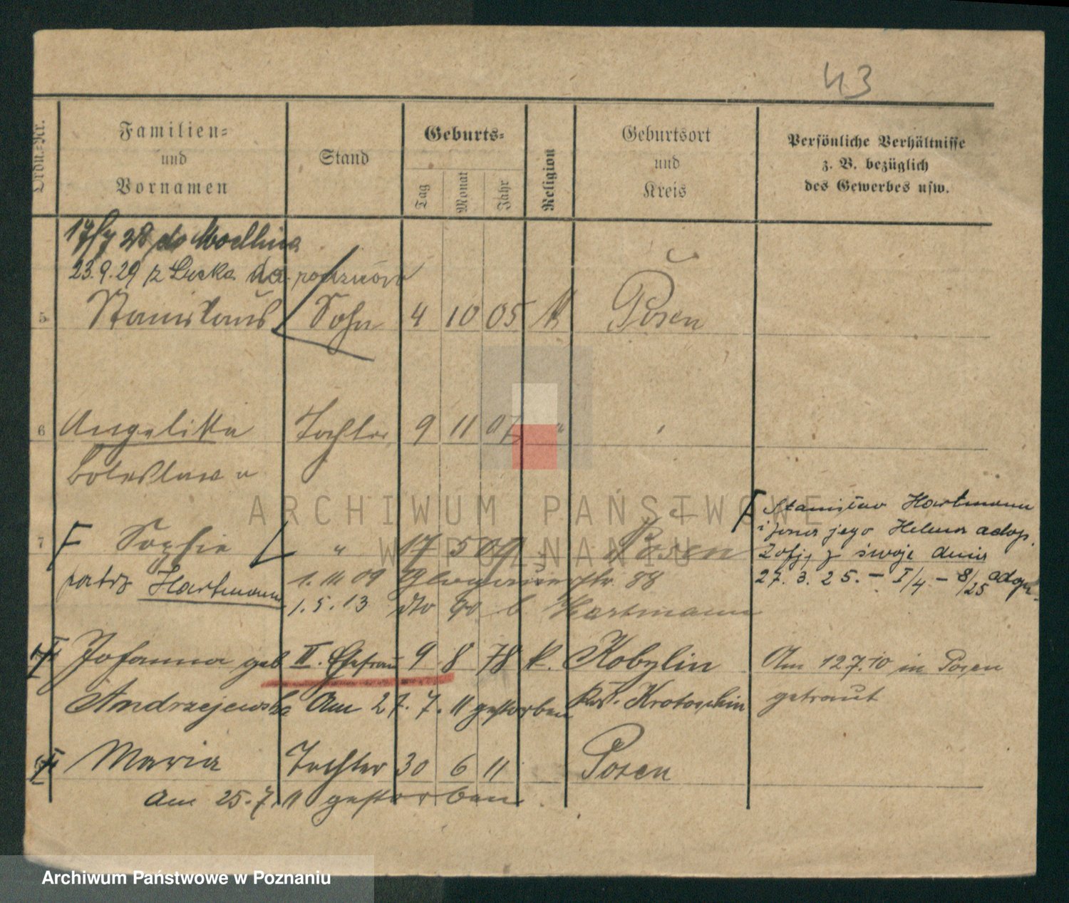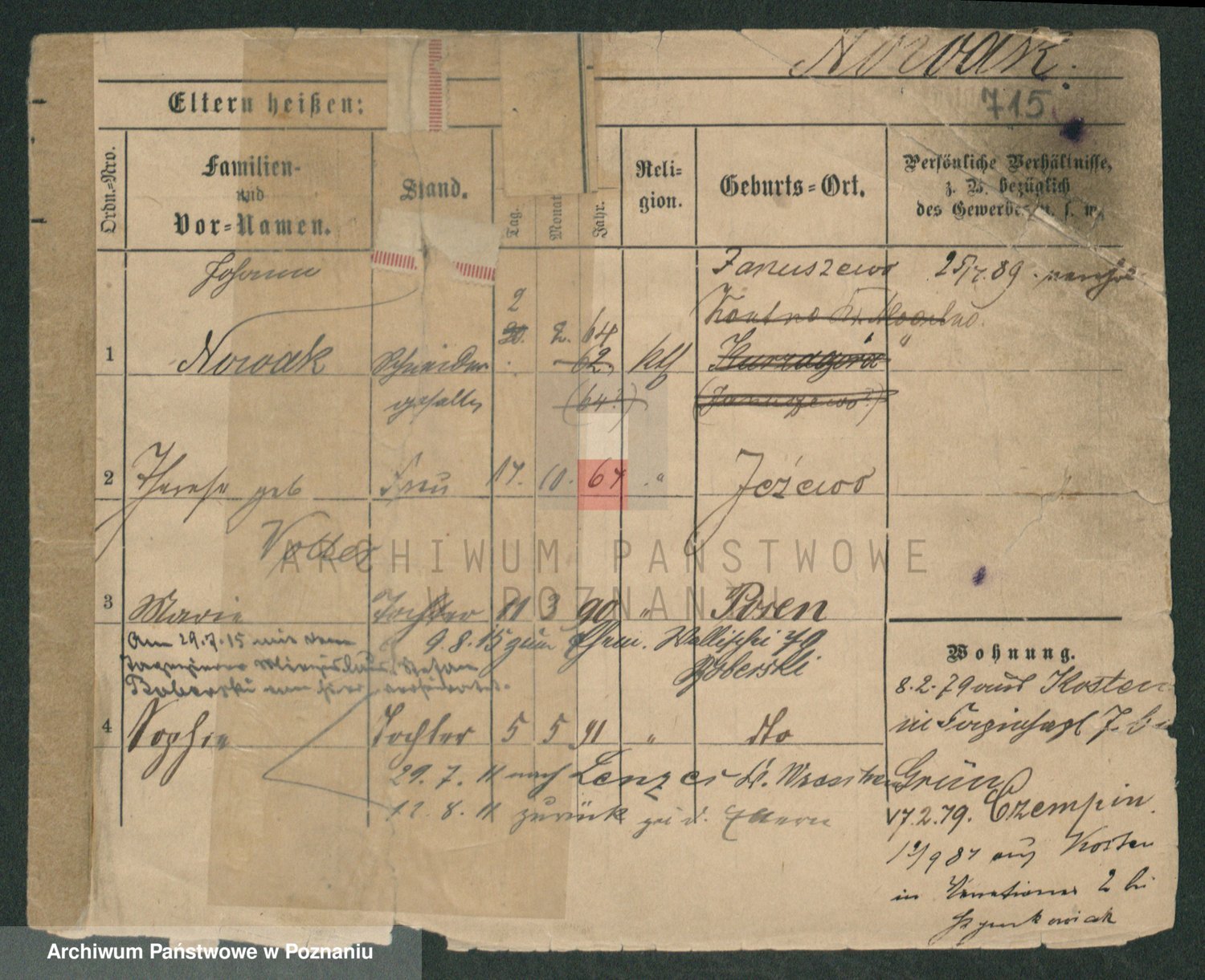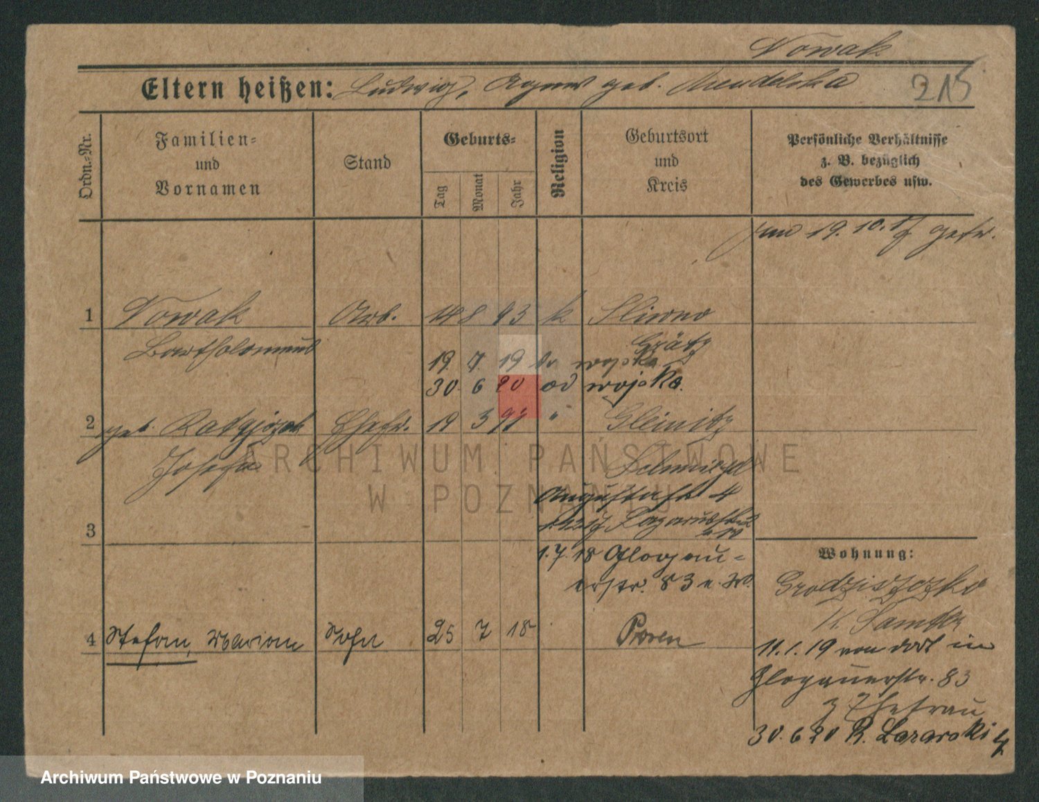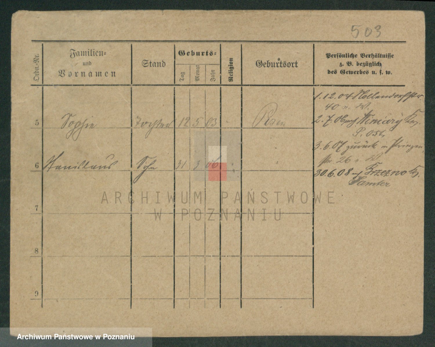 Podgląd karty osobowej dostępny jest po kliknięciu na nazwisko lub ikonkę karty. Można dokonywać powiększenia (ikony na górze) lub przechodzić między kolejnymi skanami (strzałki po bokach).