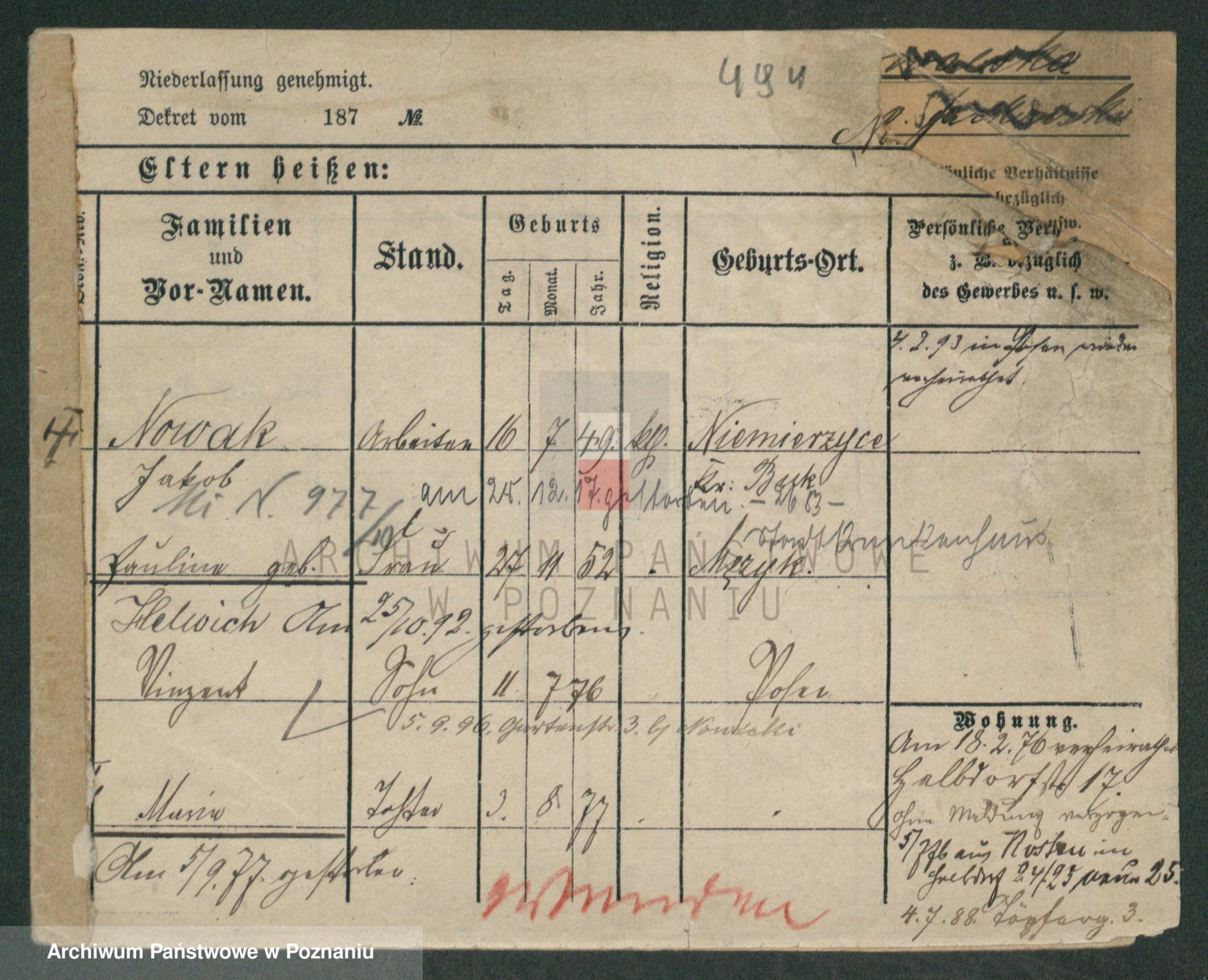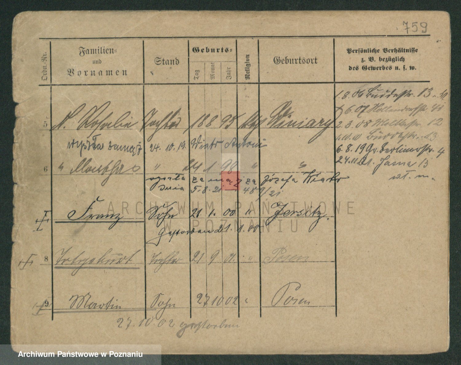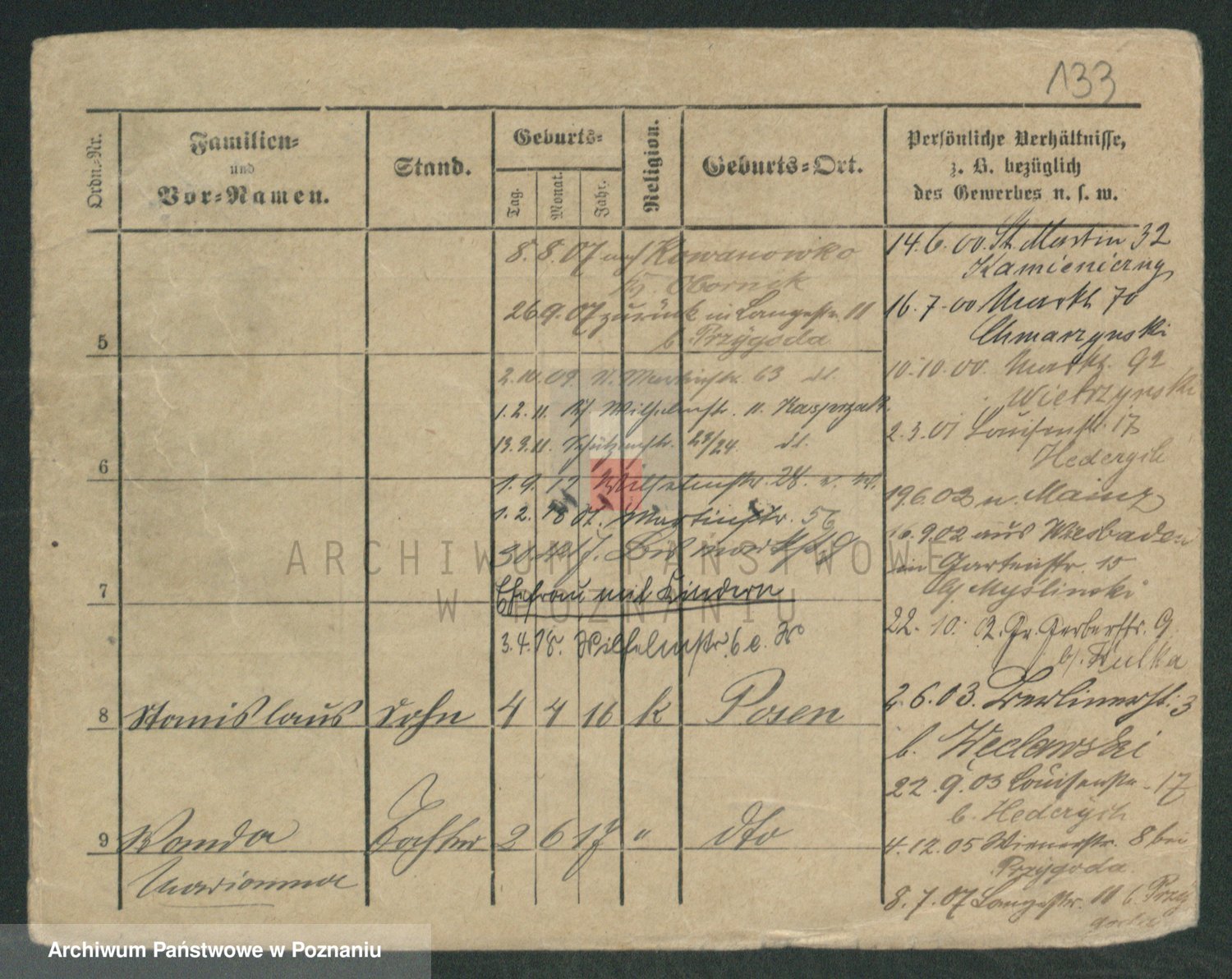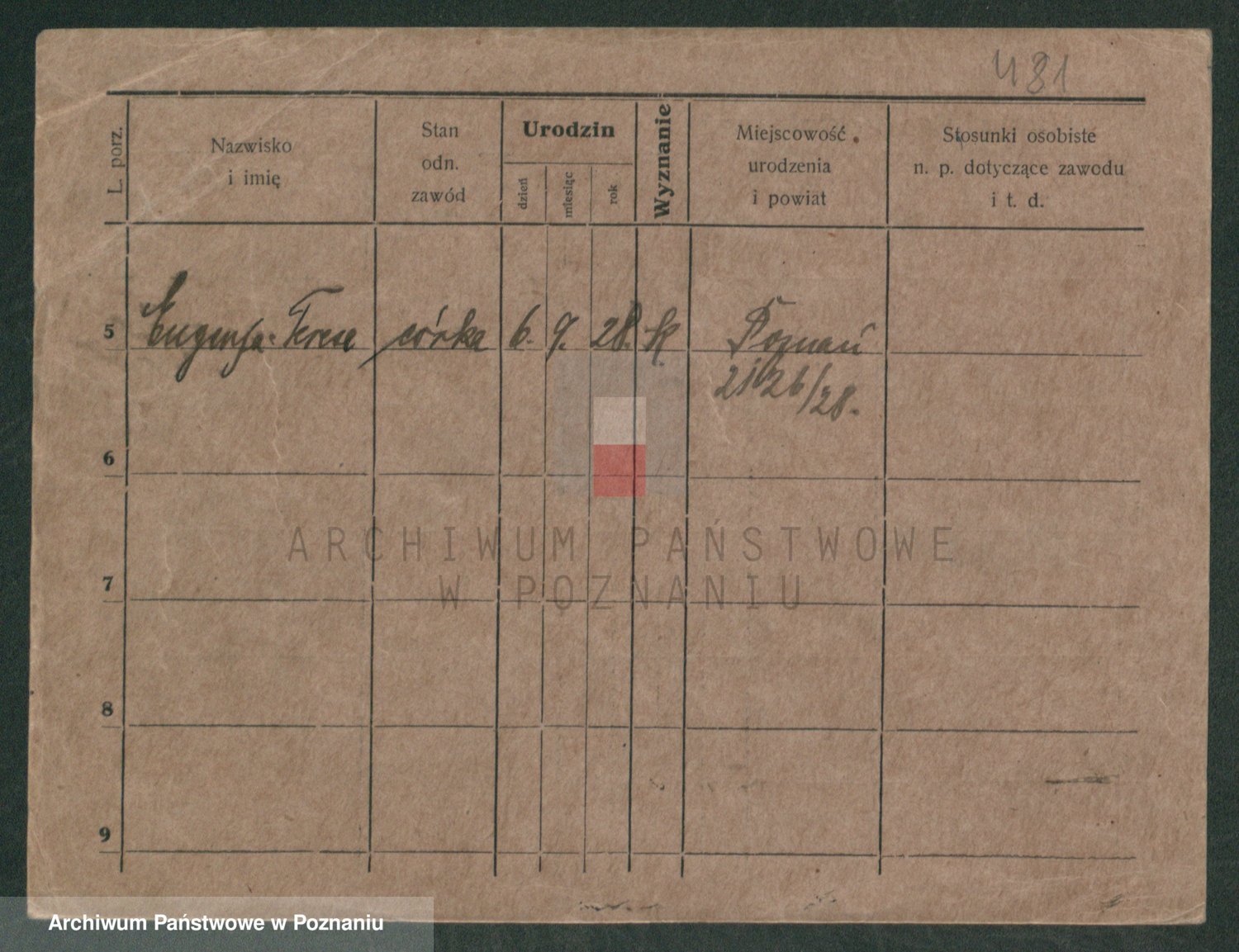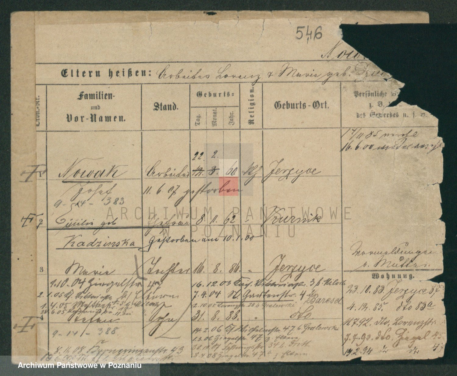 Podgląd karty osobowej dostępny jest po kliknięciu na nazwisko lub ikonkę karty. Można dokonywać powiększenia (ikony na górze) lub przechodzić między kolejnymi skanami (strzałki po bokach).