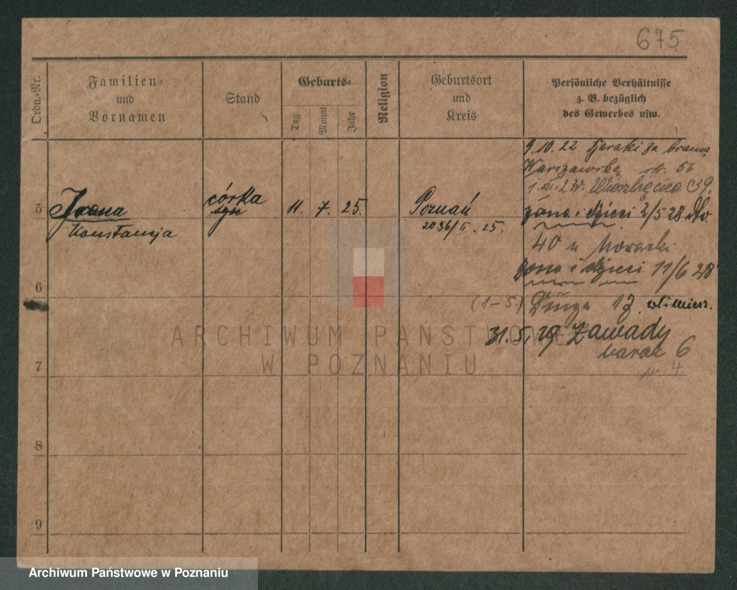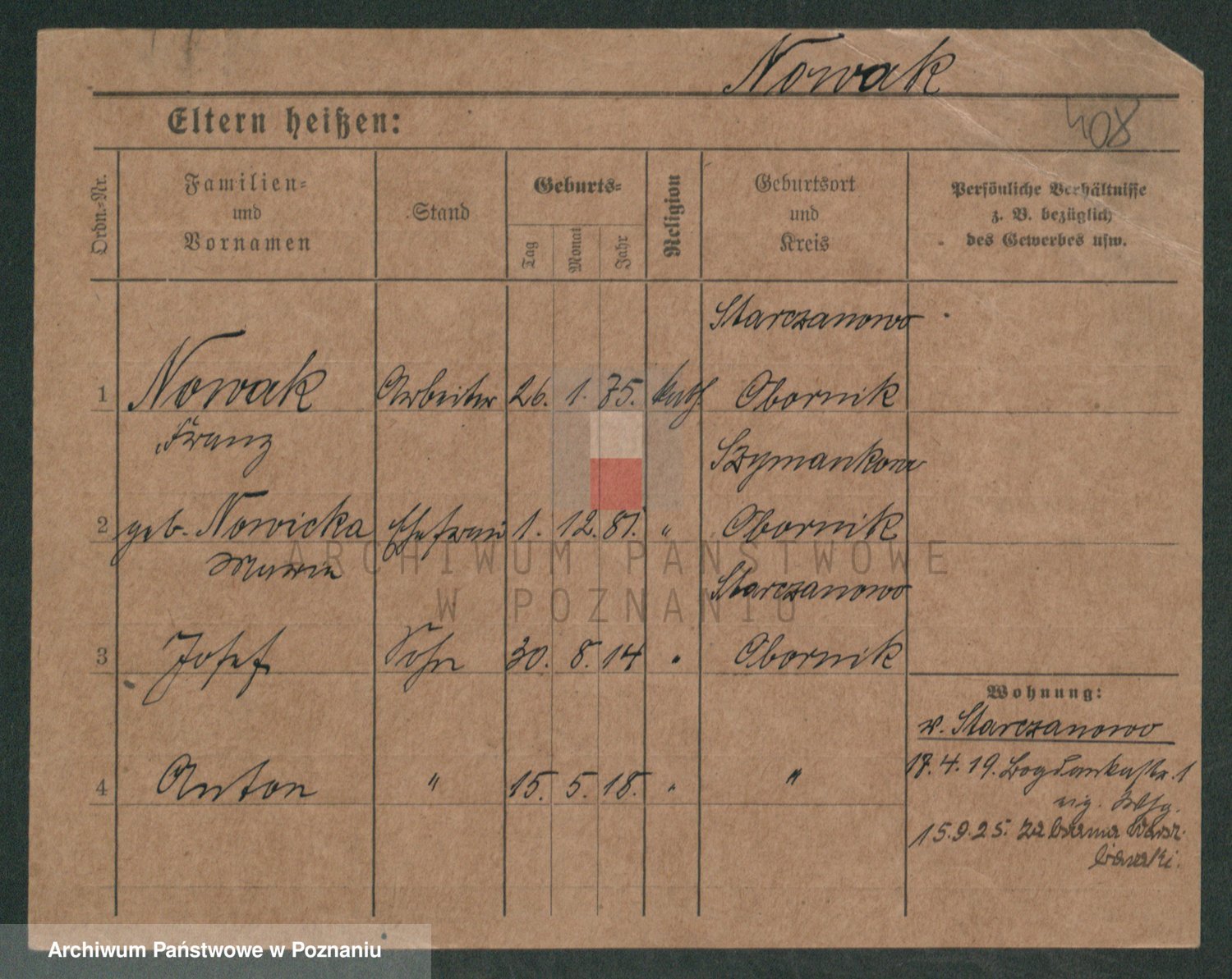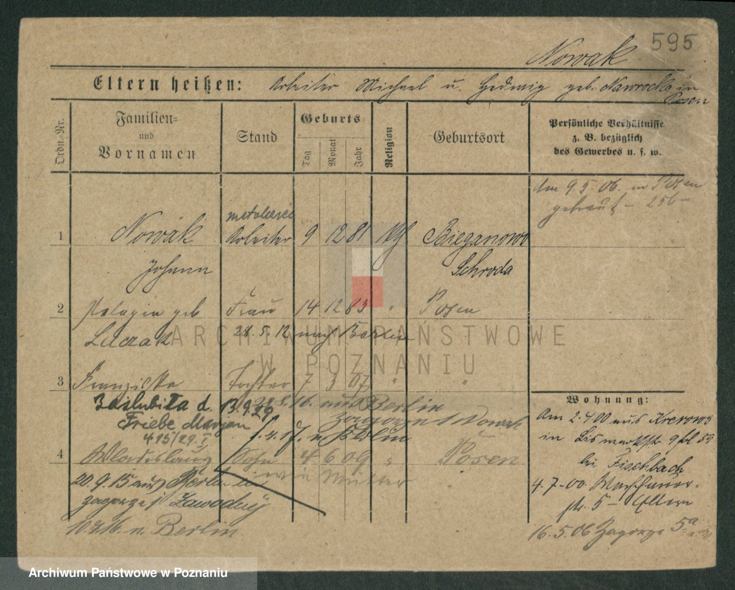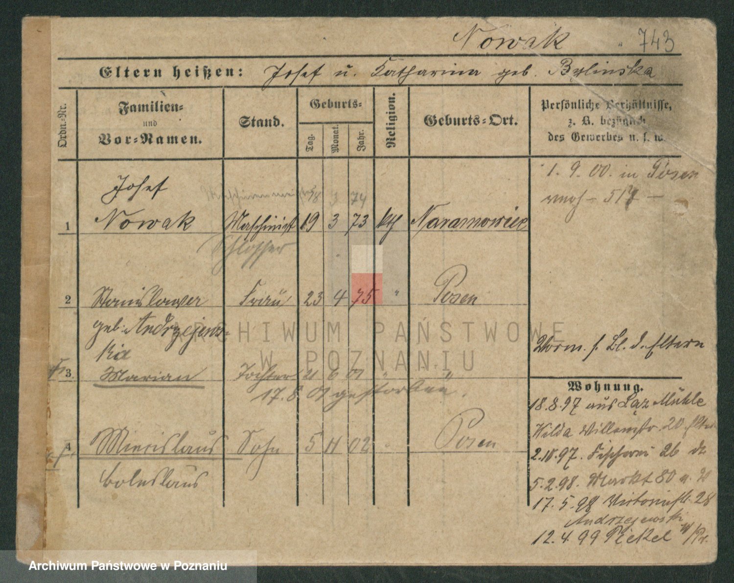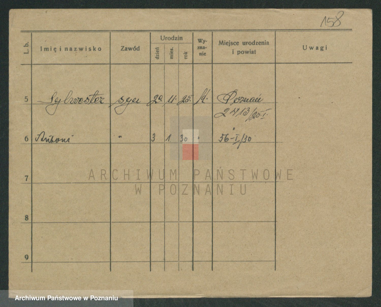 Podgląd karty osobowej dostępny jest po kliknięciu na nazwisko lub ikonkę karty. Można dokonywać powiększenia (ikony na górze) lub przechodzić między kolejnymi skanami (strzałki po bokach).