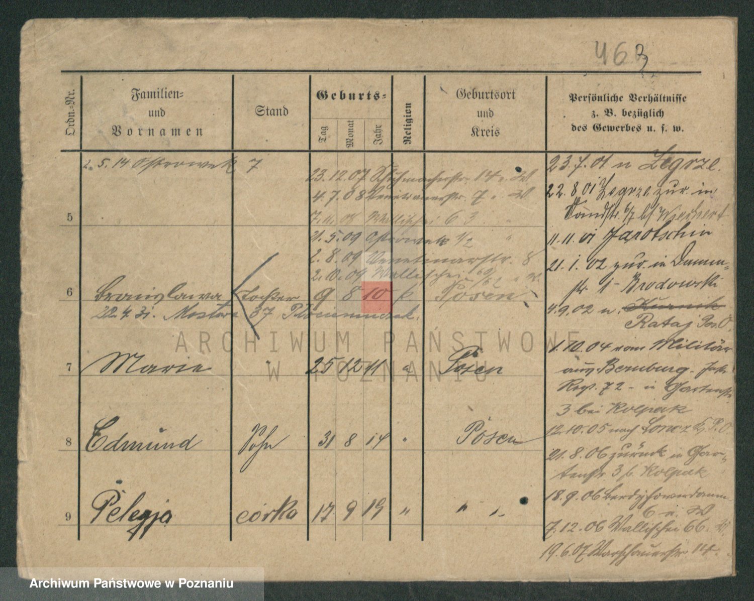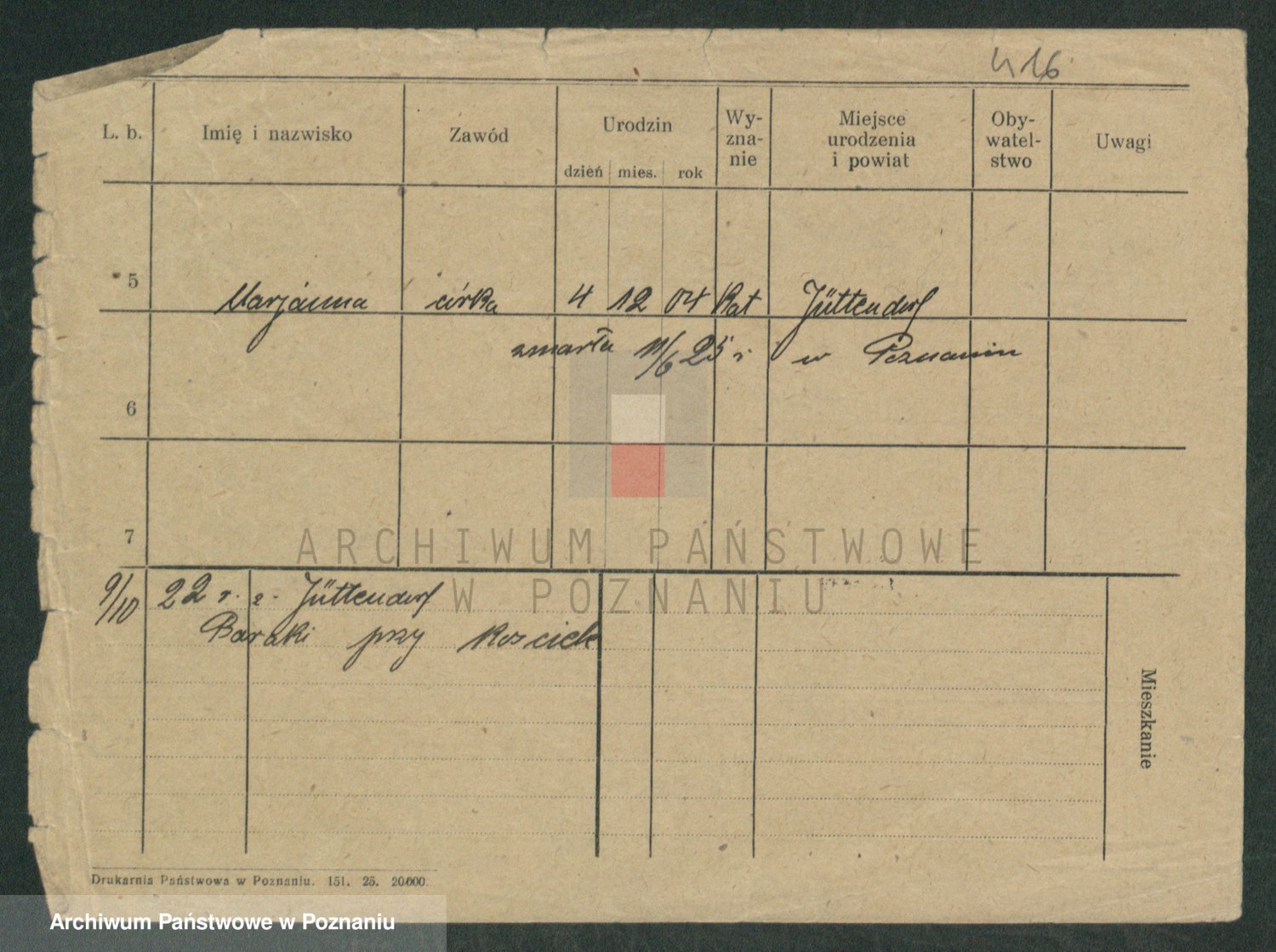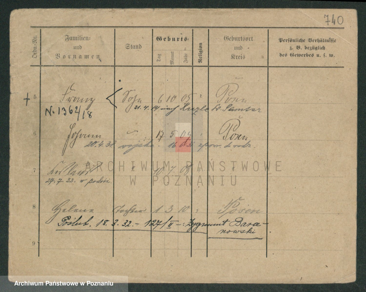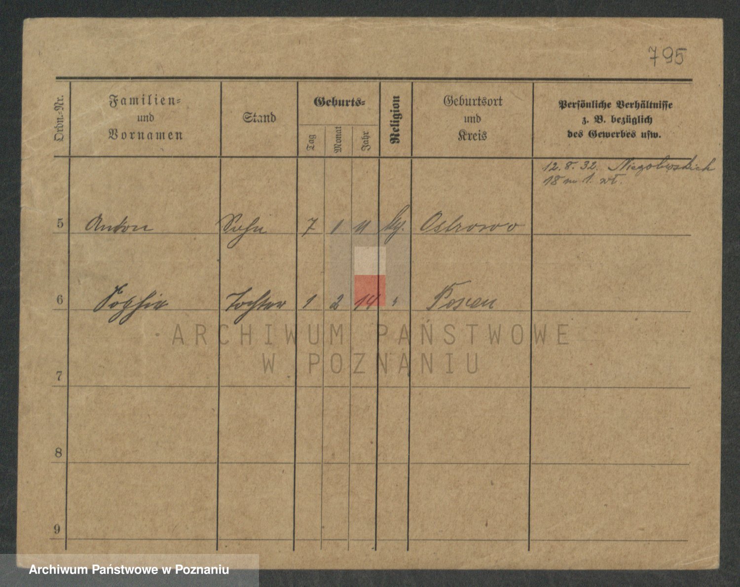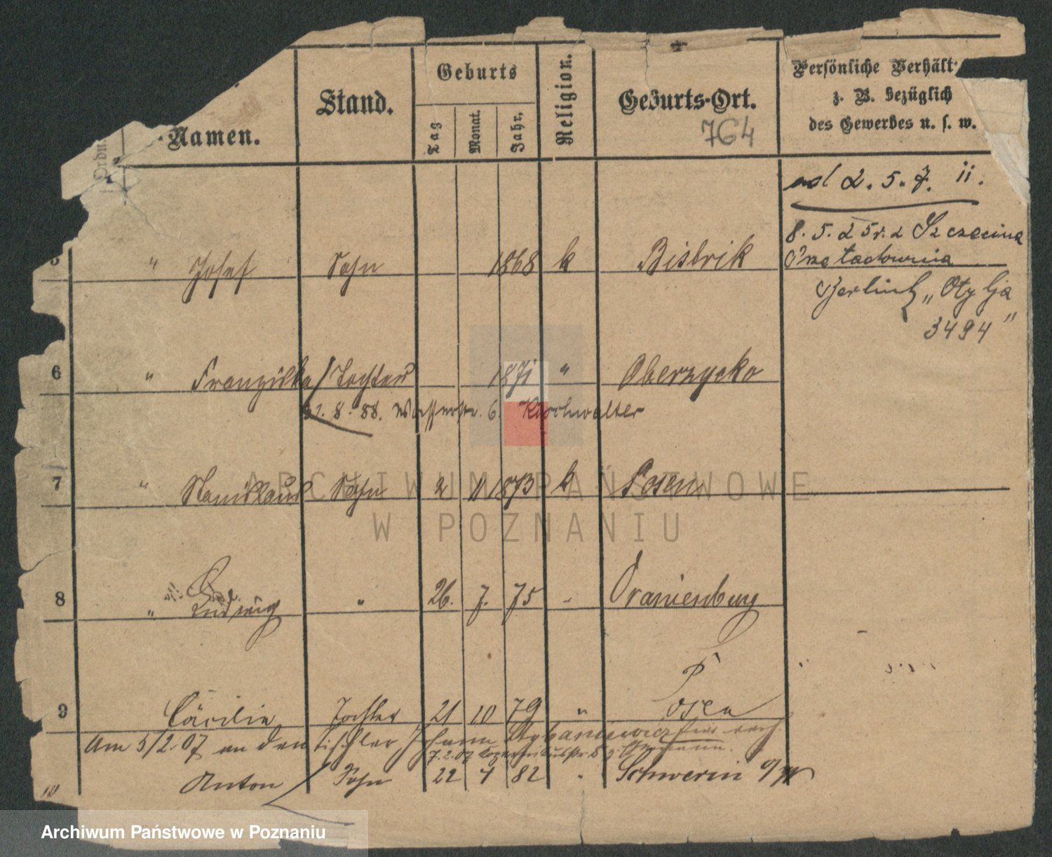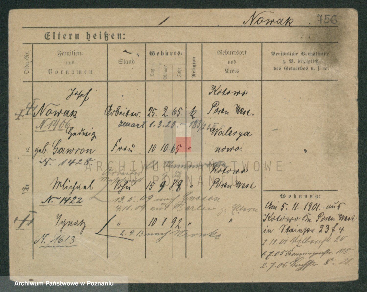 Podgląd karty osobowej dostępny jest po kliknięciu na nazwisko lub ikonkę karty. Można dokonywać powiększenia (ikony na górze) lub przechodzić między kolejnymi skanami (strzałki po bokach).