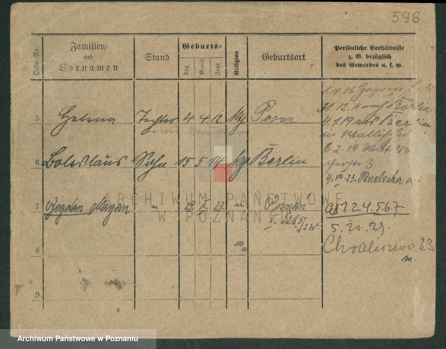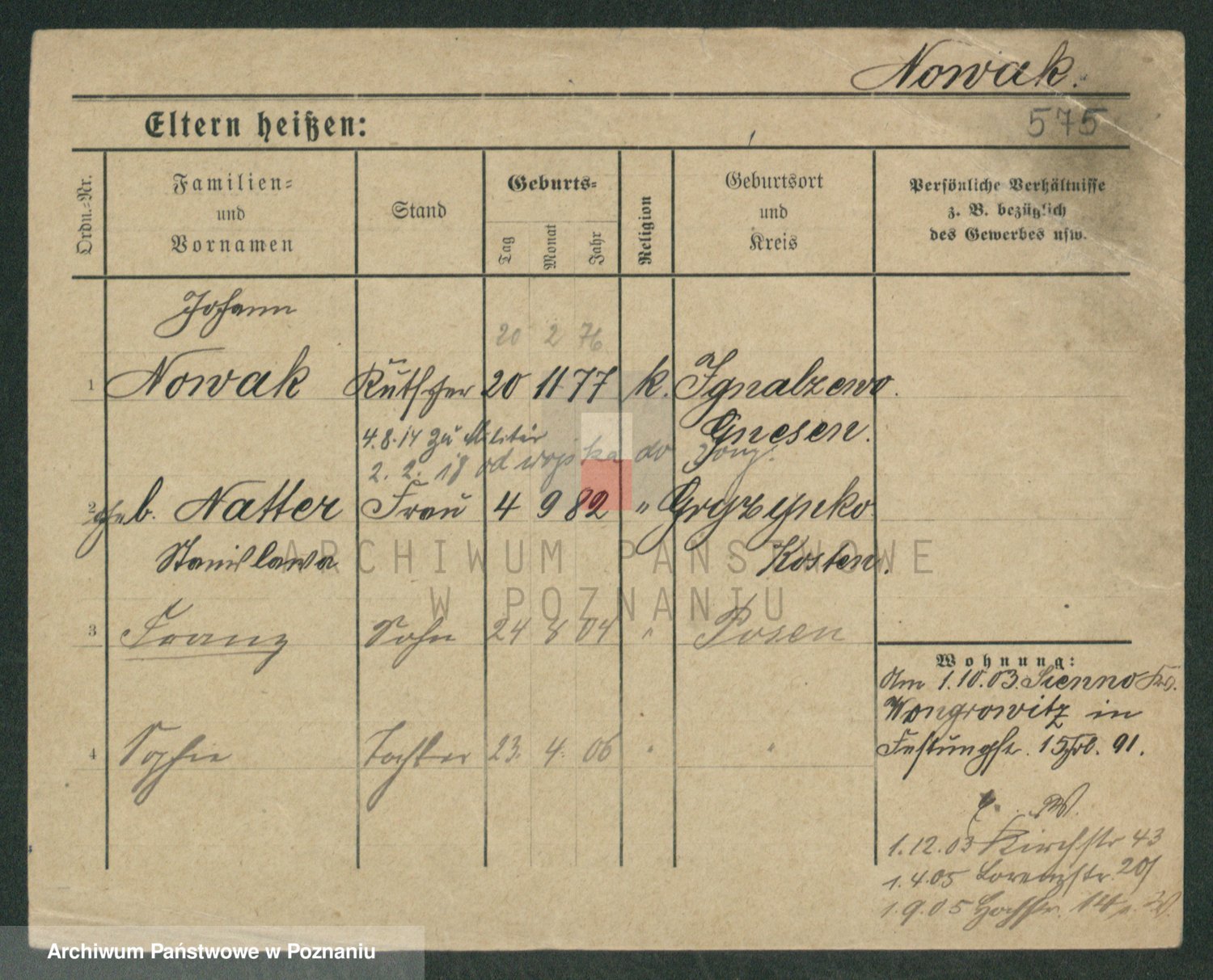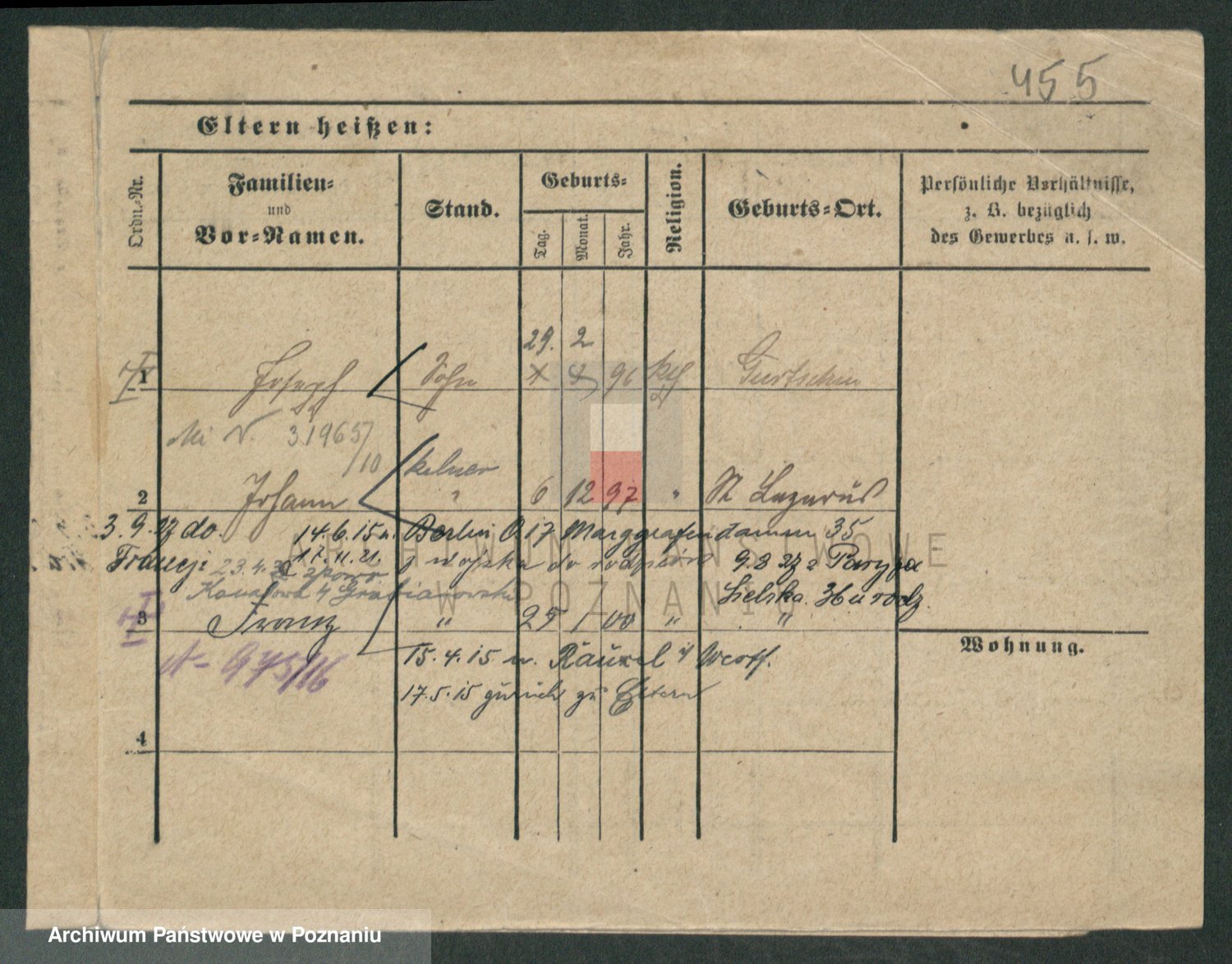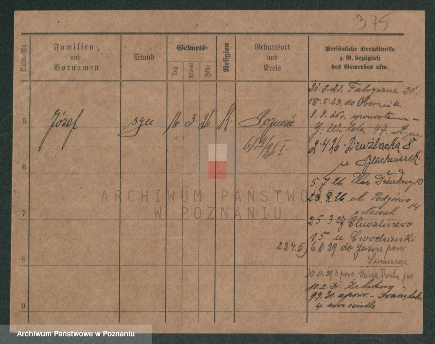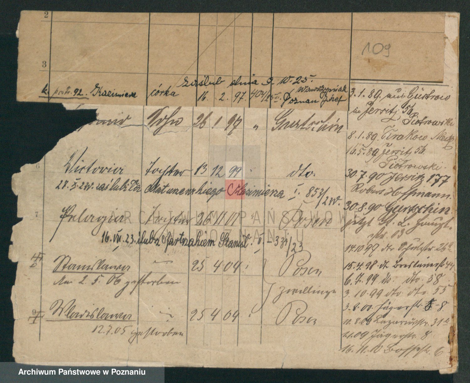 Podgląd karty osobowej dostępny jest po kliknięciu na nazwisko lub ikonkę karty. Można dokonywać powiększenia (ikony na górze) lub przechodzić między kolejnymi skanami (strzałki po bokach).