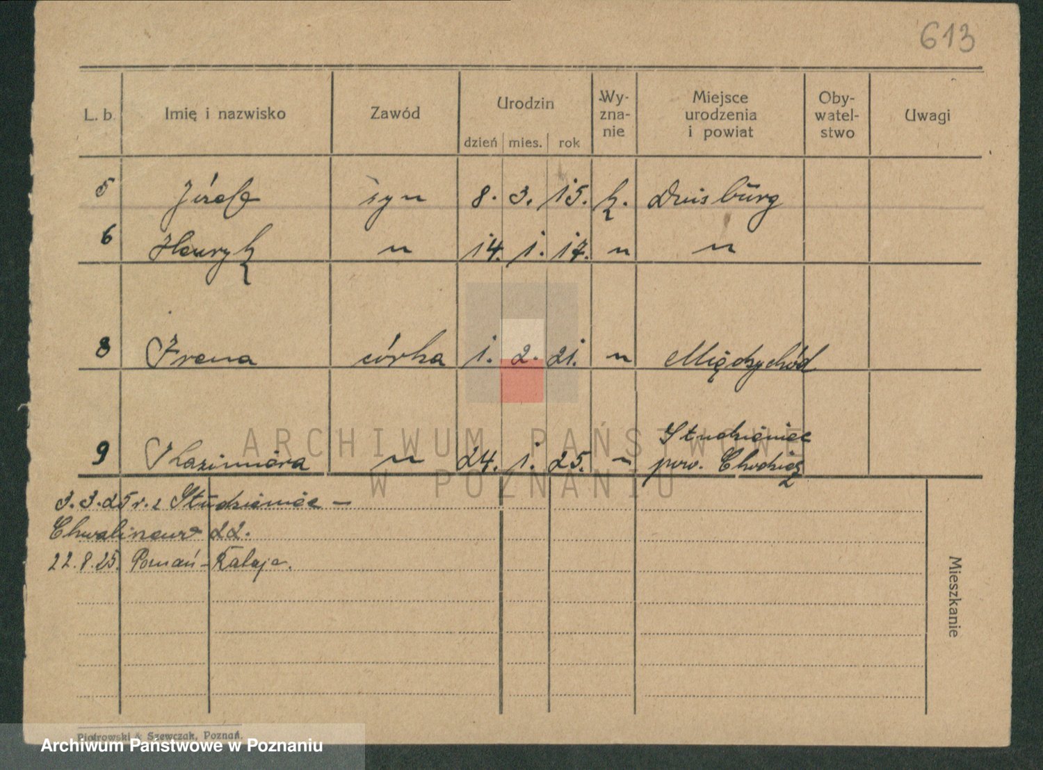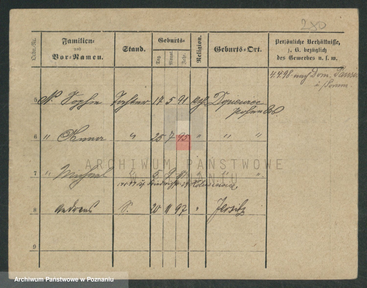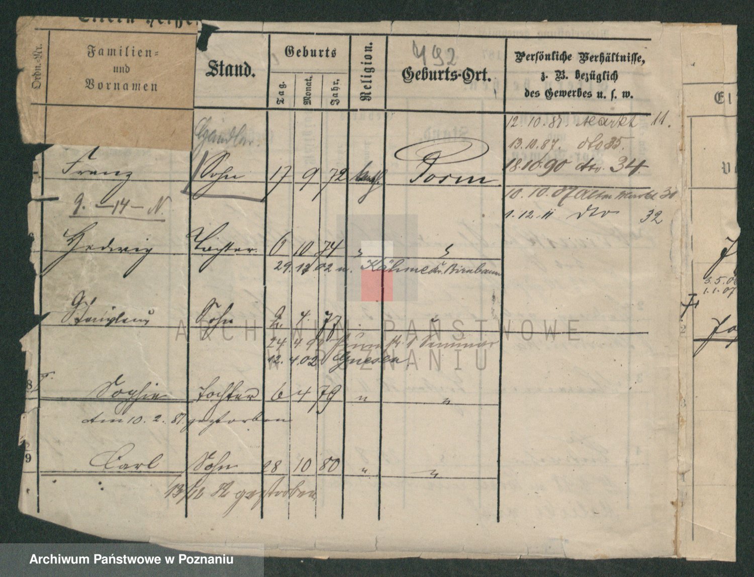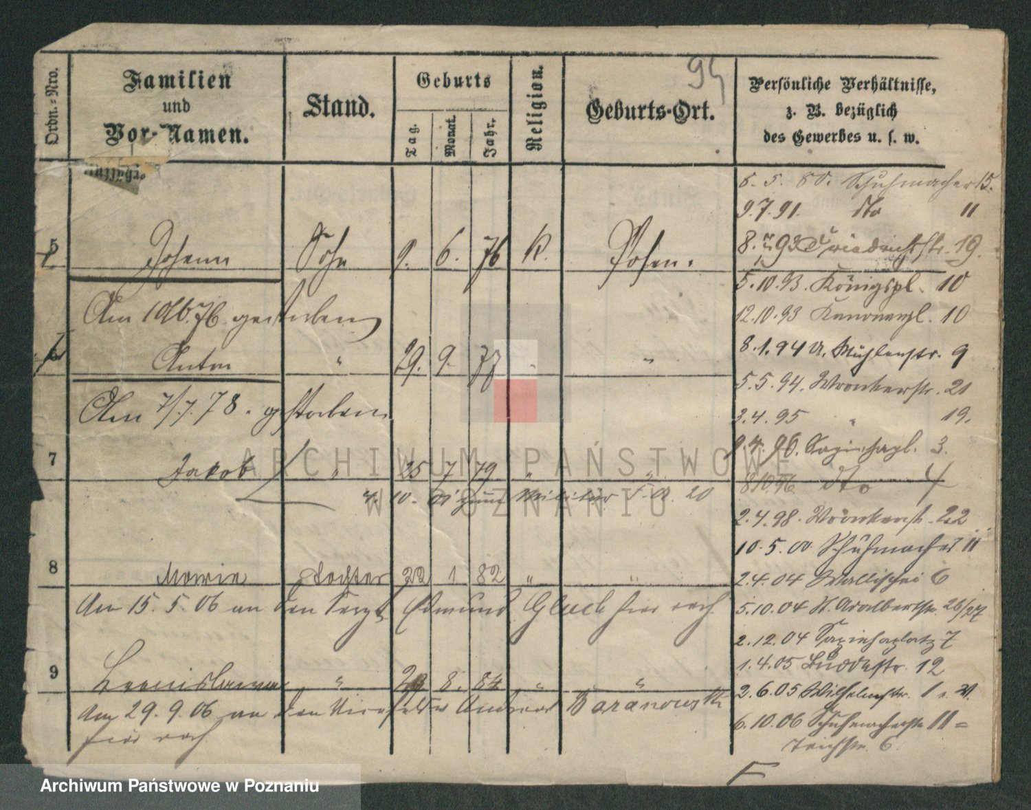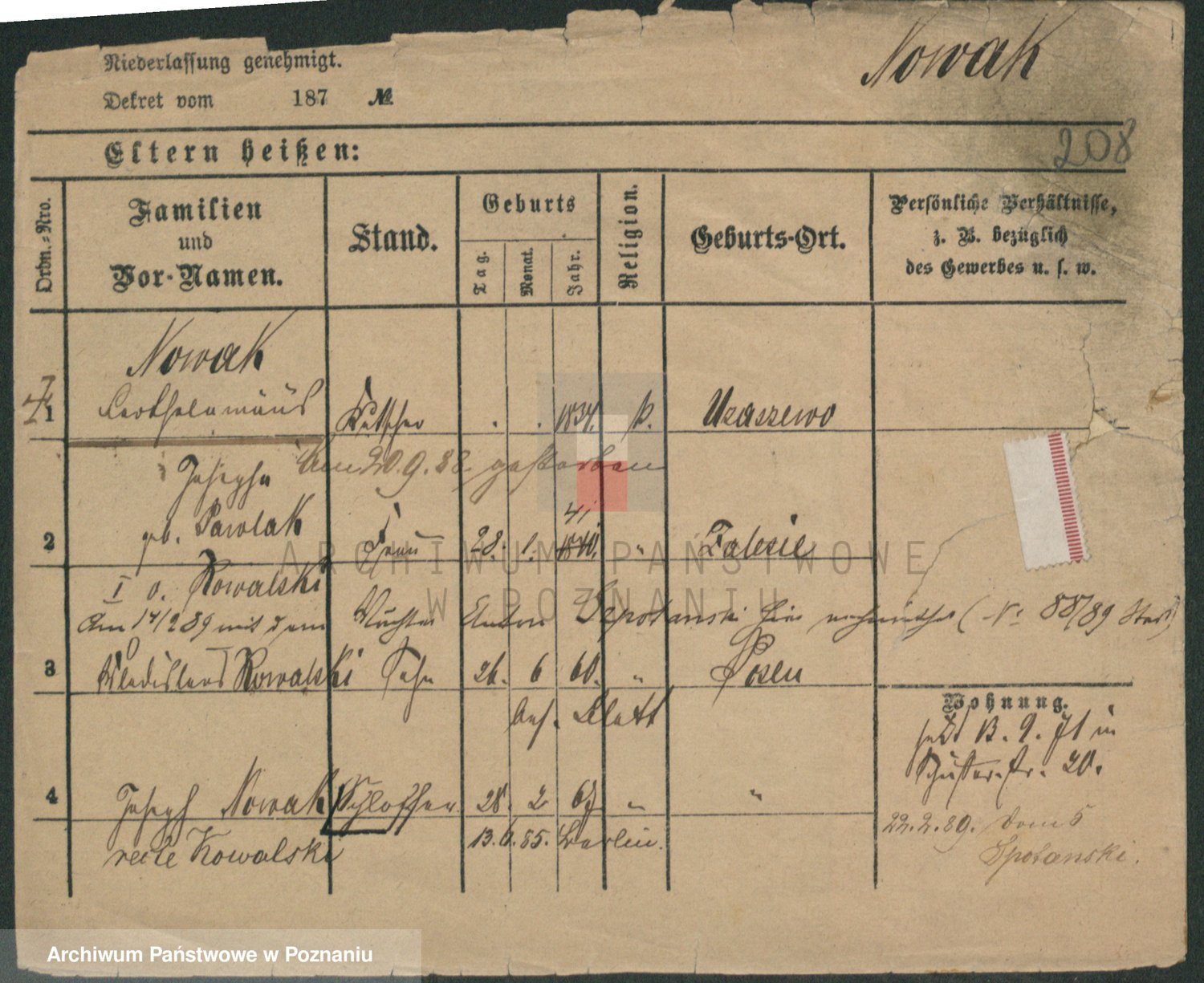 Podgląd karty osobowej dostępny jest po kliknięciu na nazwisko lub ikonkę karty. Można dokonywać powiększenia (ikony na górze) lub przechodzić między kolejnymi skanami (strzałki po bokach).