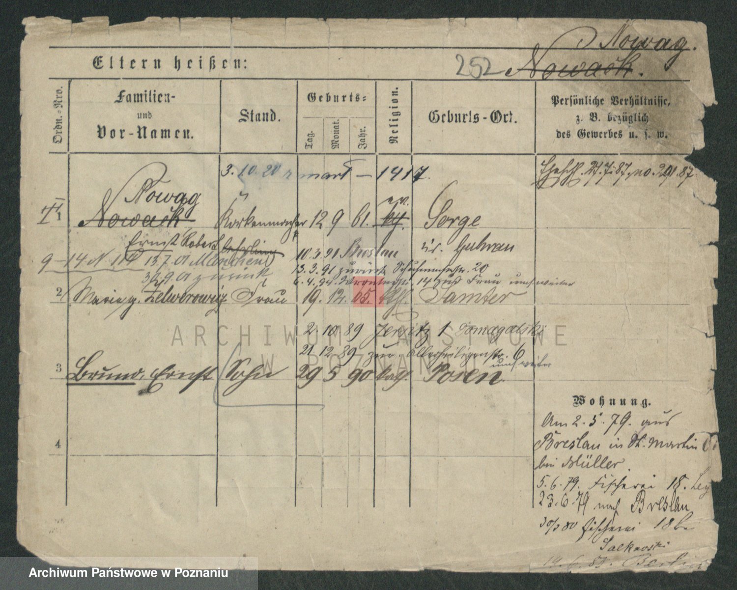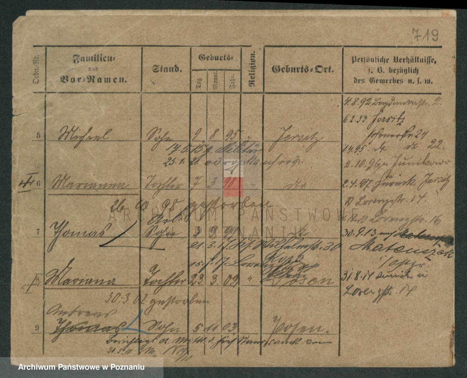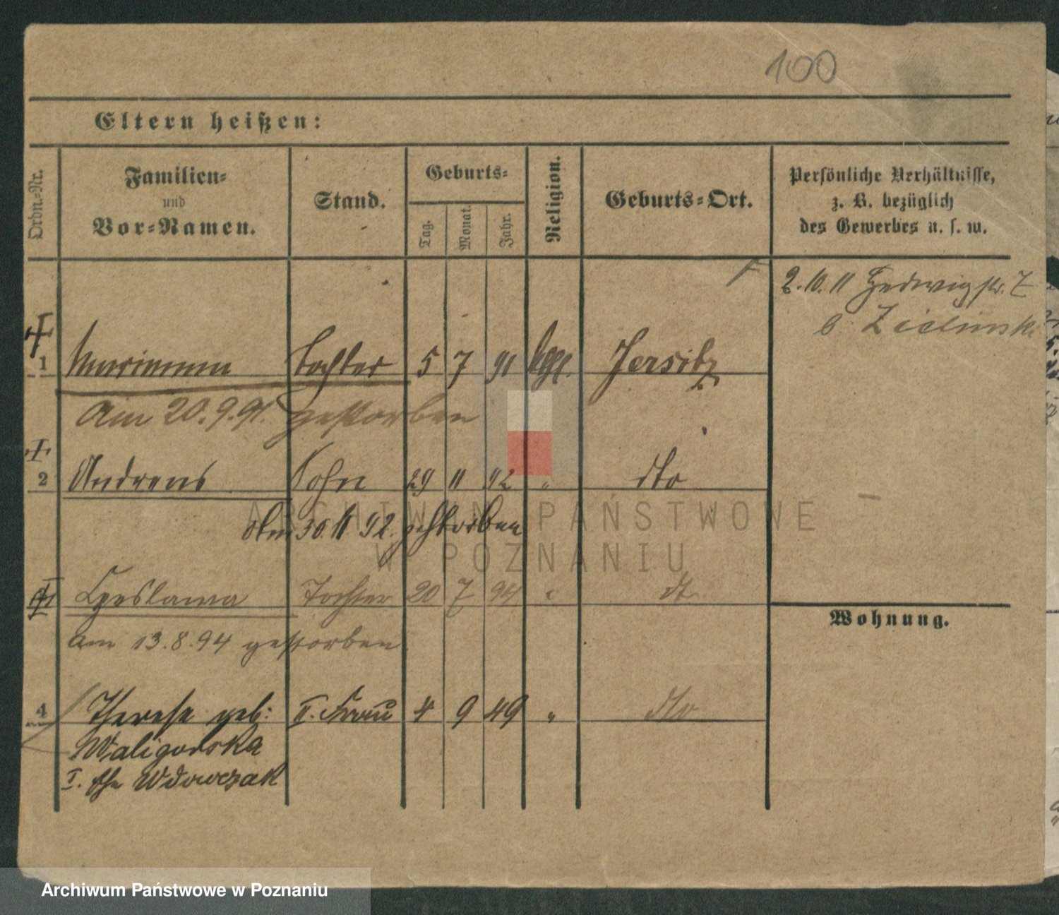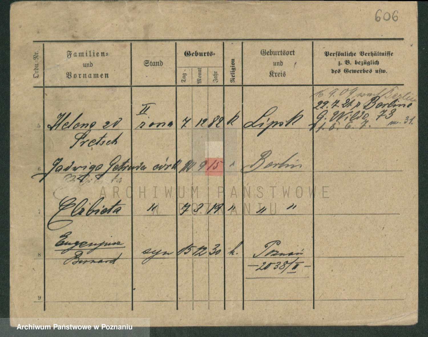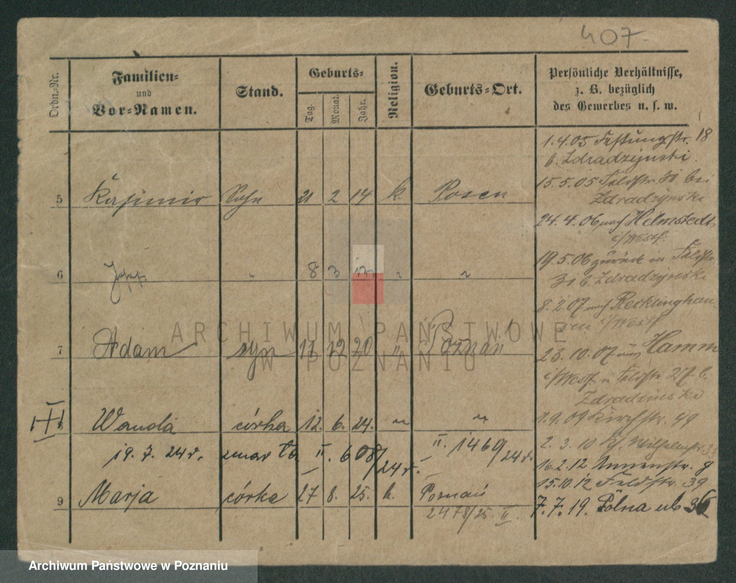 Podgląd karty osobowej dostępny jest po kliknięciu na nazwisko lub ikonkę karty. Można dokonywać powiększenia (ikony na górze) lub przechodzić między kolejnymi skanami (strzałki po bokach).