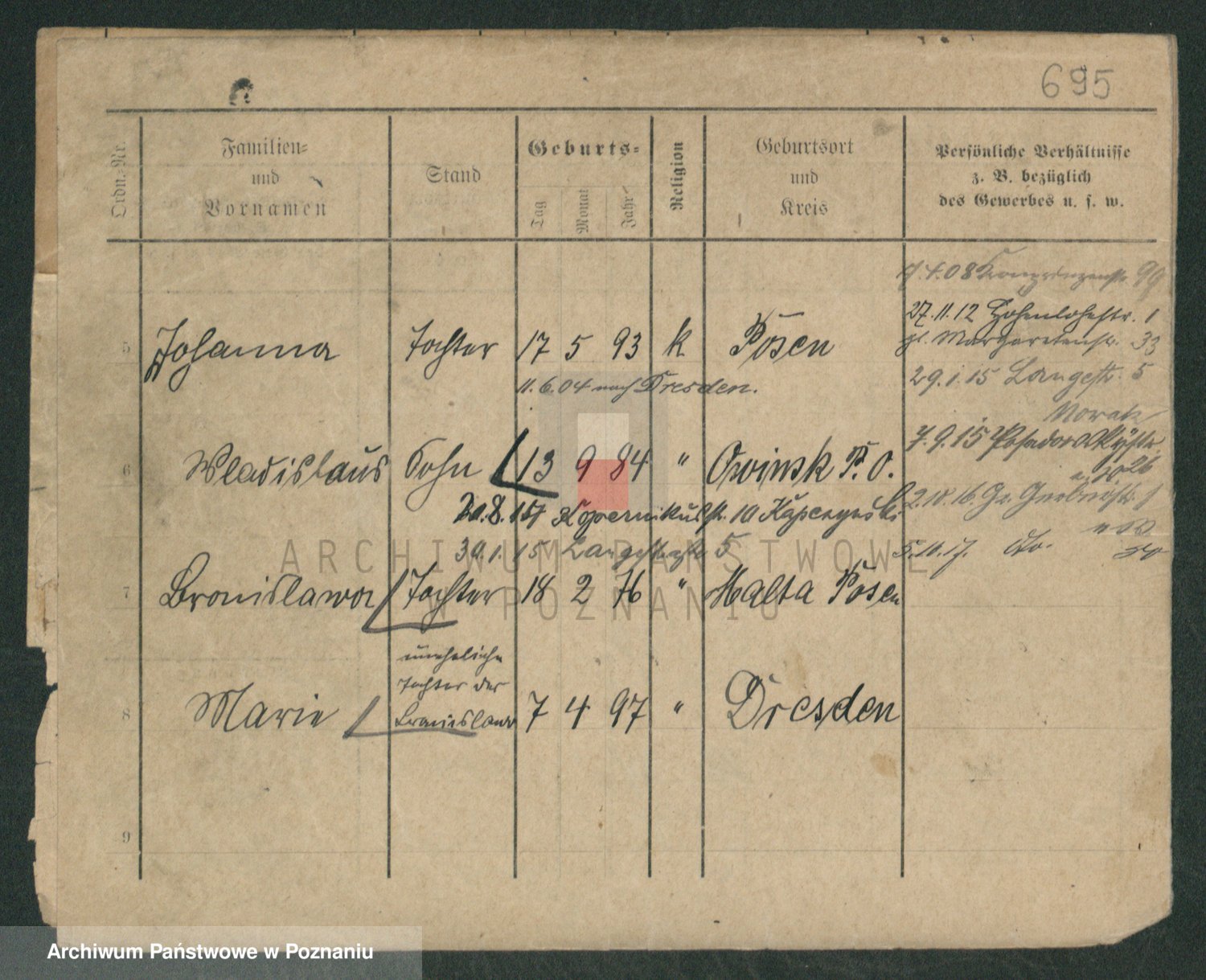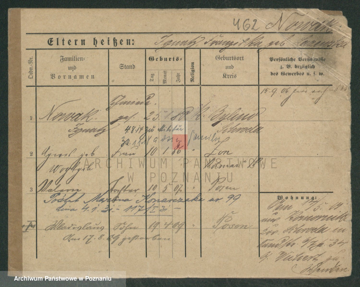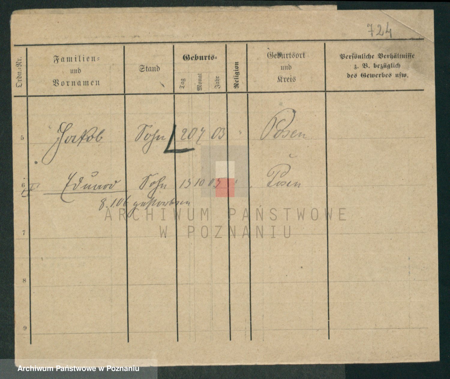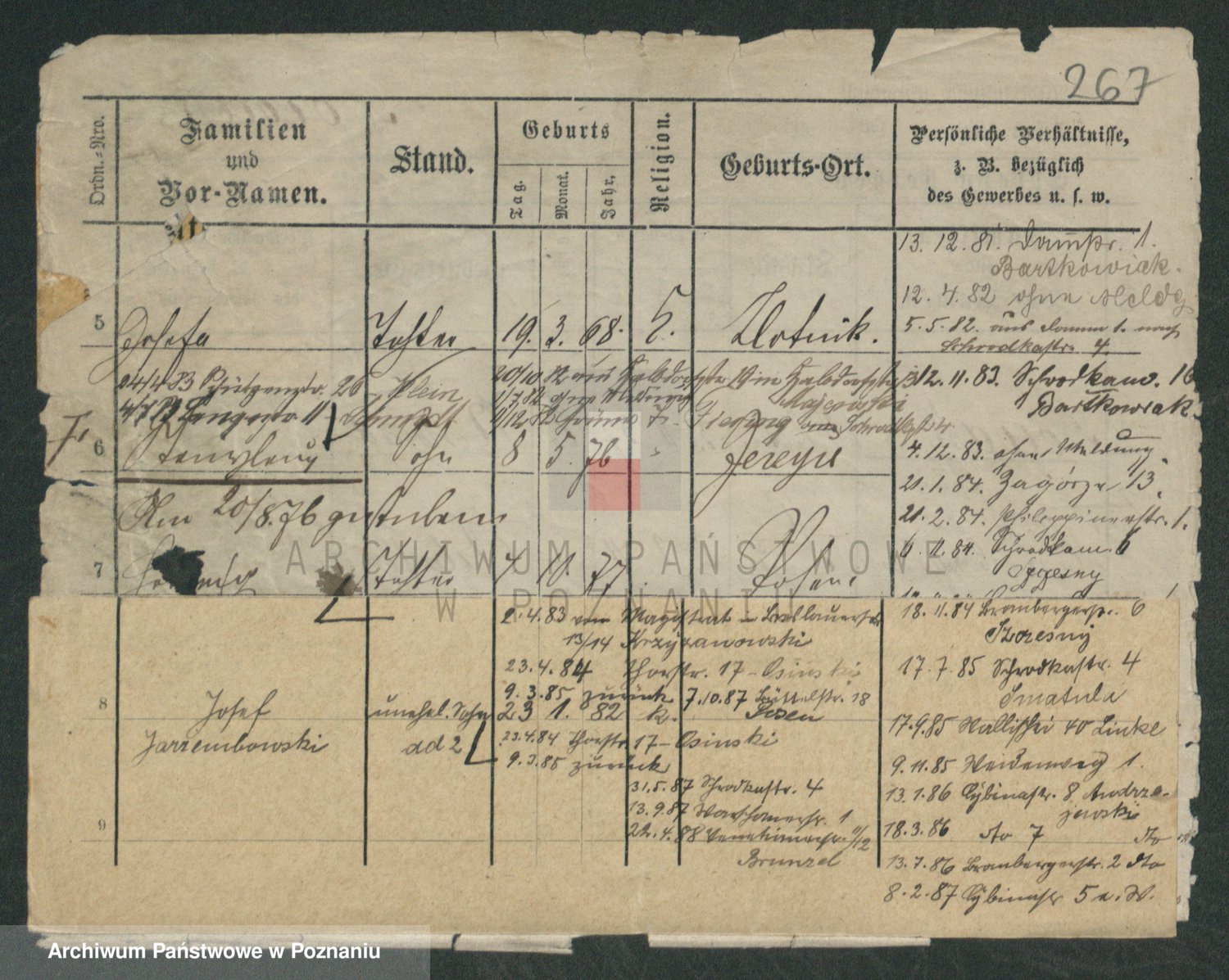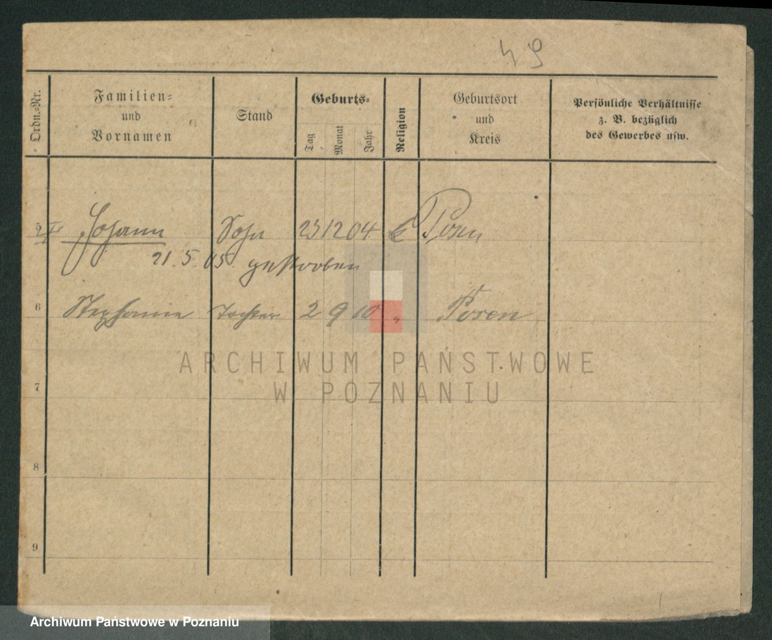 Podgląd karty osobowej dostępny jest po kliknięciu na nazwisko lub ikonkę karty. Można dokonywać powiększenia (ikony na górze) lub przechodzić między kolejnymi skanami (strzałki po bokach).