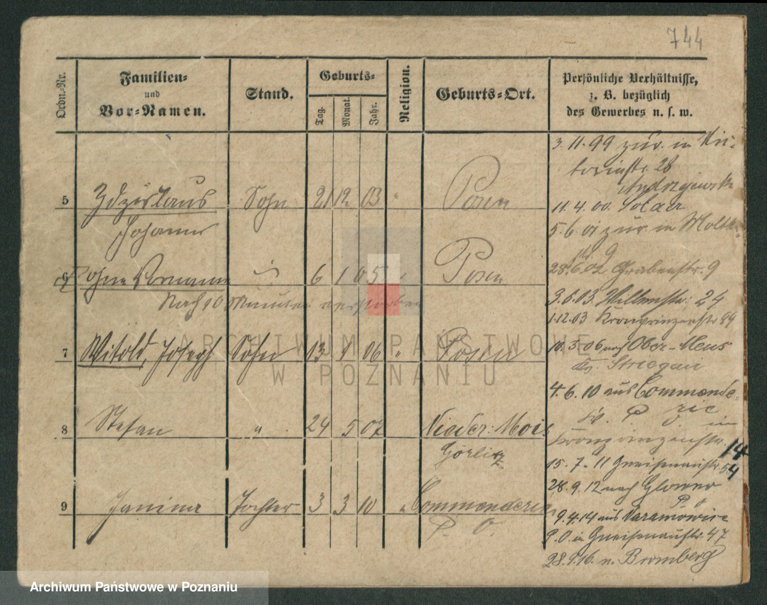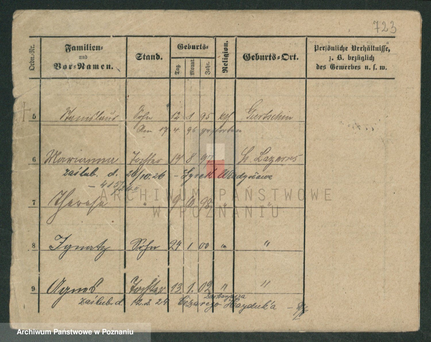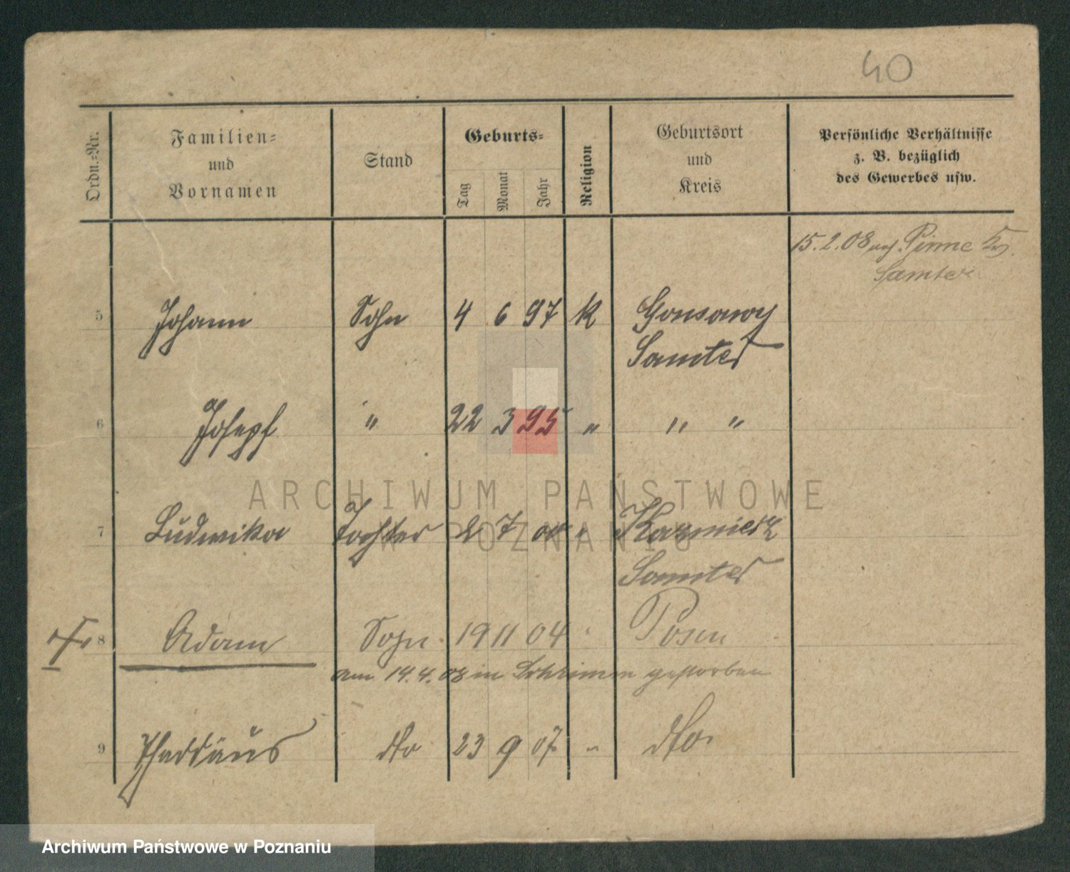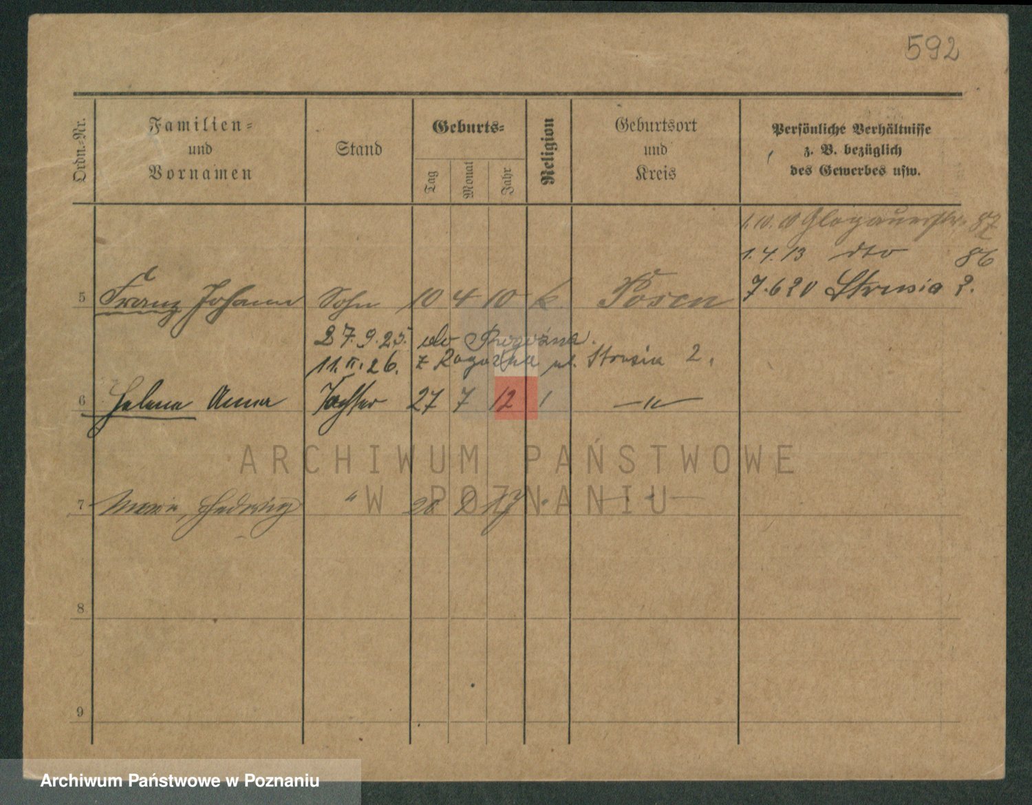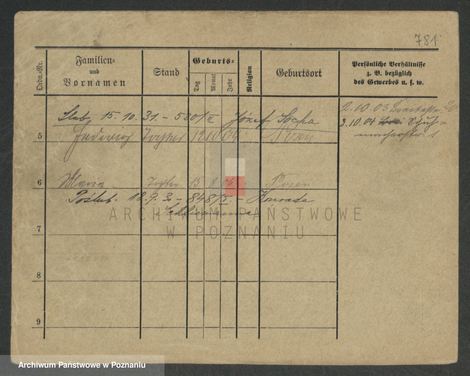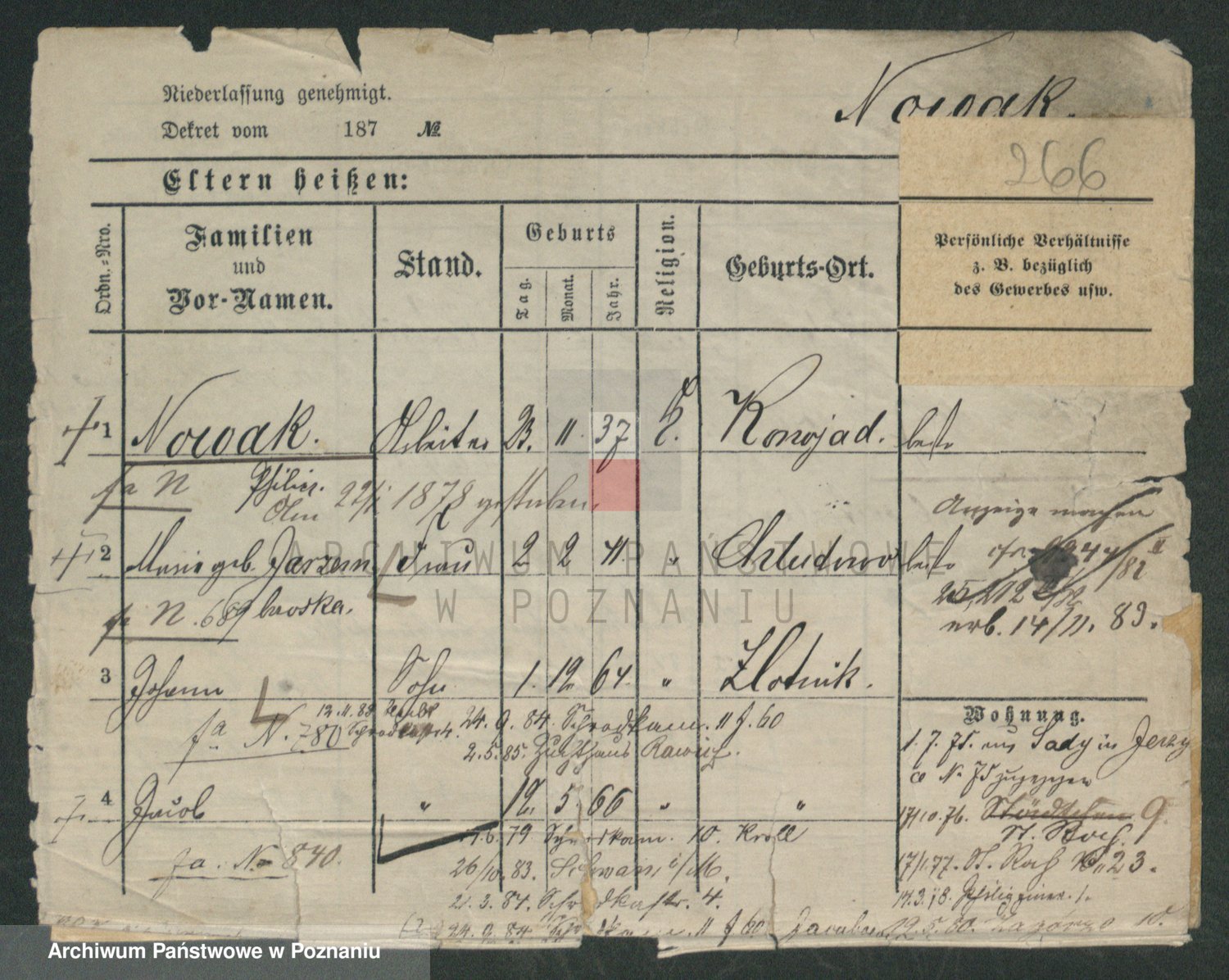 Podgląd karty osobowej dostępny jest po kliknięciu na nazwisko lub ikonkę karty. Można dokonywać powiększenia (ikony na górze) lub przechodzić między kolejnymi skanami (strzałki po bokach).
