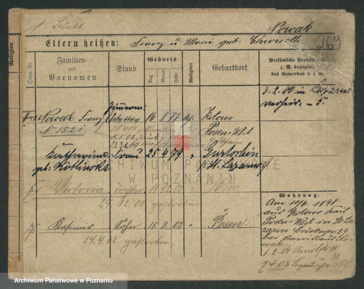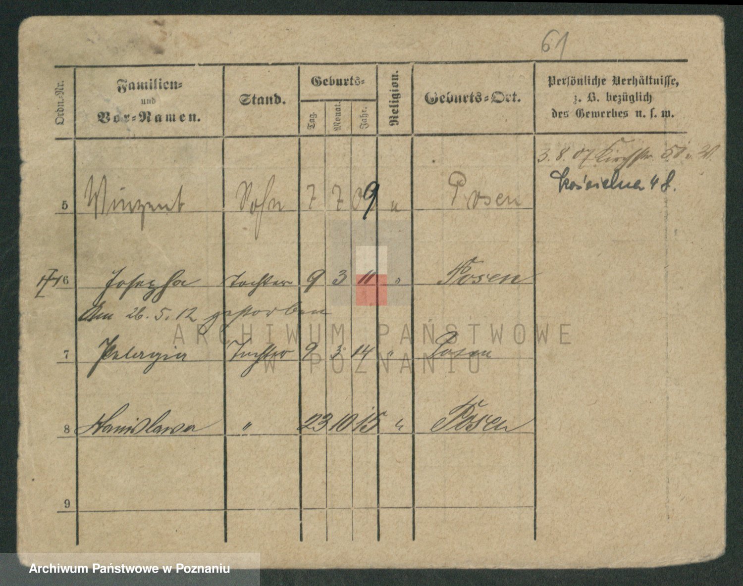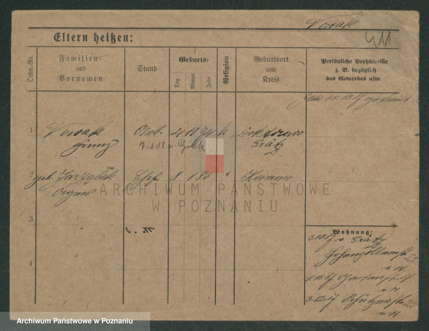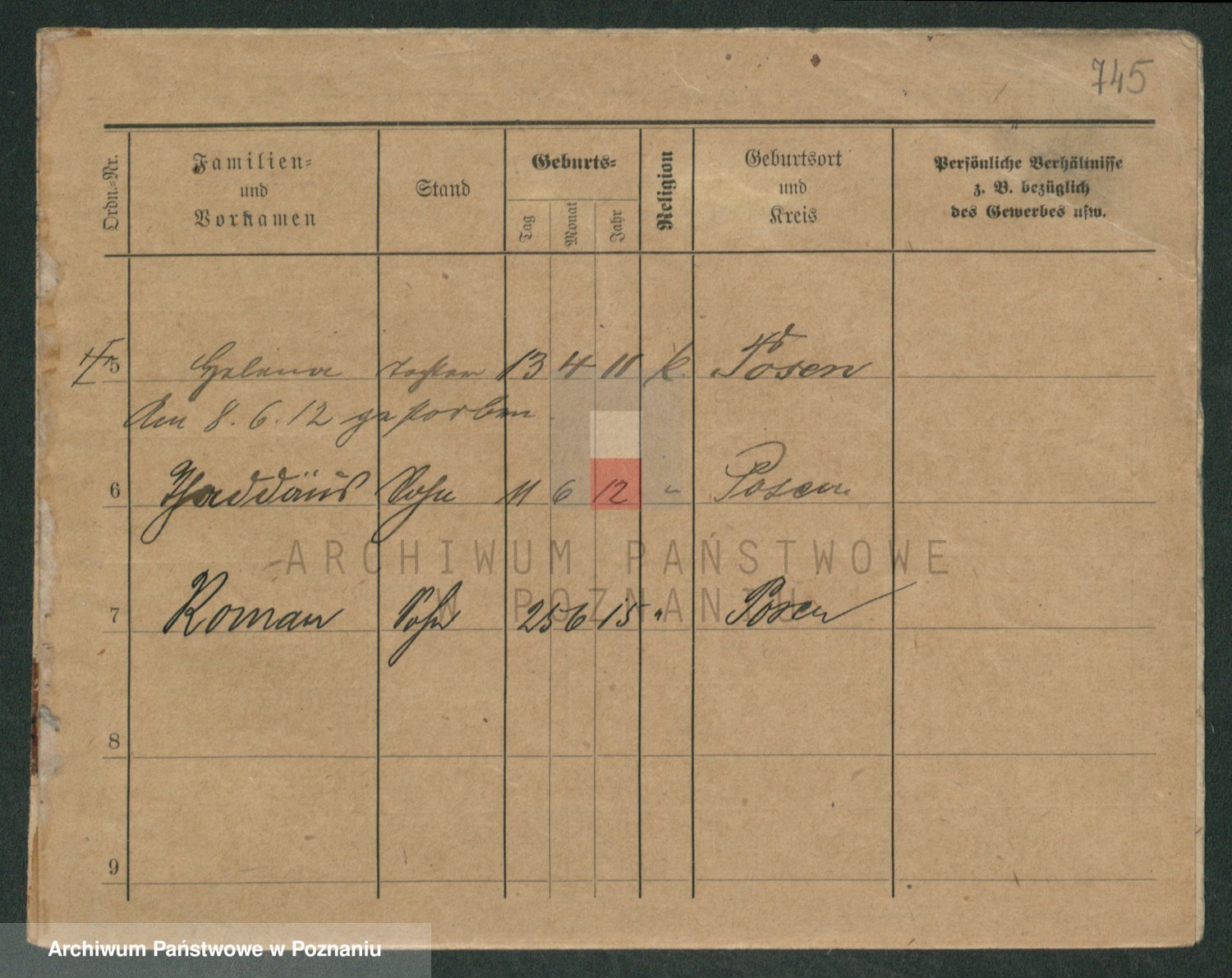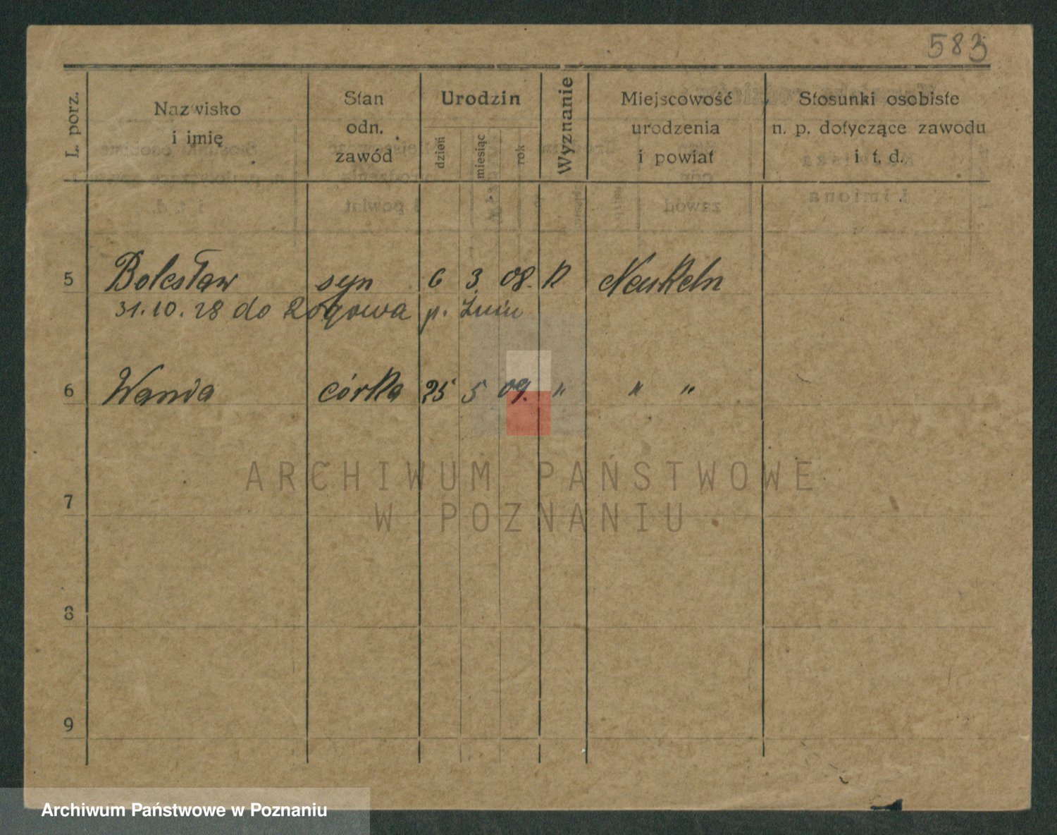 Podgląd karty osobowej dostępny jest po kliknięciu na nazwisko lub ikonkę karty. Można dokonywać powiększenia (ikony na górze) lub przechodzić między kolejnymi skanami (strzałki po bokach).