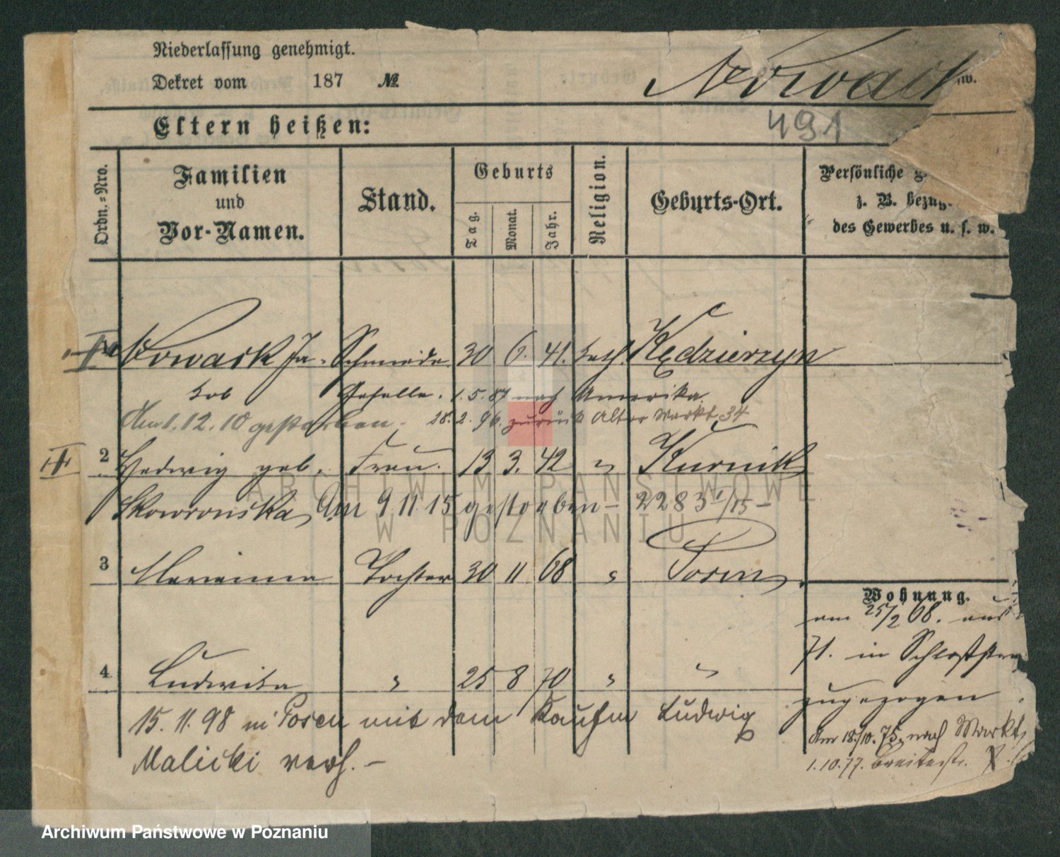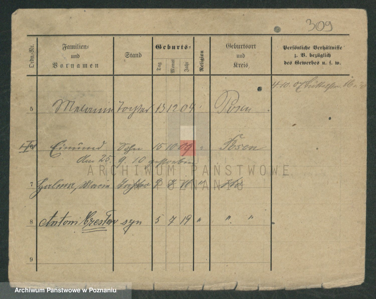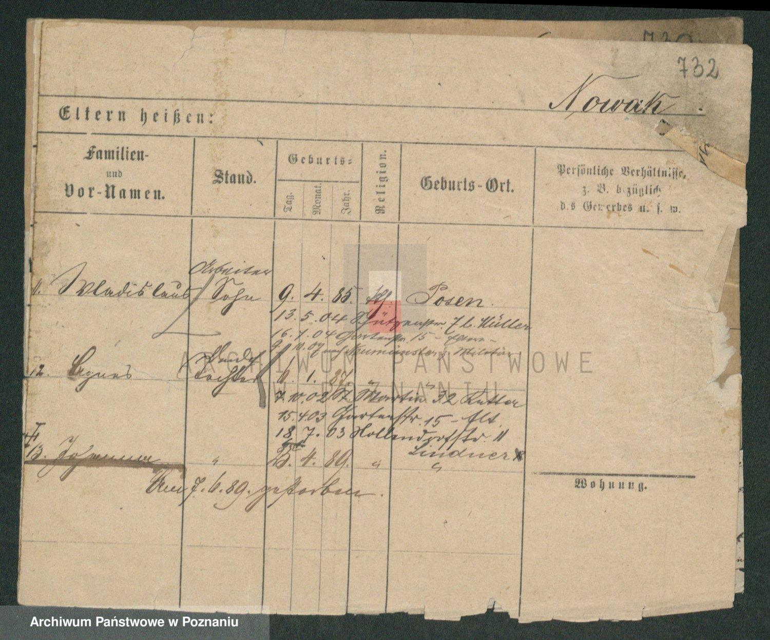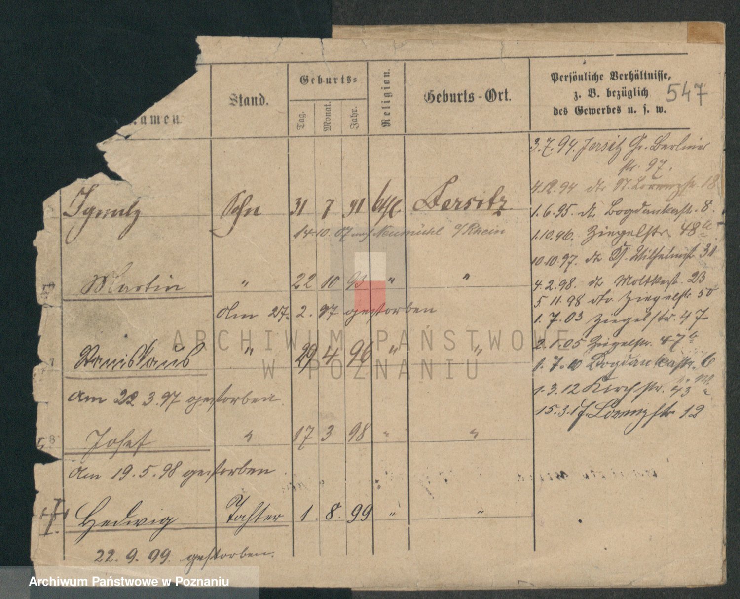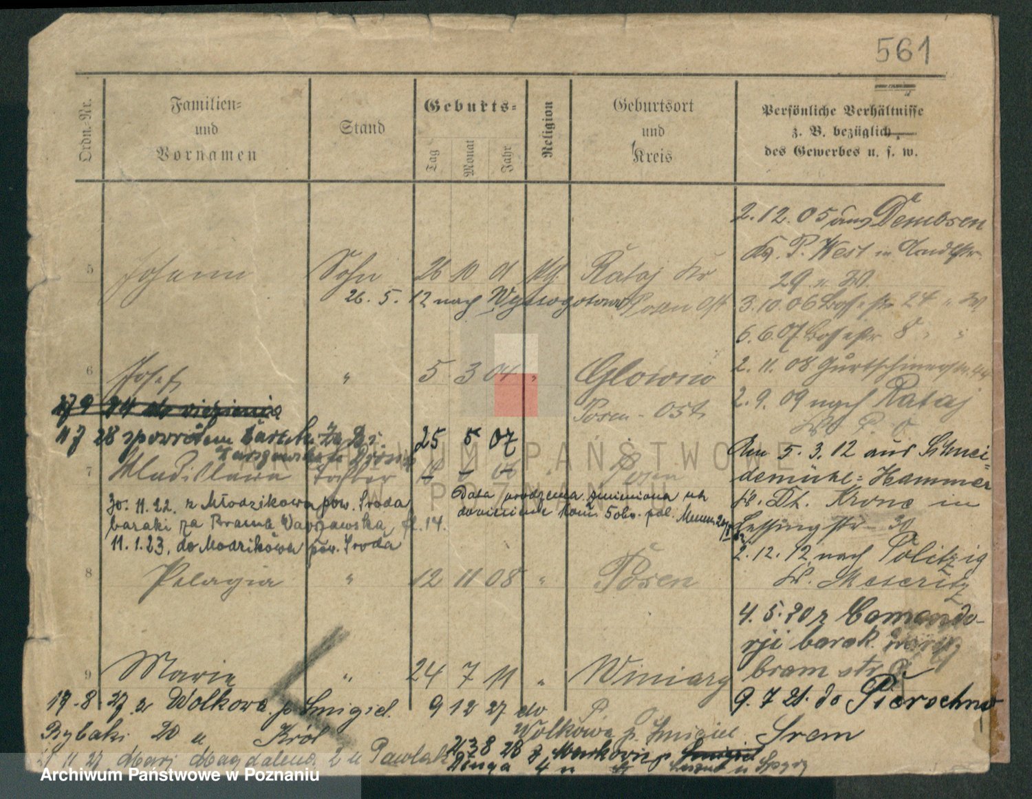 Podgląd karty osobowej dostępny jest po kliknięciu na nazwisko lub ikonkę karty. Można dokonywać powiększenia (ikony na górze) lub przechodzić między kolejnymi skanami (strzałki po bokach).