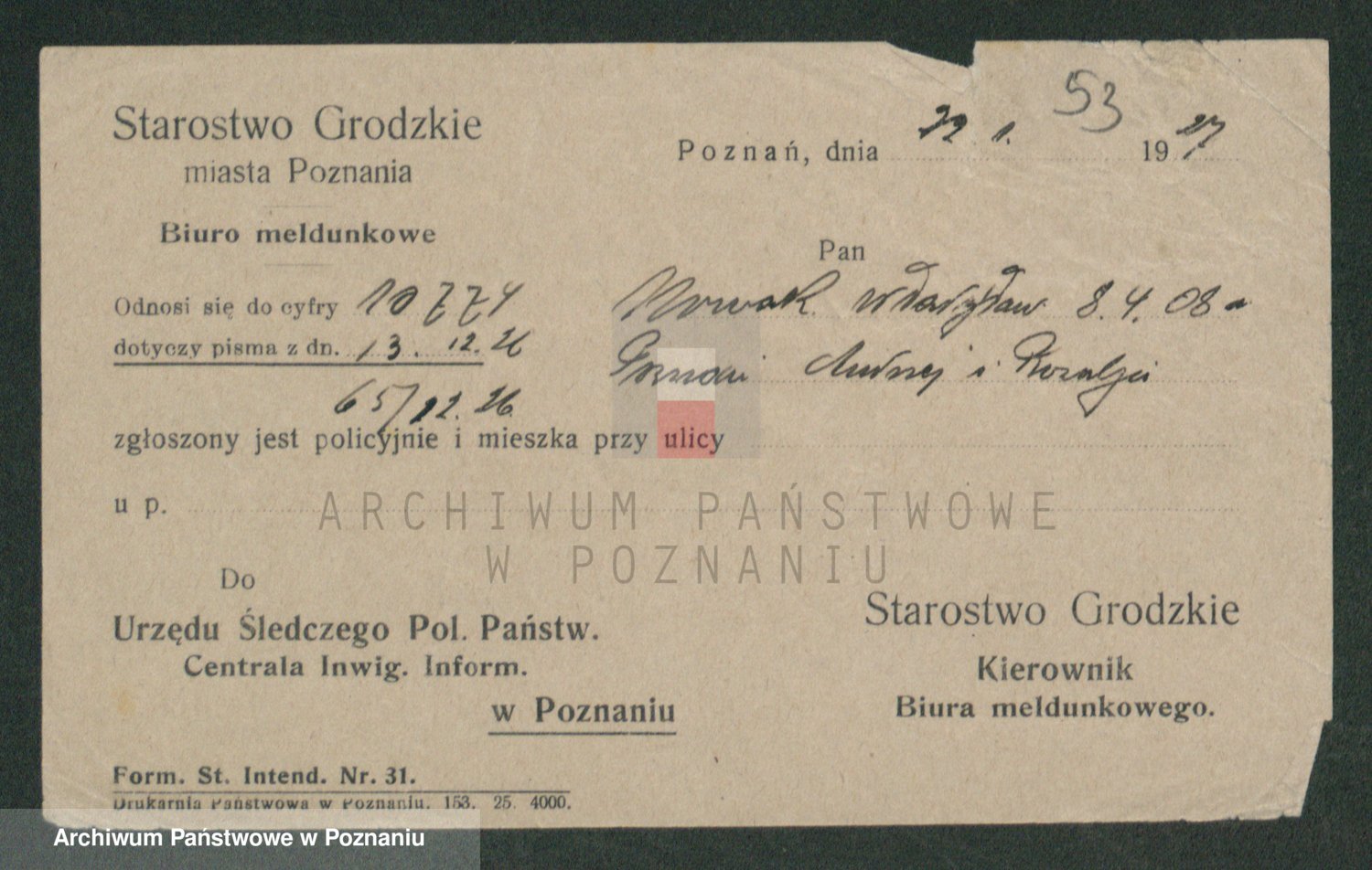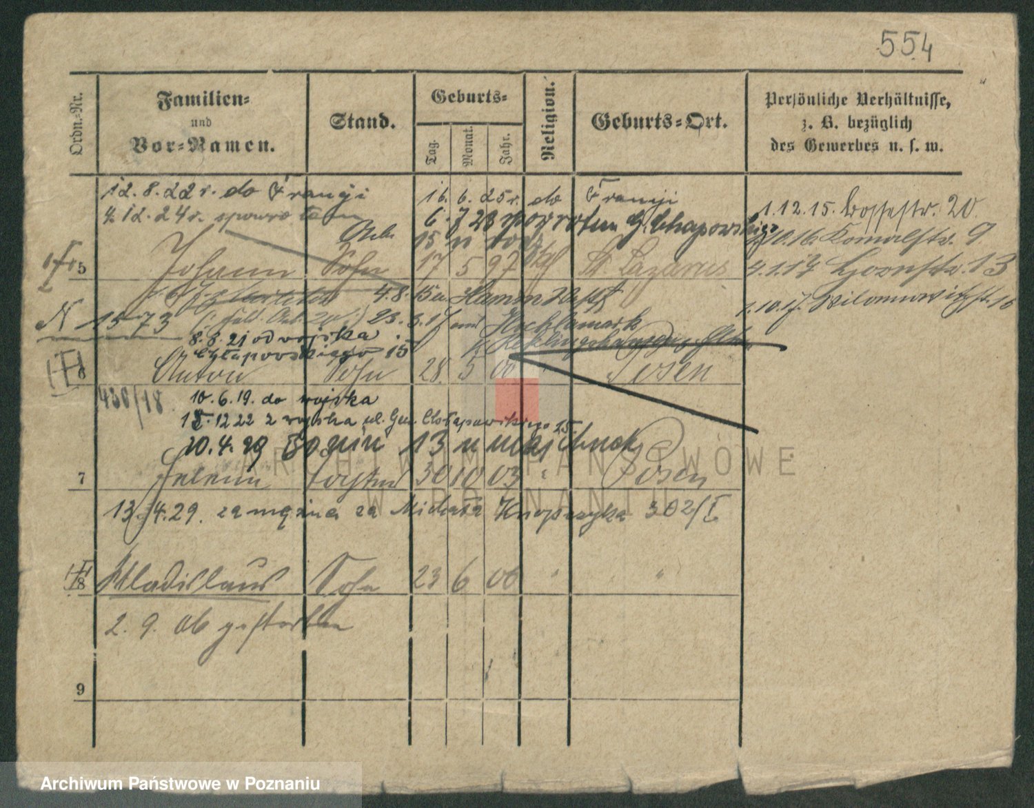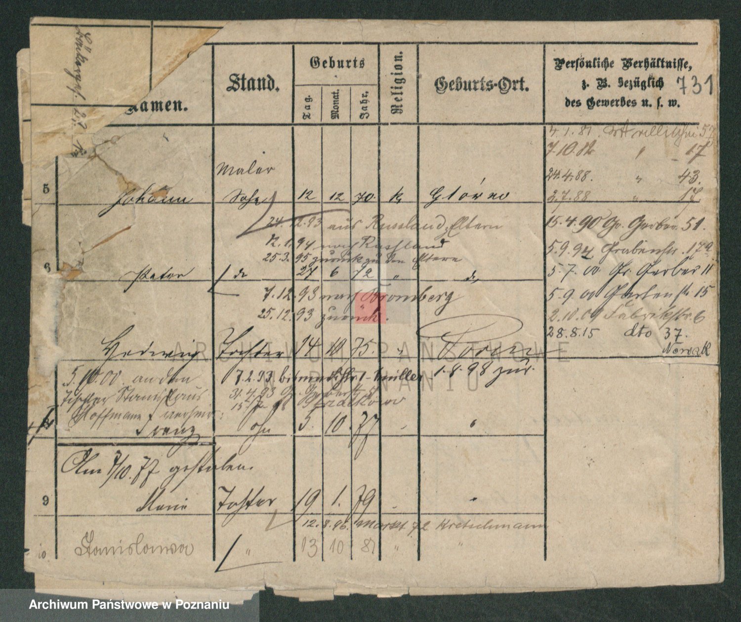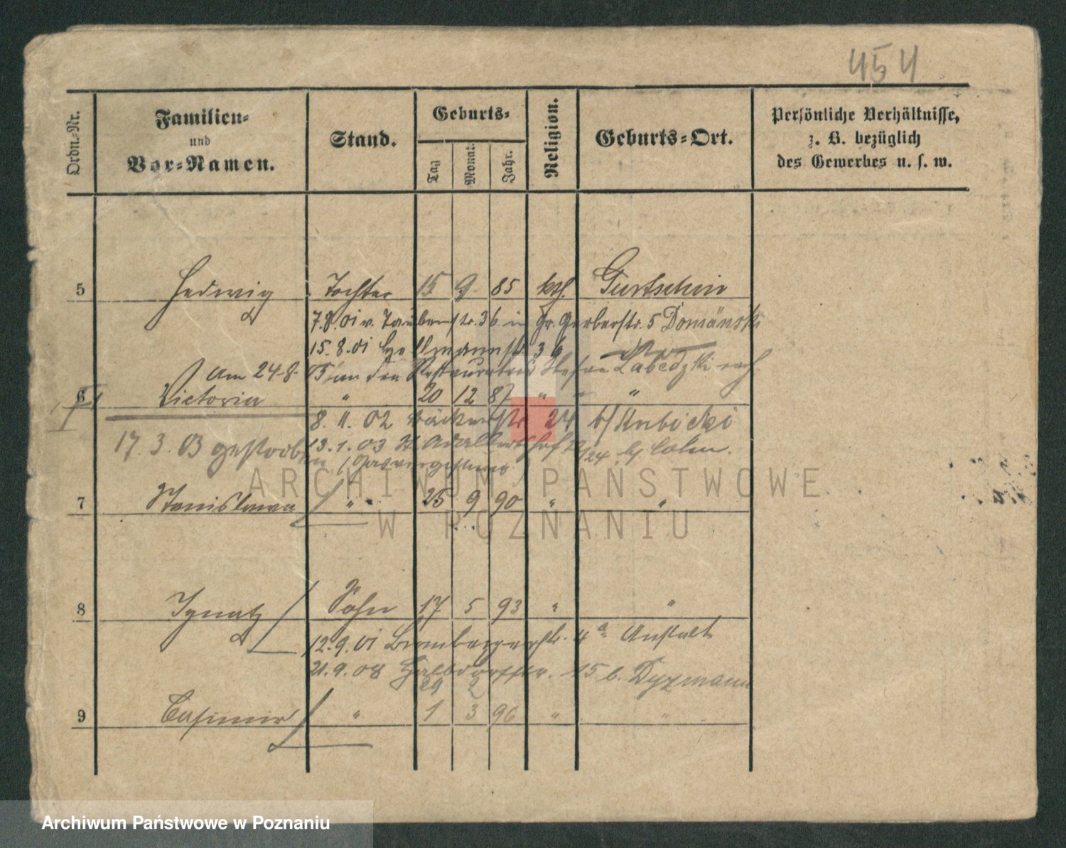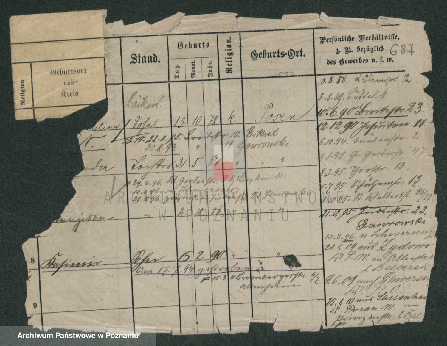 Podgląd karty osobowej dostępny jest po kliknięciu na nazwisko lub ikonkę karty. Można dokonywać powiększenia (ikony na górze) lub przechodzić między kolejnymi skanami (strzałki po bokach).