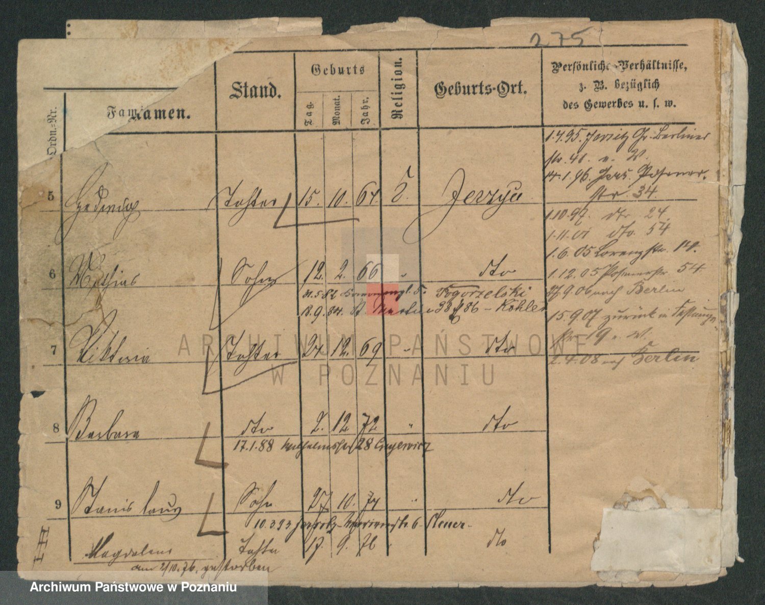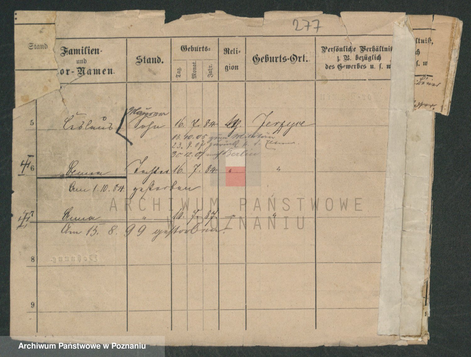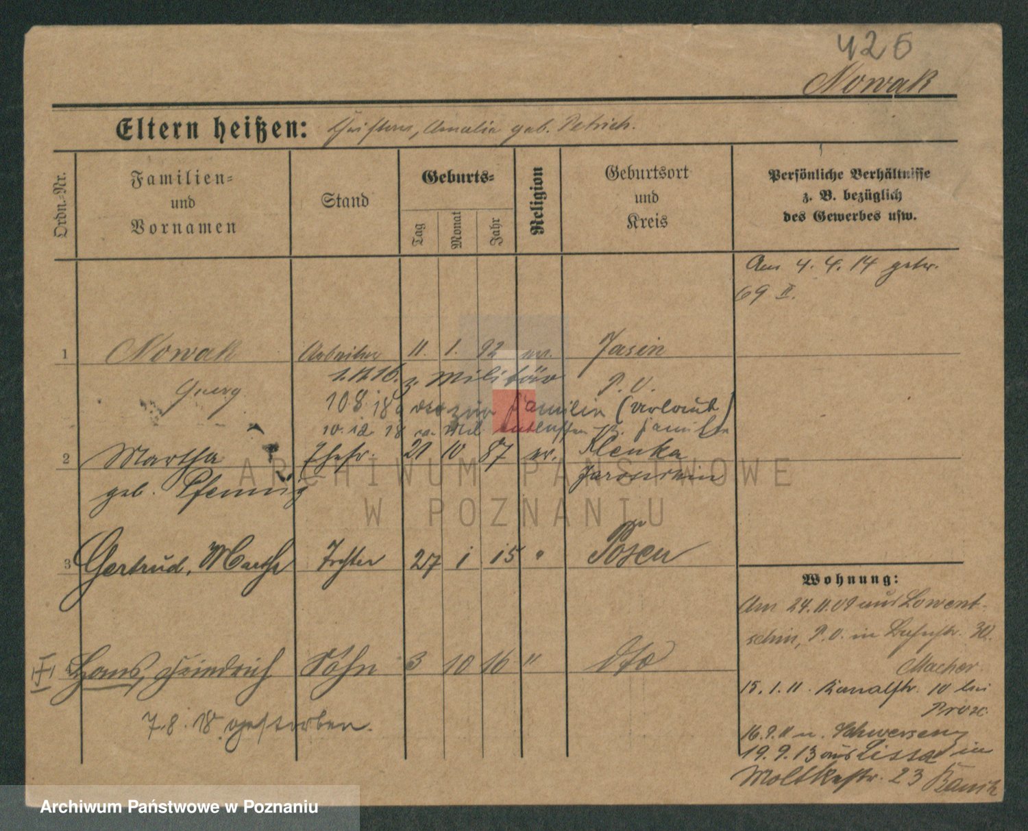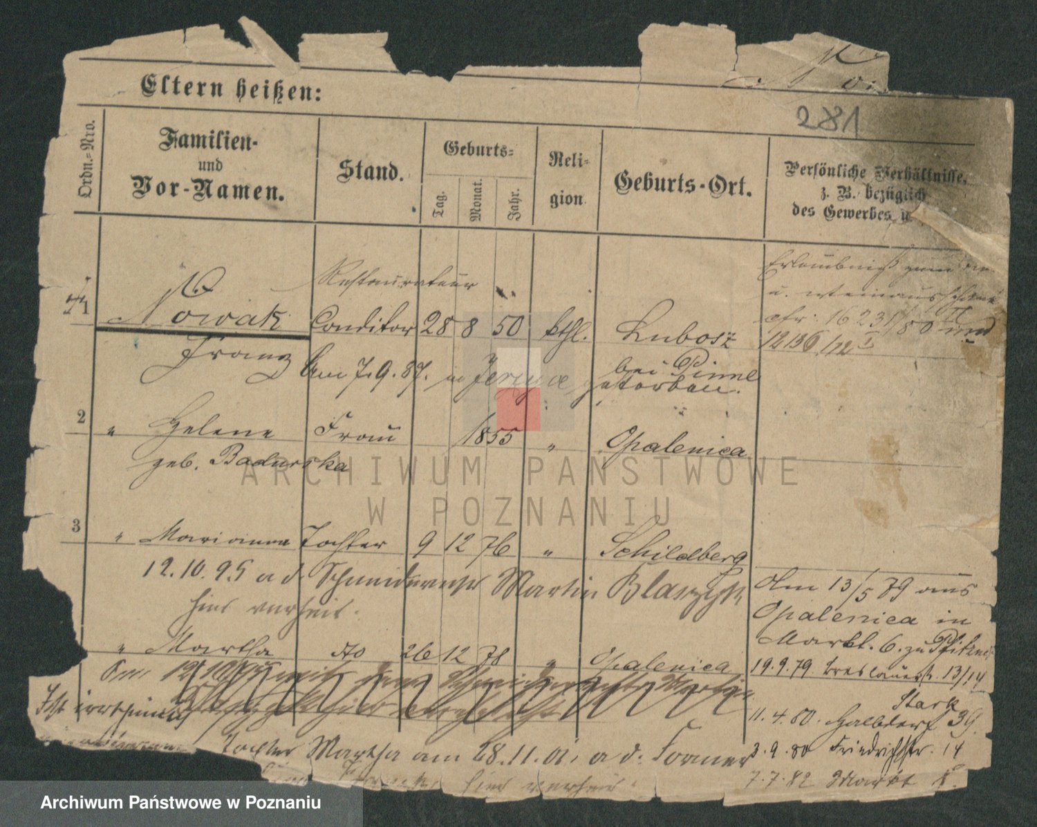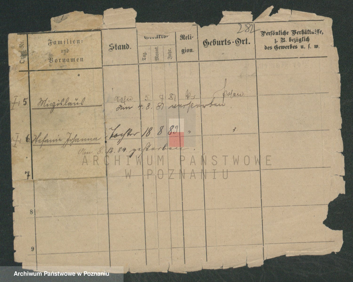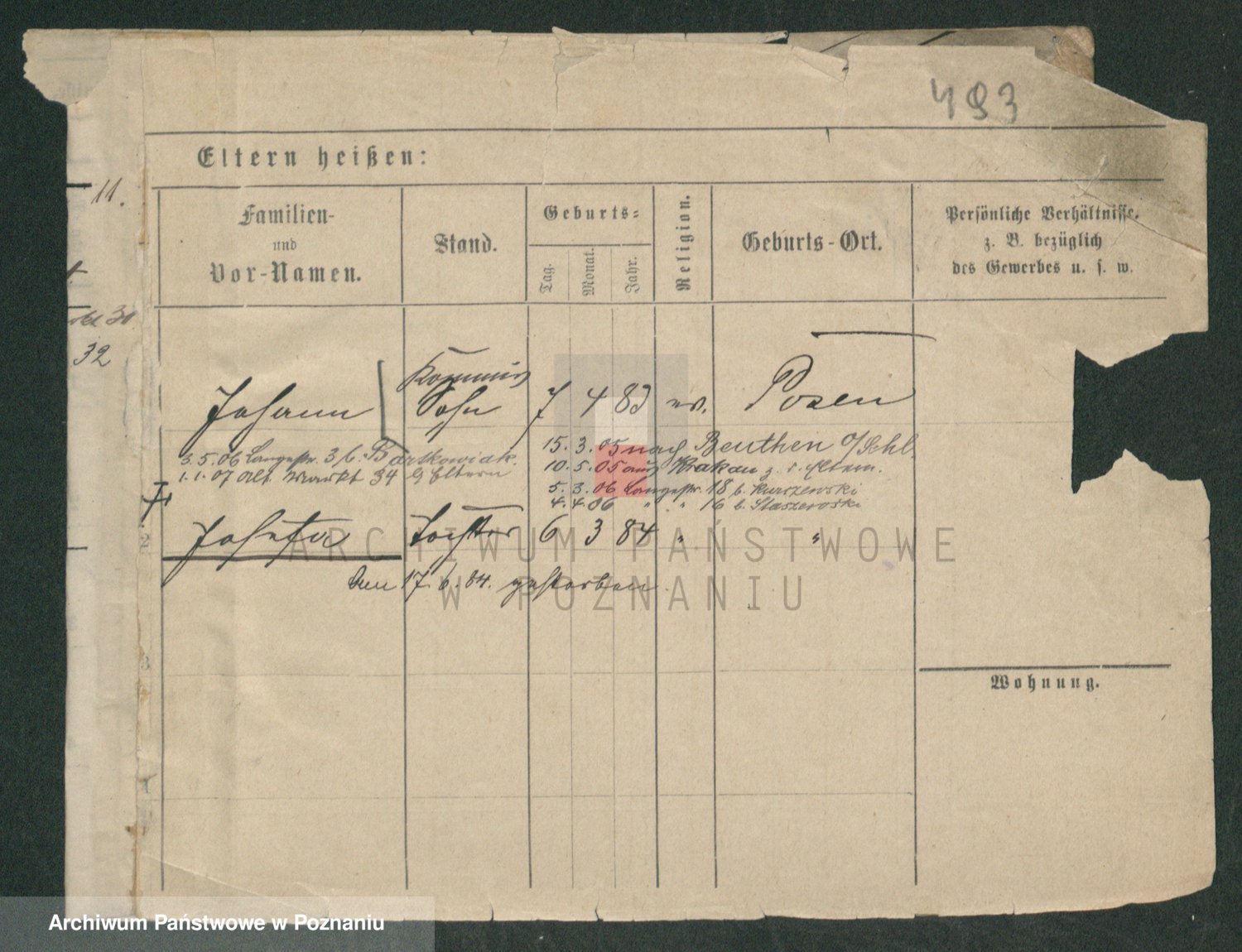 Podgląd karty osobowej dostępny jest po kliknięciu na nazwisko lub ikonkę karty. Można dokonywać powiększenia (ikony na górze) lub przechodzić między kolejnymi skanami (strzałki po bokach).