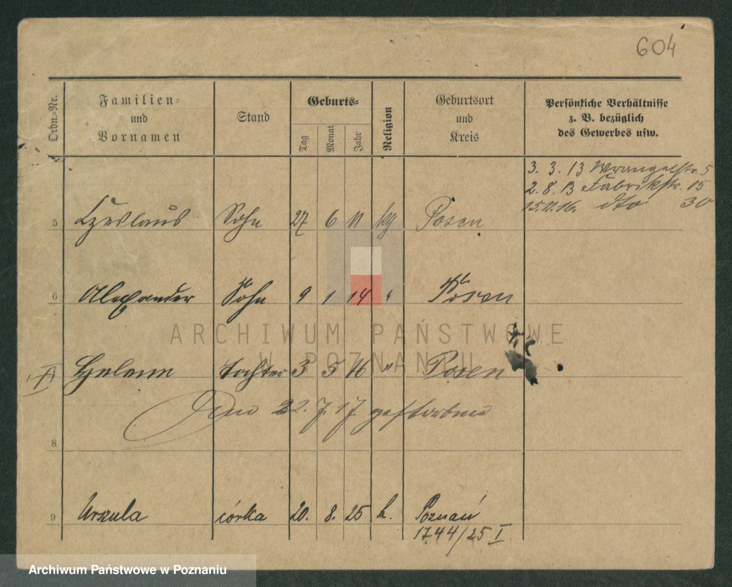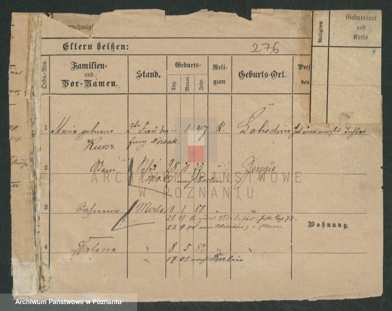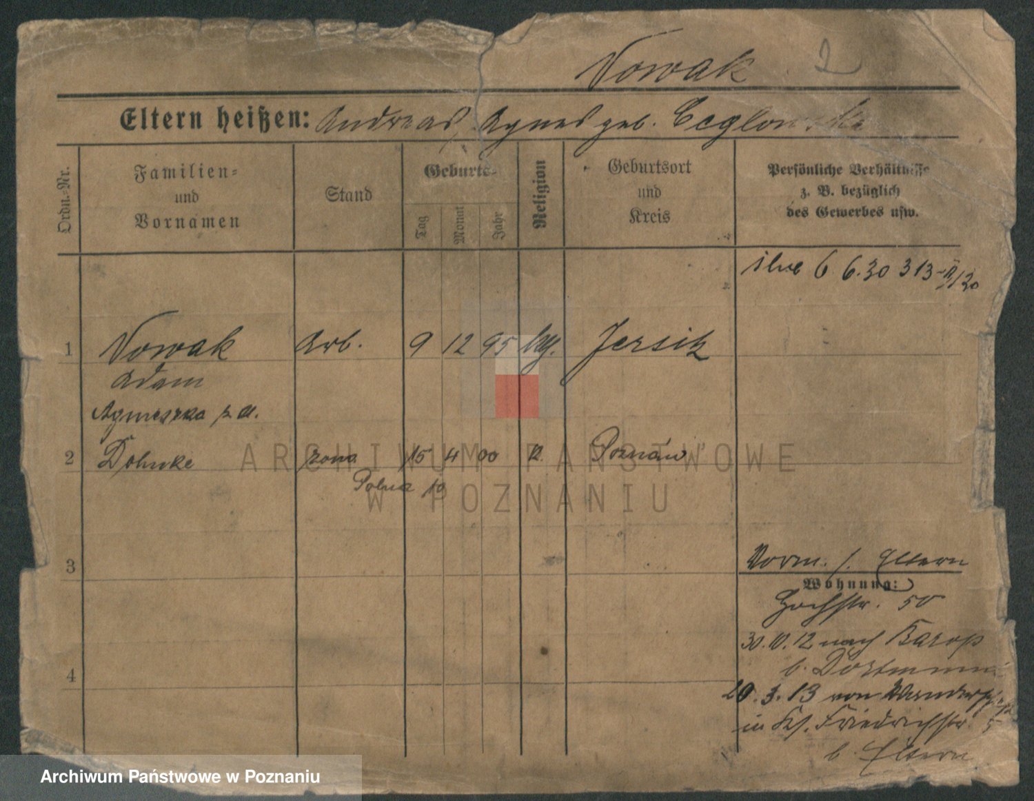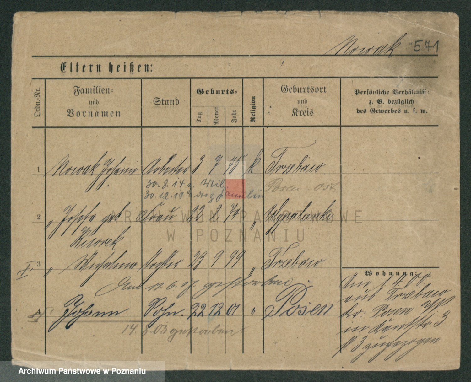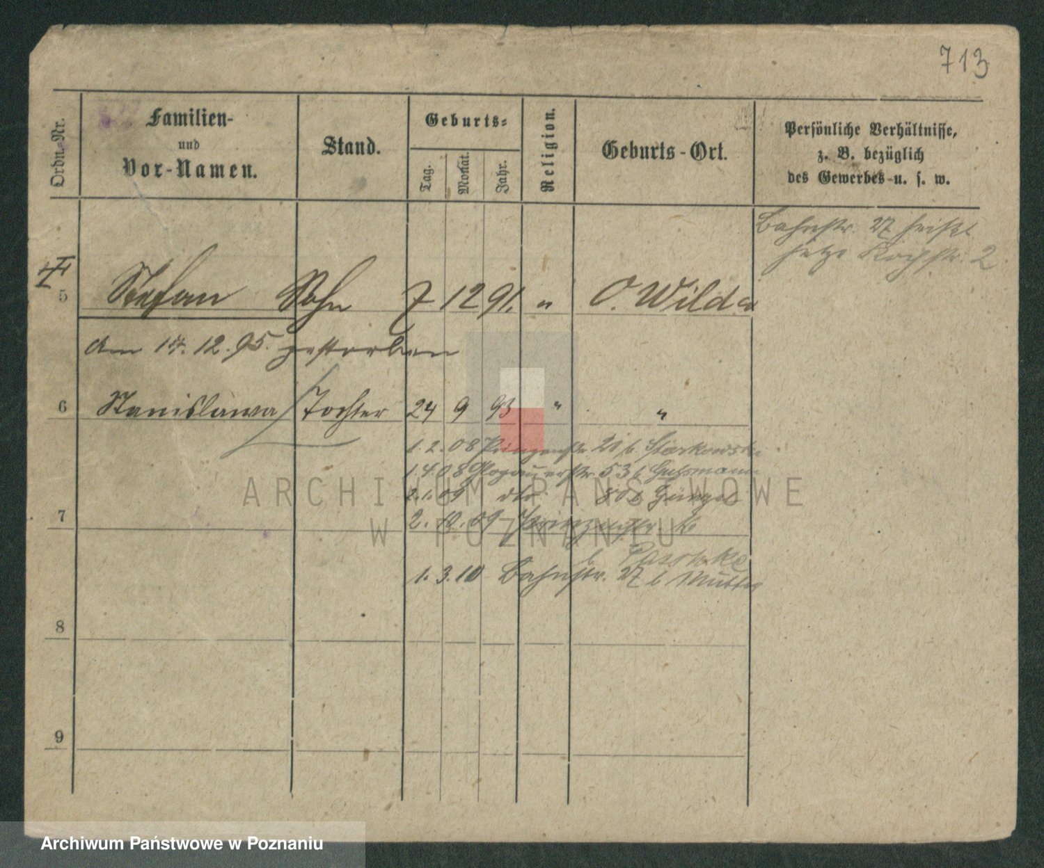 Podgląd karty osobowej dostępny jest po kliknięciu na nazwisko lub ikonkę karty. Można dokonywać powiększenia (ikony na górze) lub przechodzić między kolejnymi skanami (strzałki po bokach).
