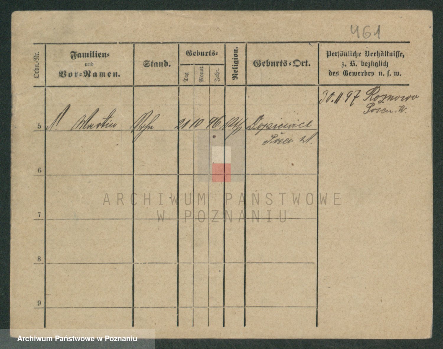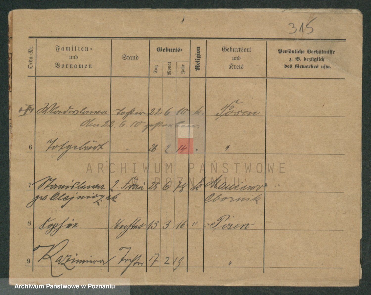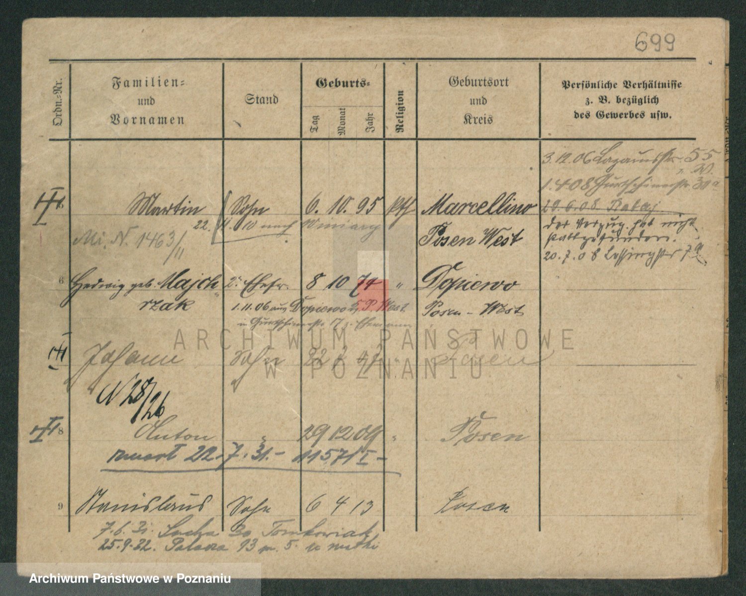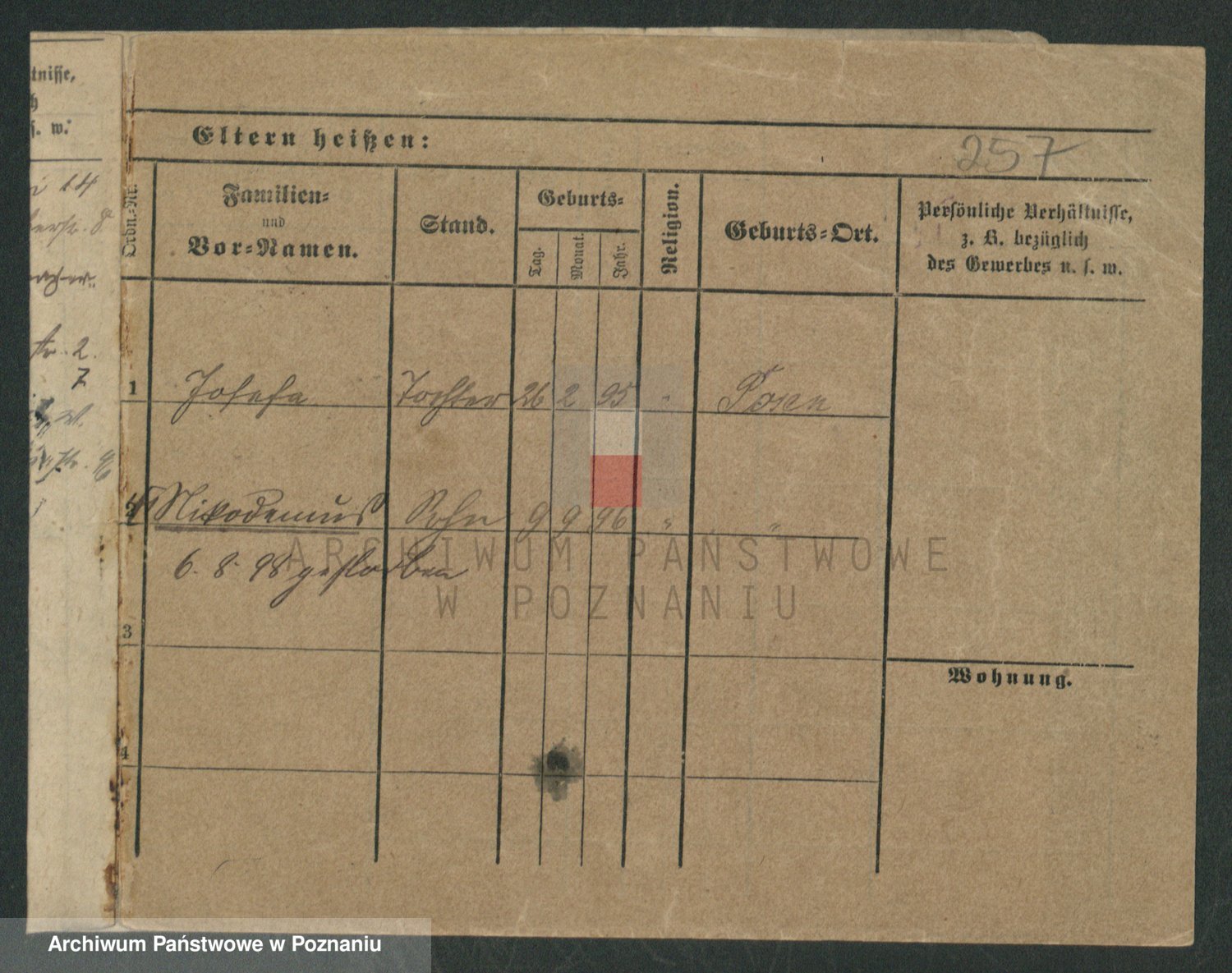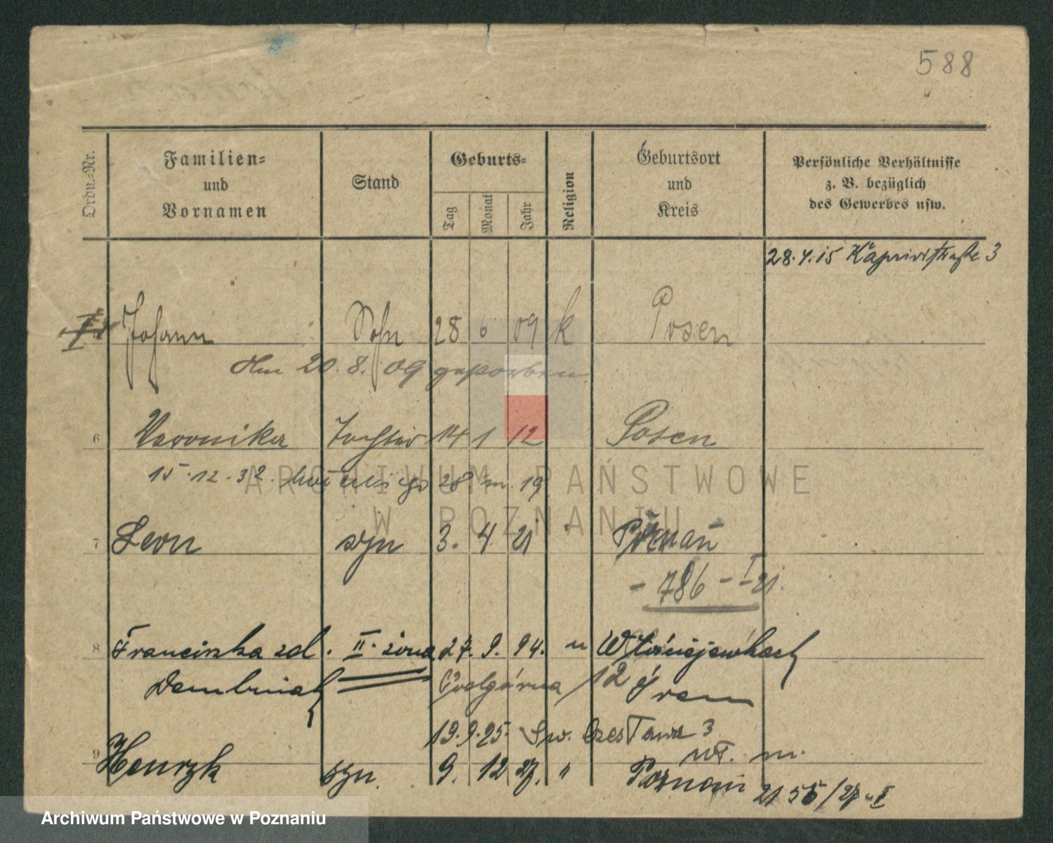 Podgląd karty osobowej dostępny jest po kliknięciu na nazwisko lub ikonkę karty. Można dokonywać powiększenia (ikony na górze) lub przechodzić między kolejnymi skanami (strzałki po bokach).