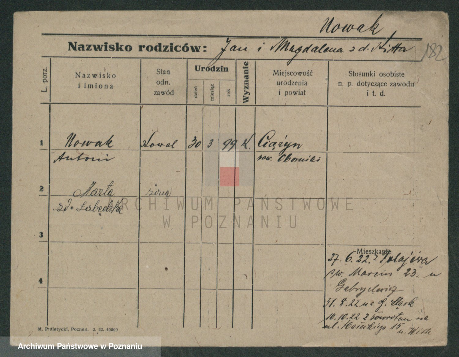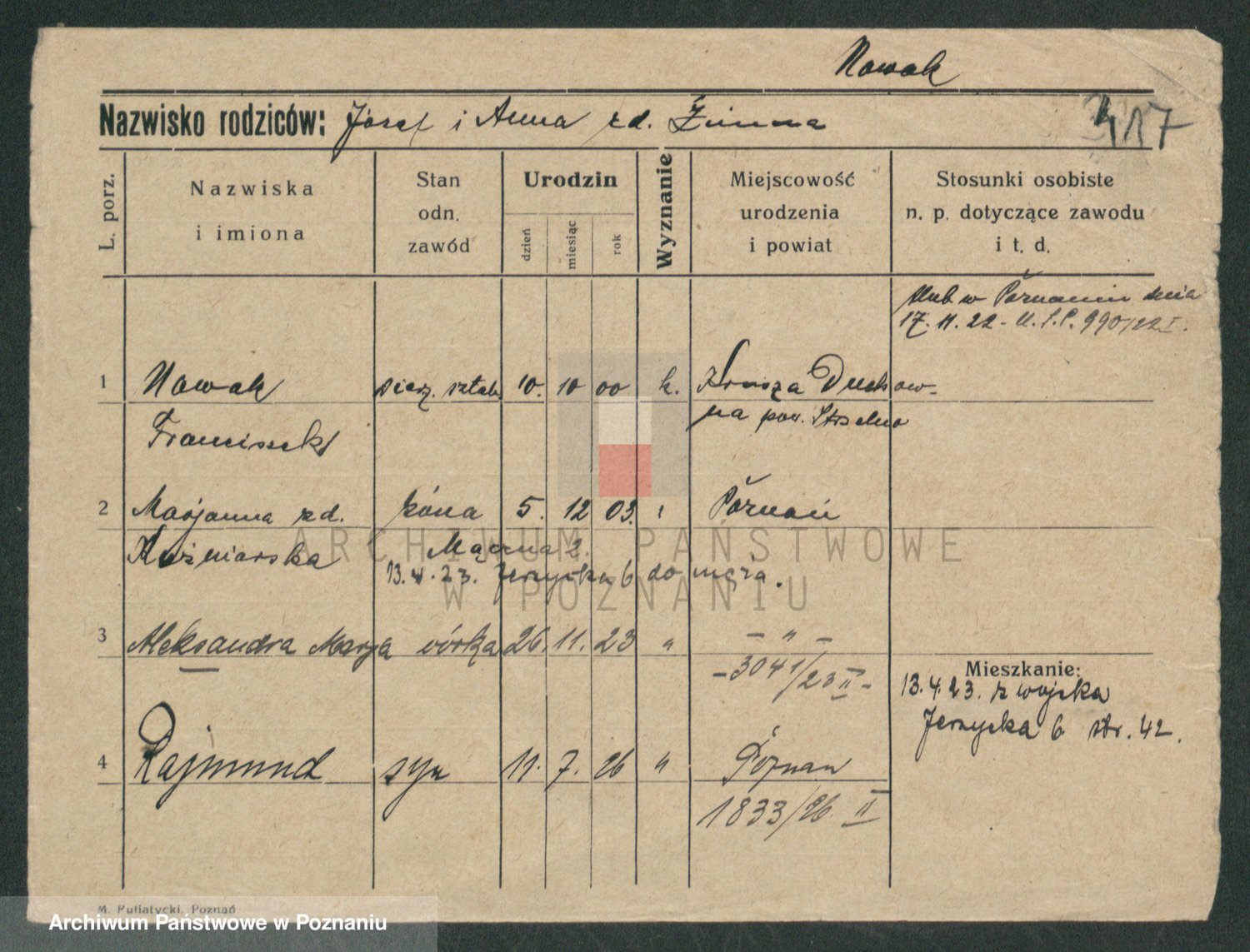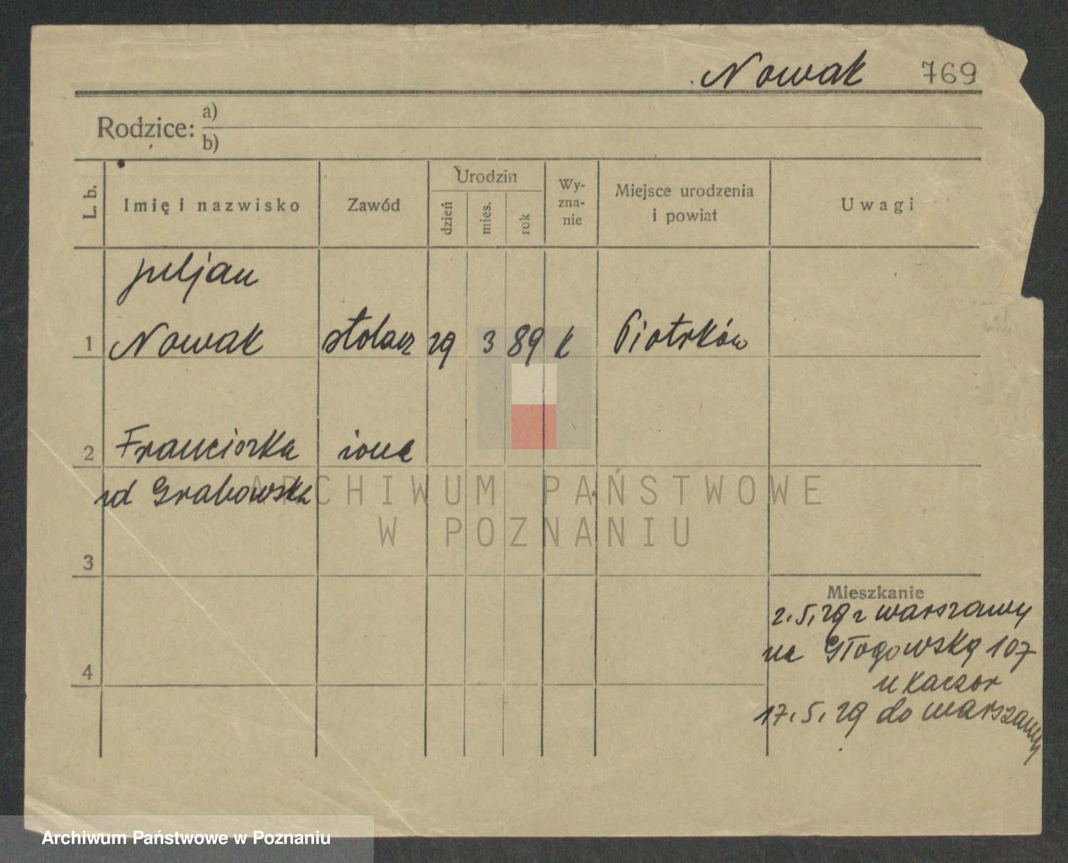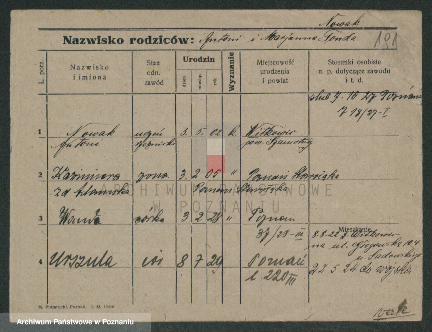 Nowak z d. Garczyk I voto Tylewska, Marie