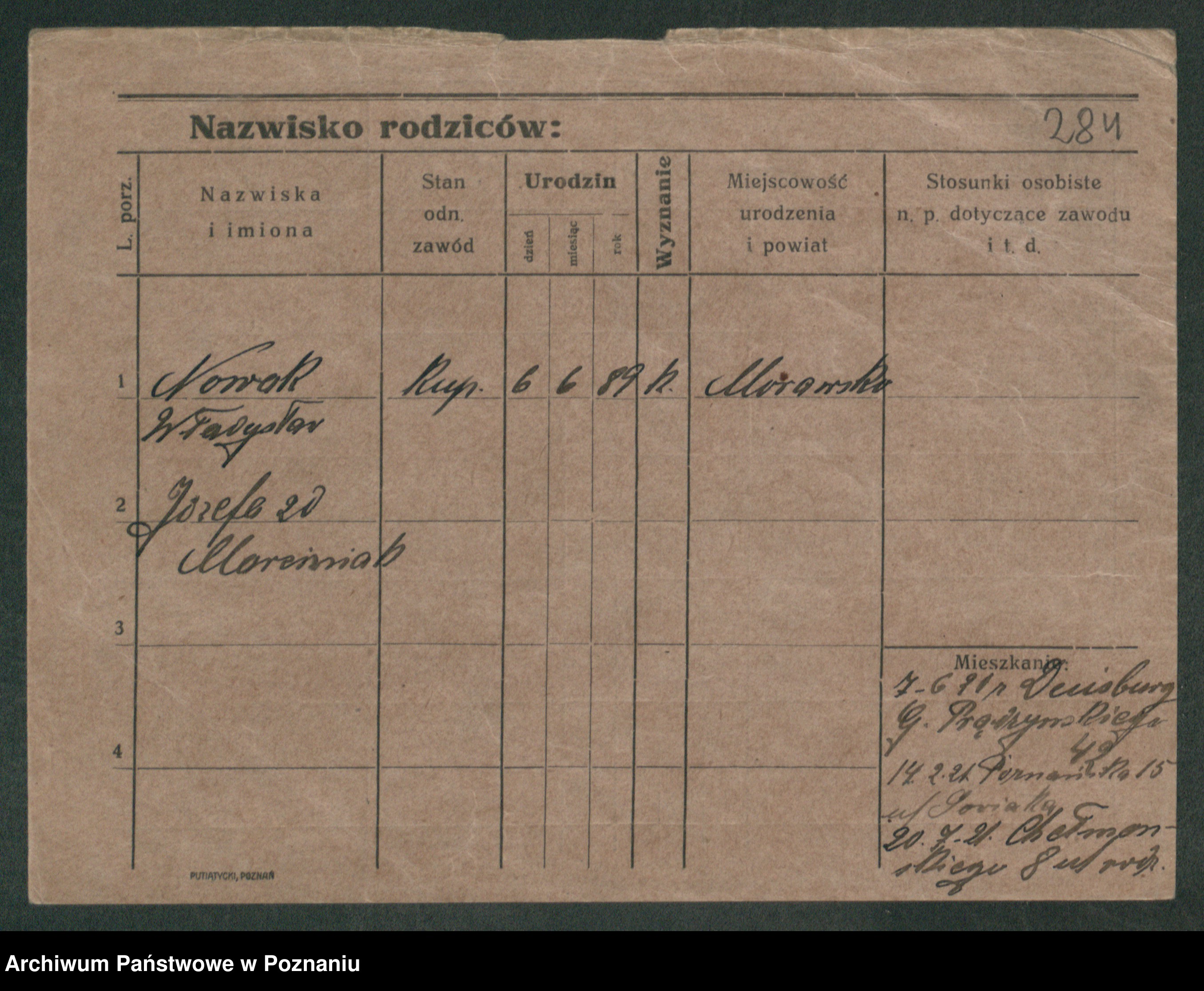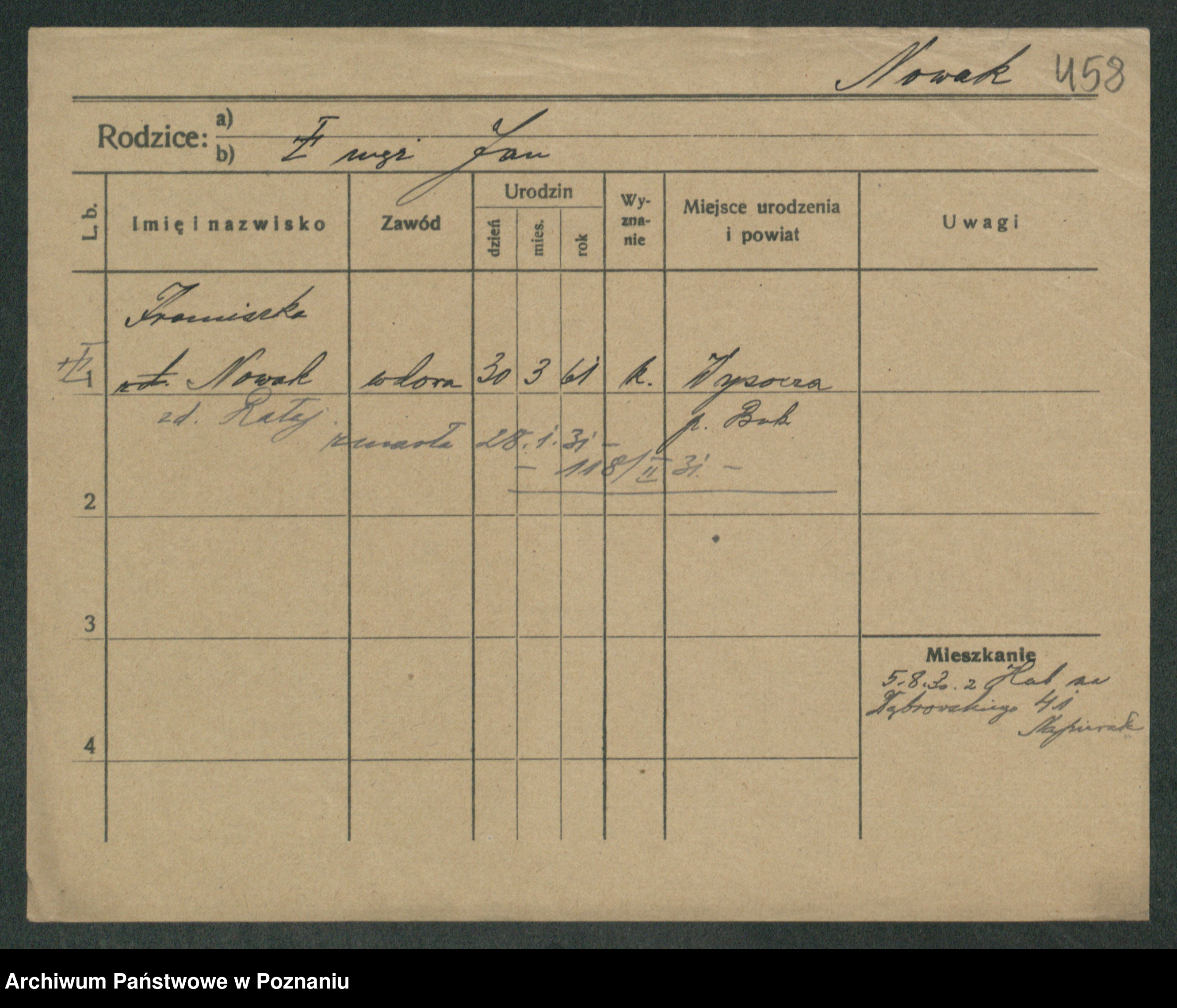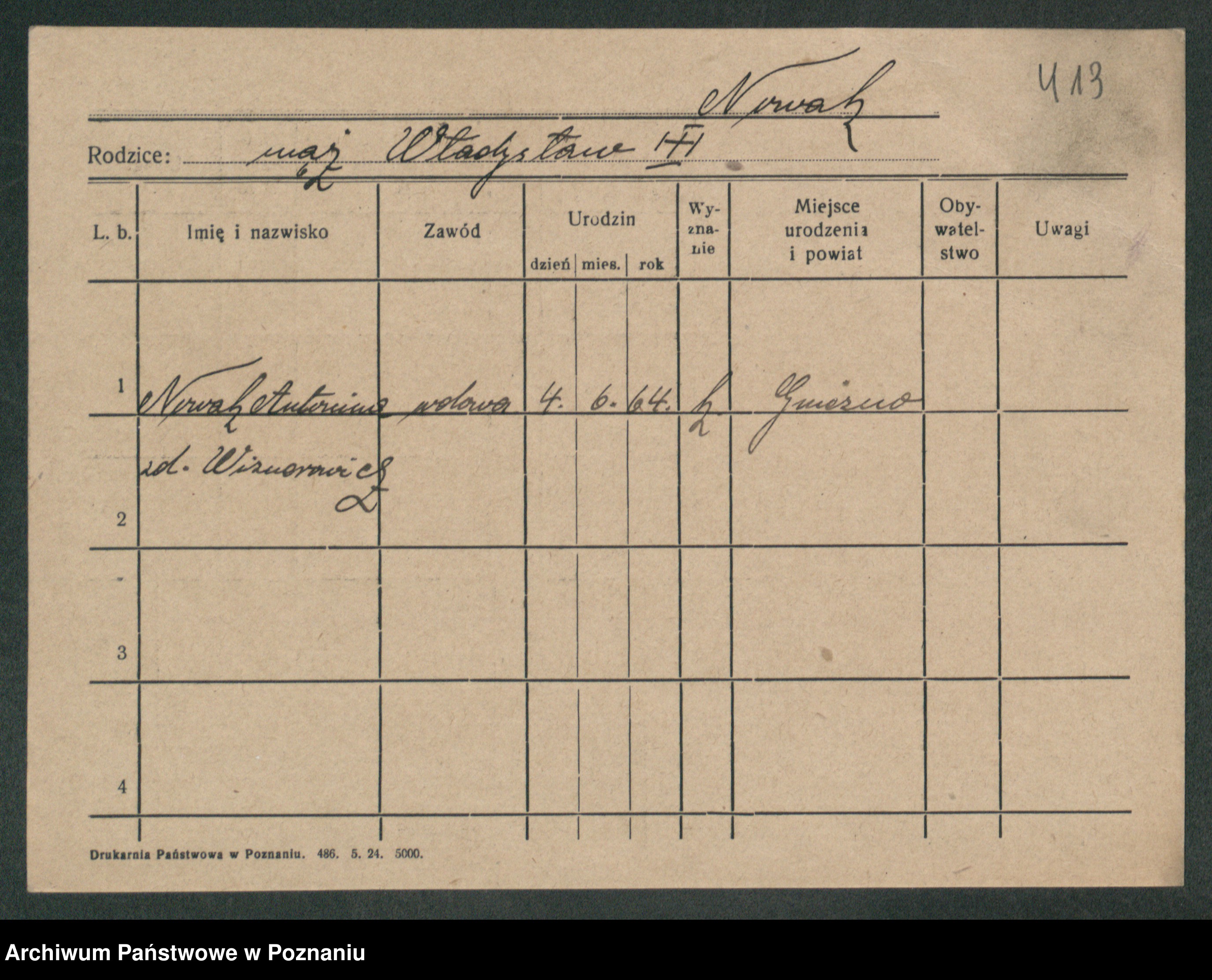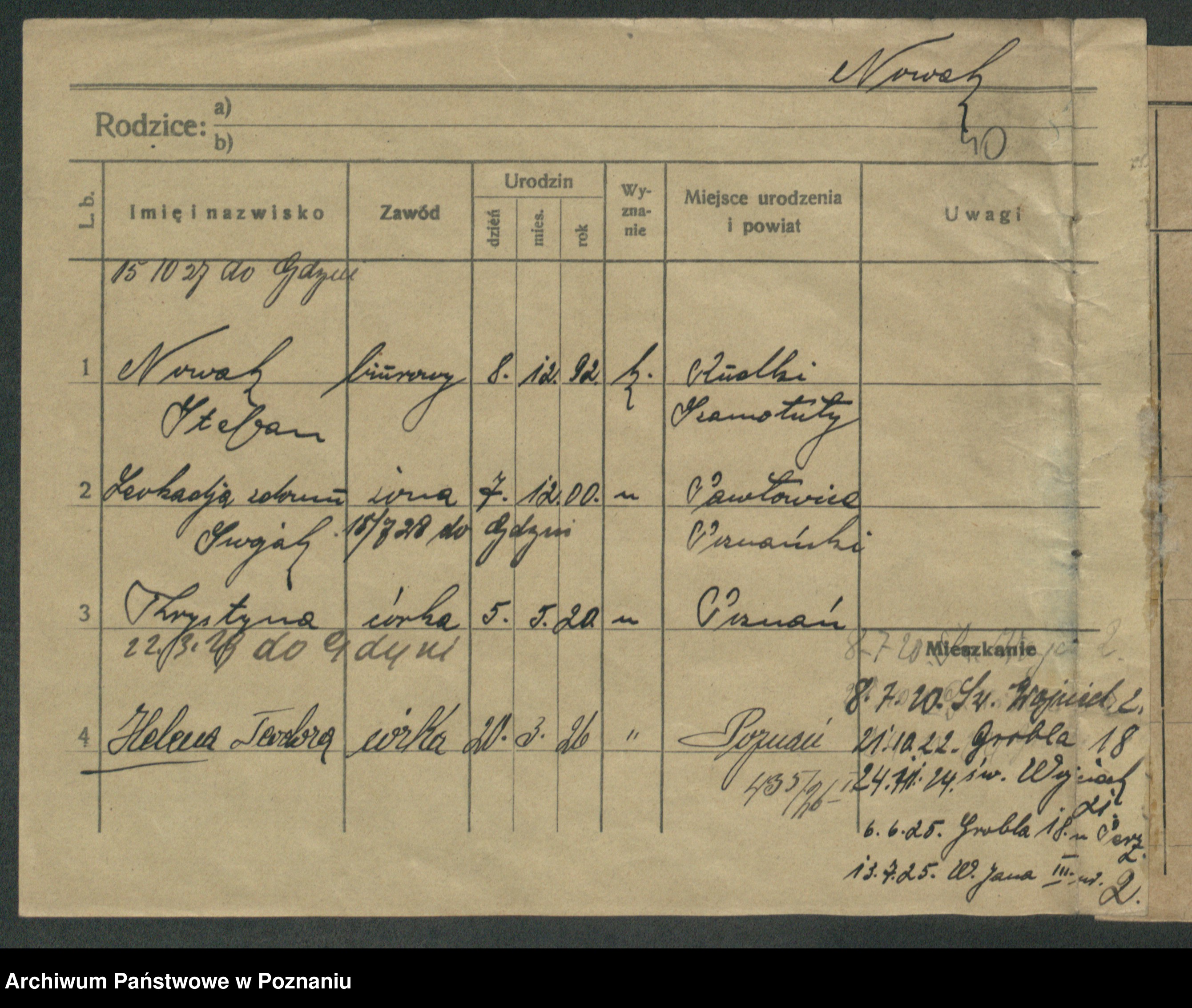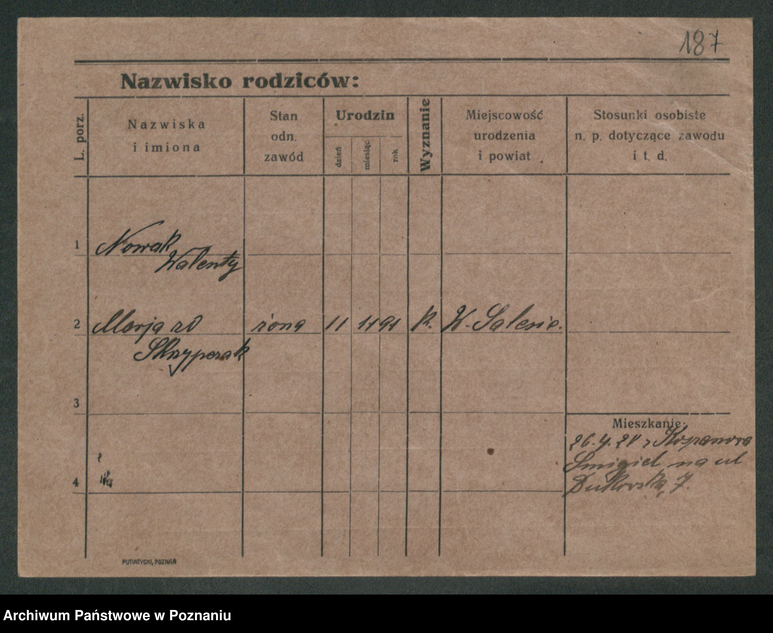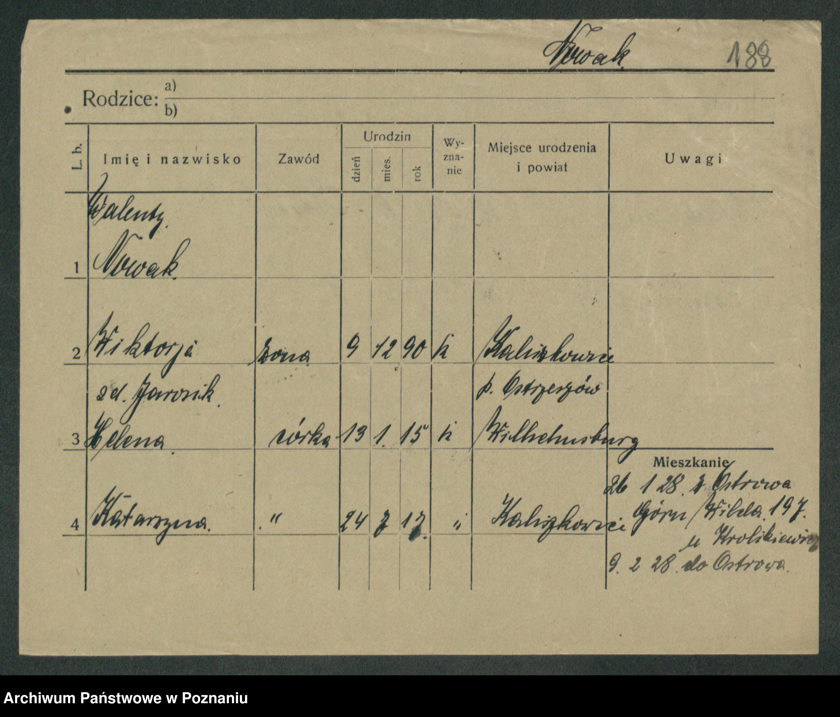 Podgląd karty osobowej dostępny jest po kliknięciu na nazwisko lub ikonkę karty. Można dokonywać powiększenia (ikony na górze) lub przechodzić między kolejnymi skanami (strzałki po bokach).