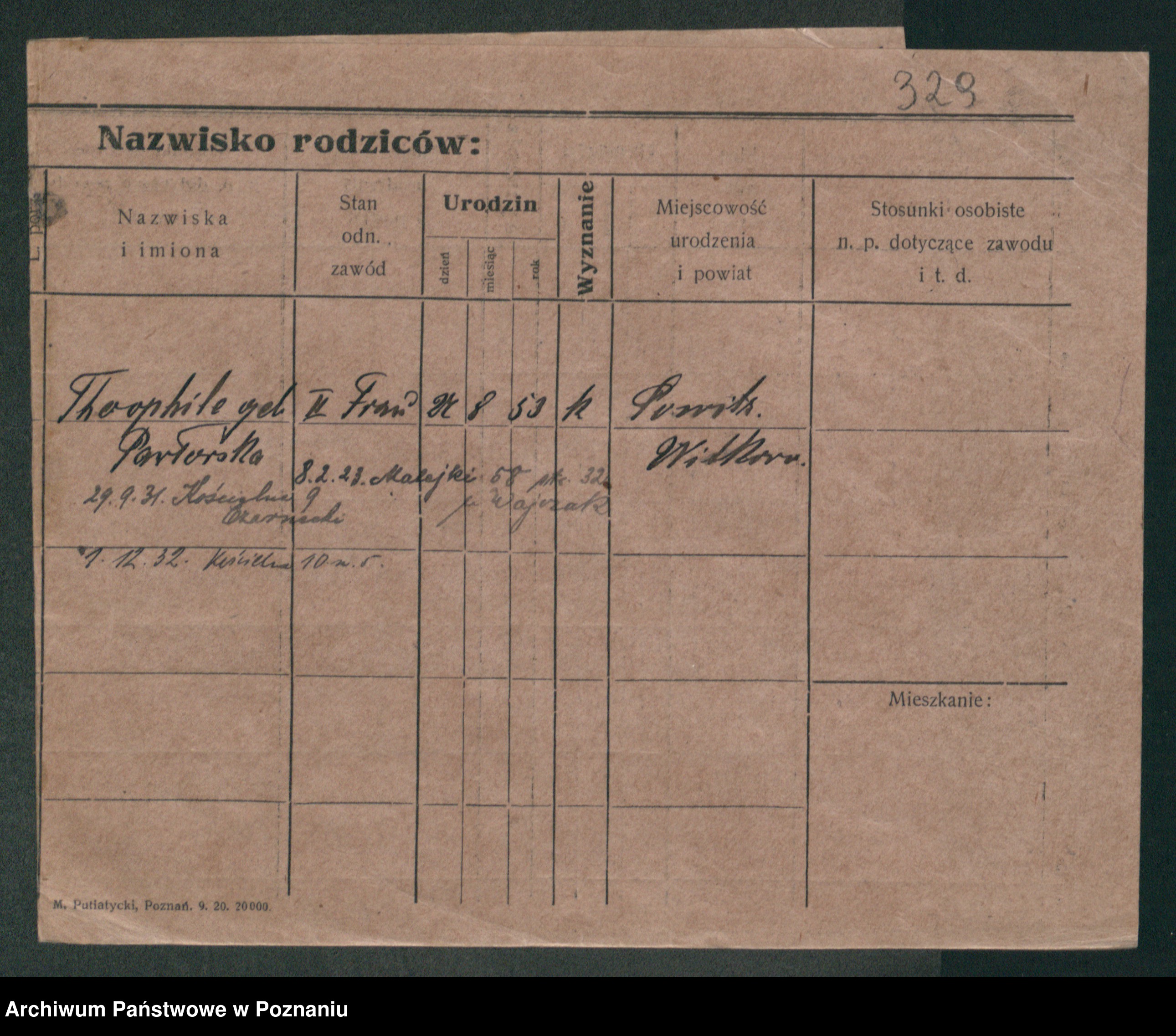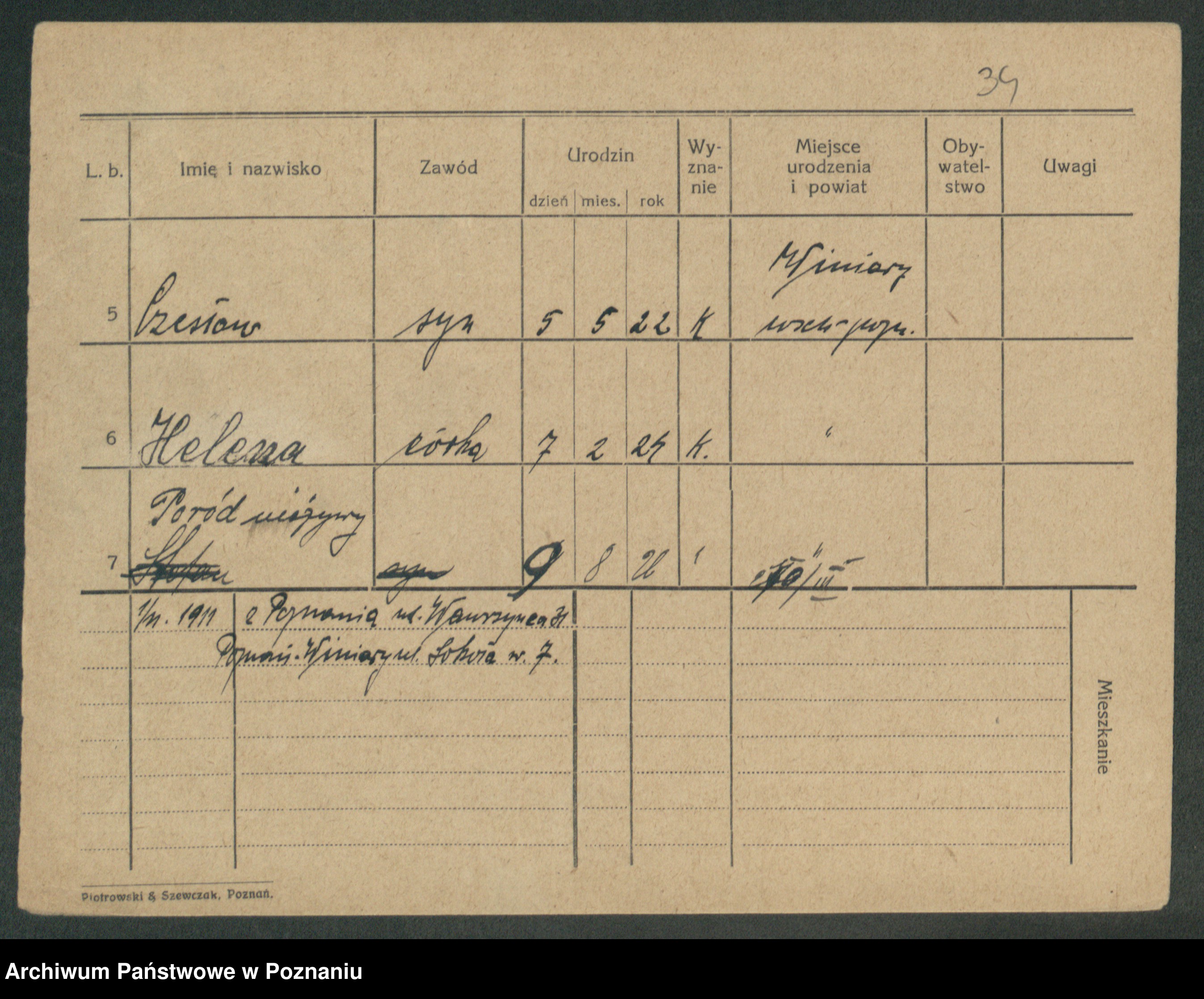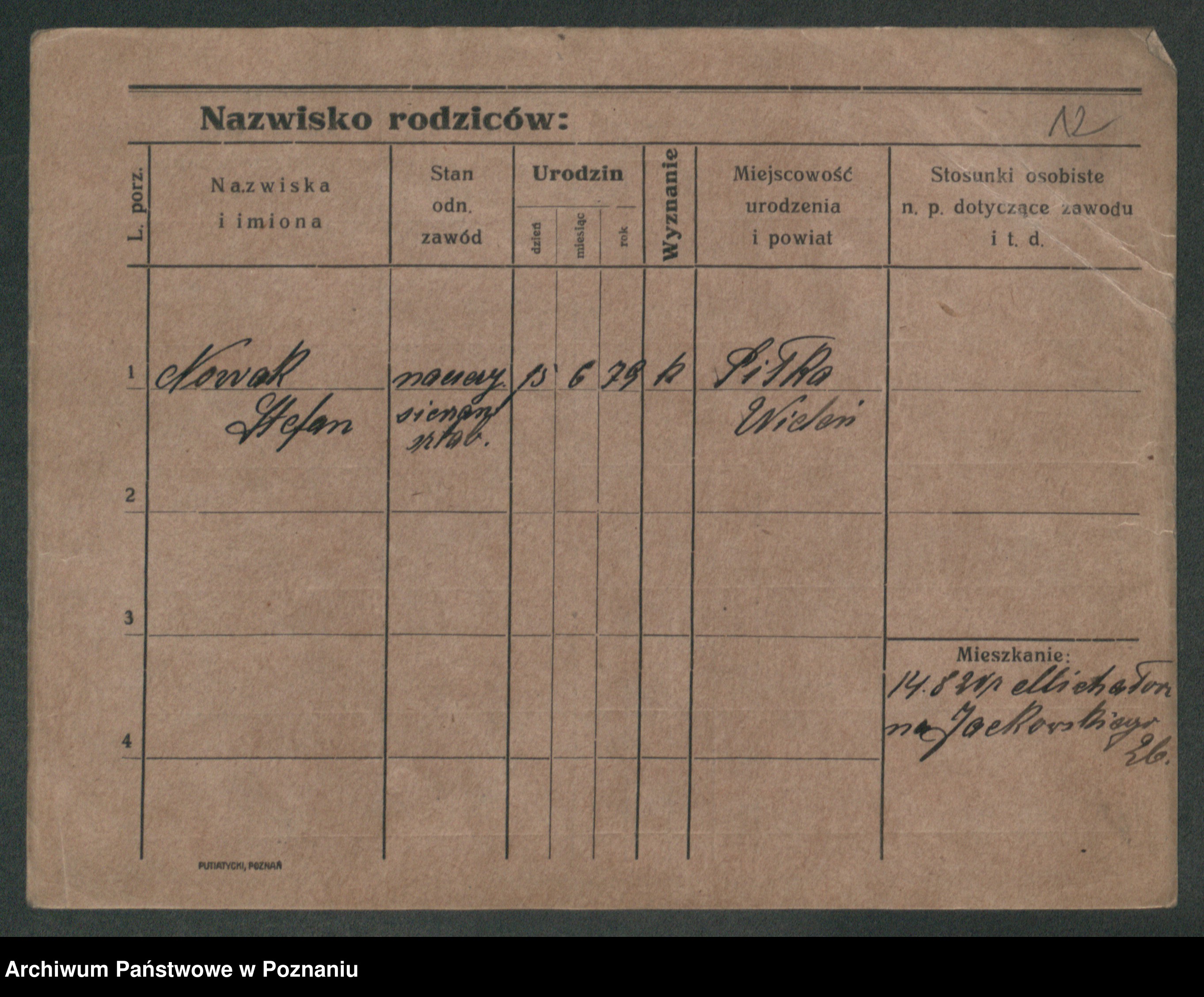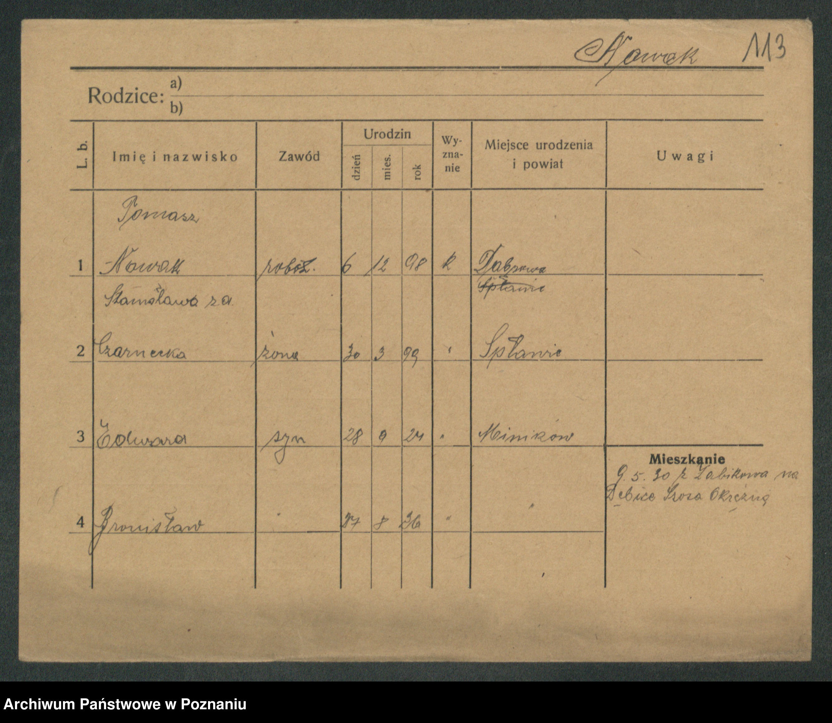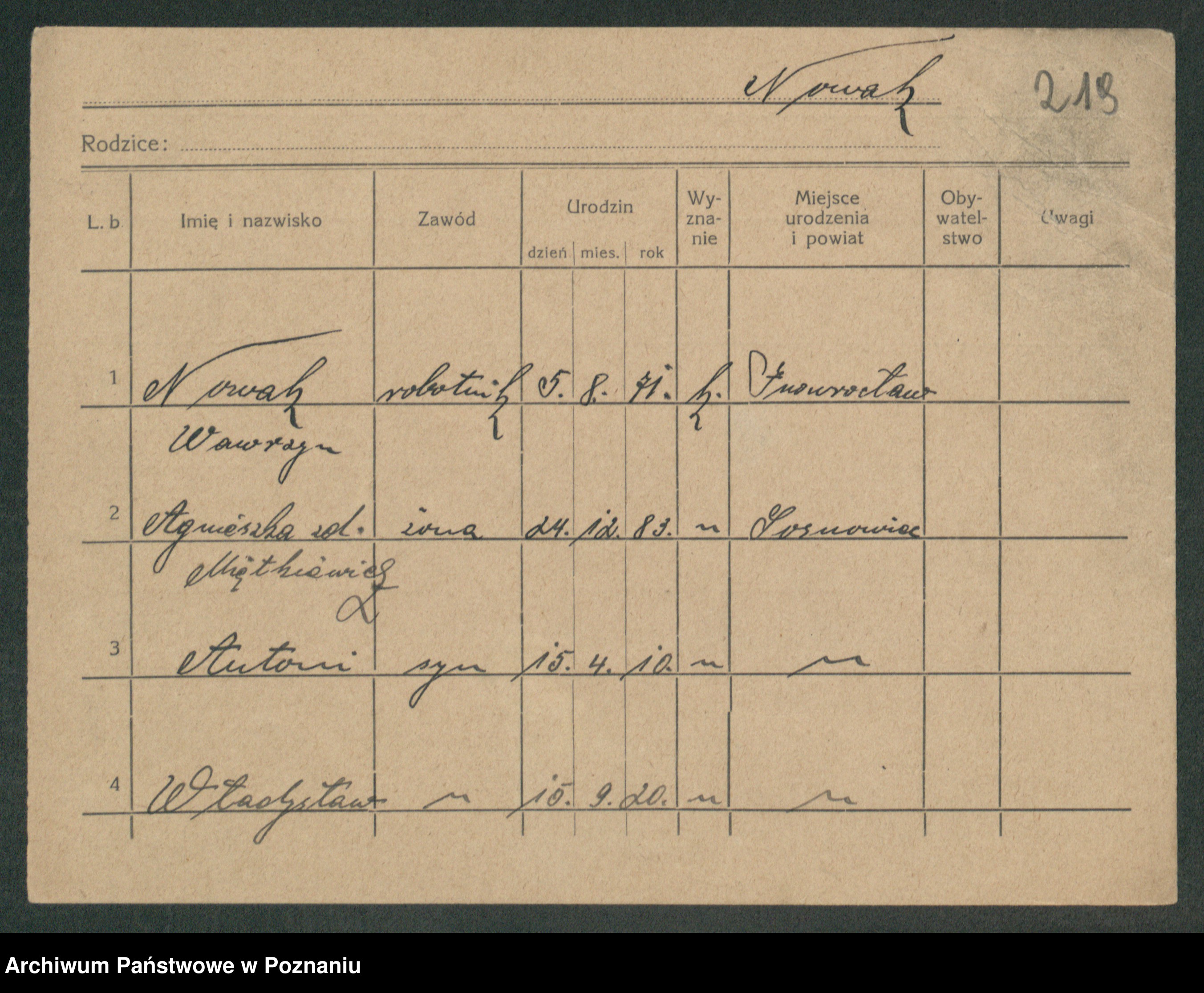 Podgląd karty osobowej dostępny jest po kliknięciu na nazwisko lub ikonkę karty. Można dokonywać powiększenia (ikony na górze) lub przechodzić między kolejnymi skanami (strzałki po bokach).