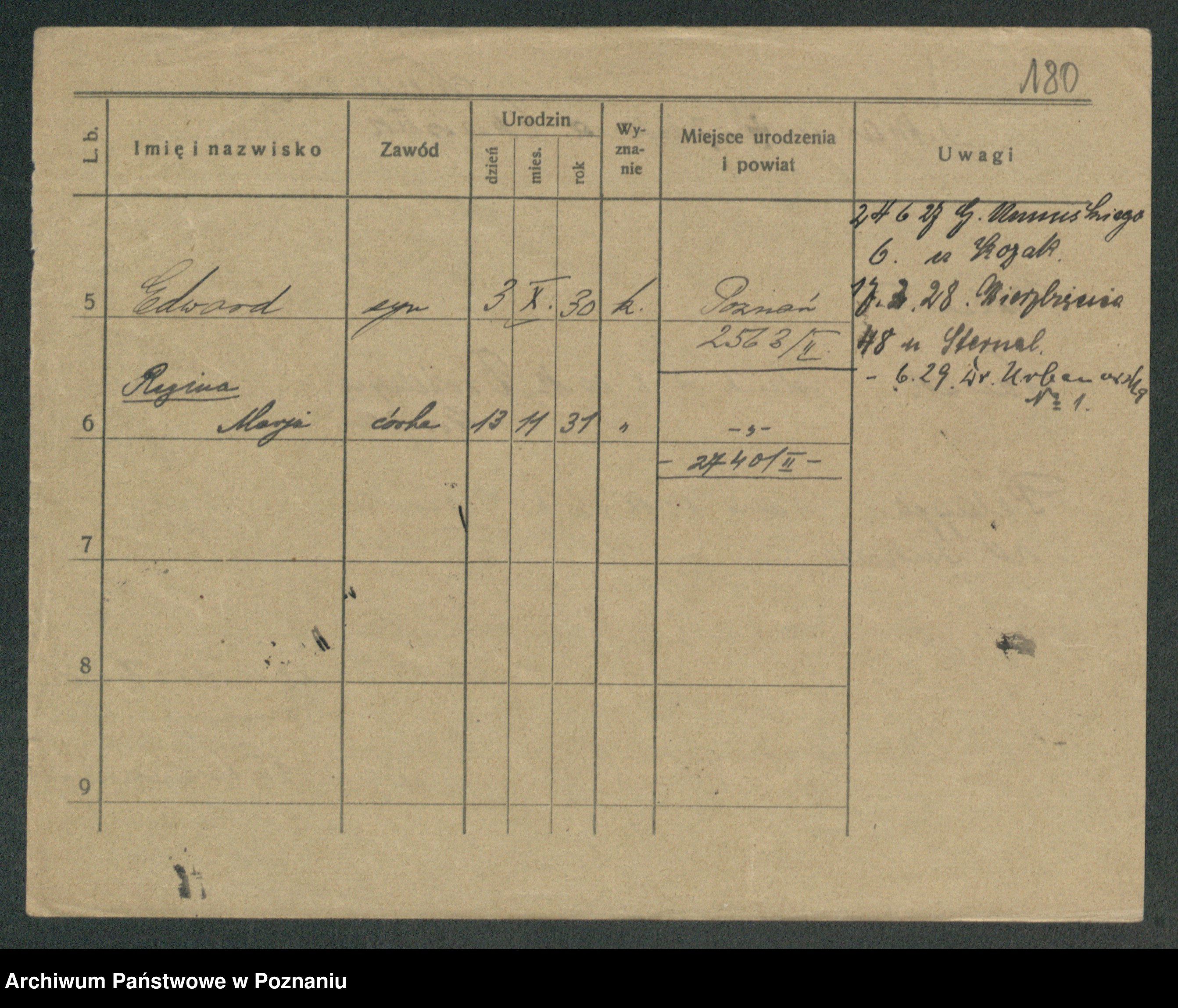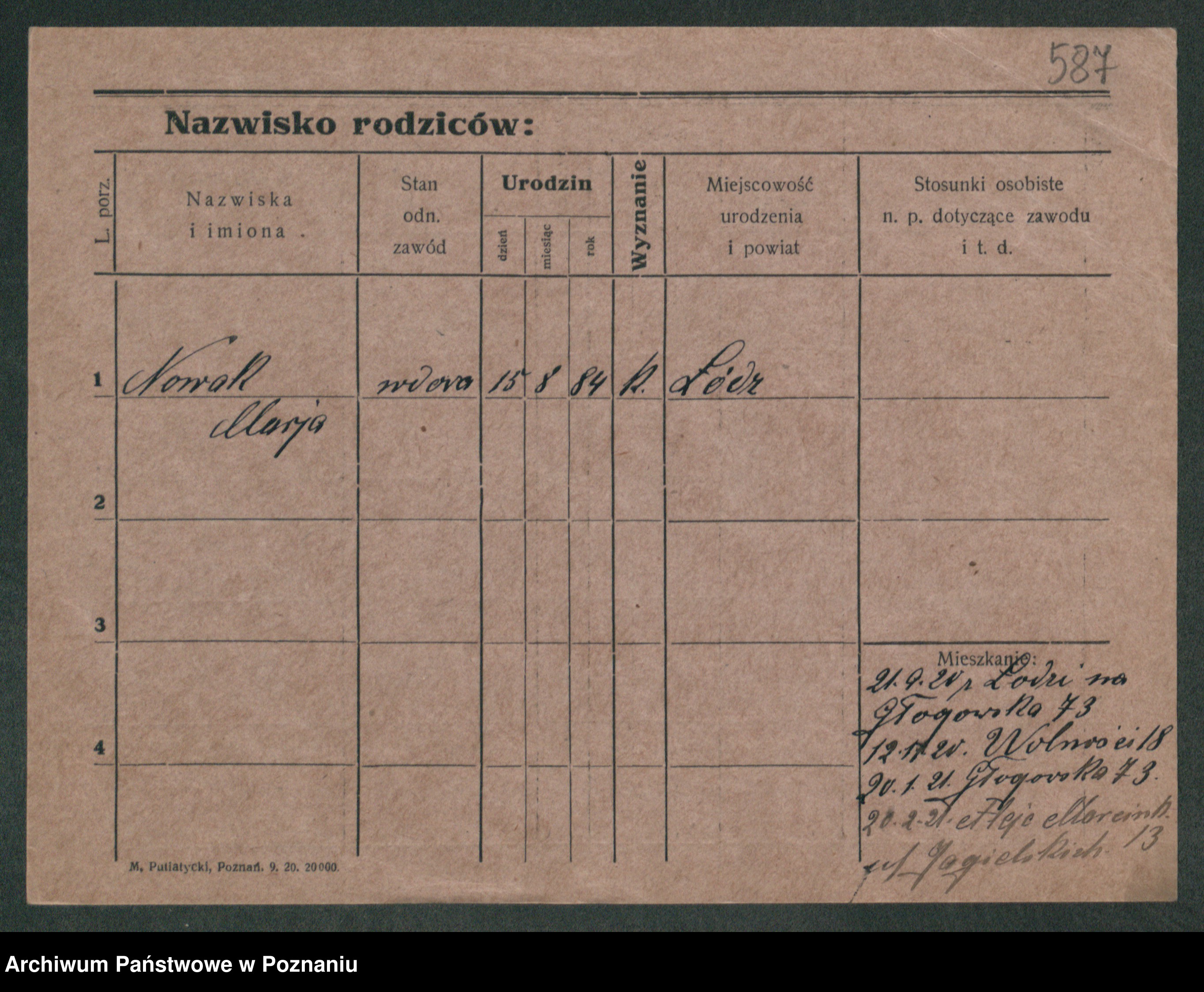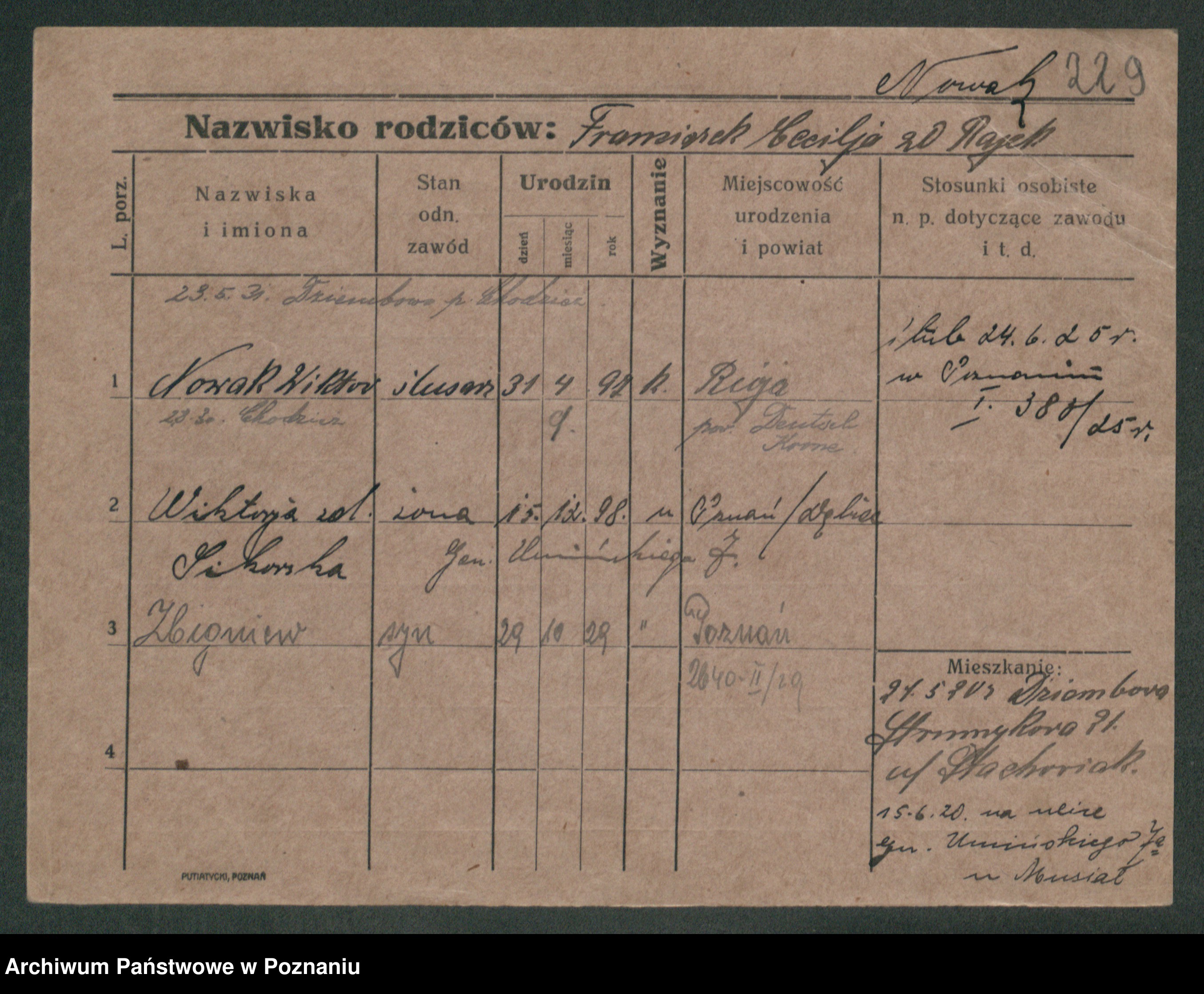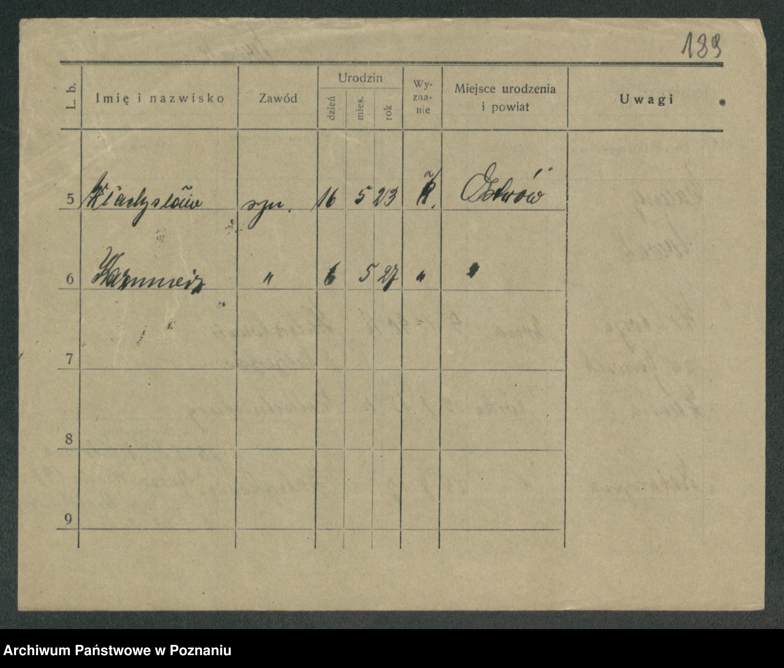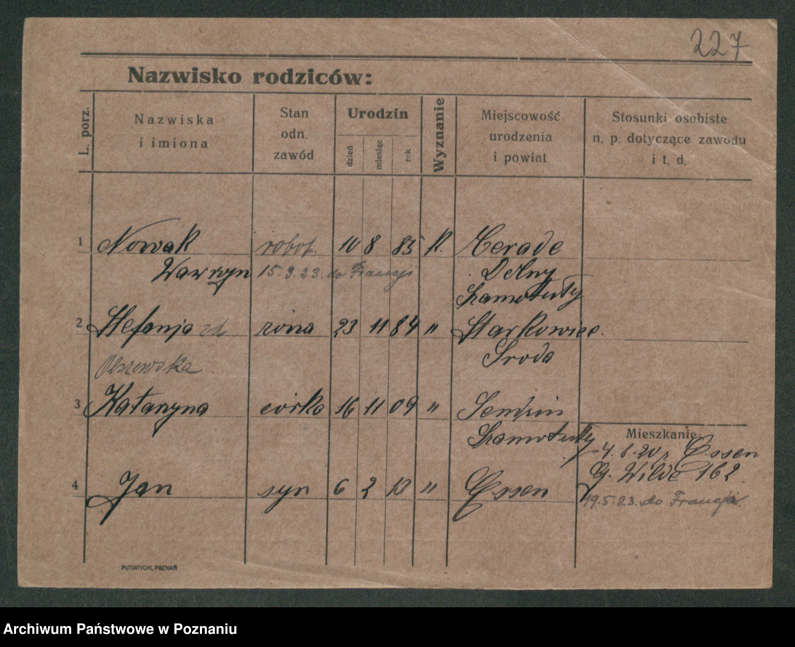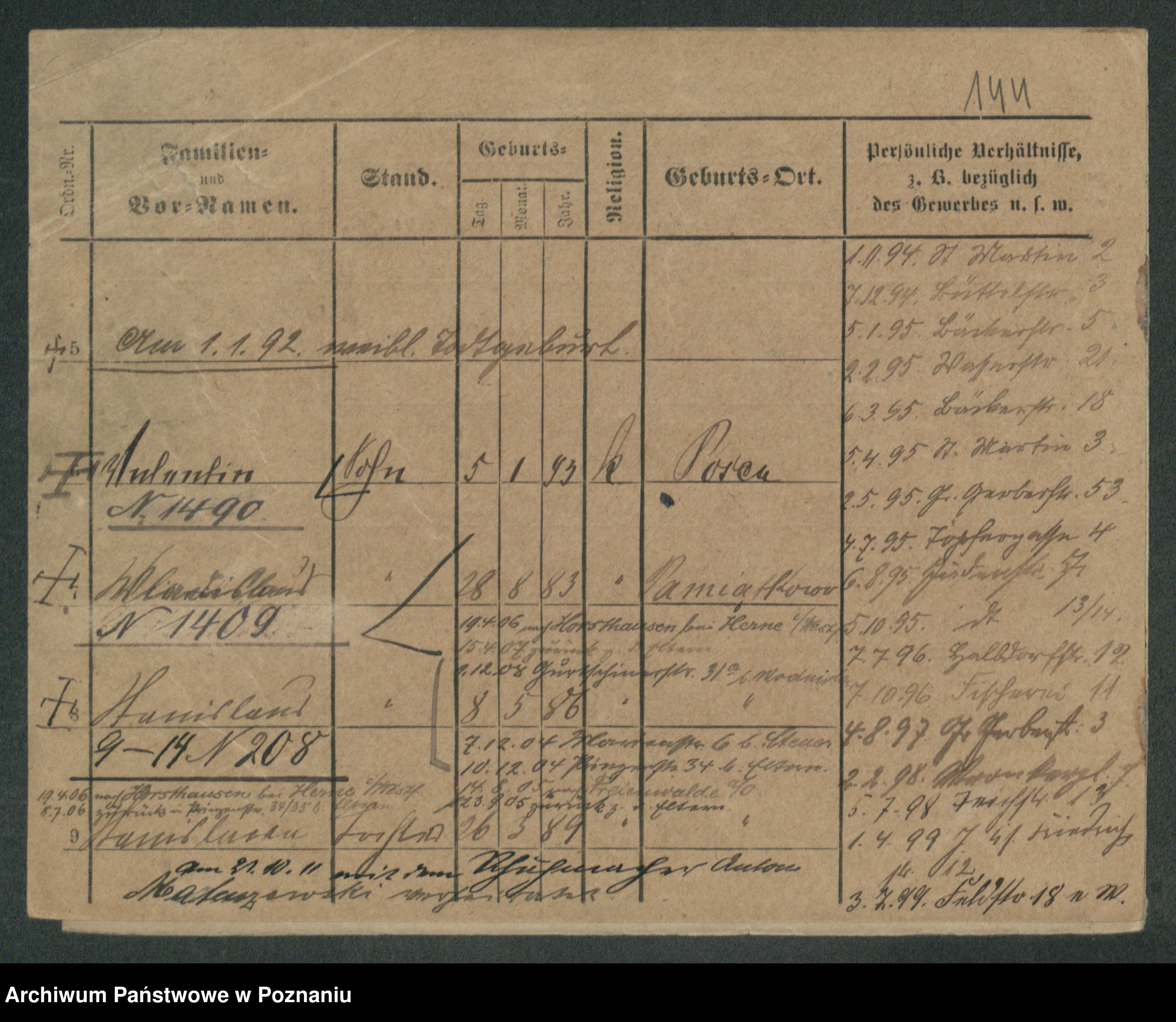 Podgląd karty osobowej dostępny jest po kliknięciu na nazwisko lub ikonkę karty. Można dokonywać powiększenia (ikony na górze) lub przechodzić między kolejnymi skanami (strzałki po bokach).