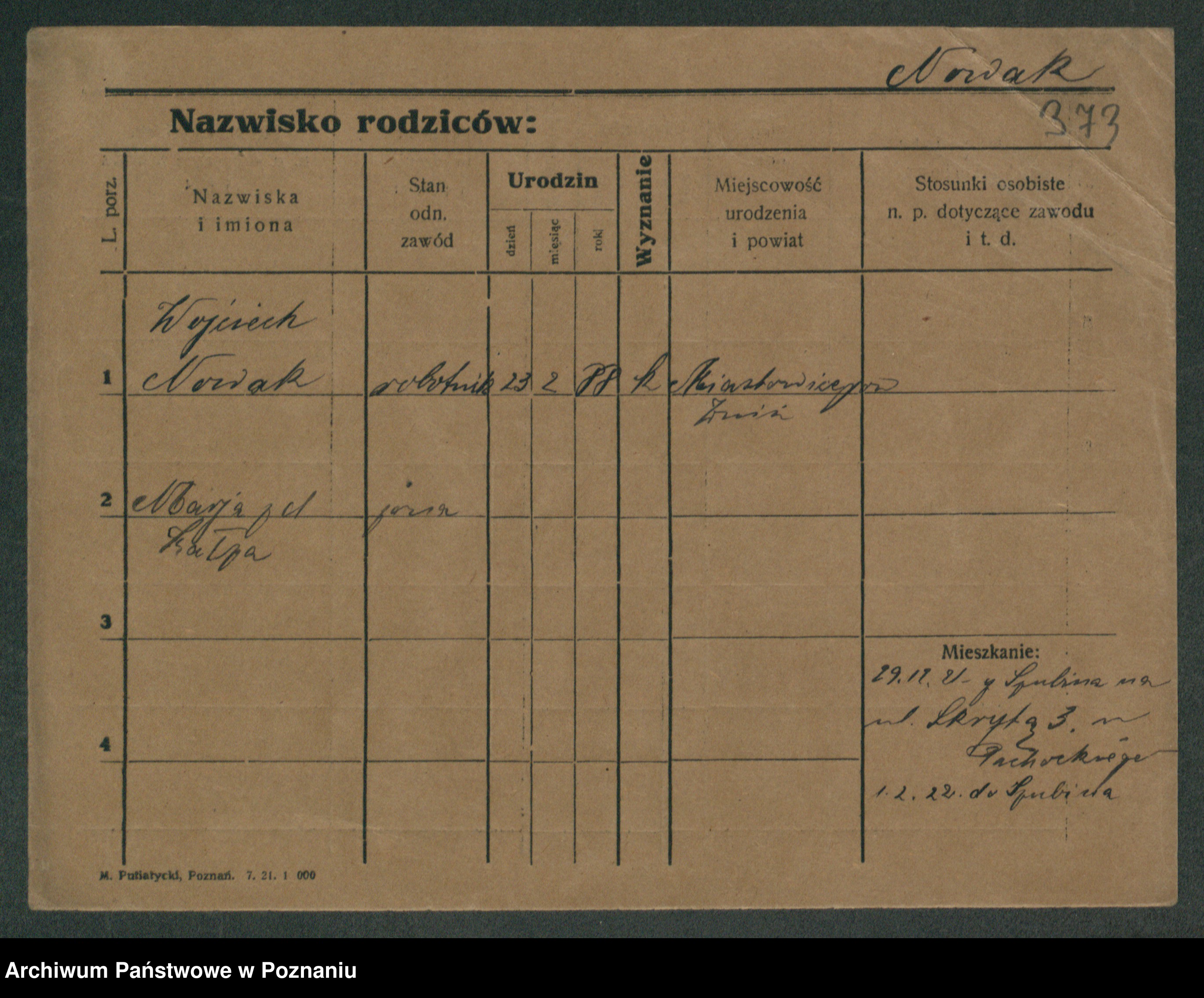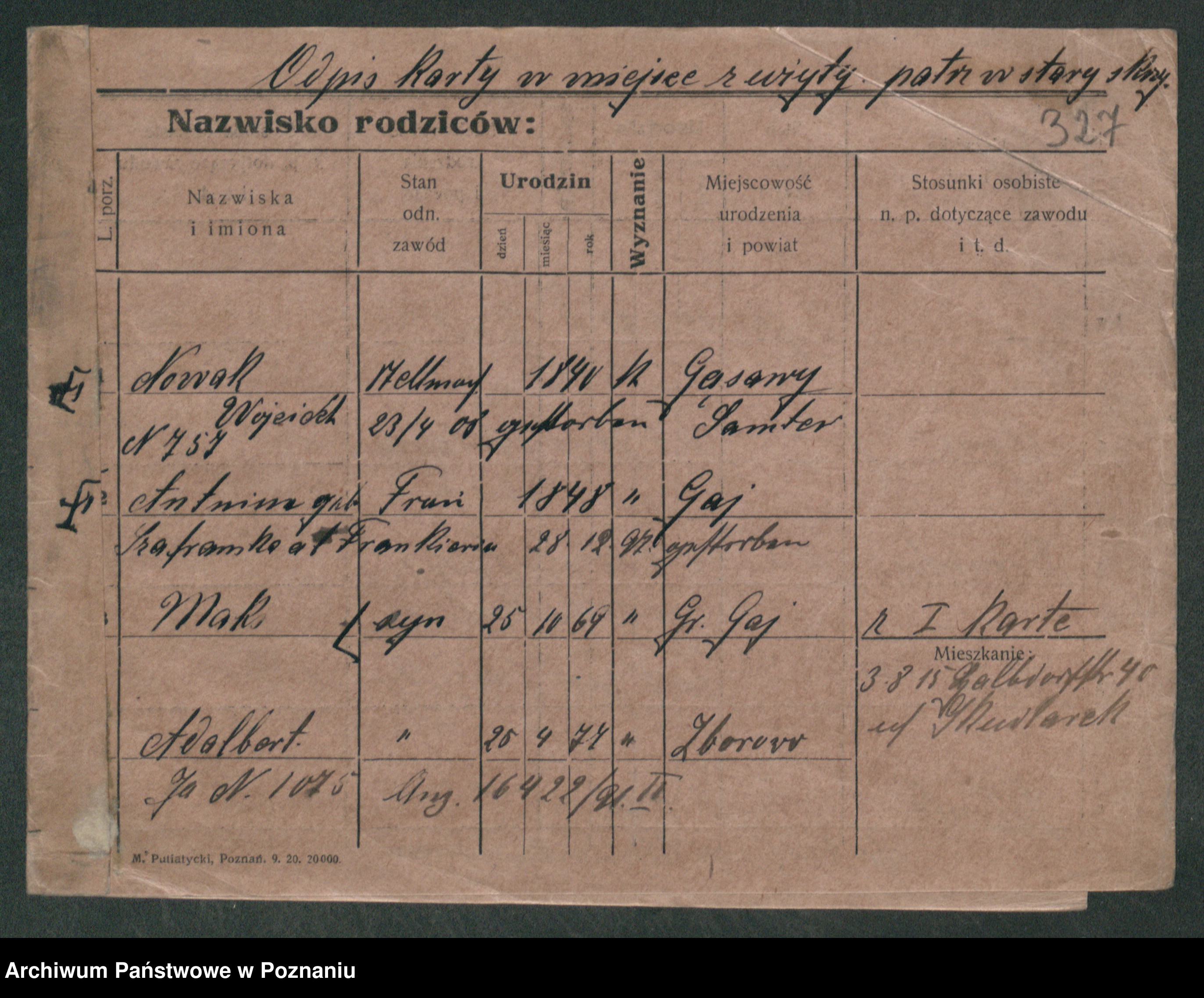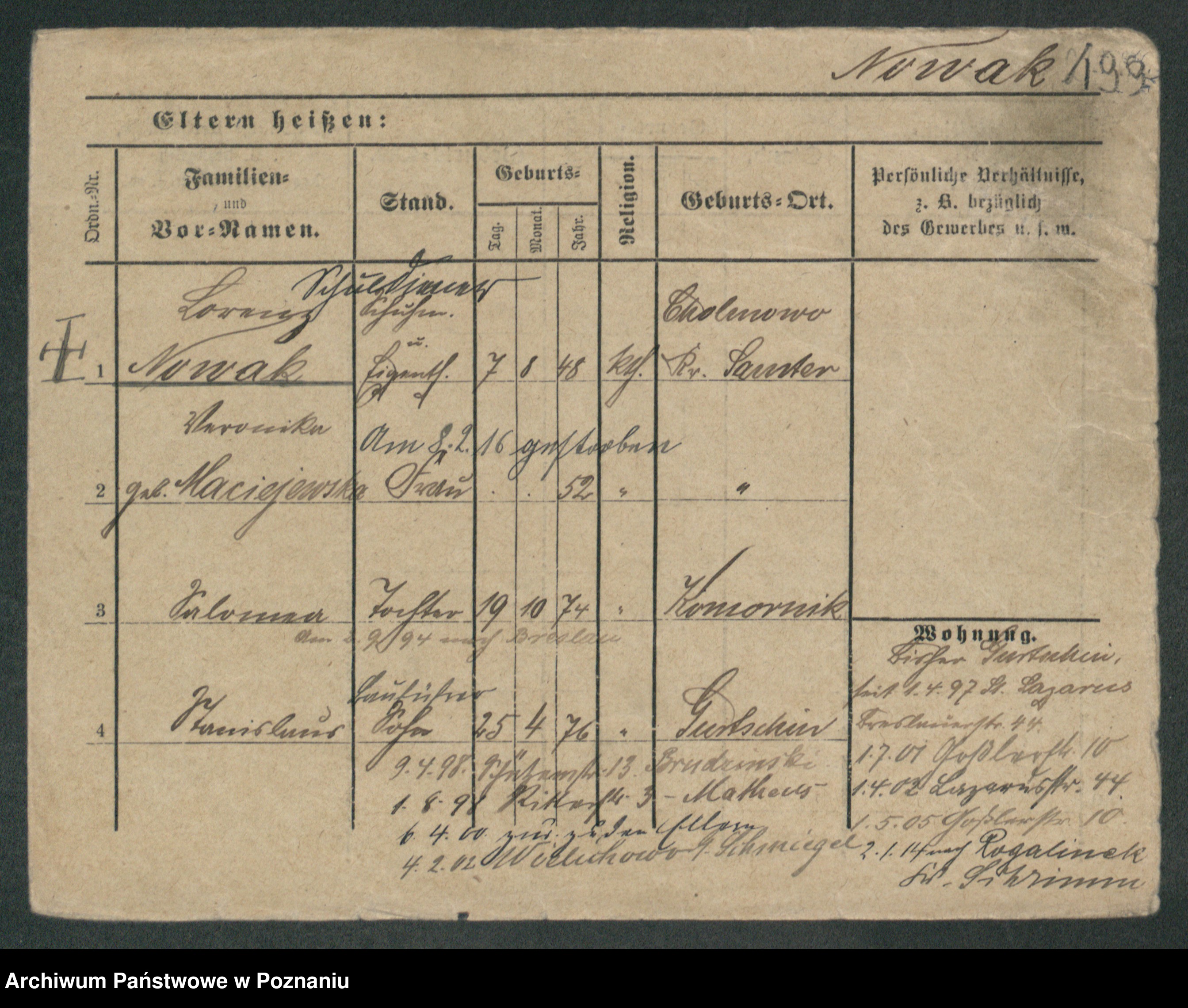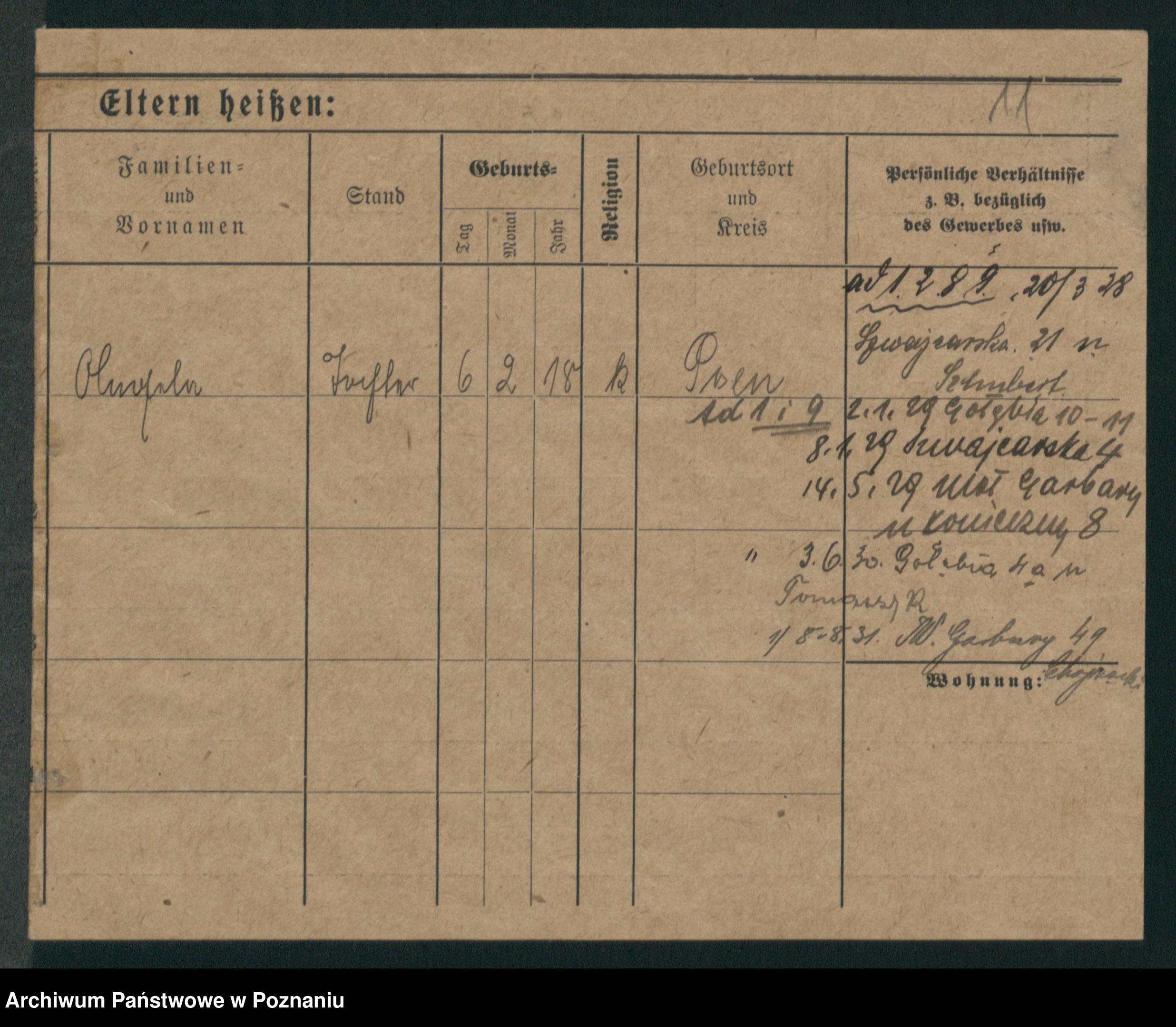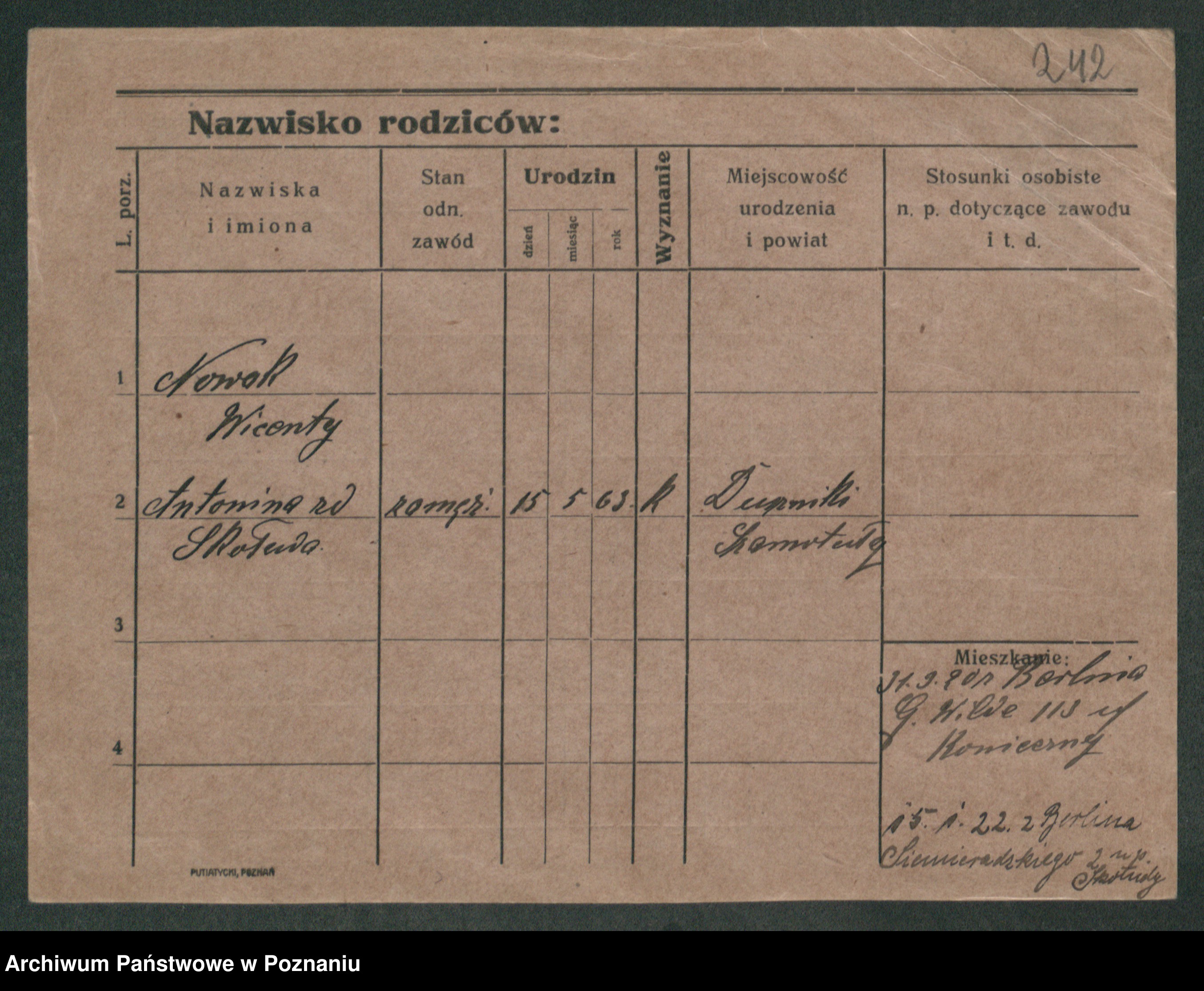 Podgląd karty osobowej dostępny jest po kliknięciu na nazwisko lub ikonkę karty. Można dokonywać powiększenia (ikony na górze) lub przechodzić między kolejnymi skanami (strzałki po bokach).