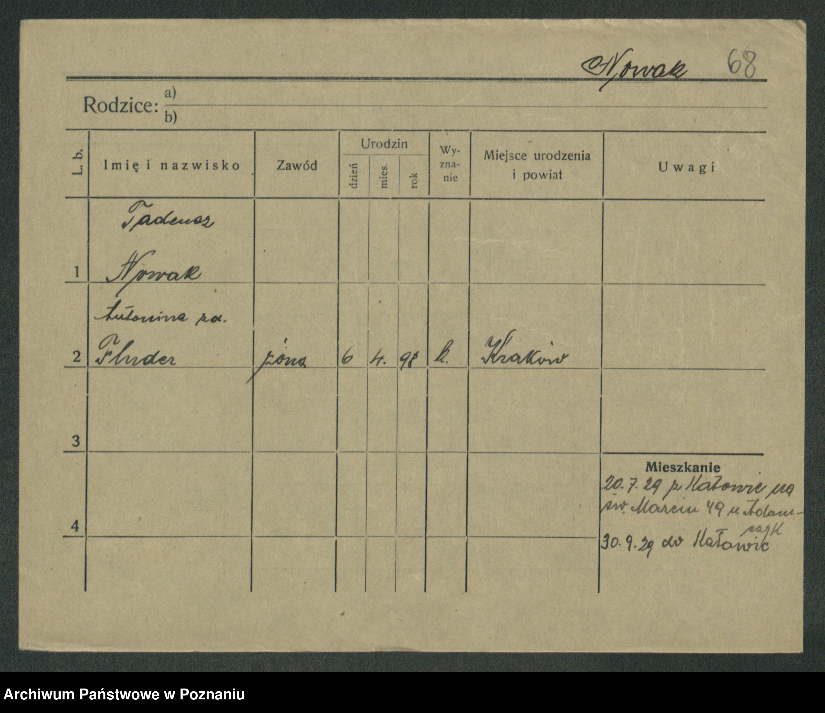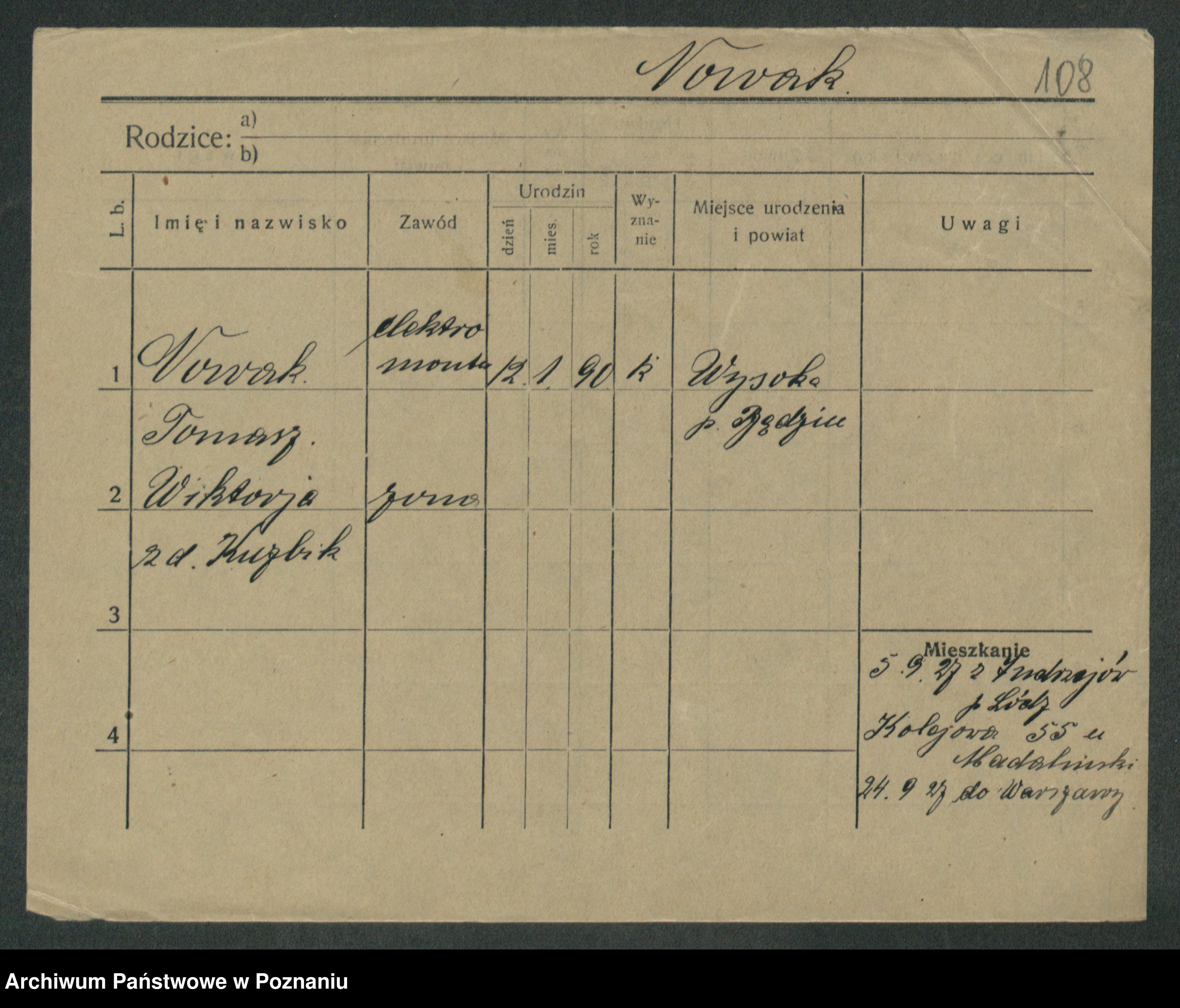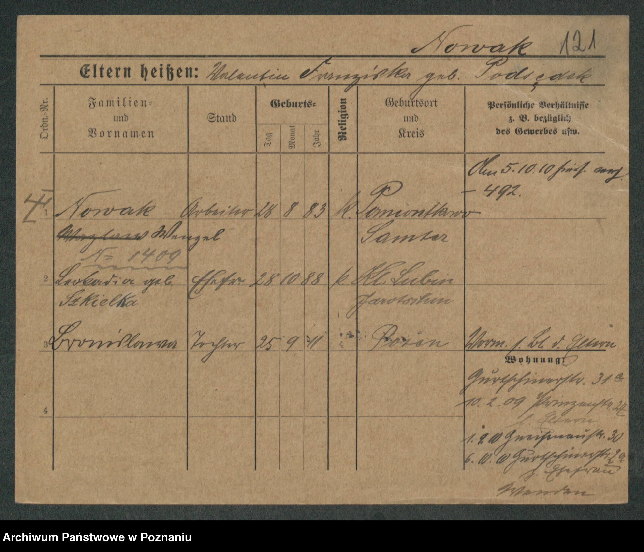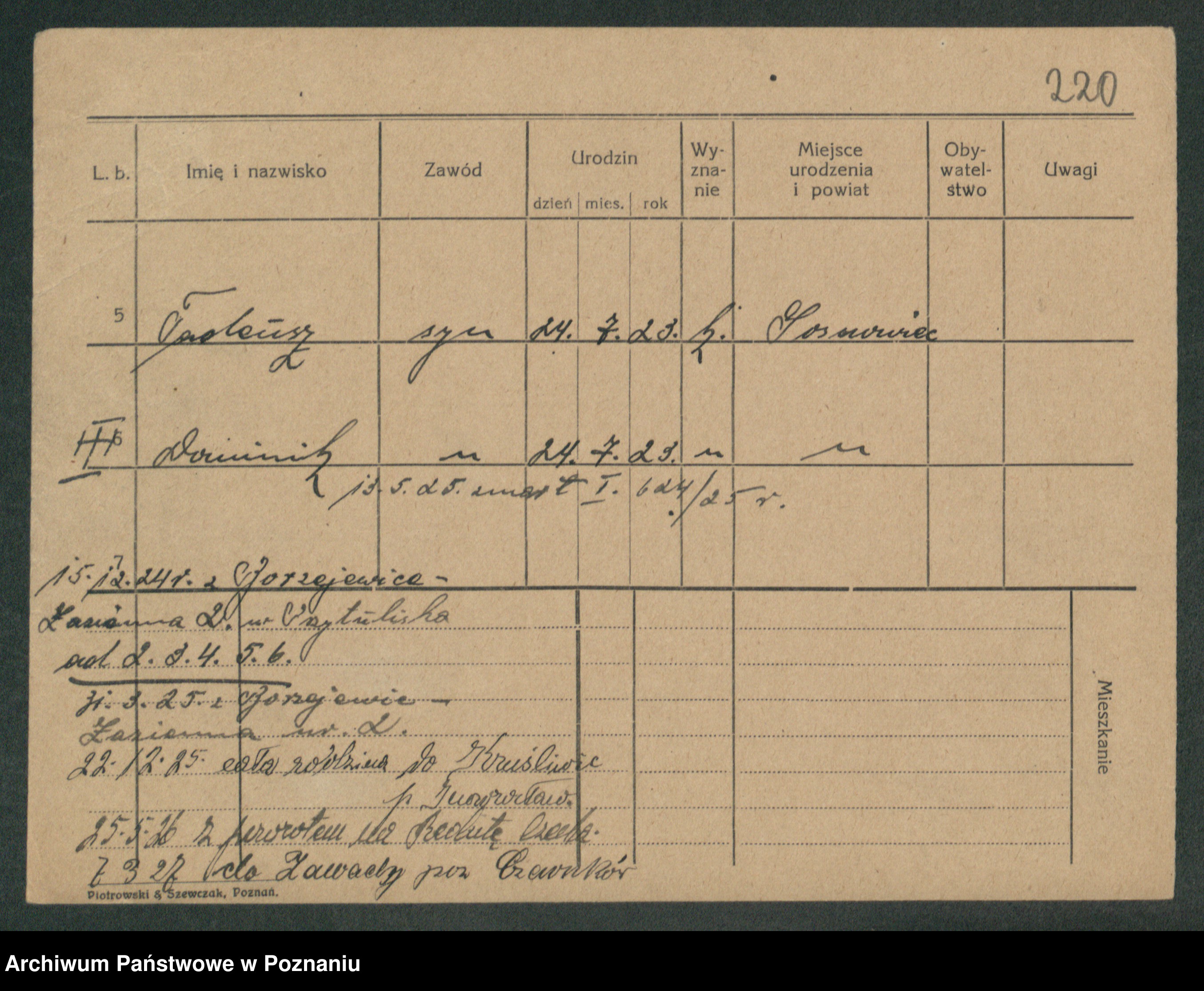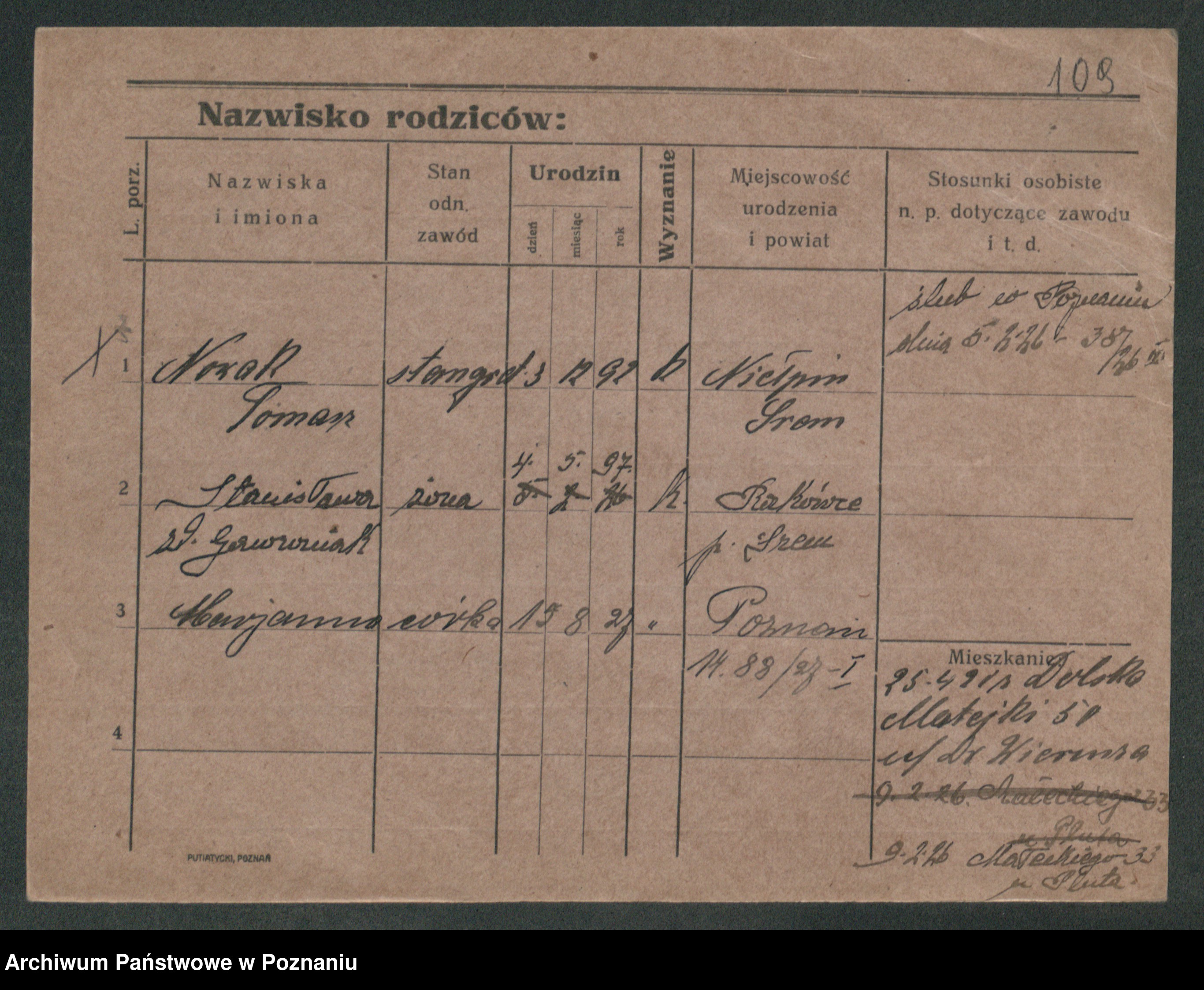 Podgląd karty osobowej dostępny jest po kliknięciu na nazwisko lub ikonkę karty. Można dokonywać powiększenia (ikony na górze) lub przechodzić między kolejnymi skanami (strzałki po bokach).