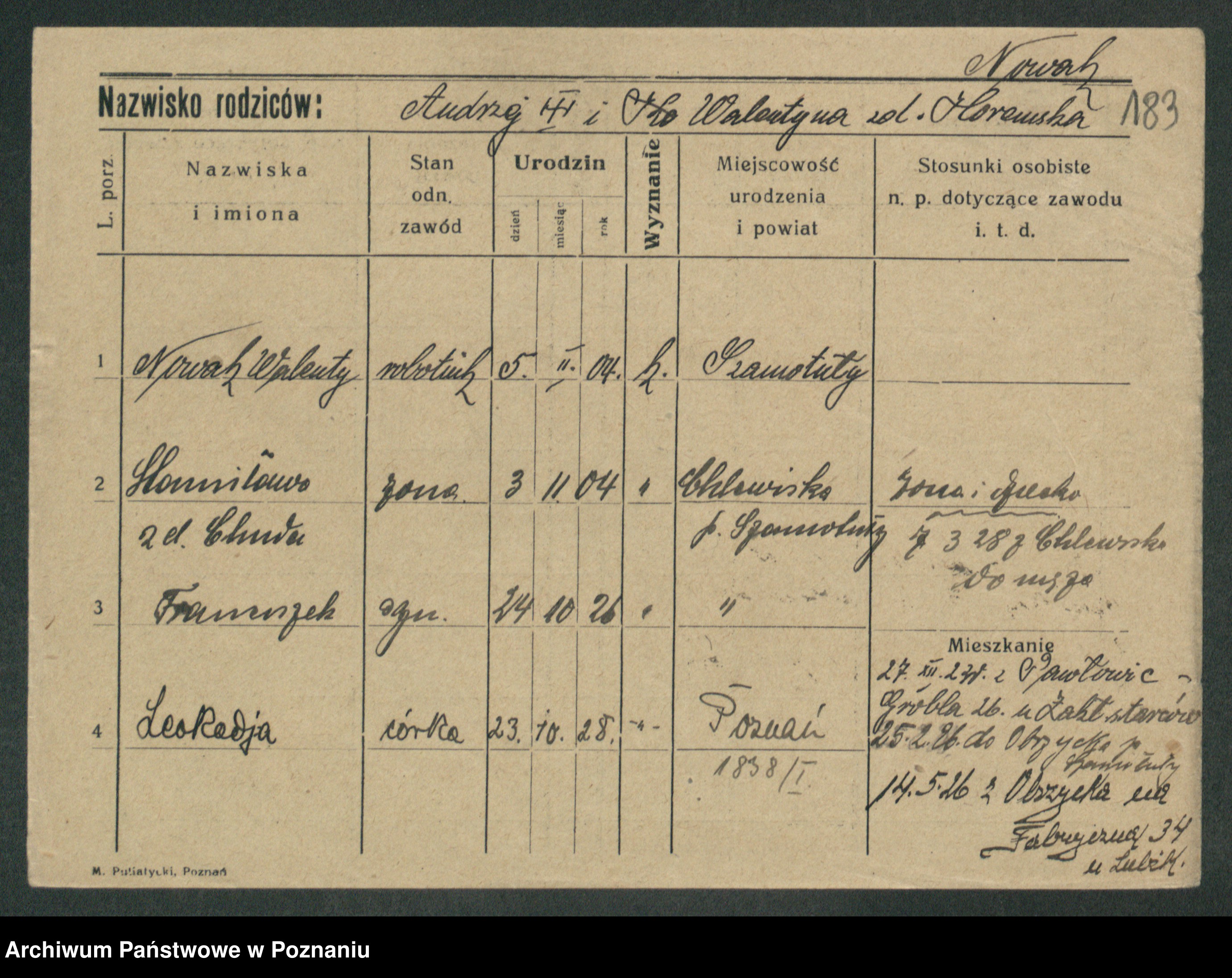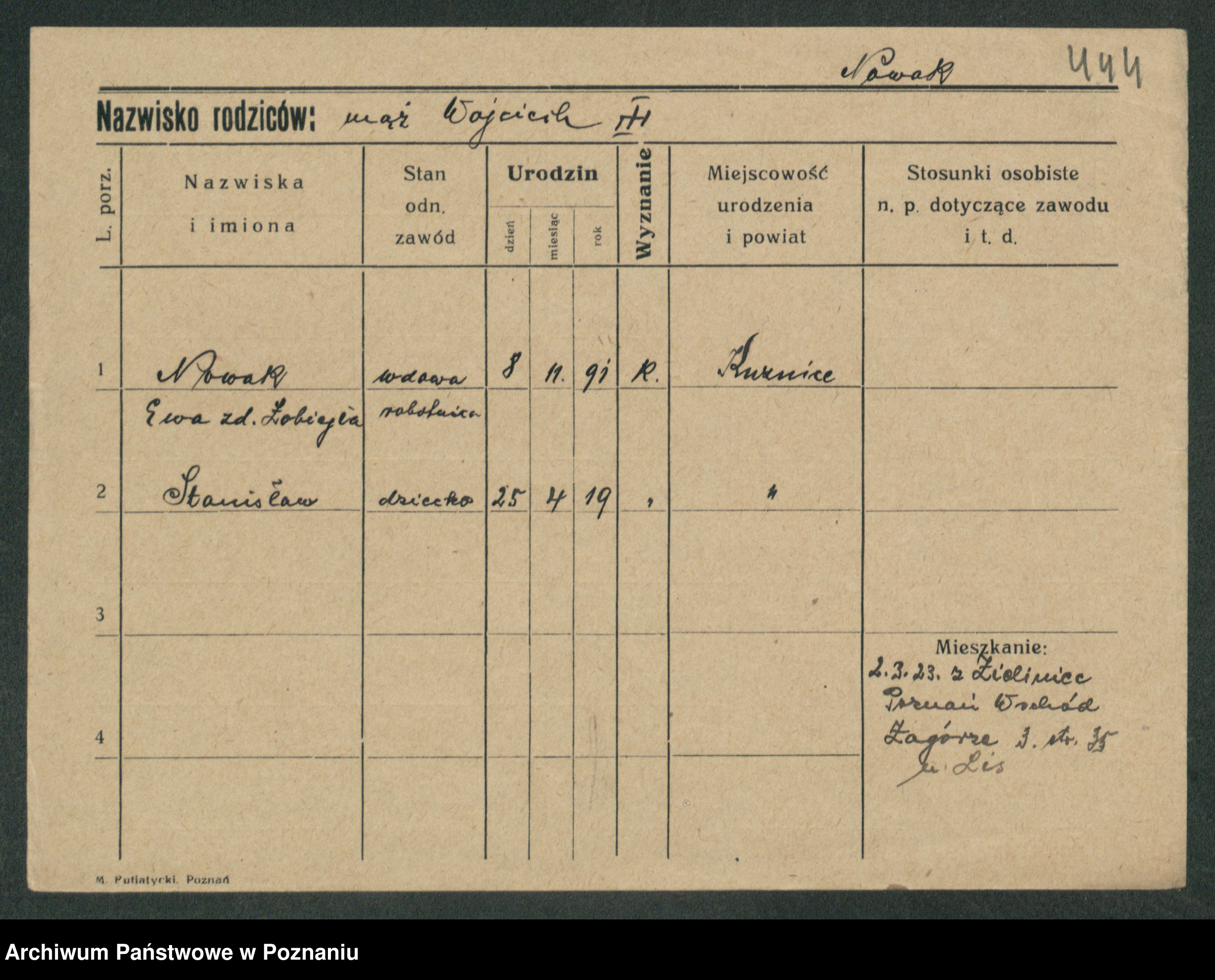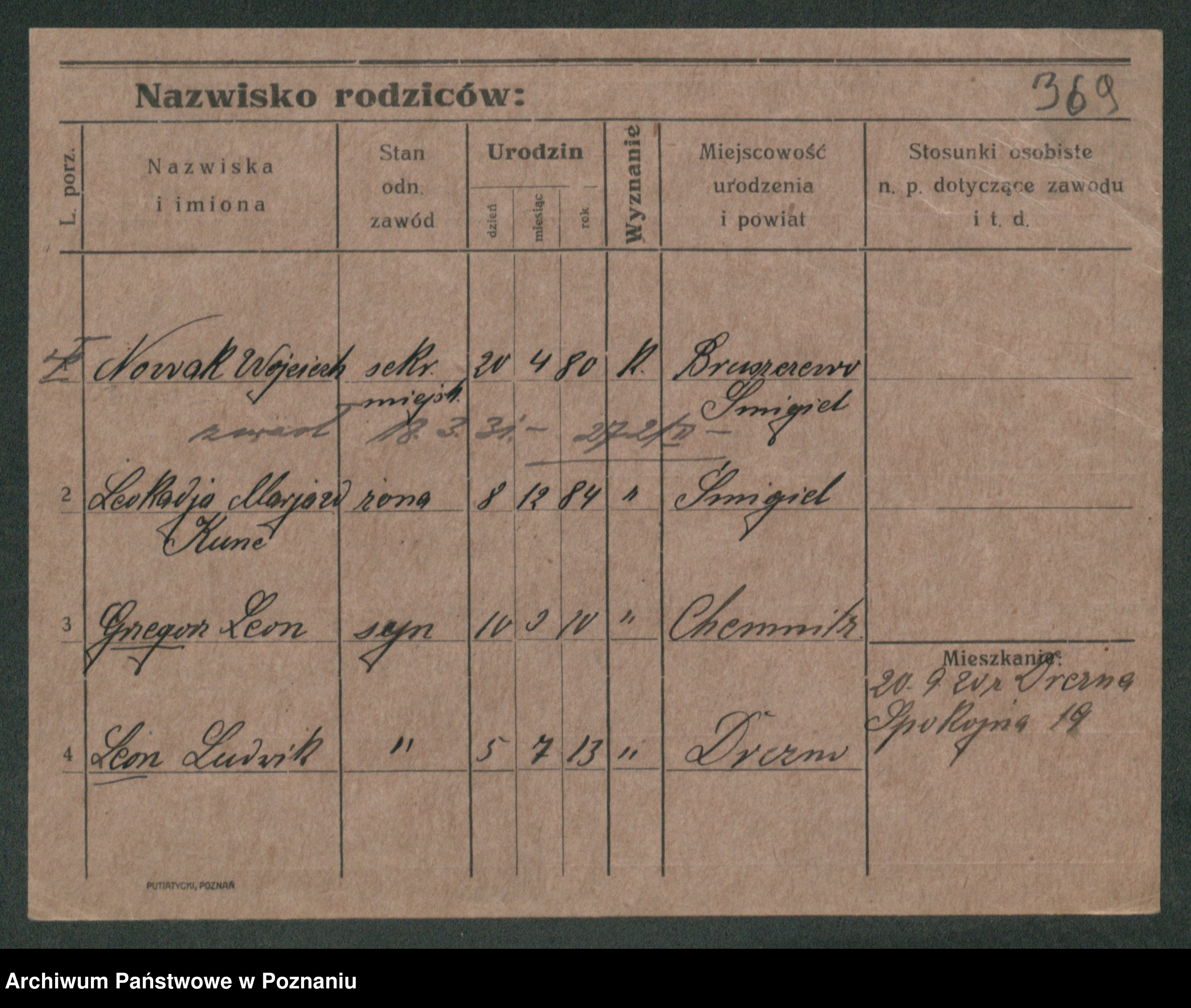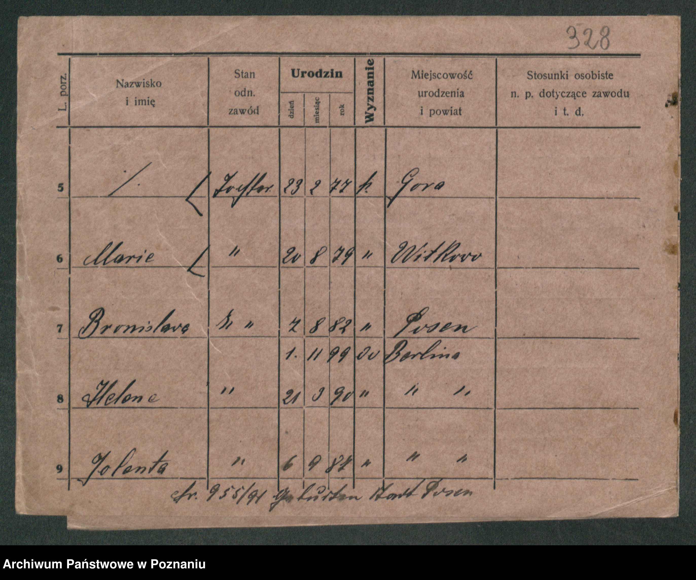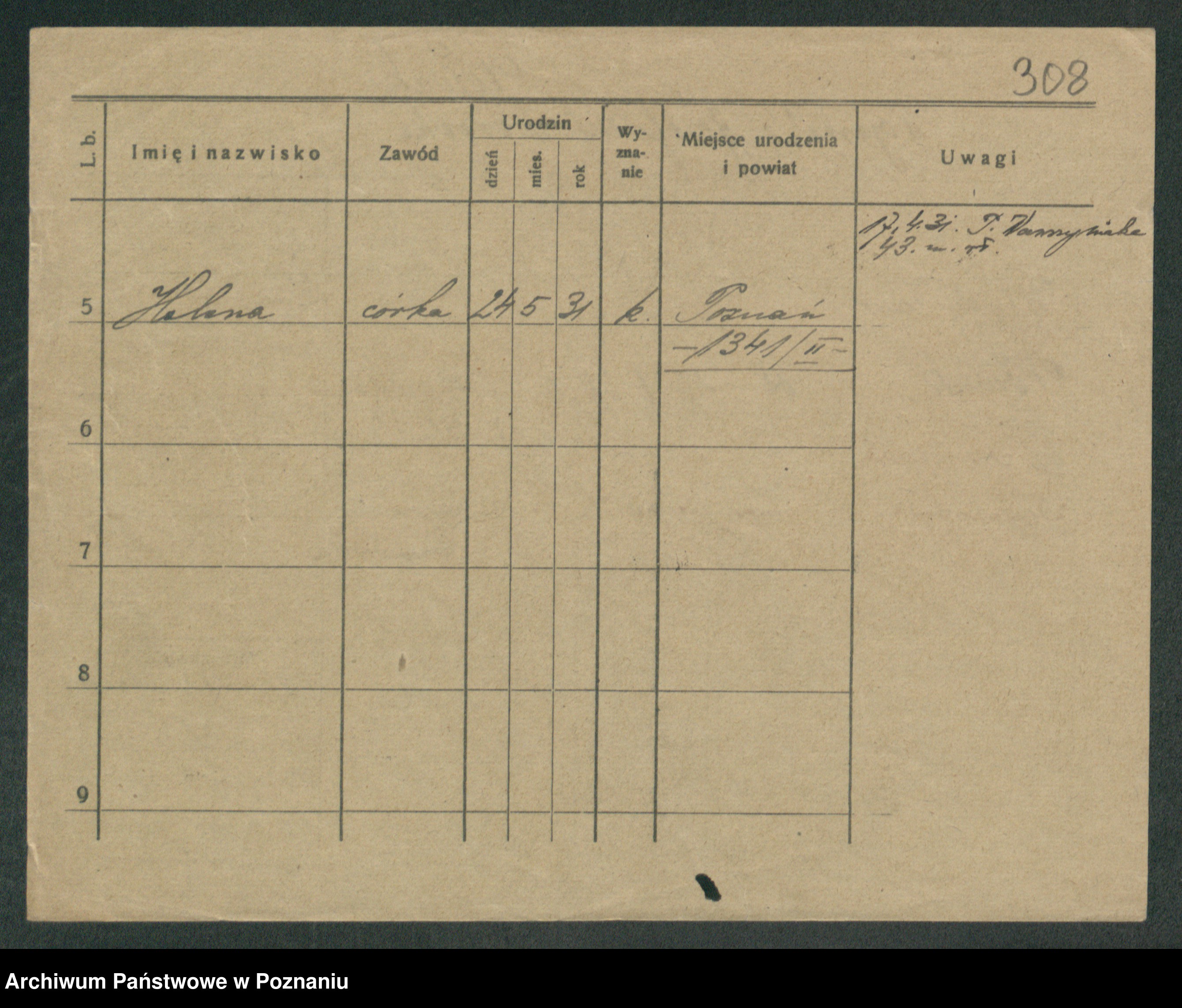 Podgląd karty osobowej dostępny jest po kliknięciu na nazwisko lub ikonkę karty. Można dokonywać powiększenia (ikony na górze) lub przechodzić między kolejnymi skanami (strzałki po bokach).