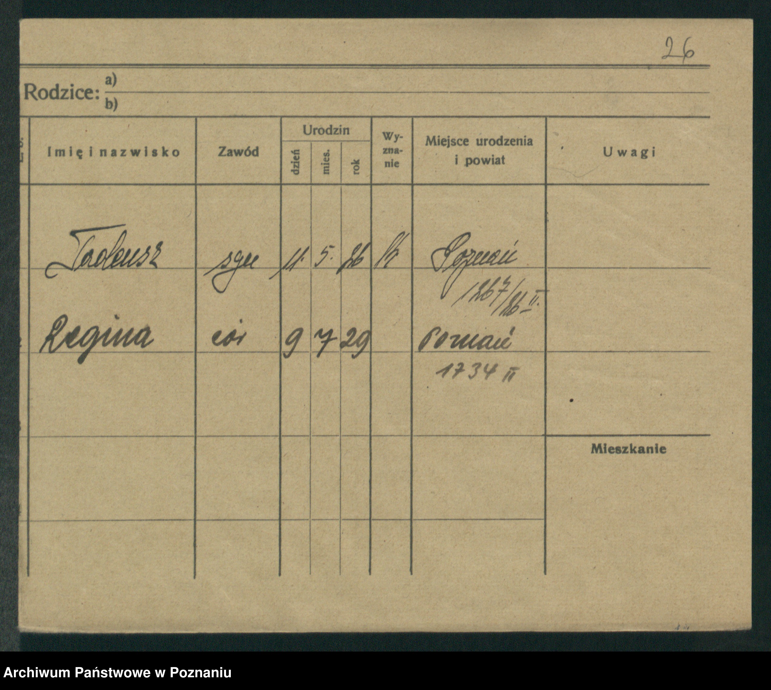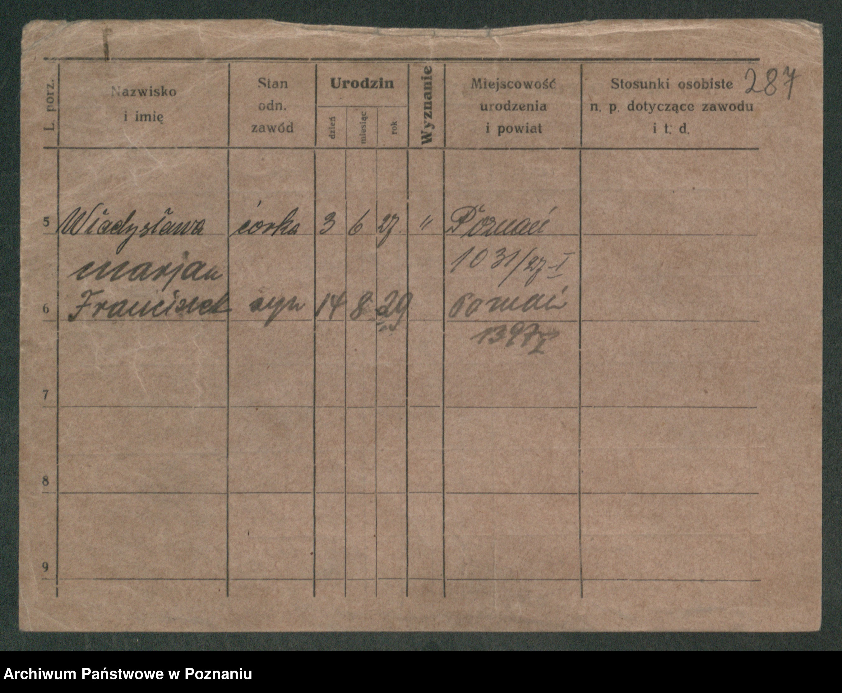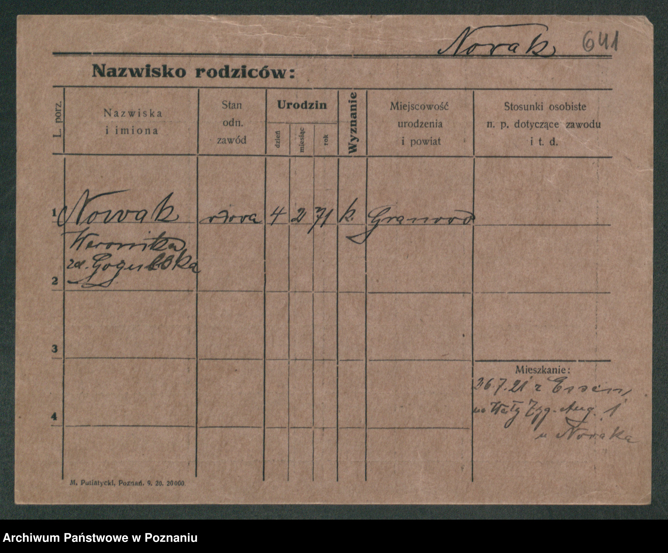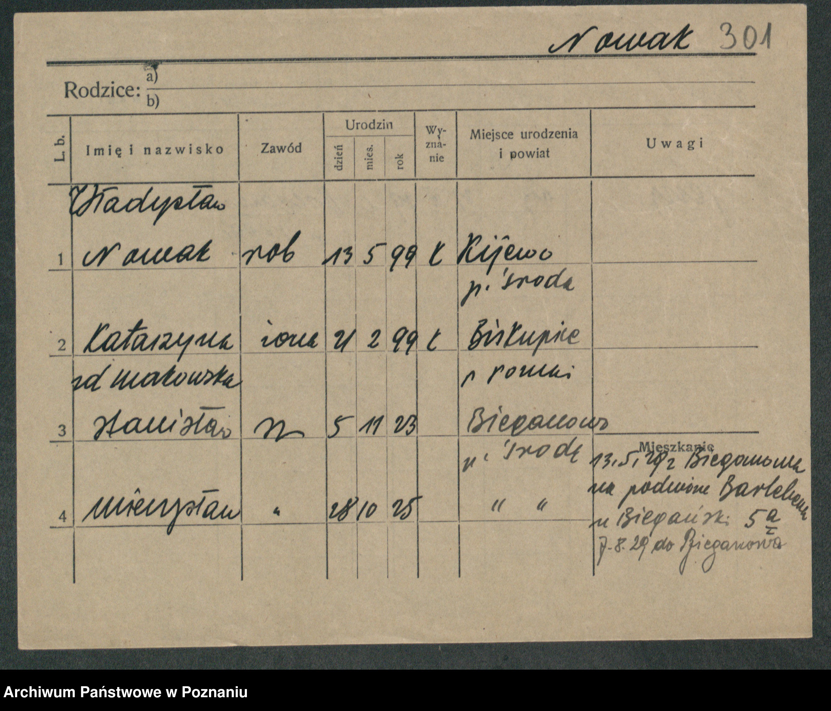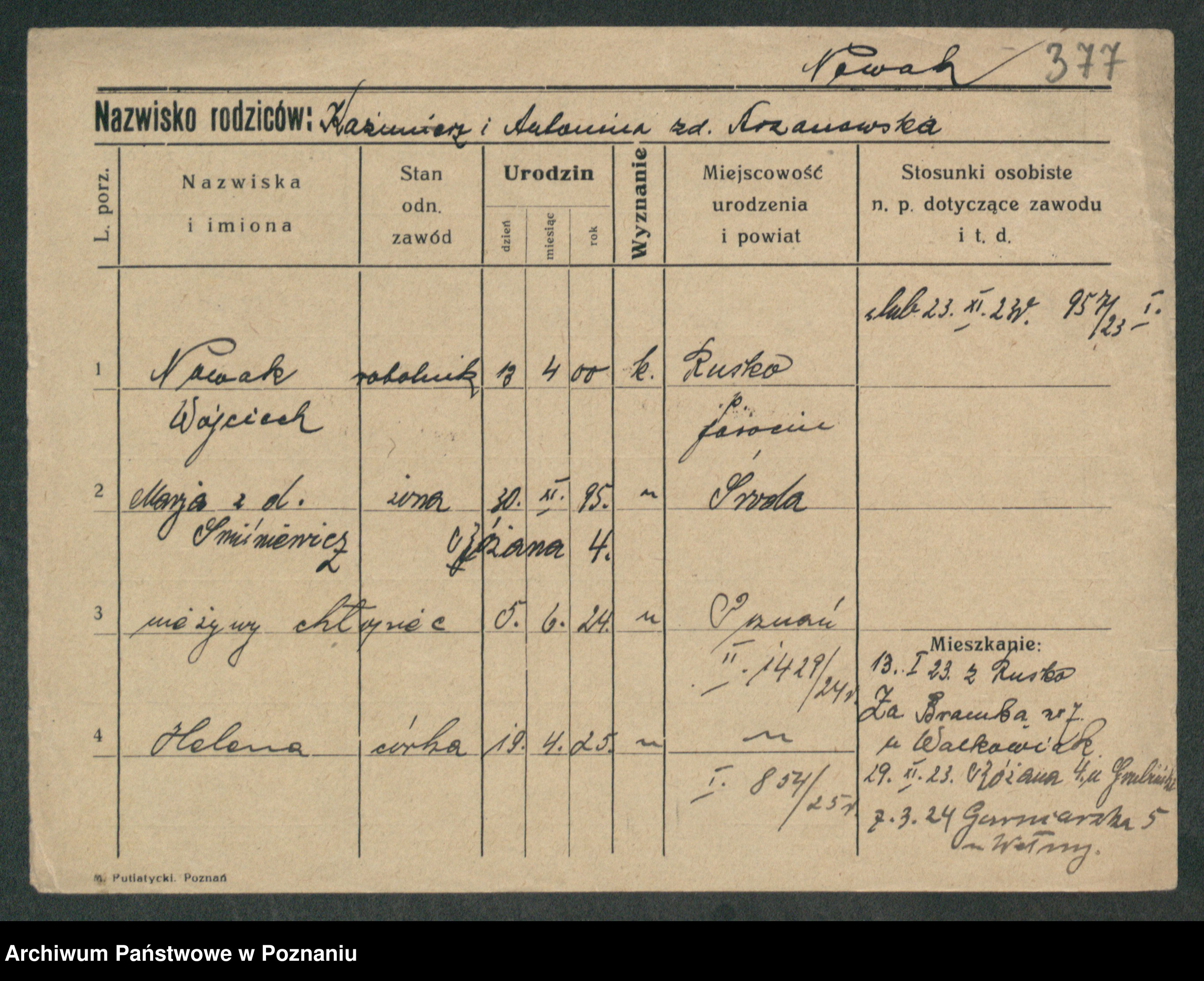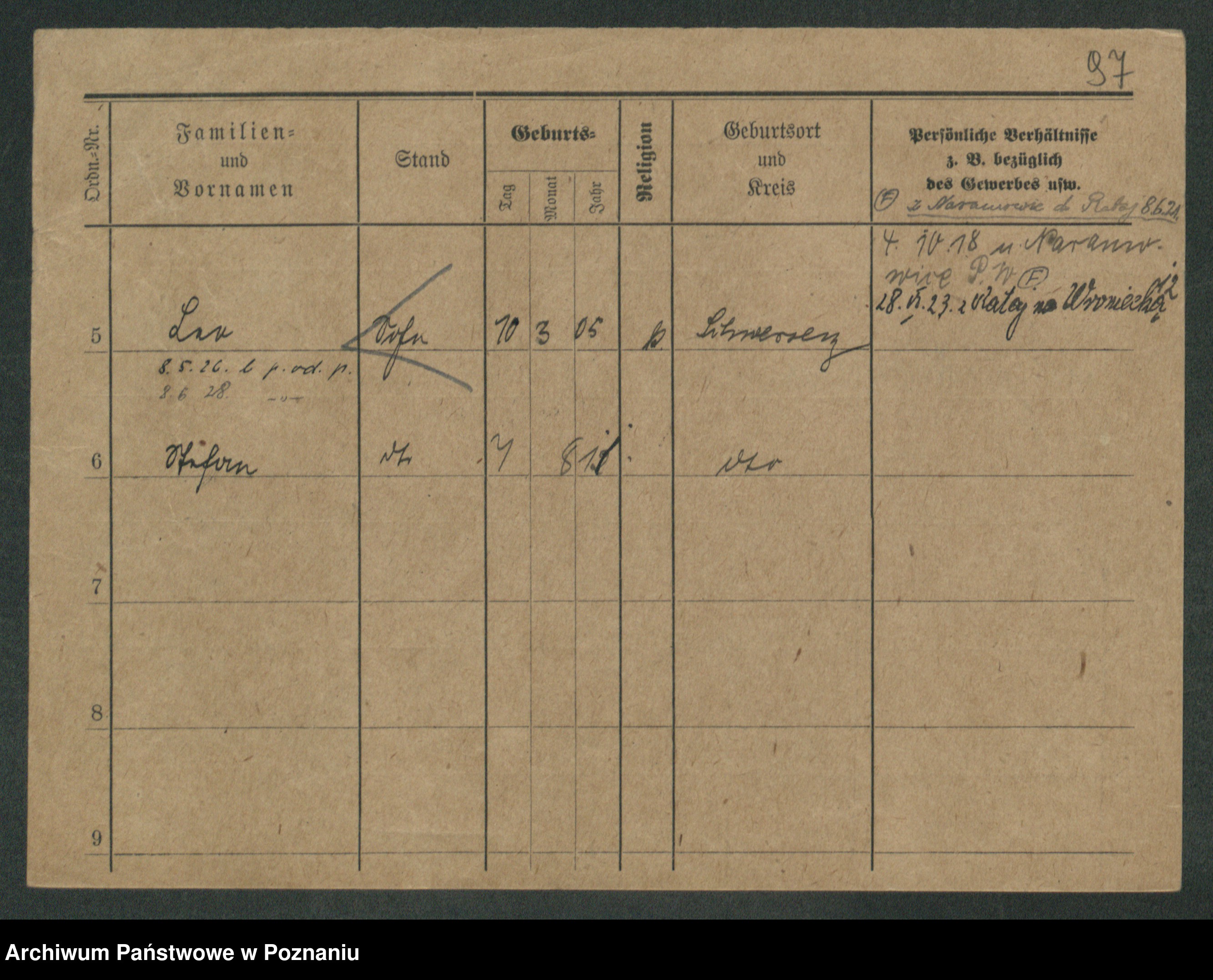 Podgląd karty osobowej dostępny jest po kliknięciu na nazwisko lub ikonkę karty. Można dokonywać powiększenia (ikony na górze) lub przechodzić między kolejnymi skanami (strzałki po bokach).
