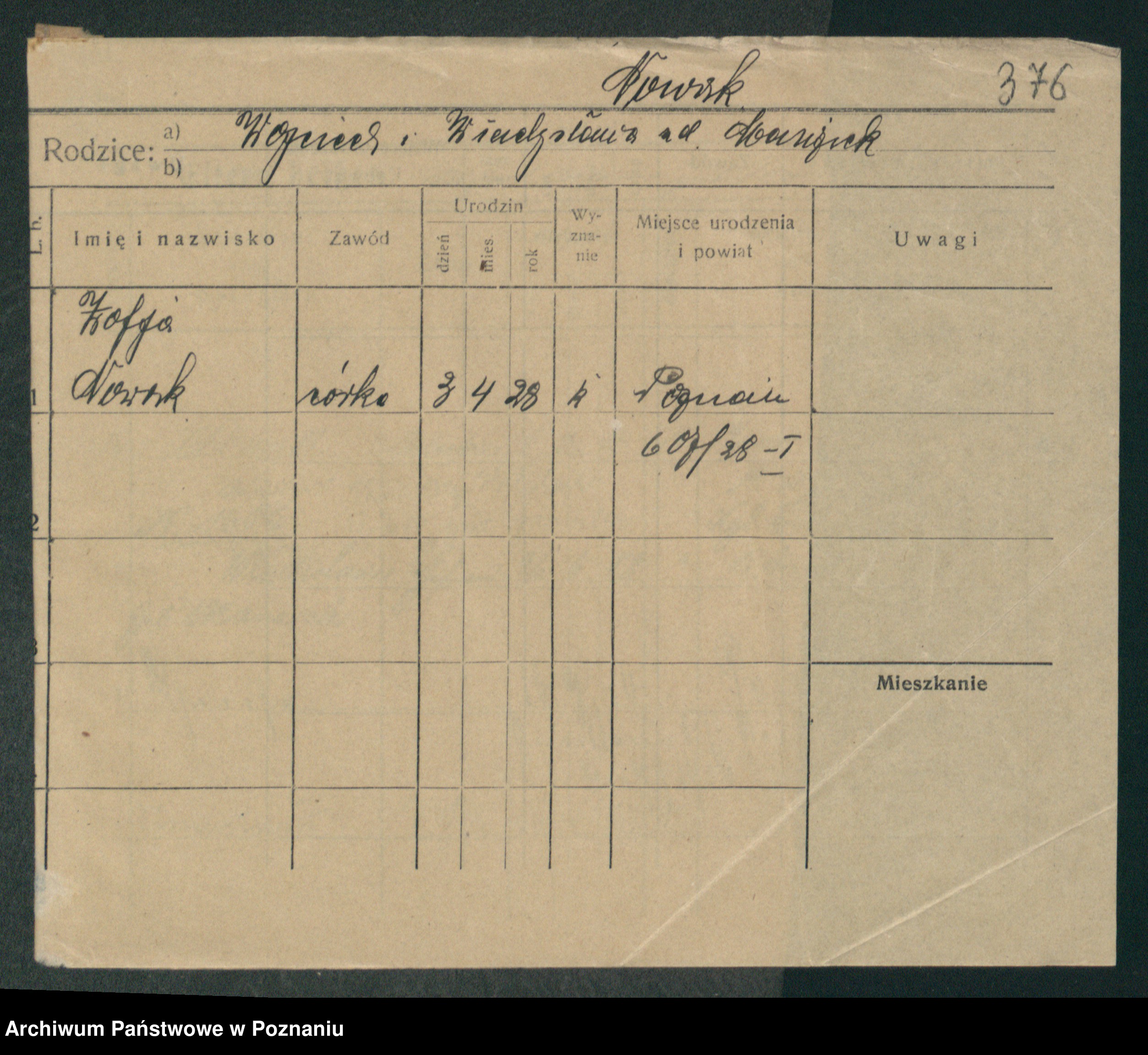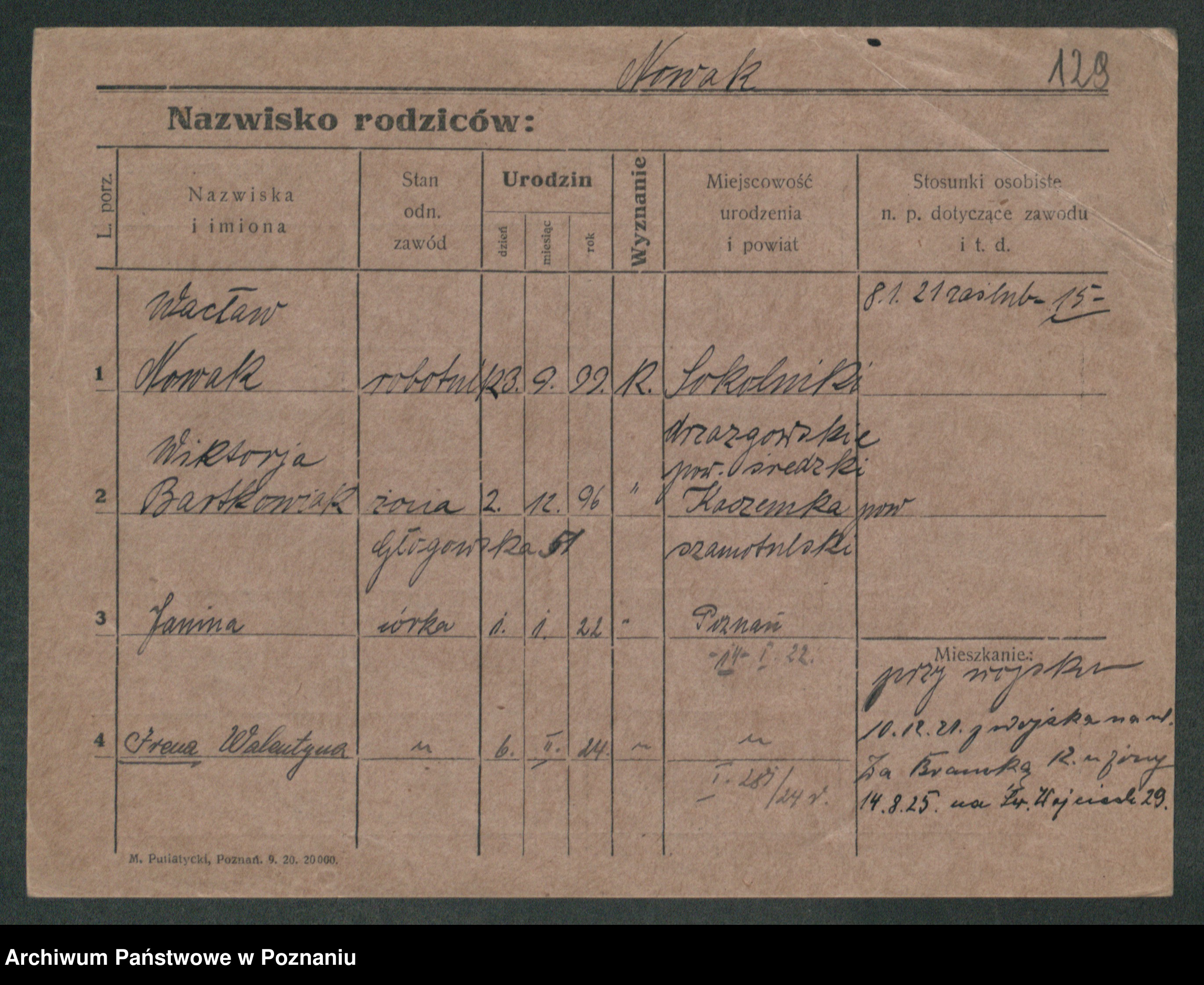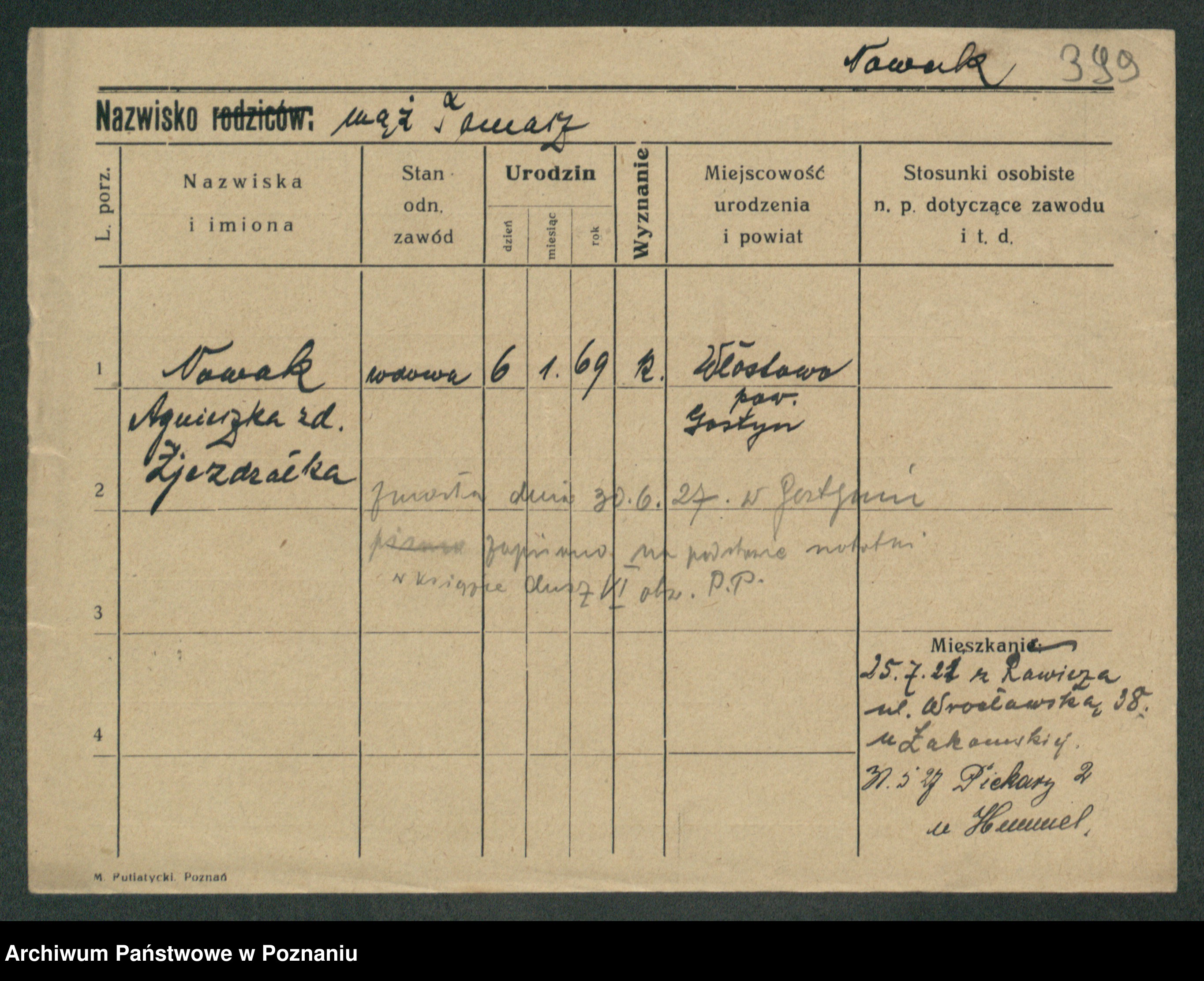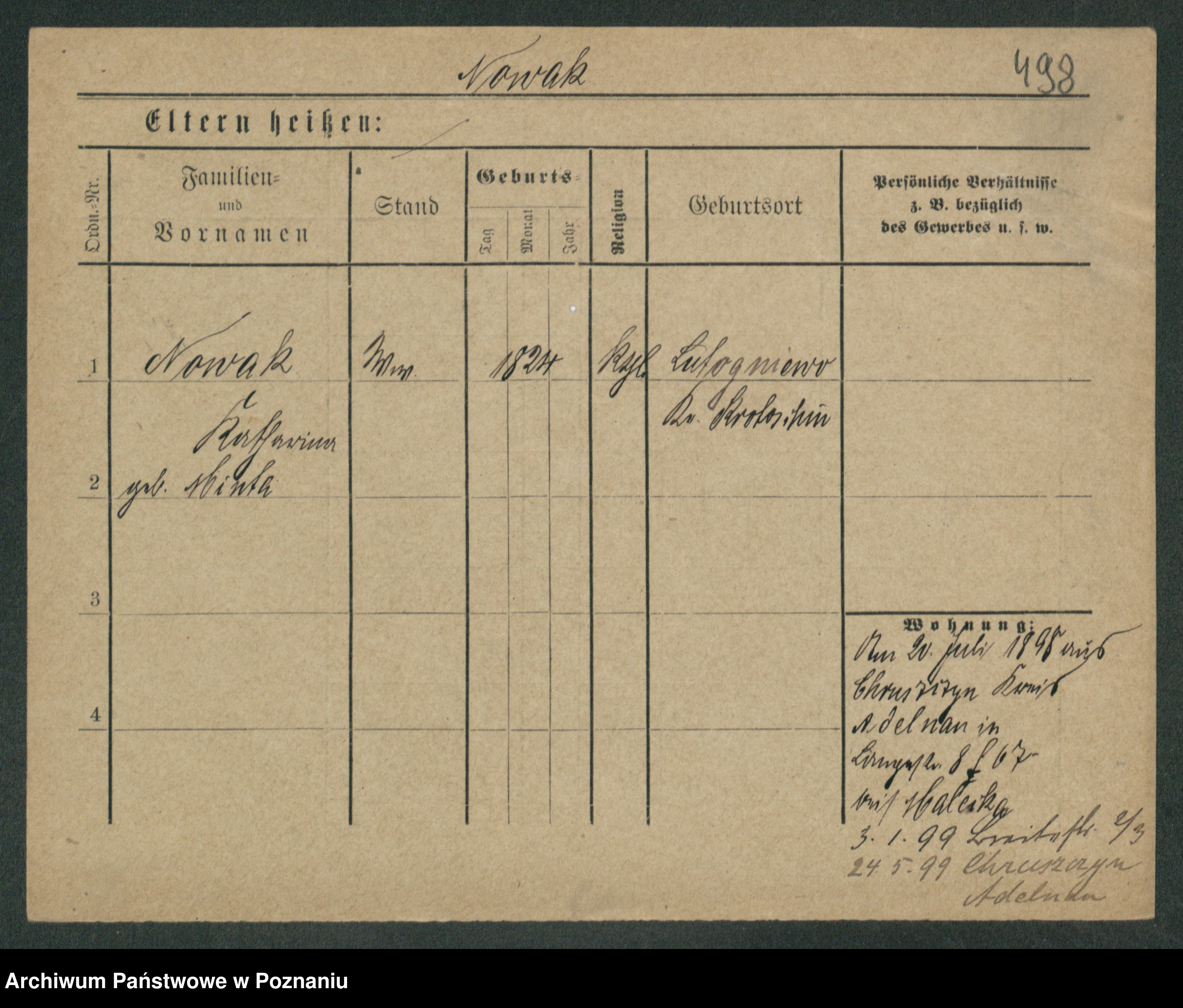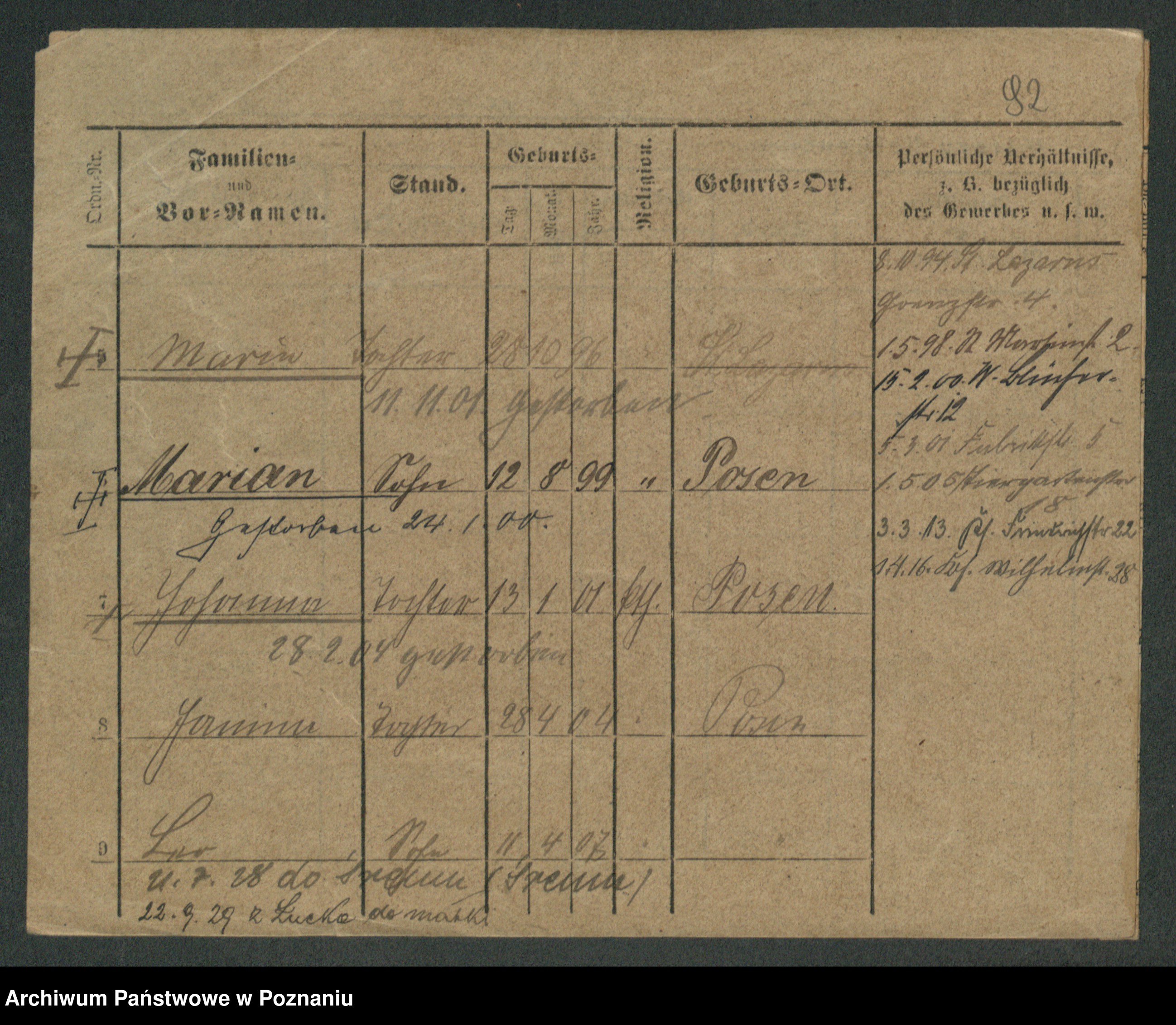 Podgląd karty osobowej dostępny jest po kliknięciu na nazwisko lub ikonkę karty. Można dokonywać powiększenia (ikony na górze) lub przechodzić między kolejnymi skanami (strzałki po bokach).