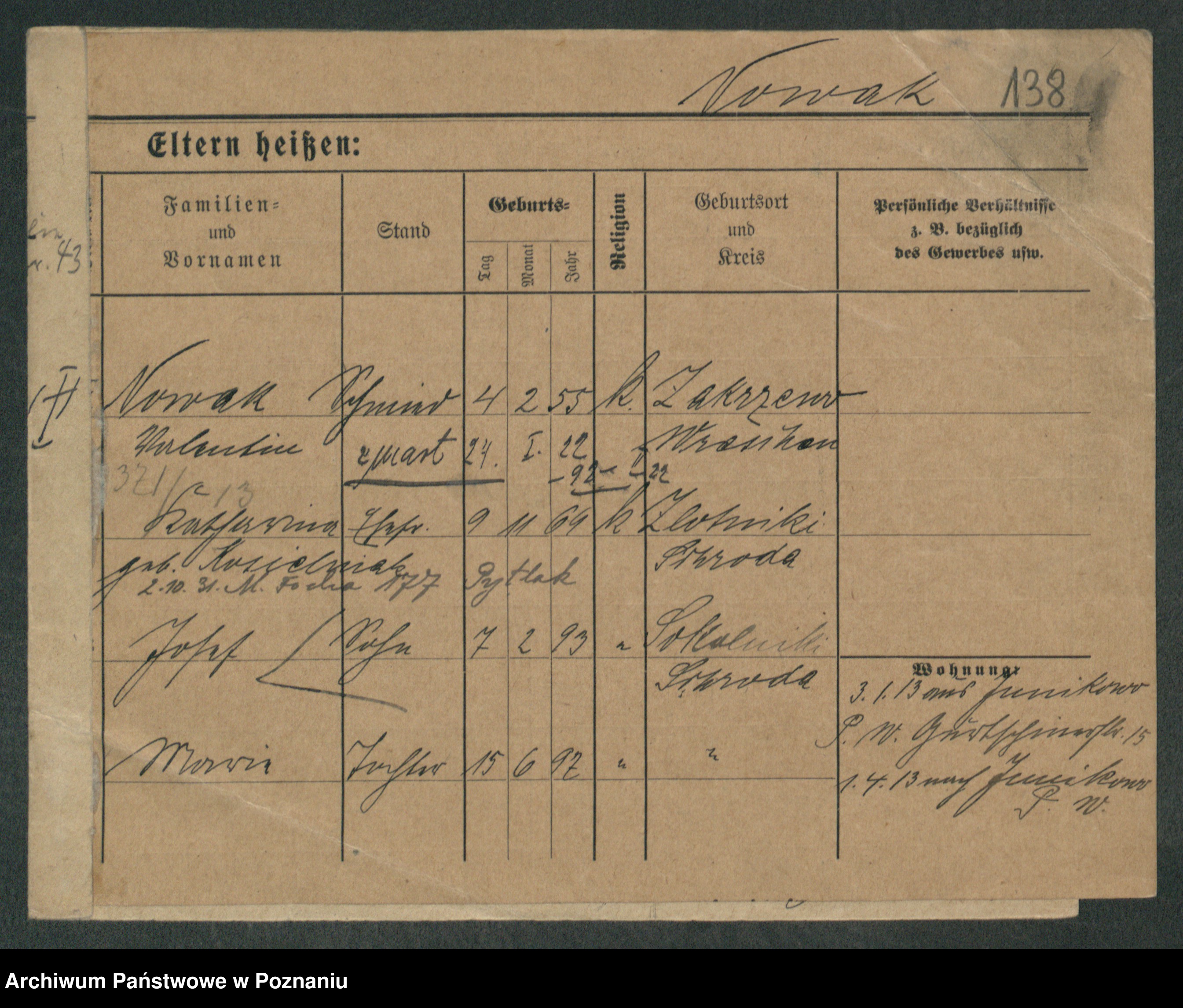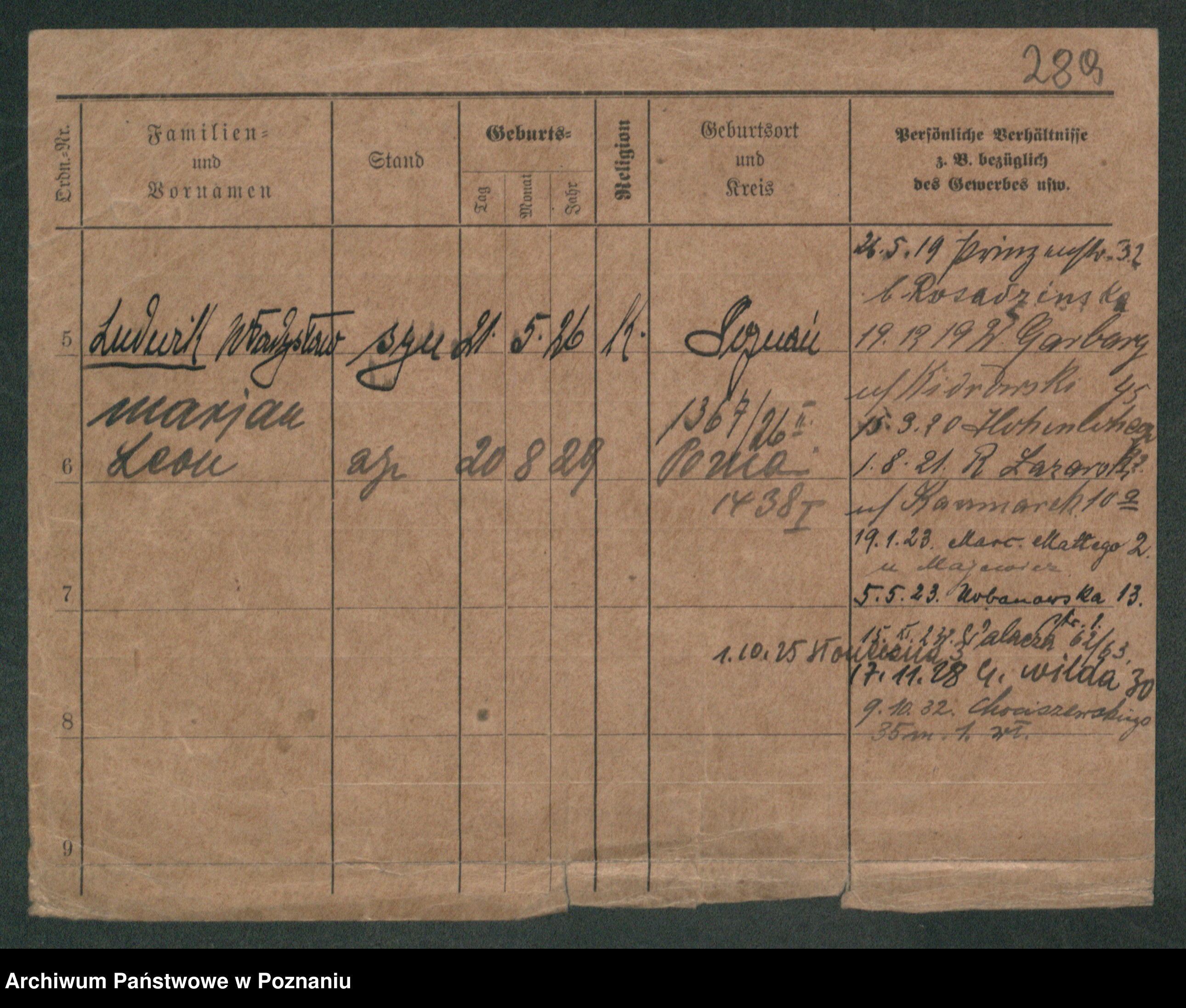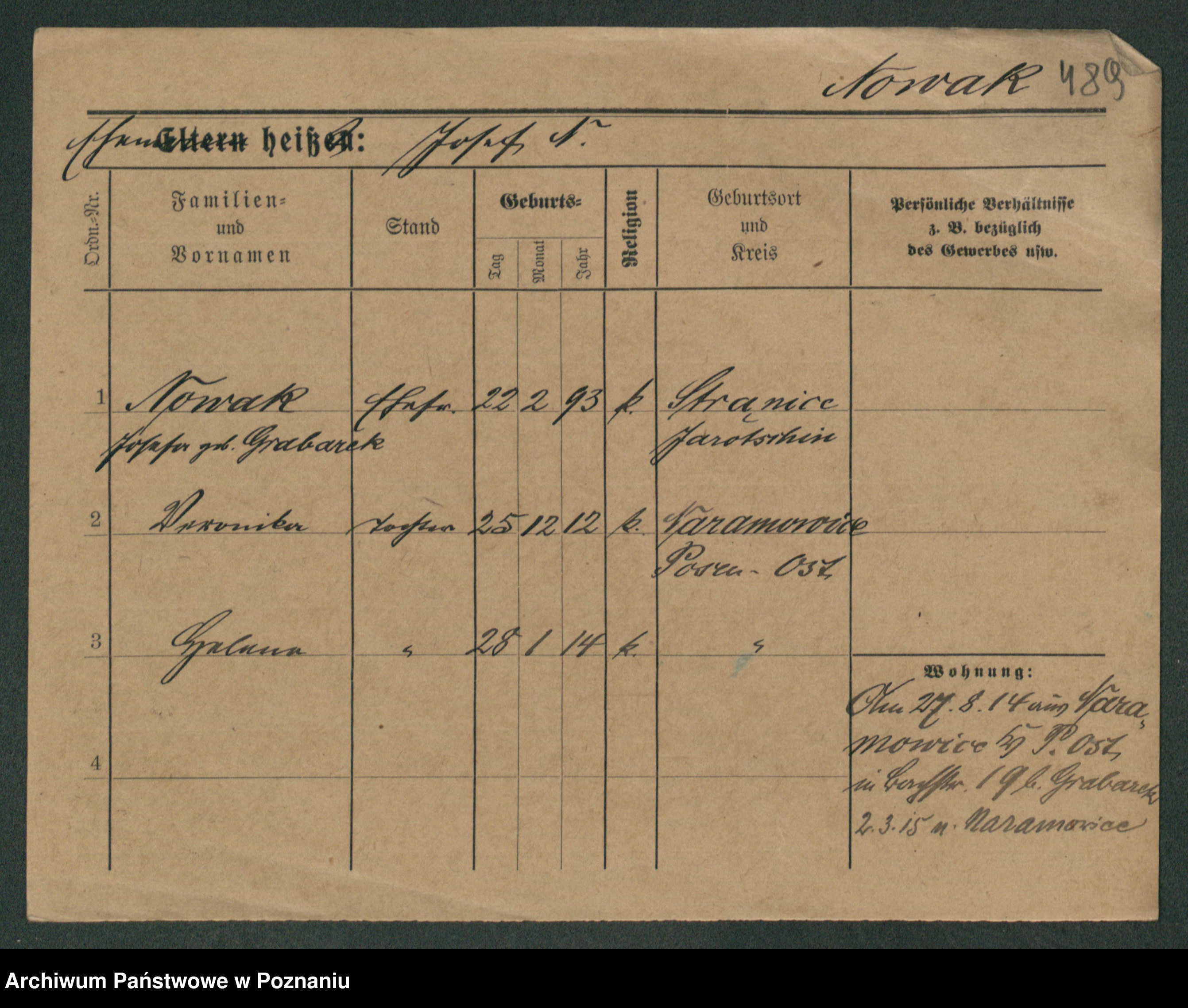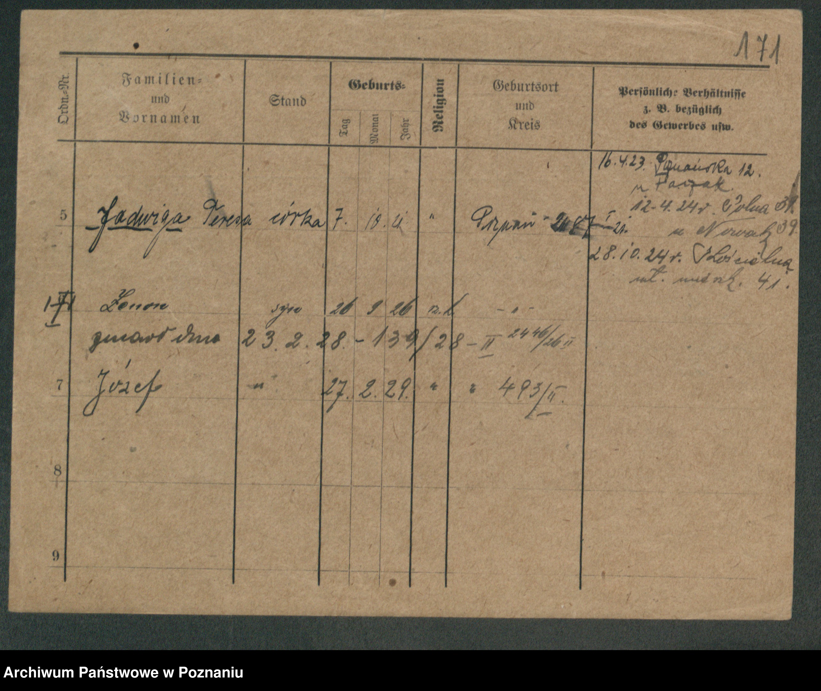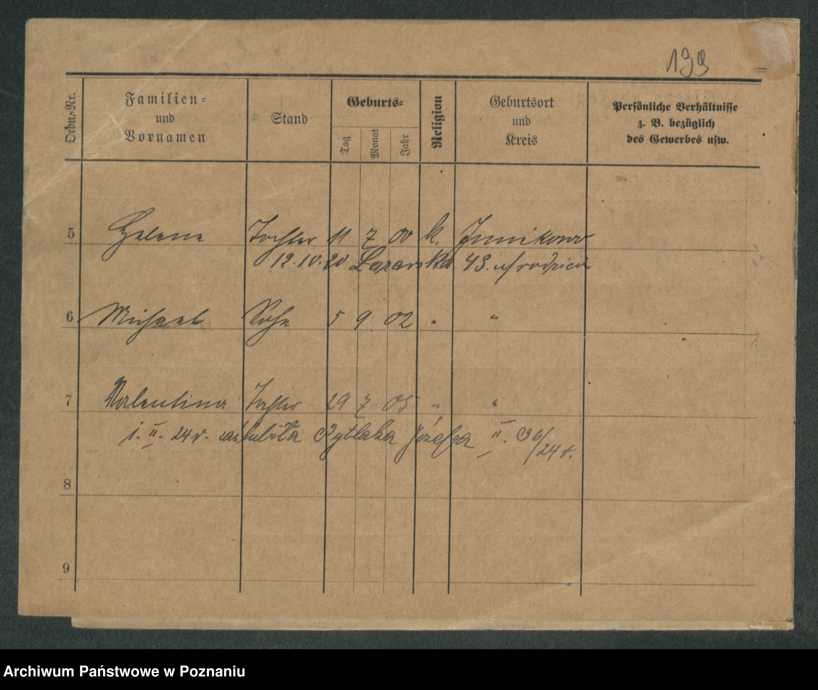 Podgląd karty osobowej dostępny jest po kliknięciu na nazwisko lub ikonkę karty. Można dokonywać powiększenia (ikony na górze) lub przechodzić między kolejnymi skanami (strzałki po bokach).